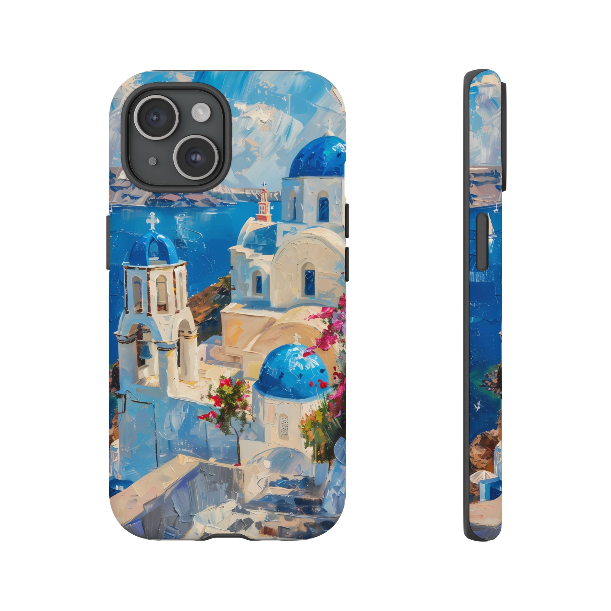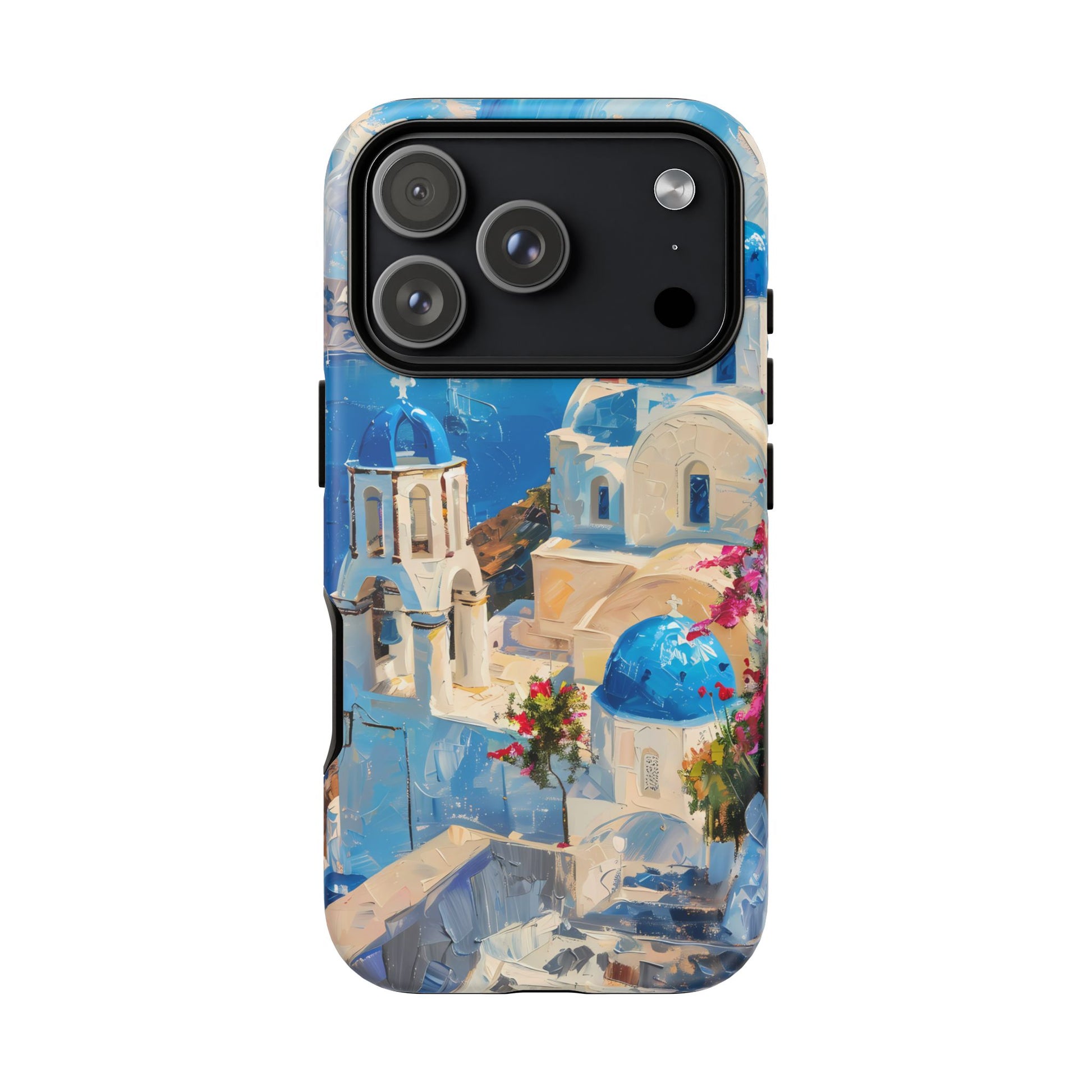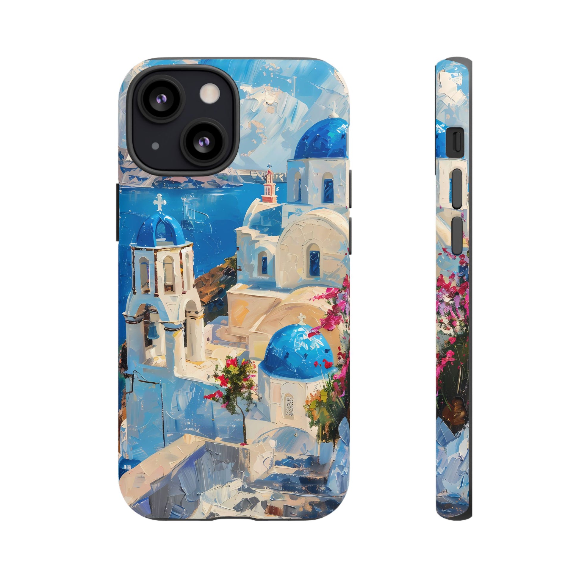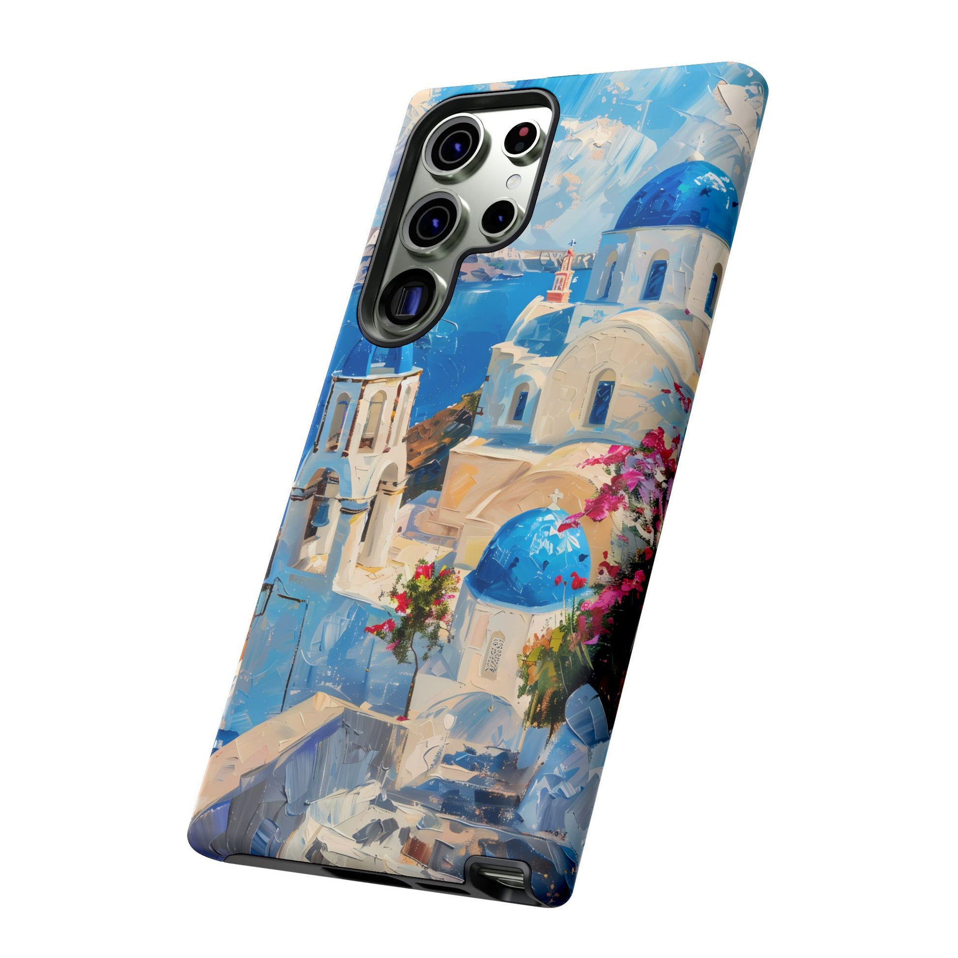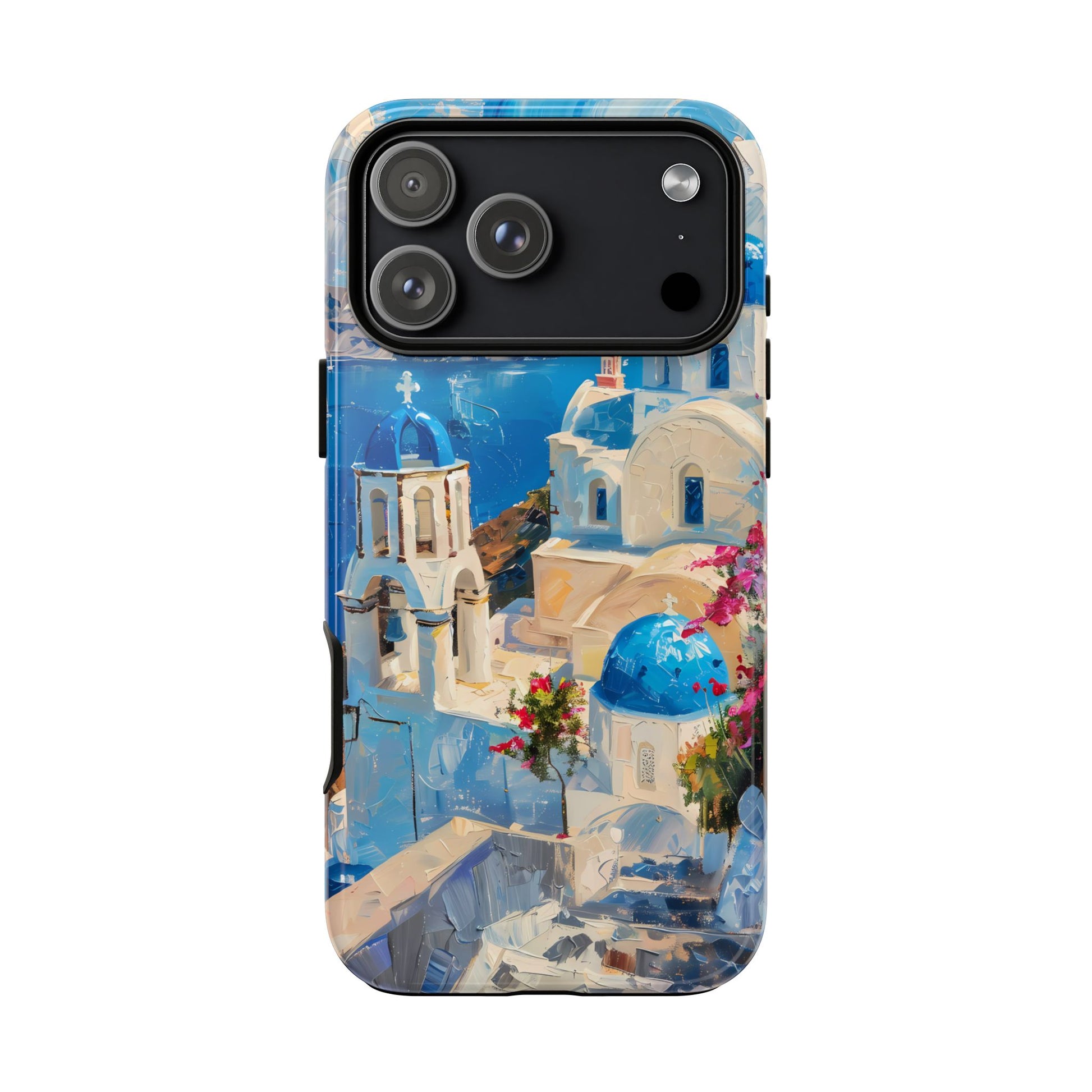 Celebrate the enchanting views of Santorini with this phone cover that features the iconic white-washed buildings and blue domes overlooking the Aegean Sea. The design’s soft pastel tones and serene composition make it a stylish accessory for anyone who loves the elegance of Mediterranean landscapes