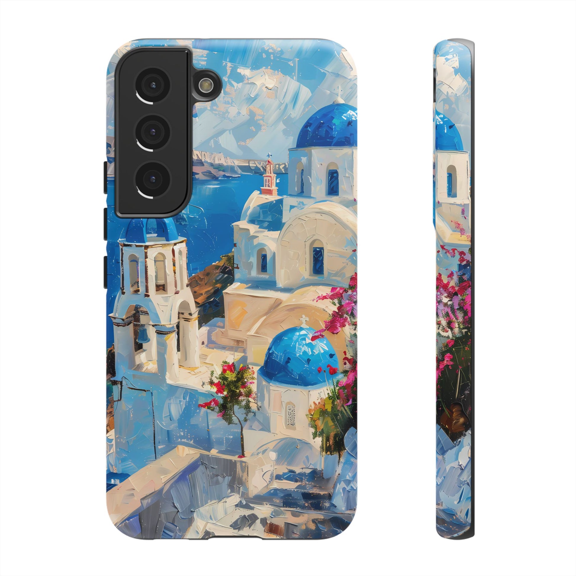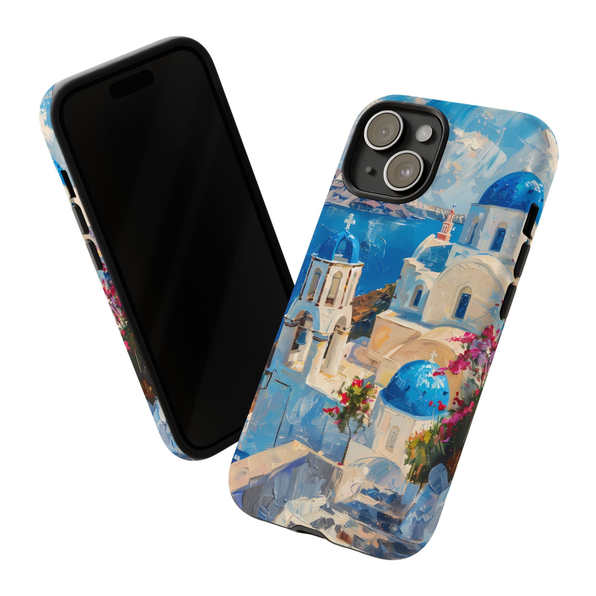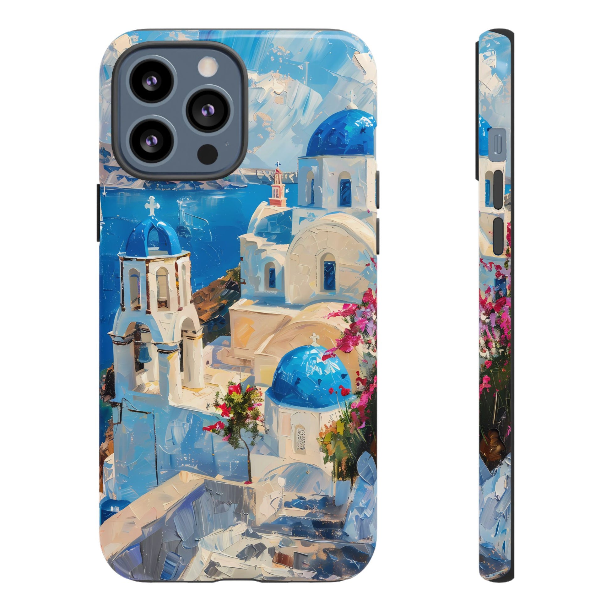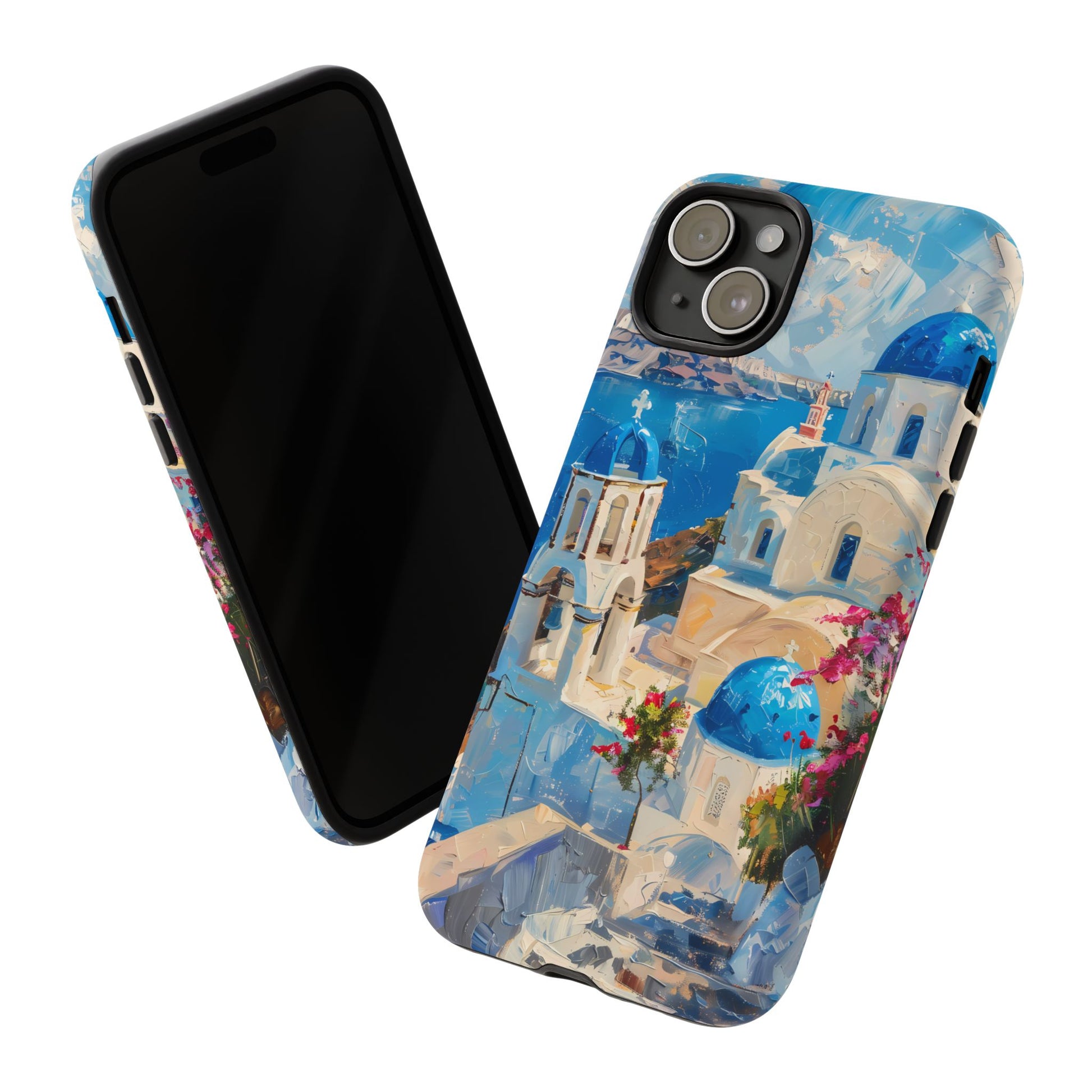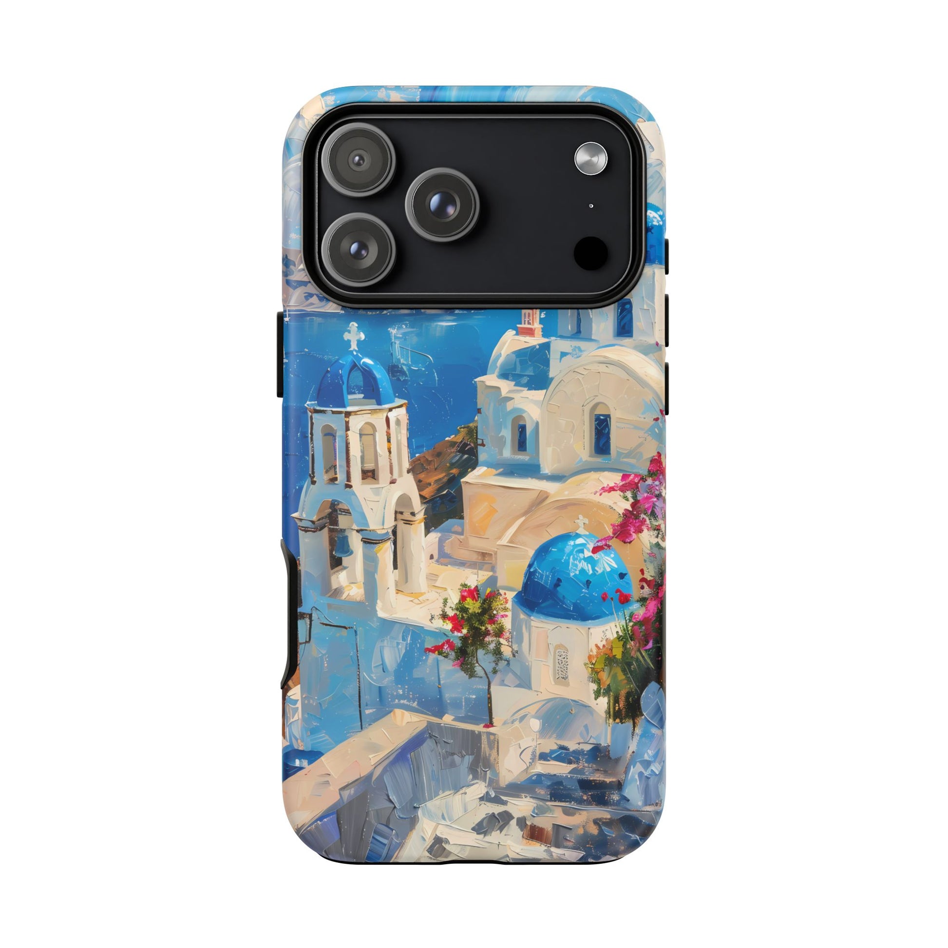 Celebrate the enchanting views of Santorini with this phone cover that features the iconic white-washed buildings and blue domes overlooking the Aegean Sea. The design’s soft pastel tones and serene composition make it a stylish accessory for anyone who loves the elegance of Mediterranean landscapes