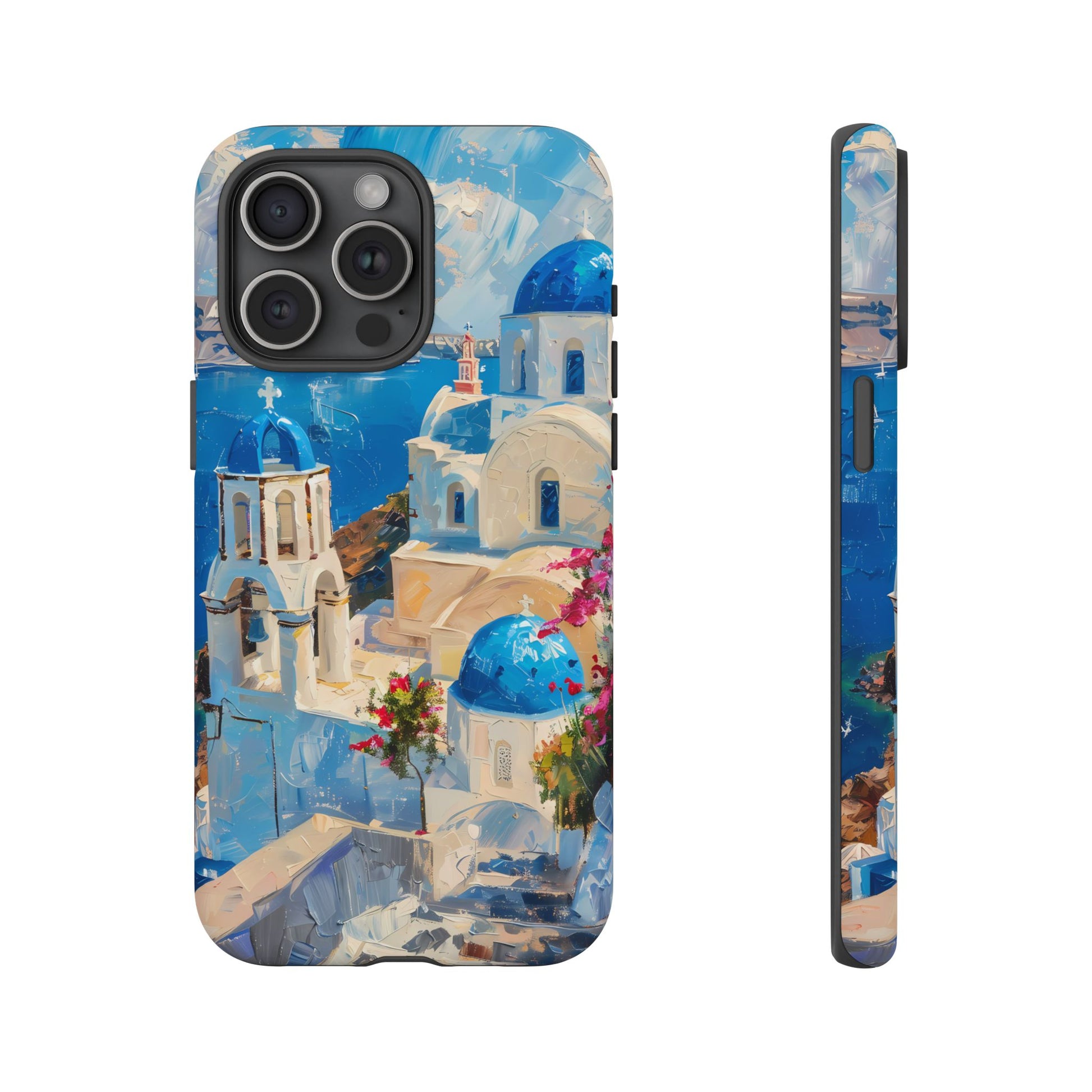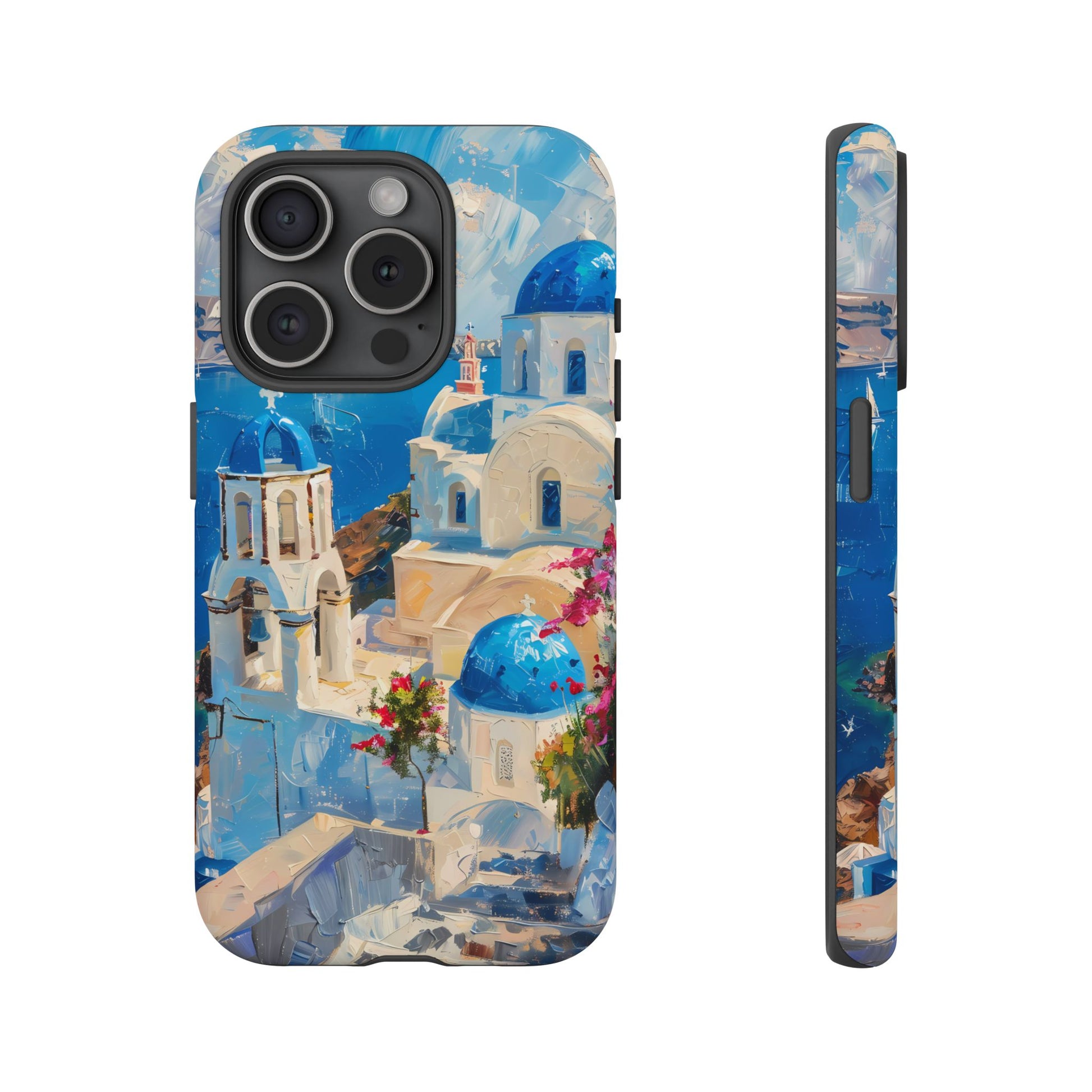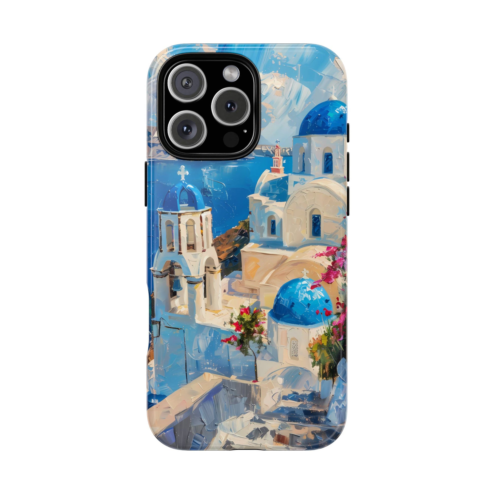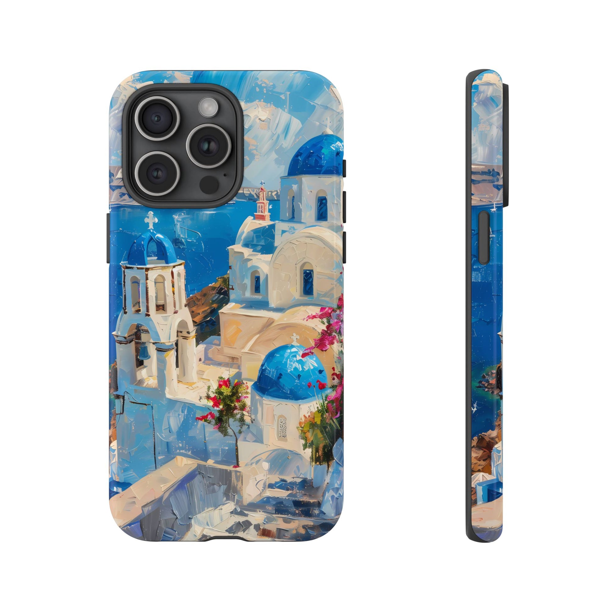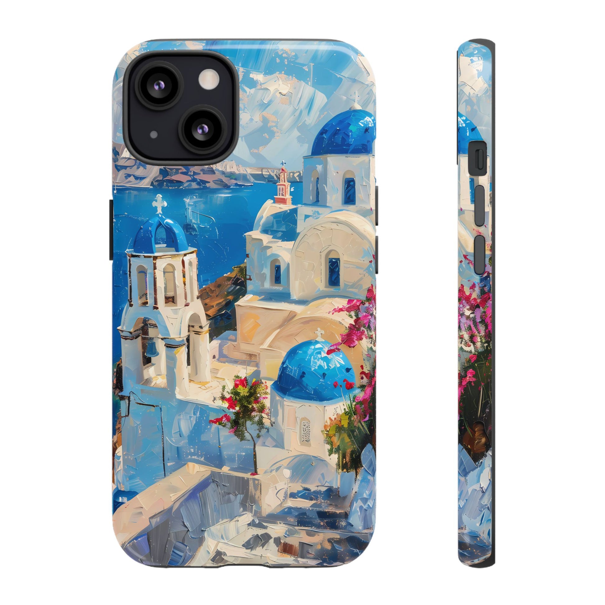 Celebrate the enchanting views of Santorini with this phone cover that features the iconic white-washed buildings and blue domes overlooking the Aegean Sea. The design’s soft pastel tones and serene composition make it a stylish accessory for anyone who loves the elegance of Mediterranean landscapes