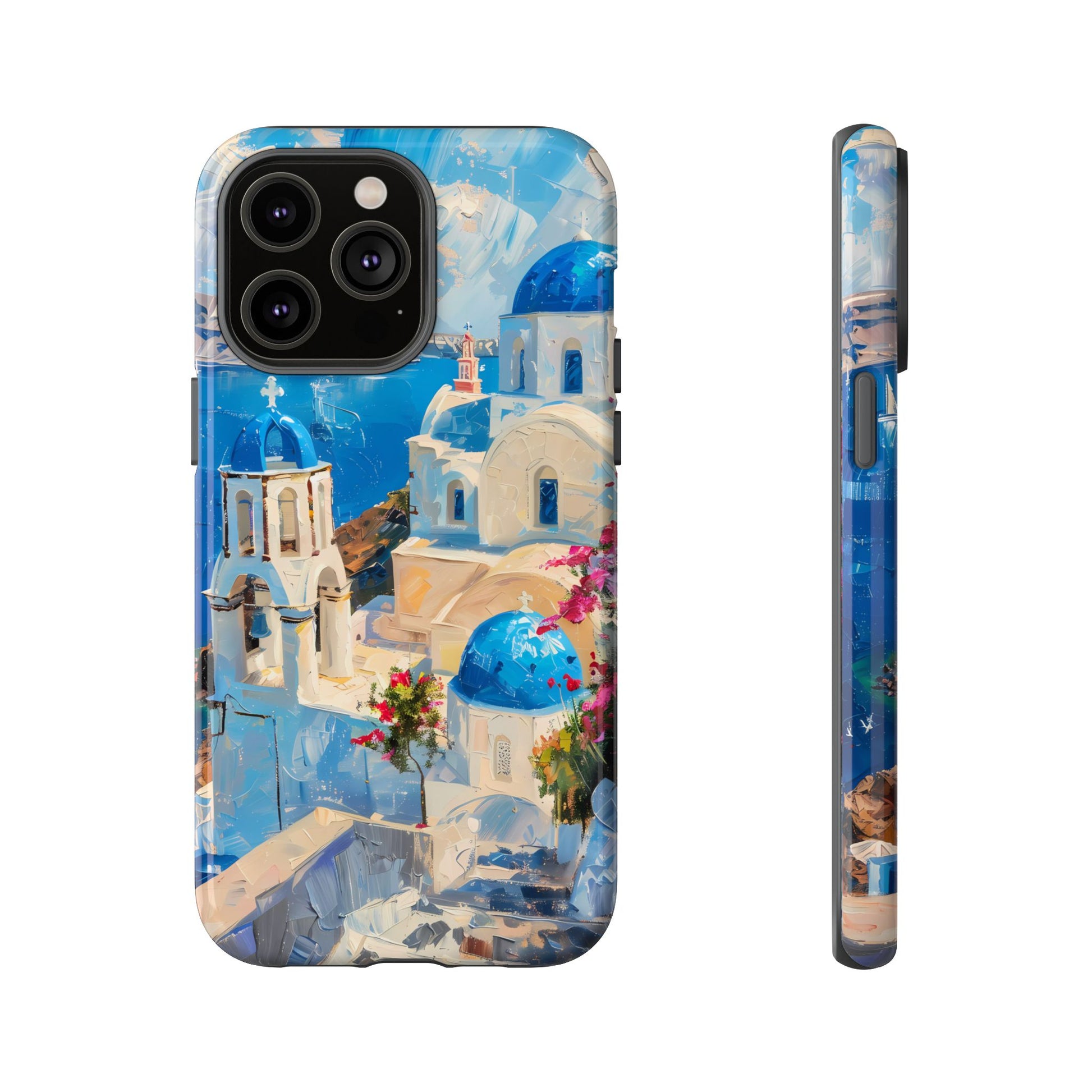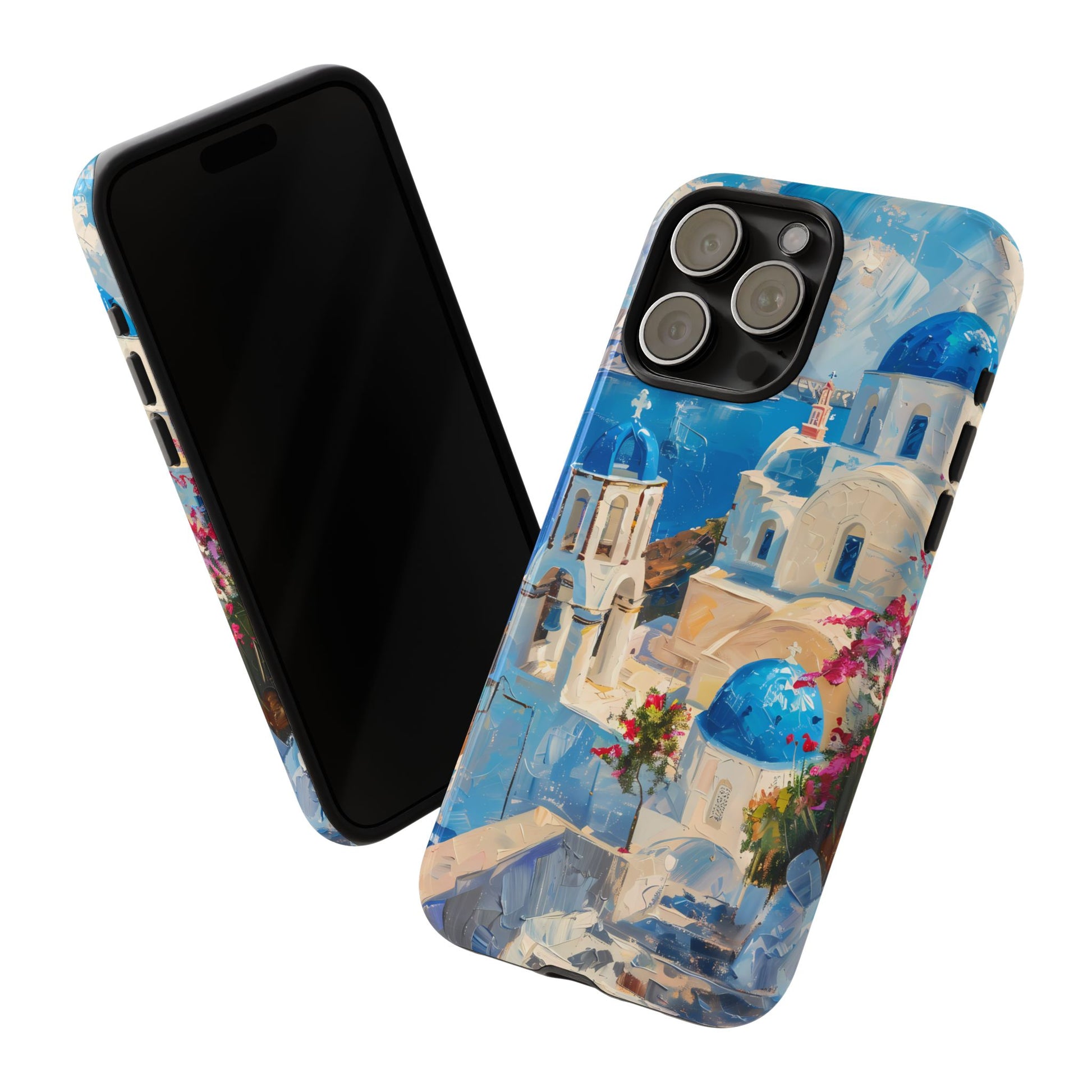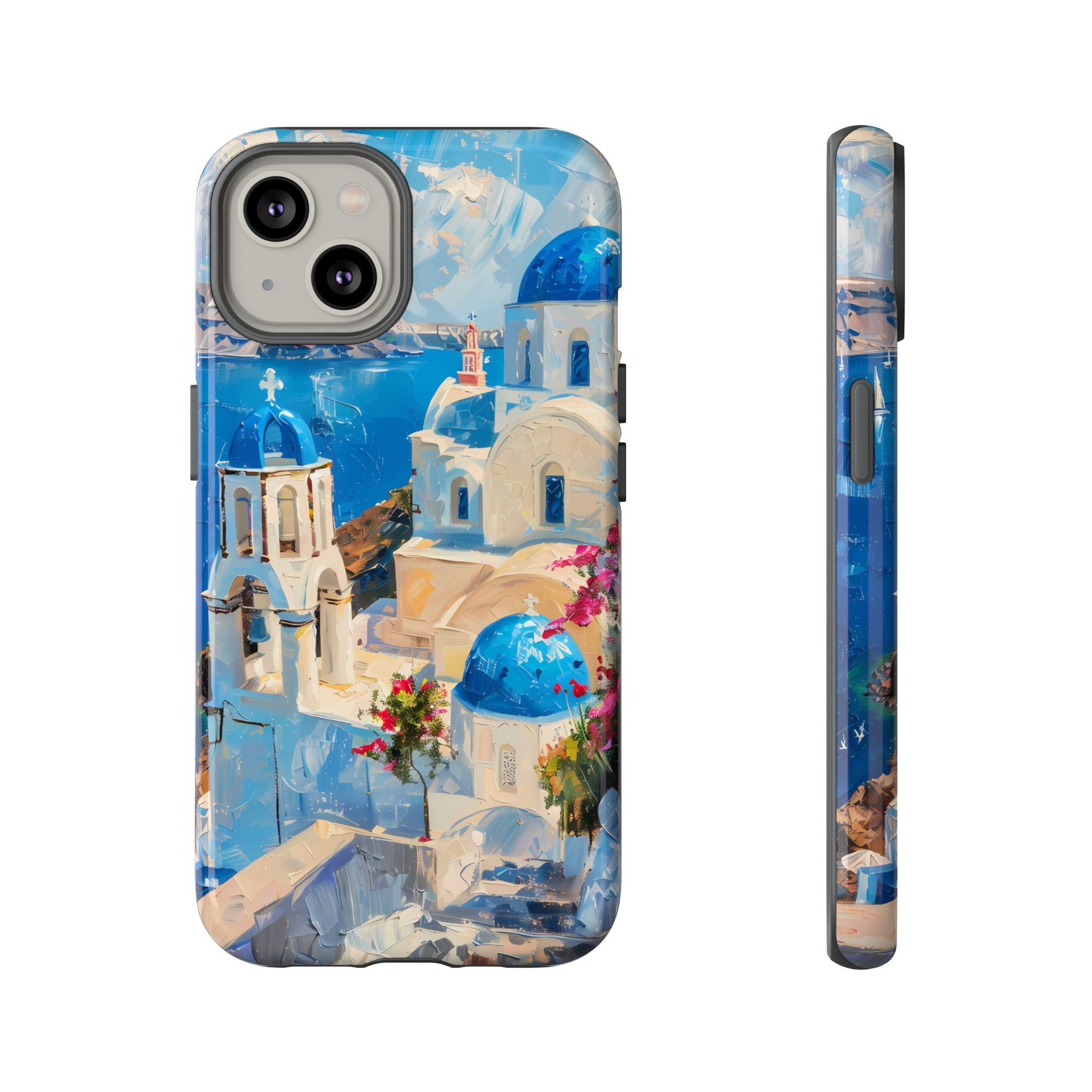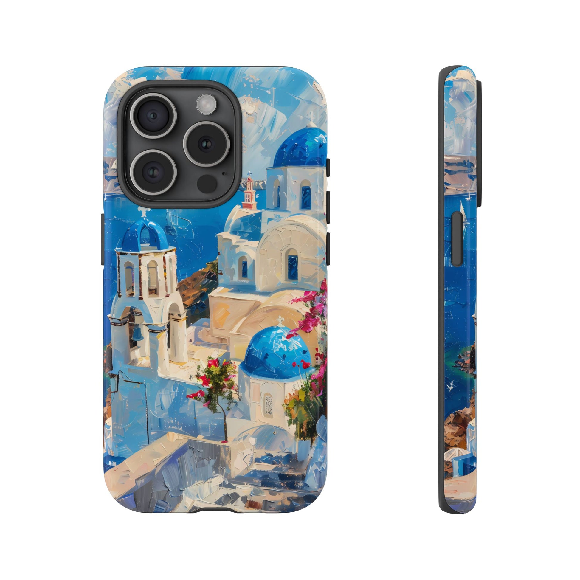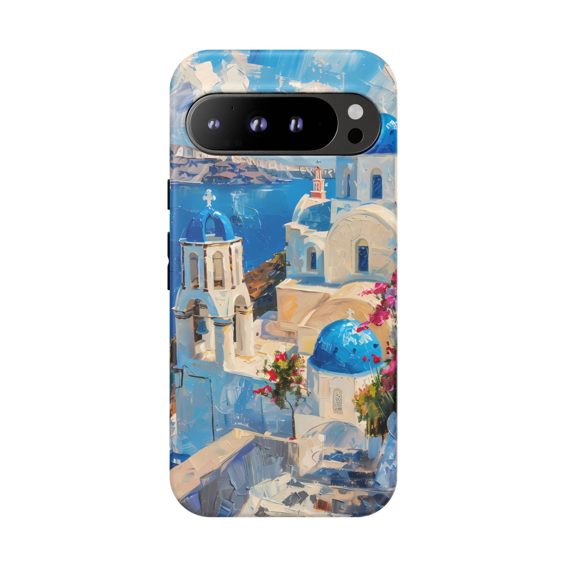 Celebrate the enchanting views of Santorini with this phone cover that features the iconic white-washed buildings and blue domes overlooking the Aegean Sea. The design’s soft pastel tones and serene composition make it a stylish accessory for anyone who loves the elegance of Mediterranean landscapes
