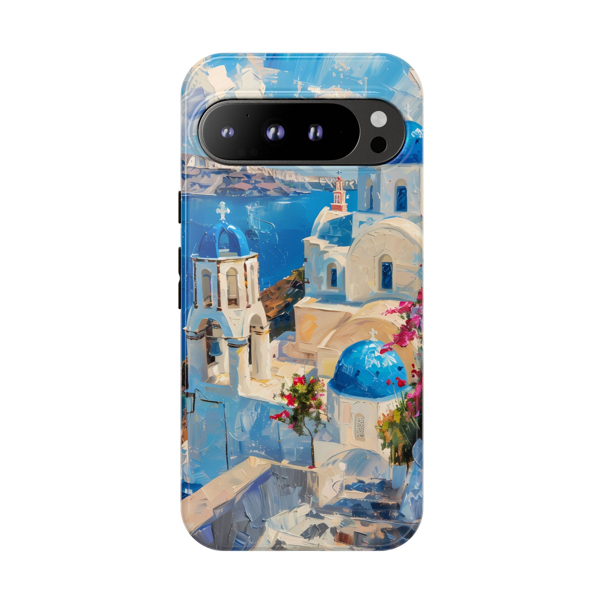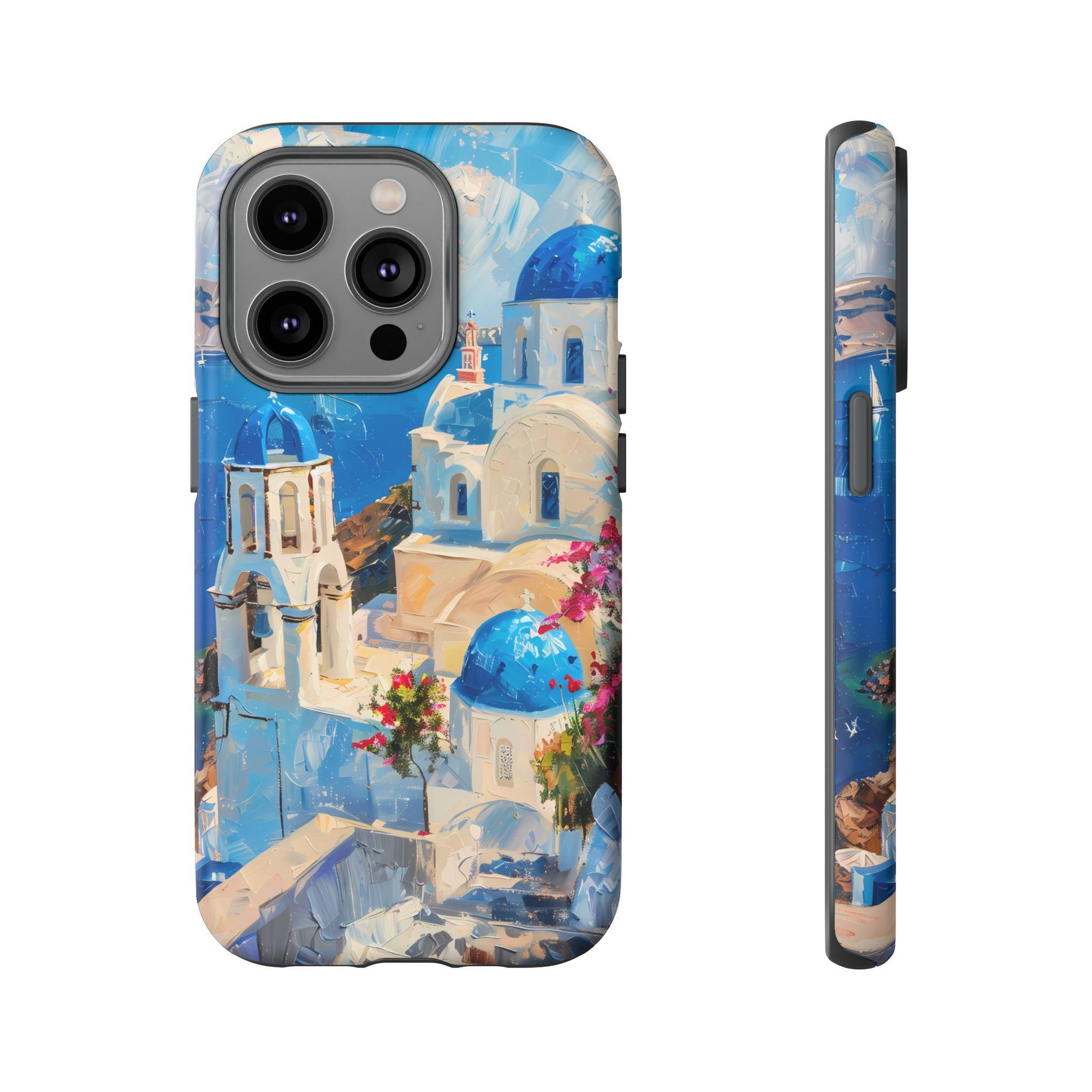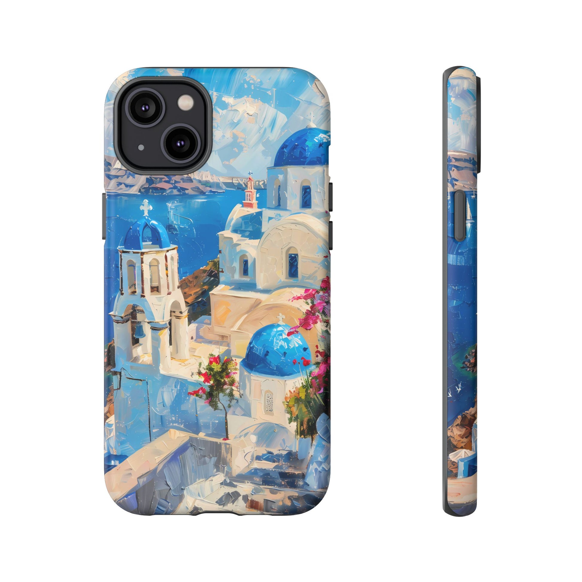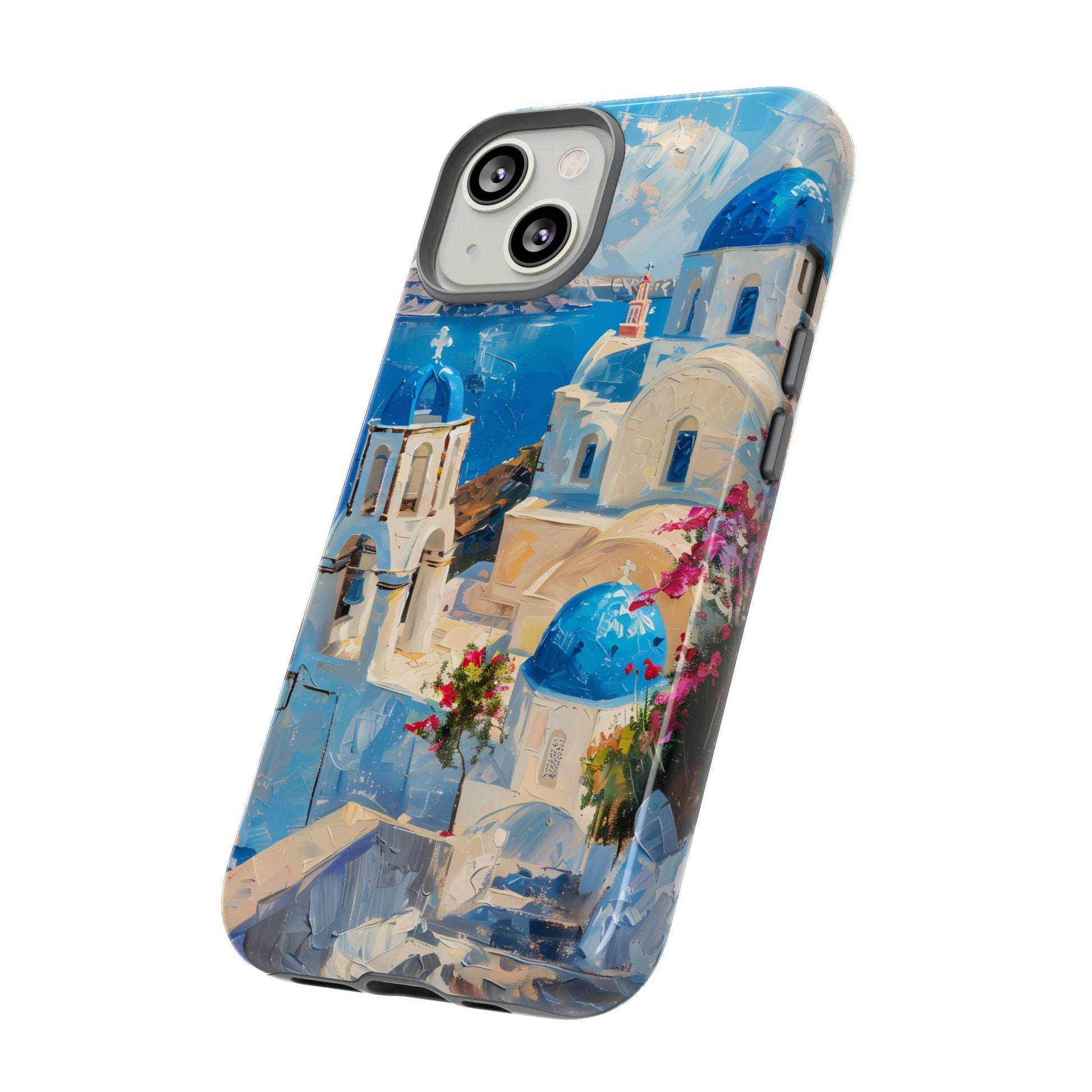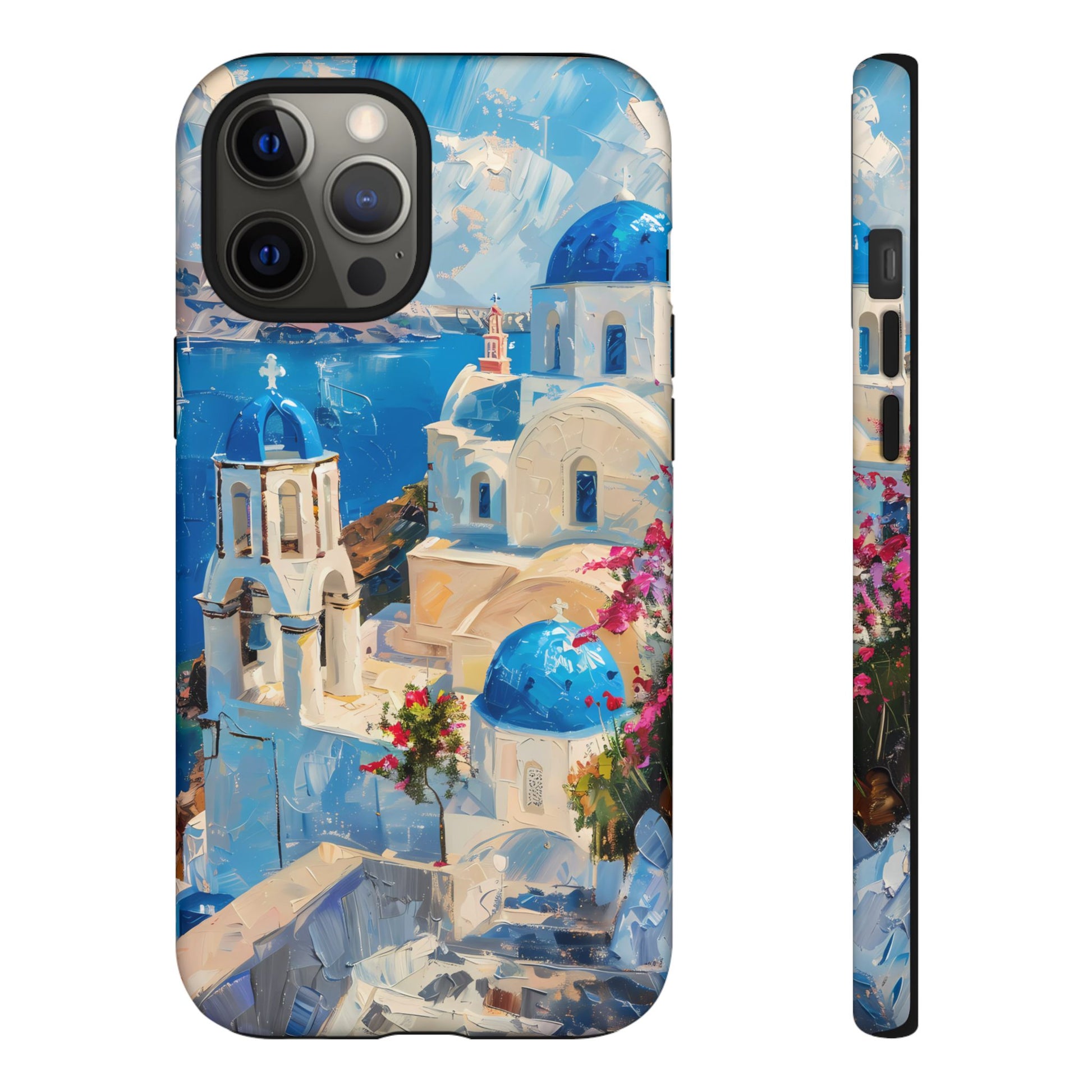 Celebrate the enchanting views of Santorini with this phone cover that features the iconic white-washed buildings and blue domes overlooking the Aegean Sea. The design’s soft pastel tones and serene composition make it a stylish accessory for anyone who loves the elegance of Mediterranean landscapes