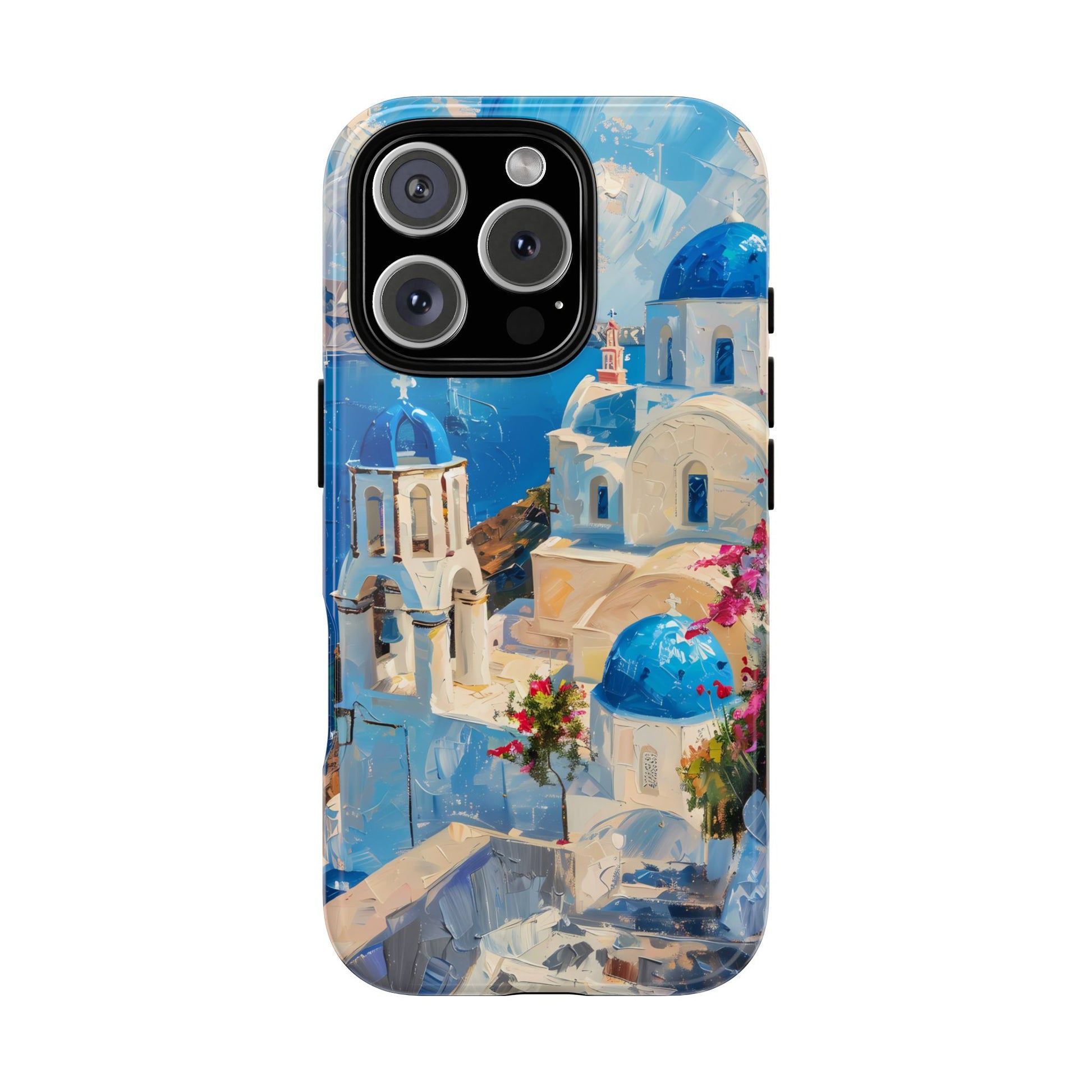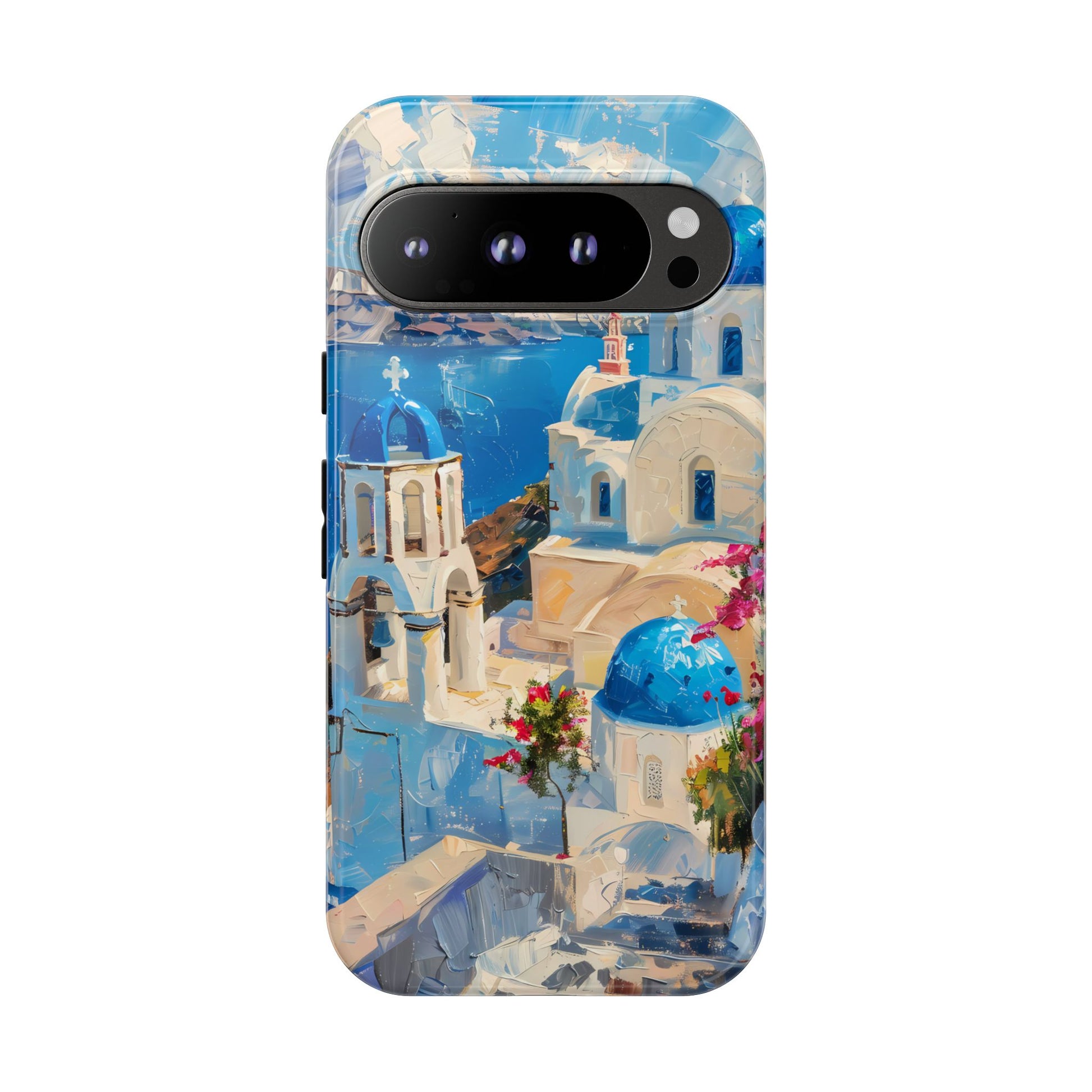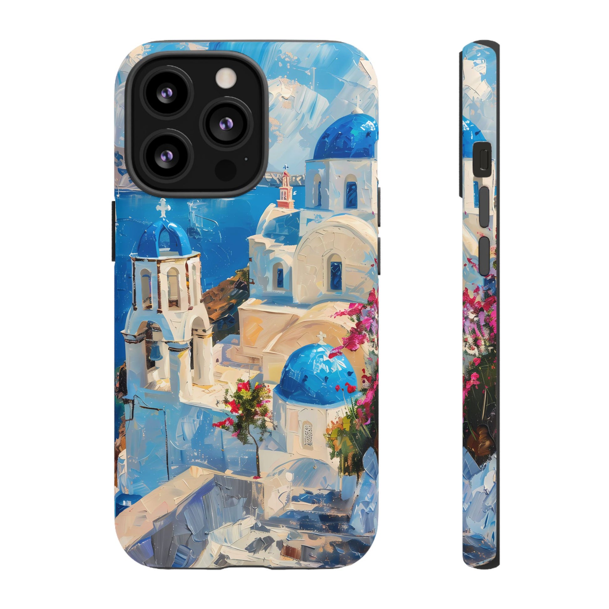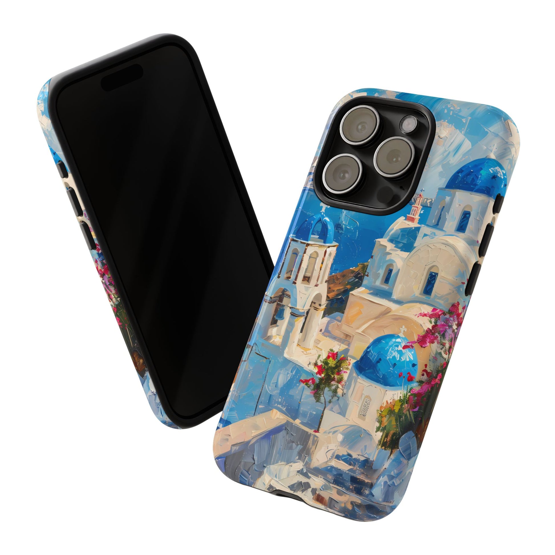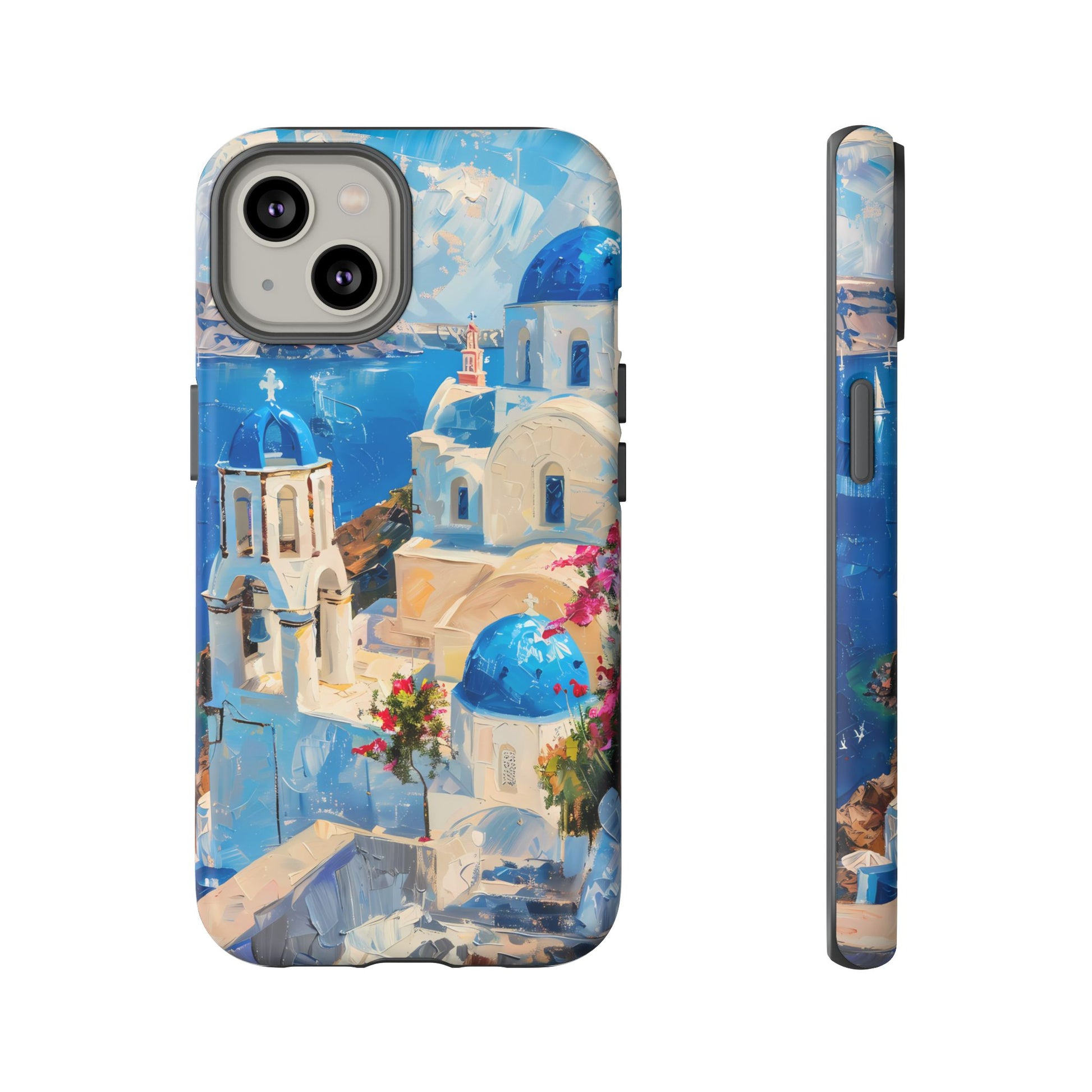 Celebrate the enchanting views of Santorini with this phone cover that features the iconic white-washed buildings and blue domes overlooking the Aegean Sea. The design’s soft pastel tones and serene composition make it a stylish accessory for anyone who loves the elegance of Mediterranean landscapes