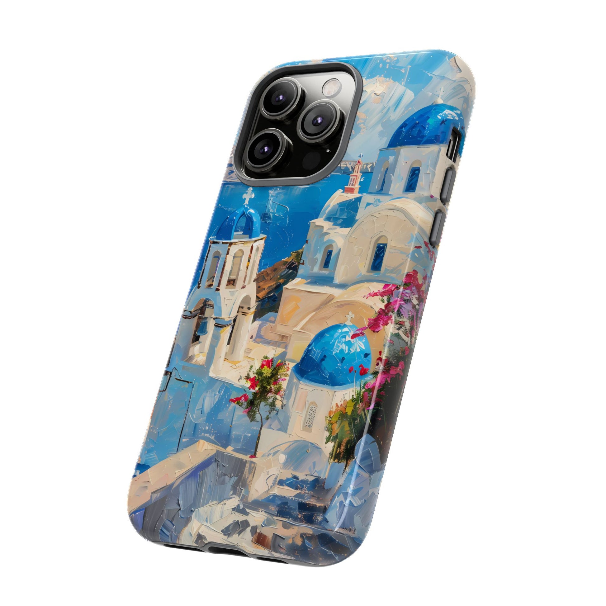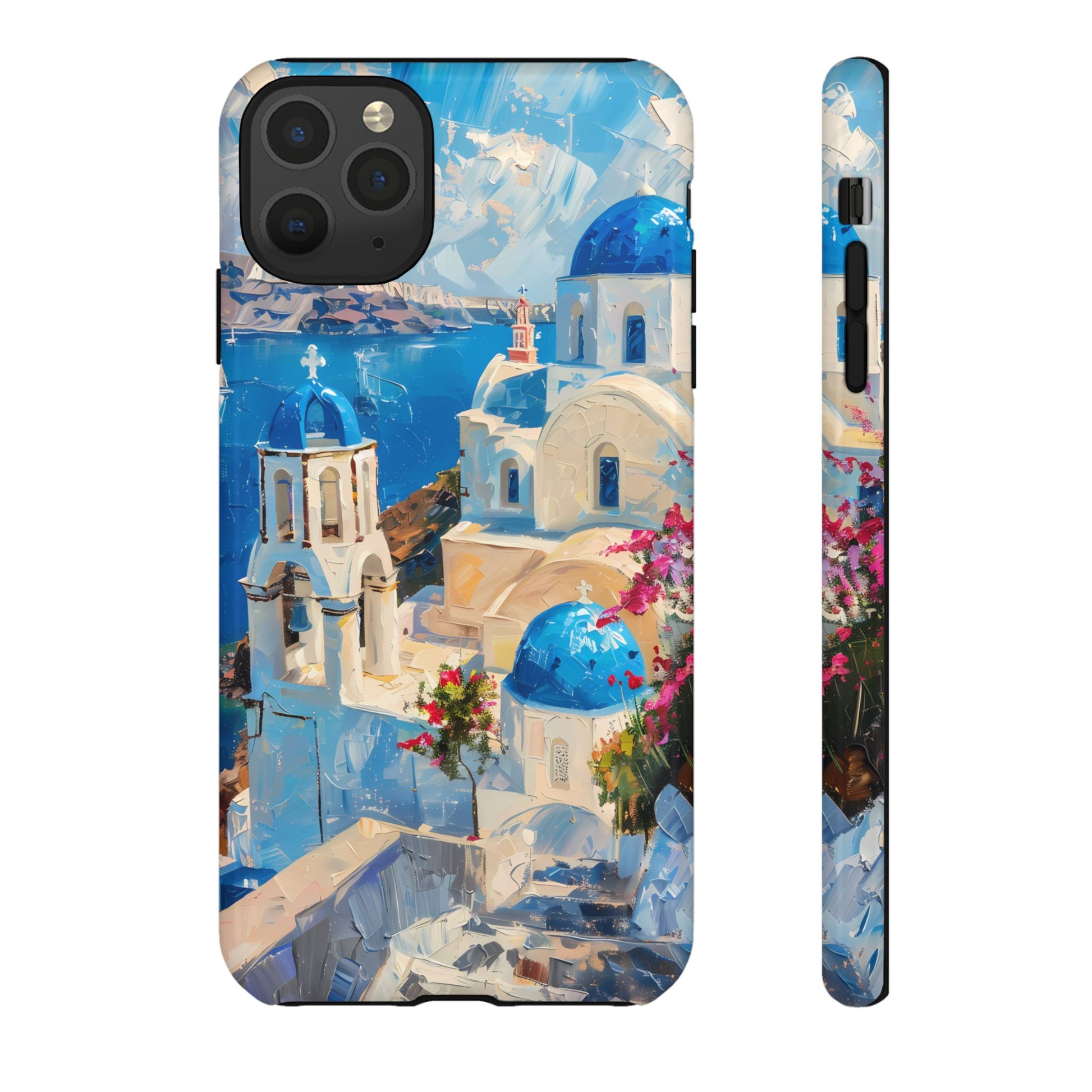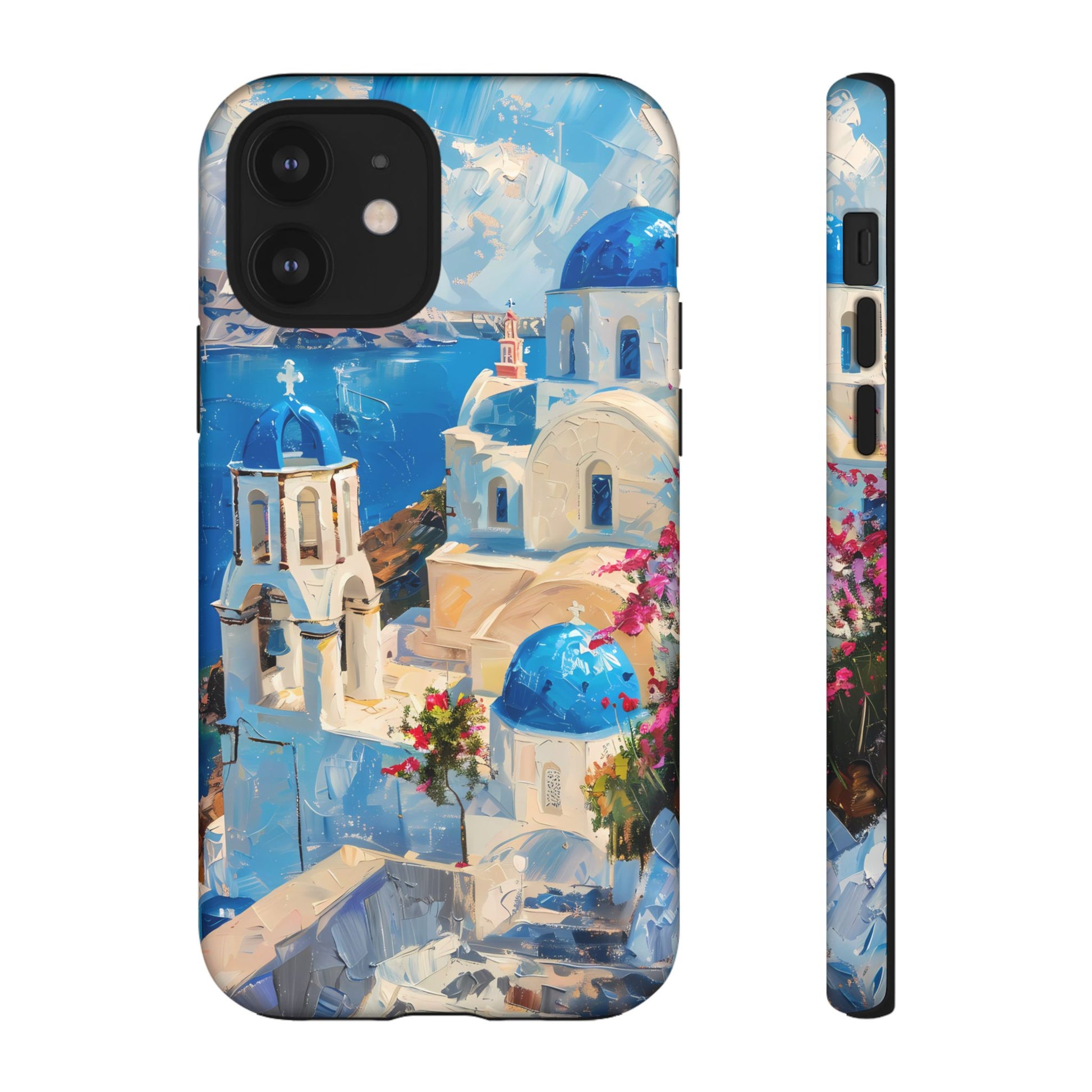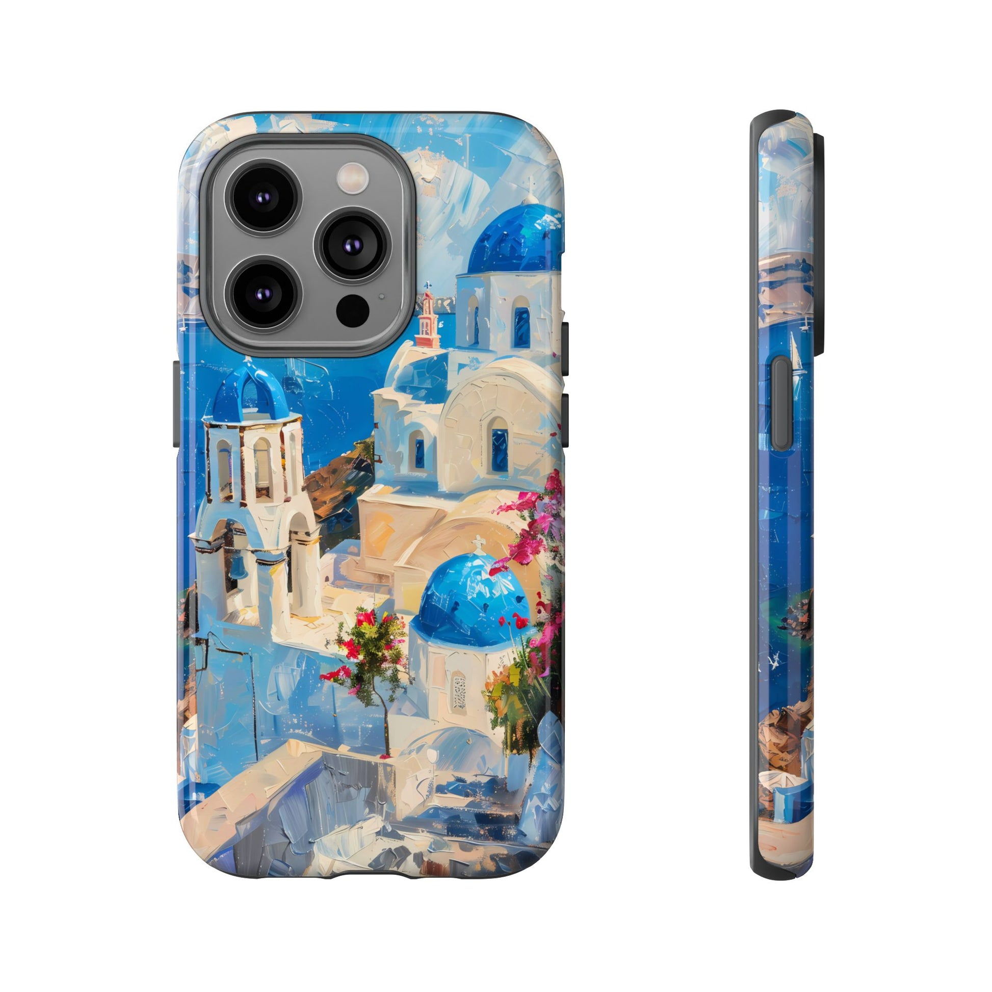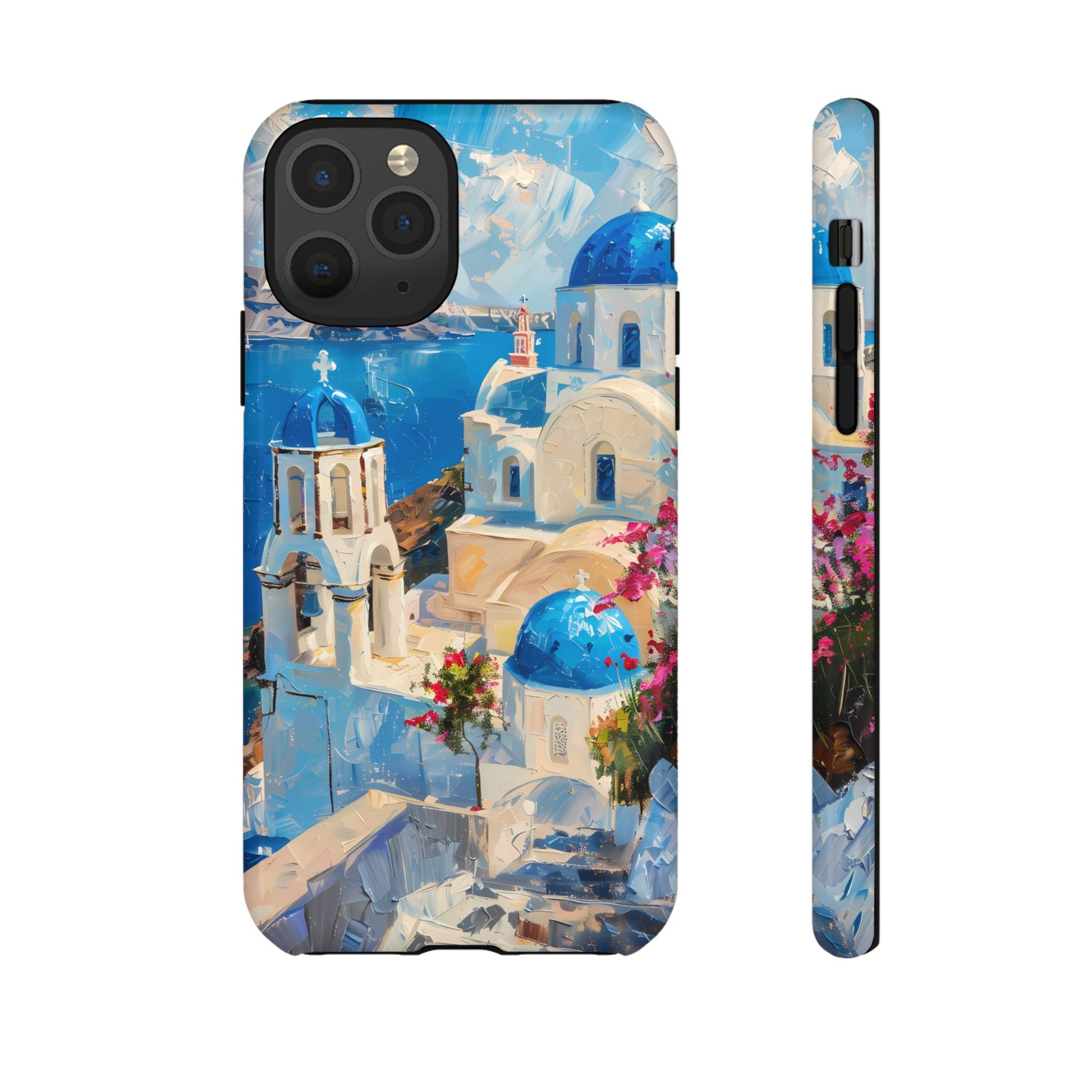 Celebrate the enchanting views of Santorini with this phone cover that features the iconic white-washed buildings and blue domes overlooking the Aegean Sea. The design’s soft pastel tones and serene composition make it a stylish accessory for anyone who loves the elegance of Mediterranean landscapes