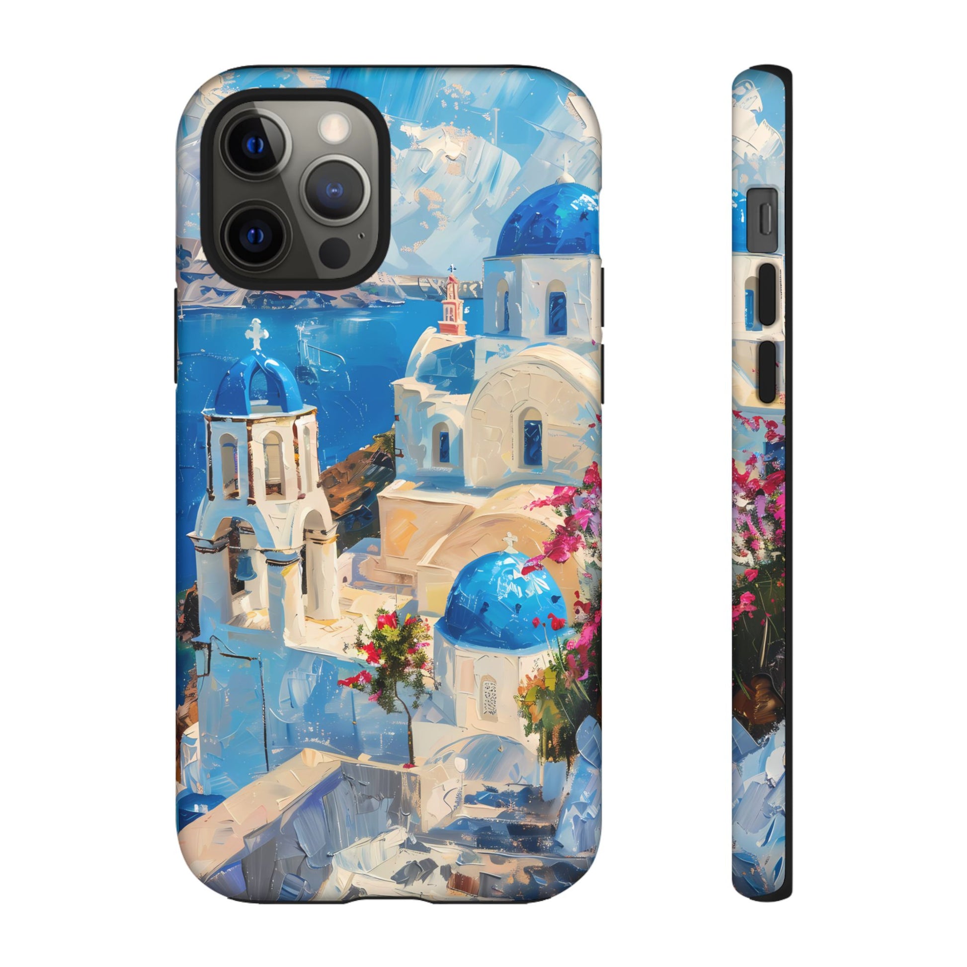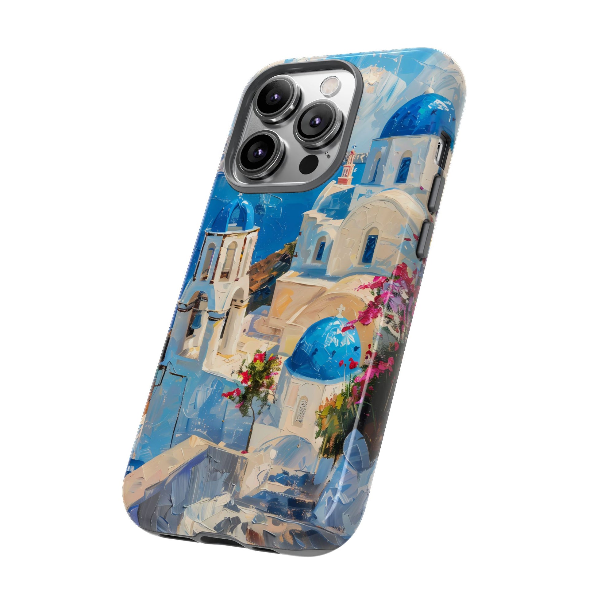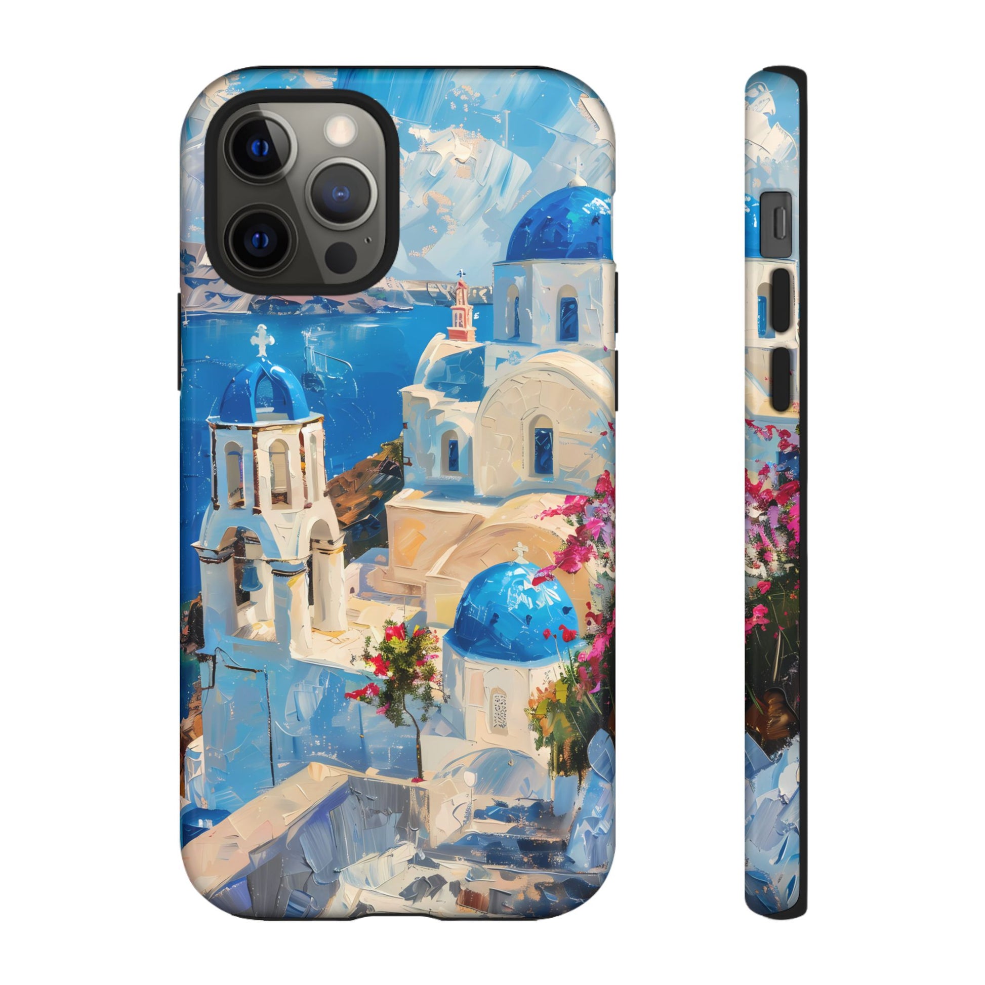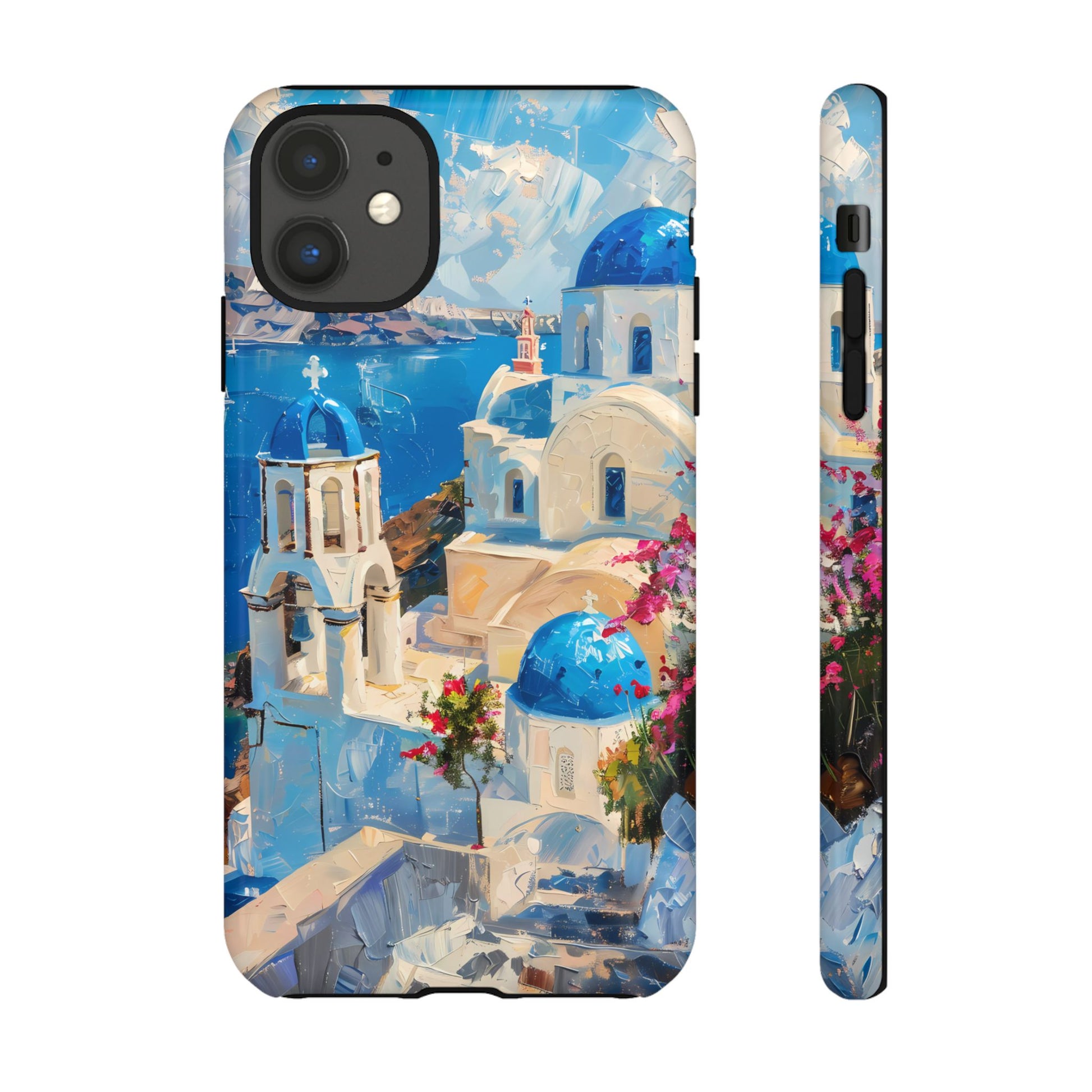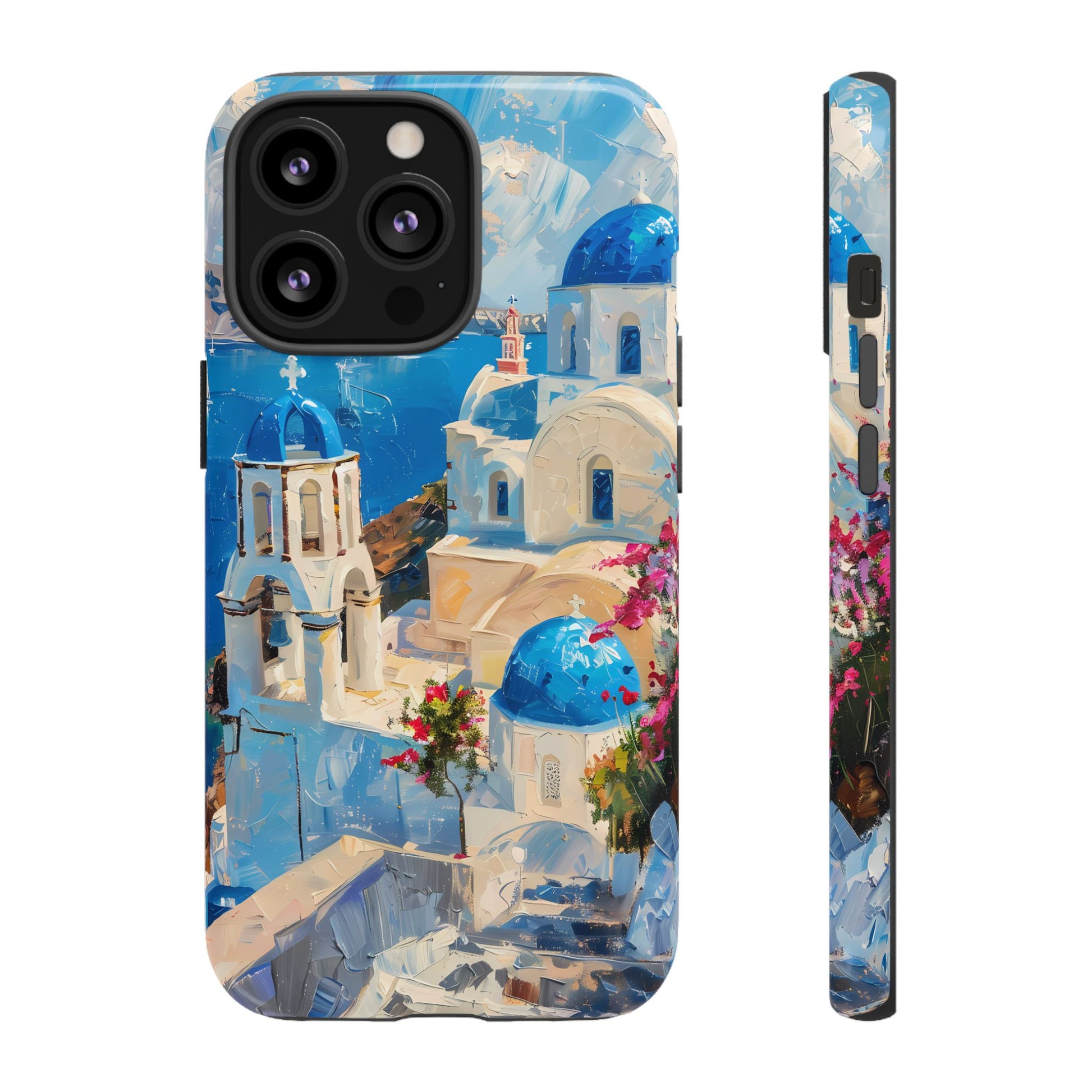 Celebrate the enchanting views of Santorini with this phone cover that features the iconic white-washed buildings and blue domes overlooking the Aegean Sea. The design’s soft pastel tones and serene composition make it a stylish accessory for anyone who loves the elegance of Mediterranean landscapes
