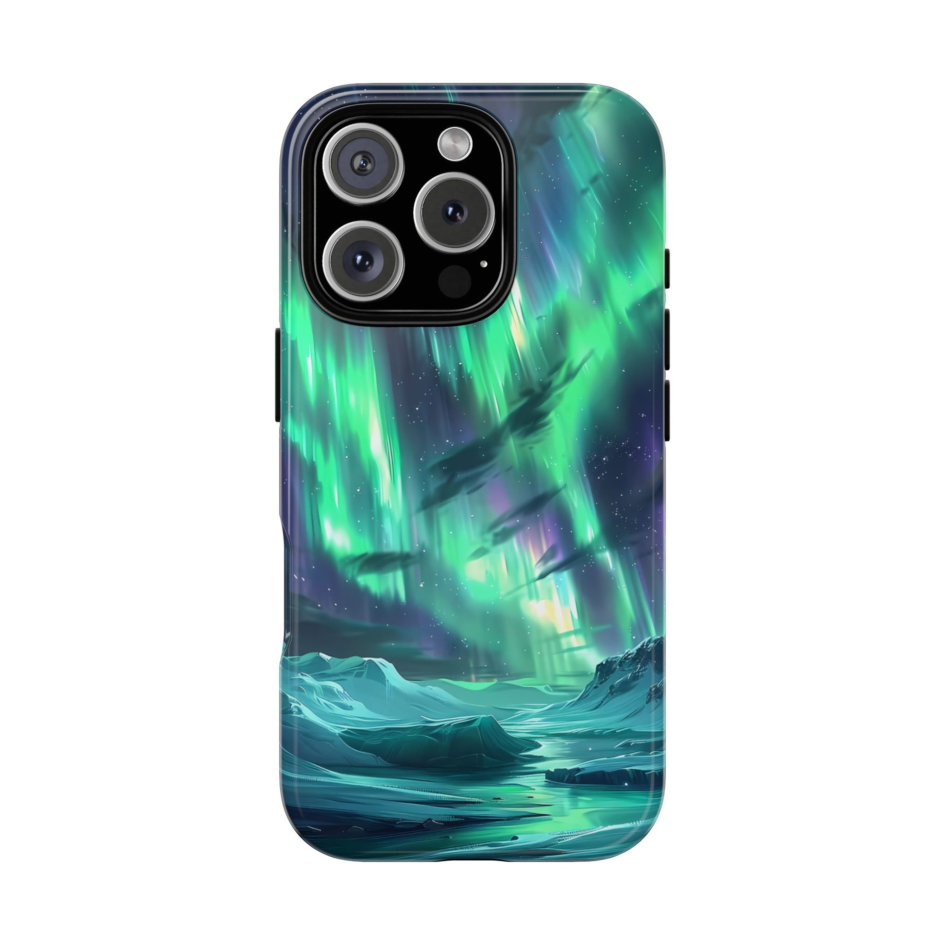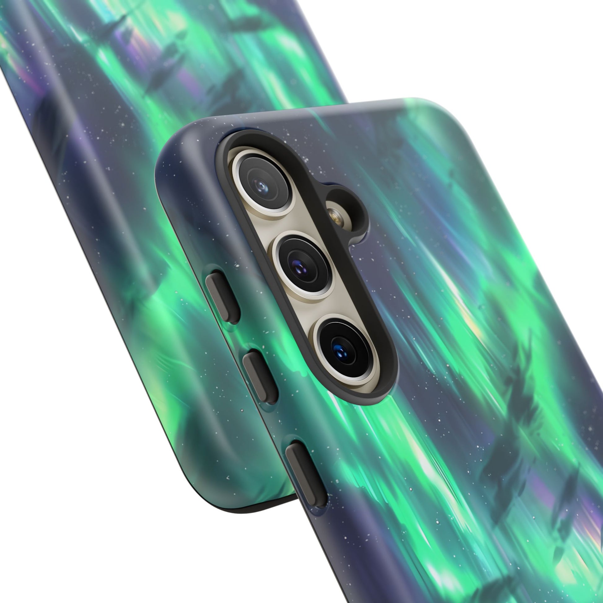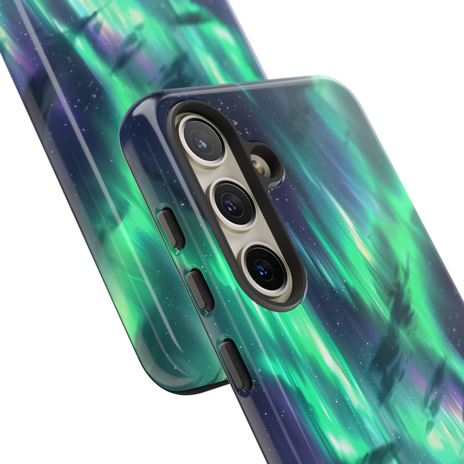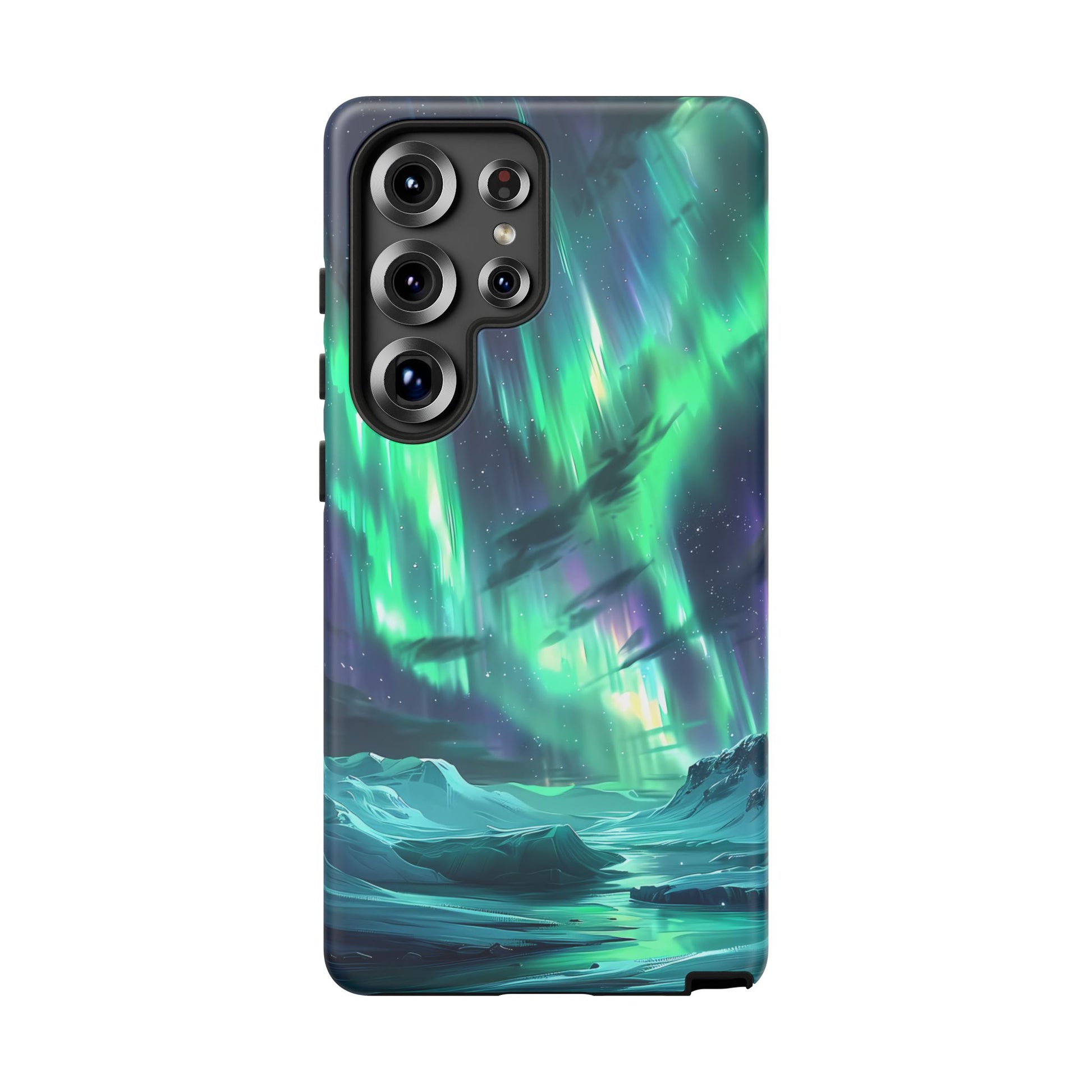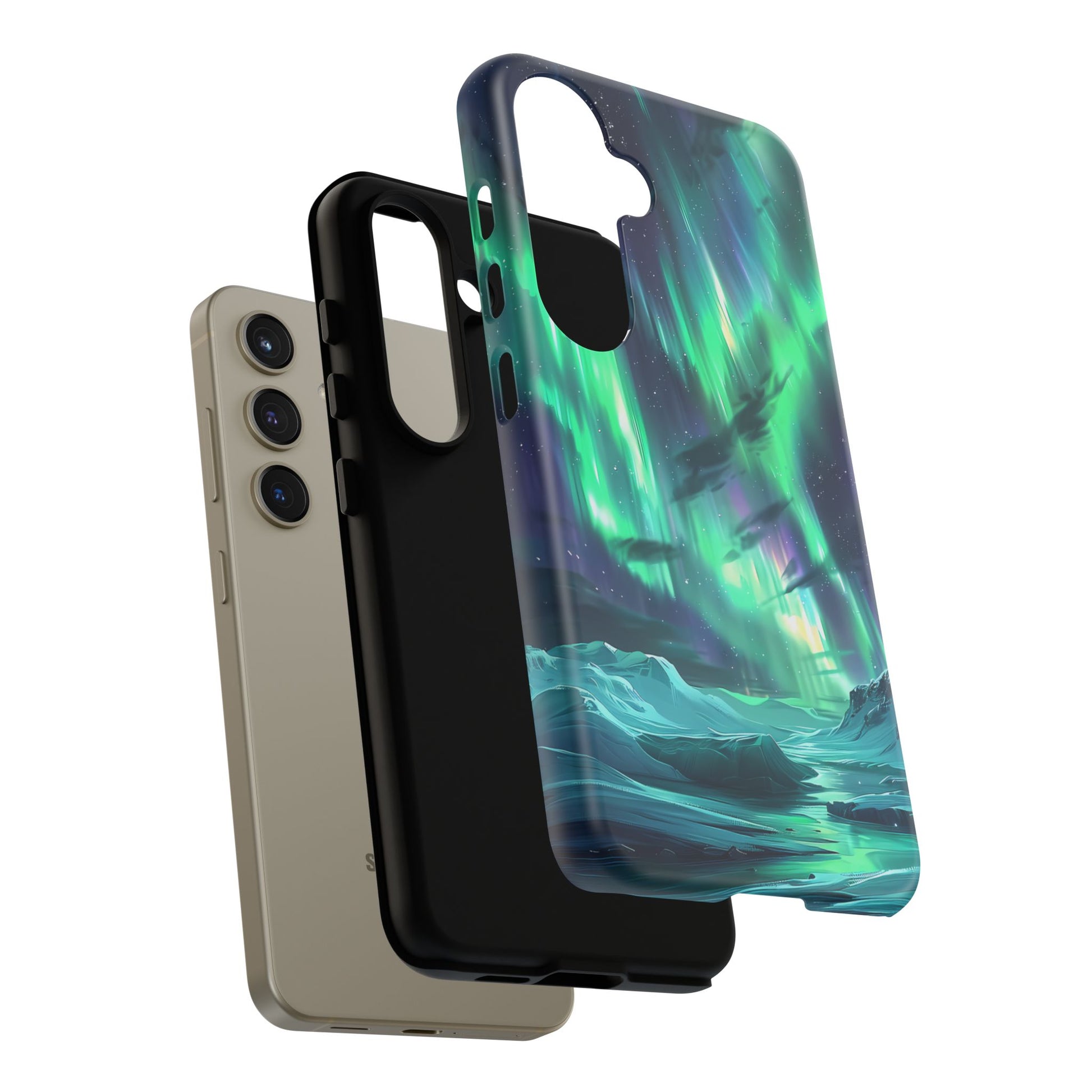 Delight in the wonder of the Northern Lights with this enchanting cell phone cover. Featuring a snowy Icelandic landscape bathed in the vibrant hues of the aurora, this design combines glowing greens and purples for a truly mesmerizing visual experience.