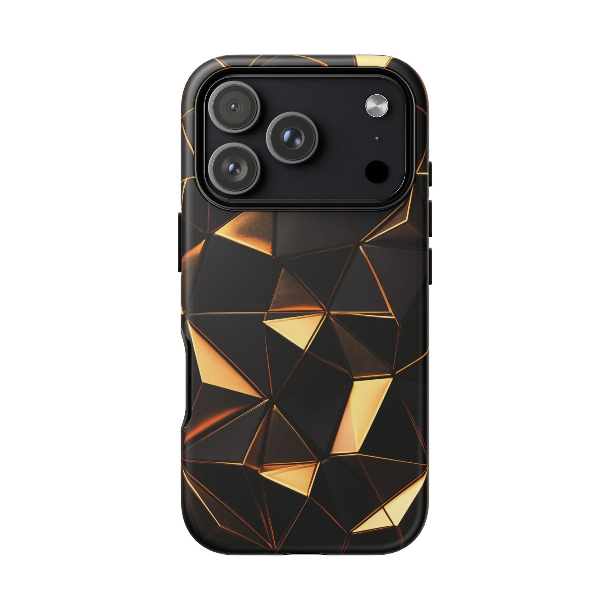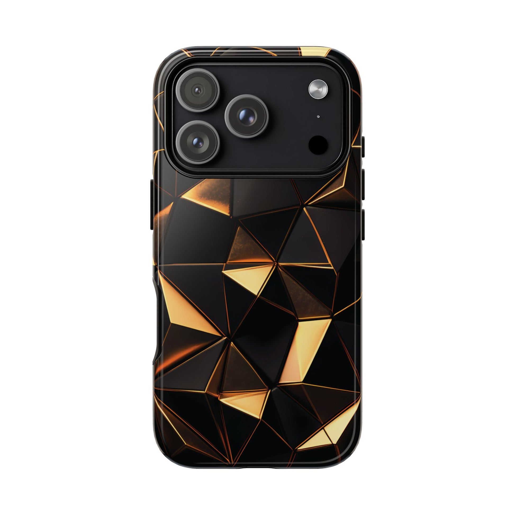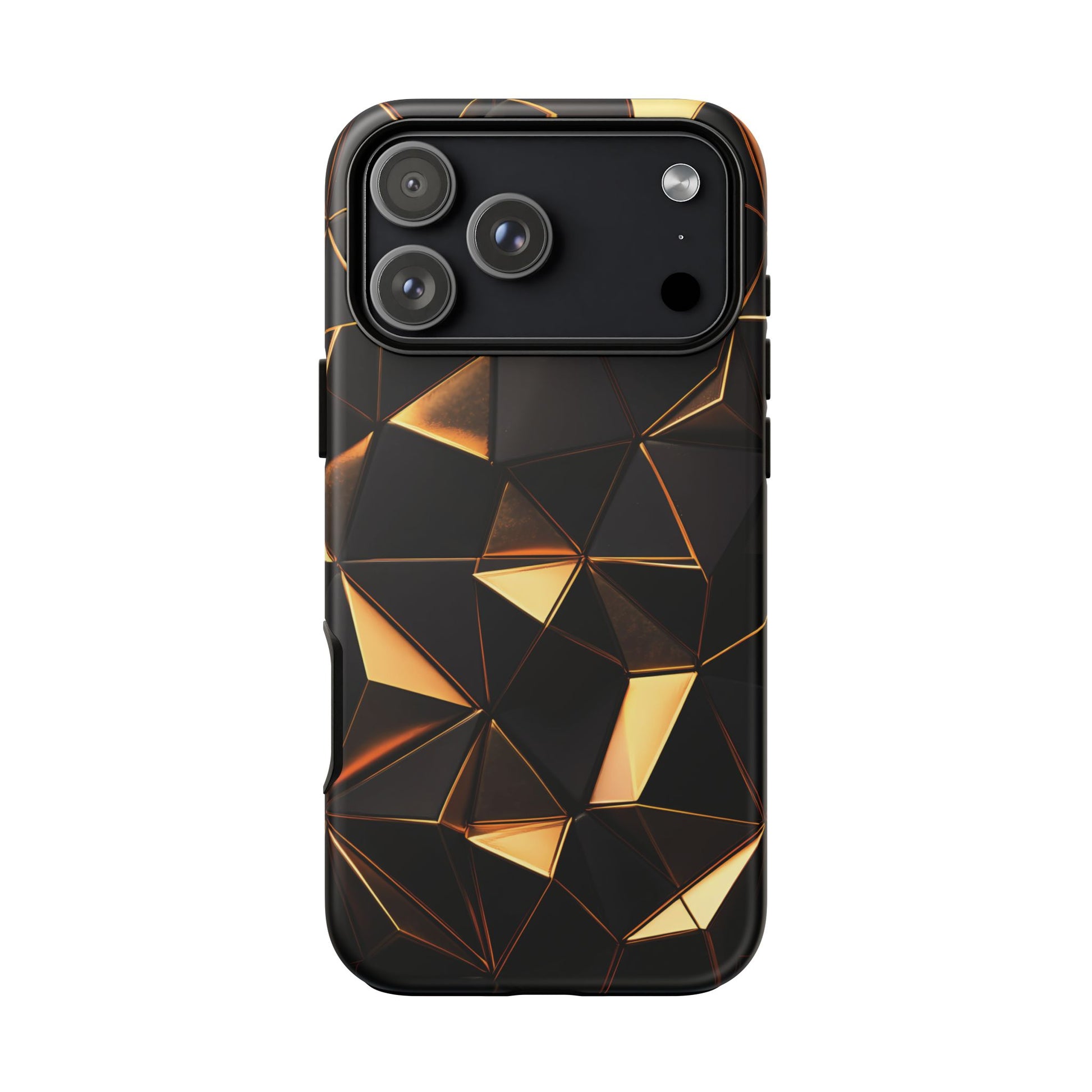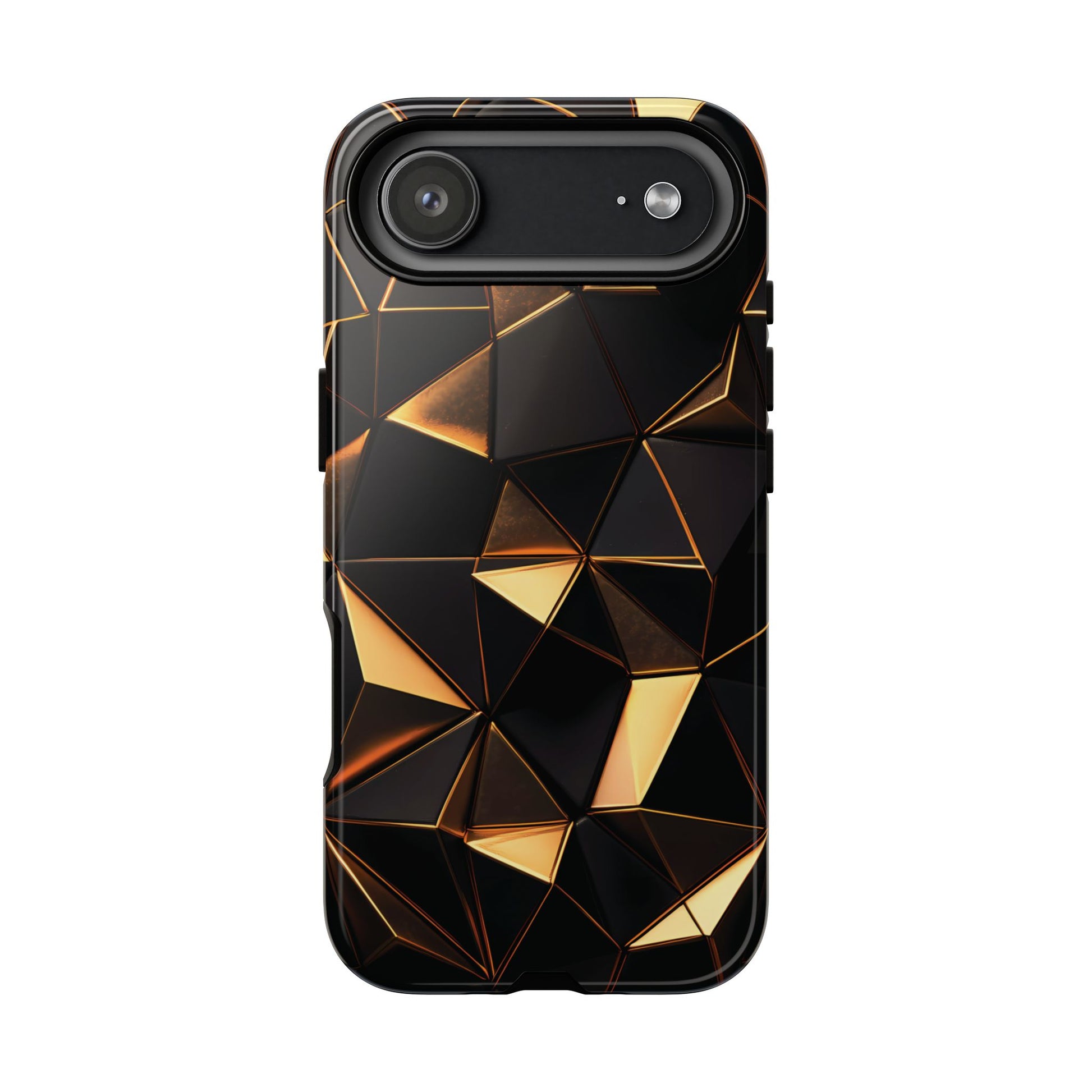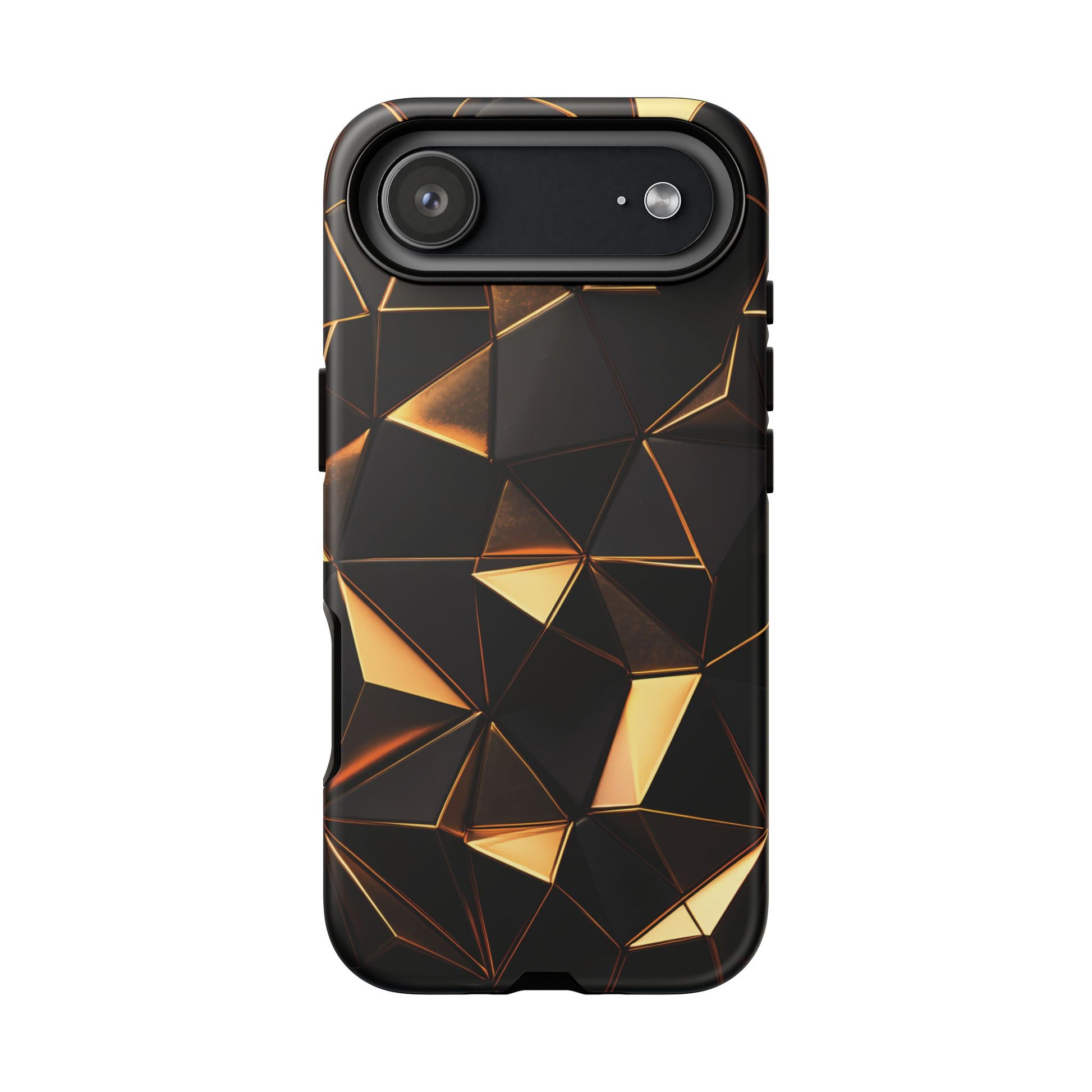 Elevate your style with this luxurious gold and black geometric pattern, designed for those who appreciate sophisticated elegance. With high-detail photorealistic textures and soft lighting, this case exudes modern opulence and timeless class.