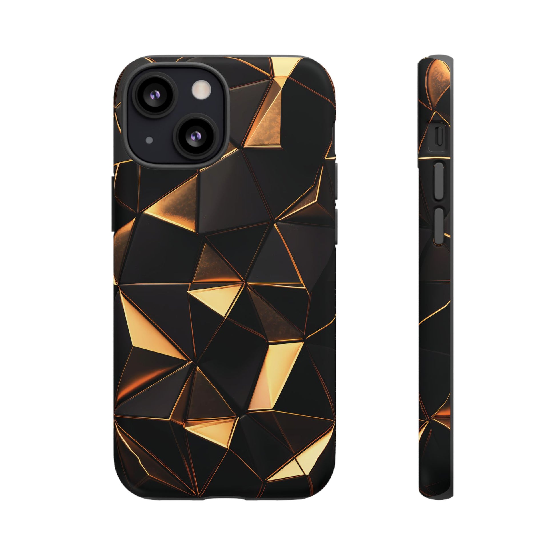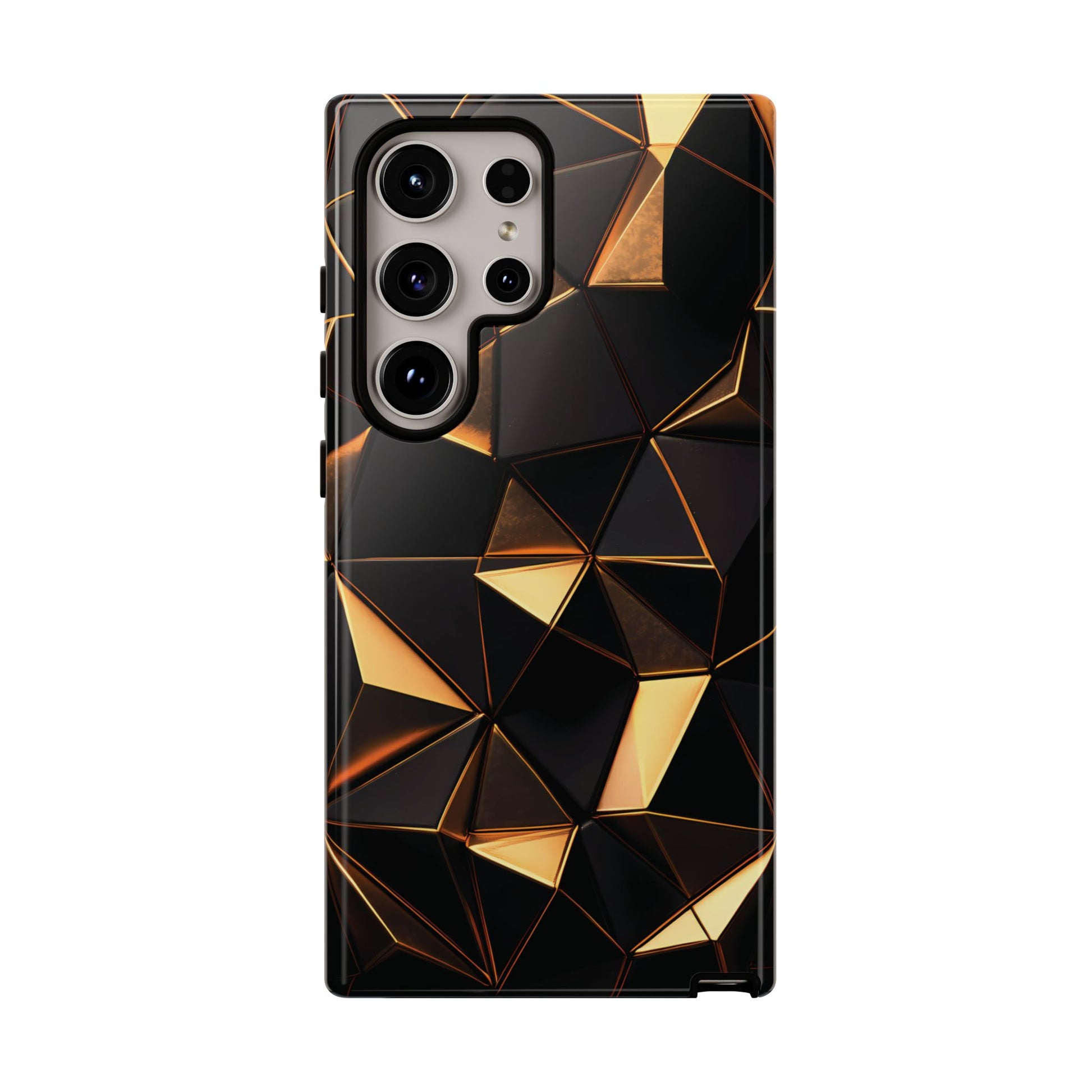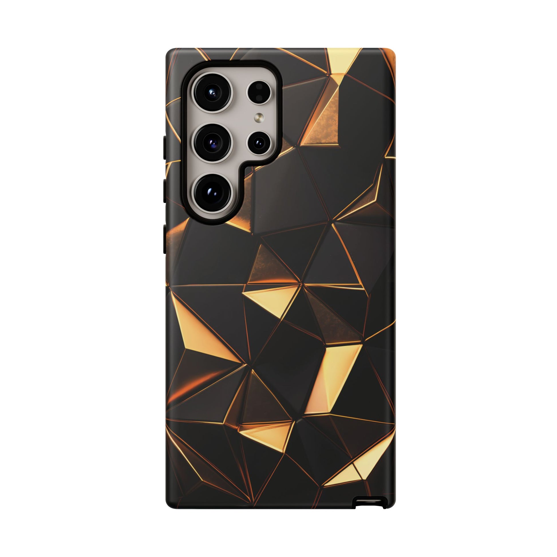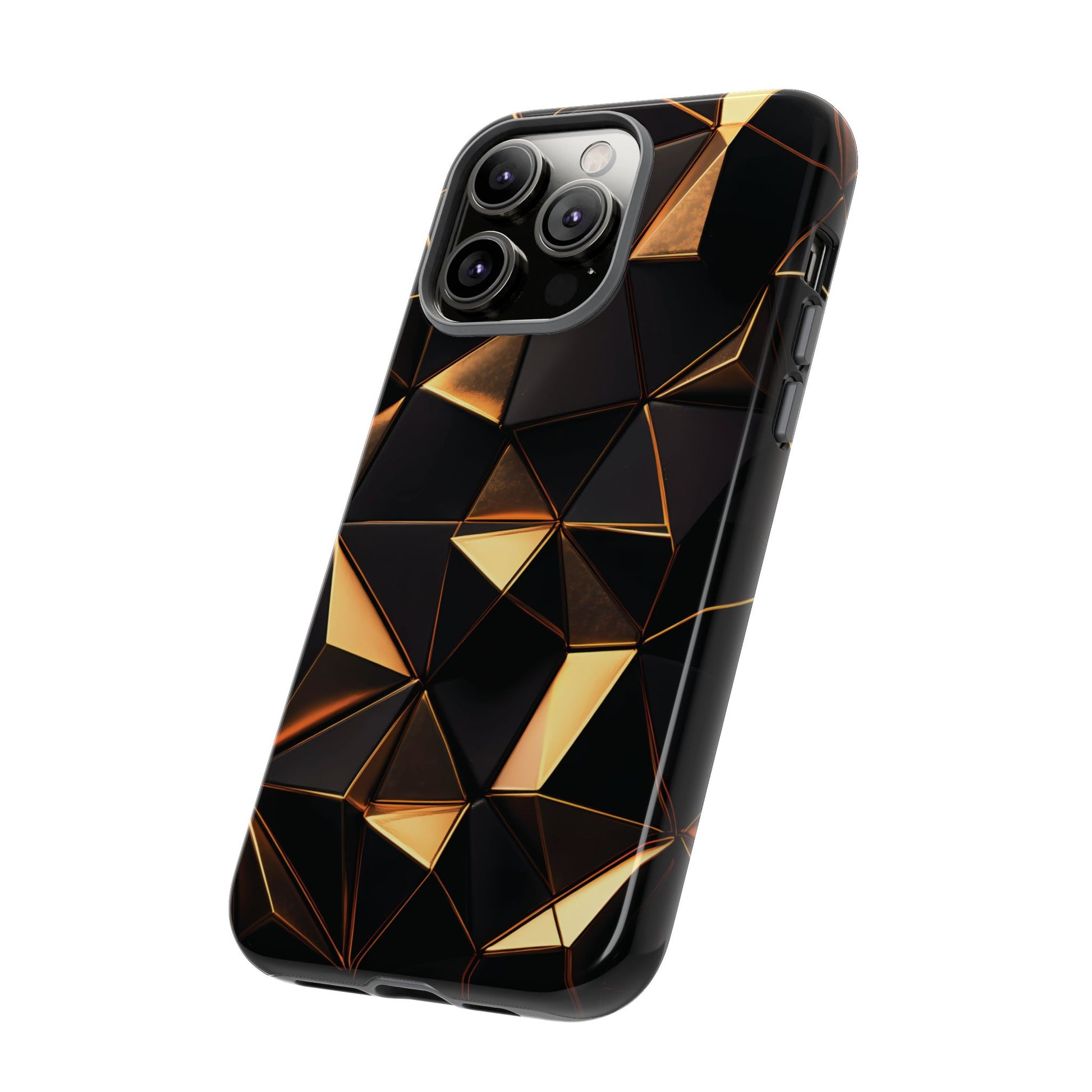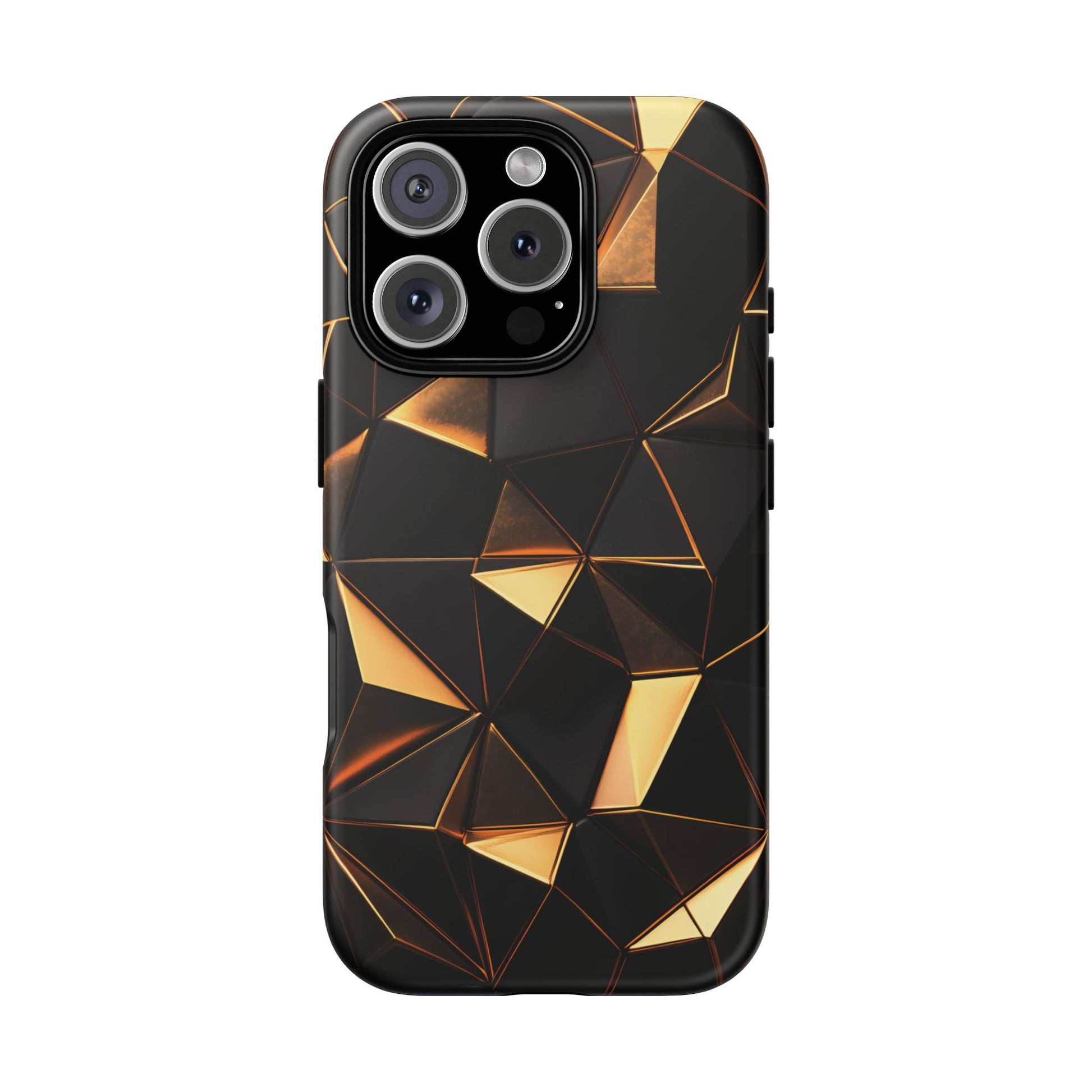 Elevate your style with this luxurious gold and black geometric pattern, designed for those who appreciate sophisticated elegance. With high-detail photorealistic textures and soft lighting, this case exudes modern opulence and timeless class.
