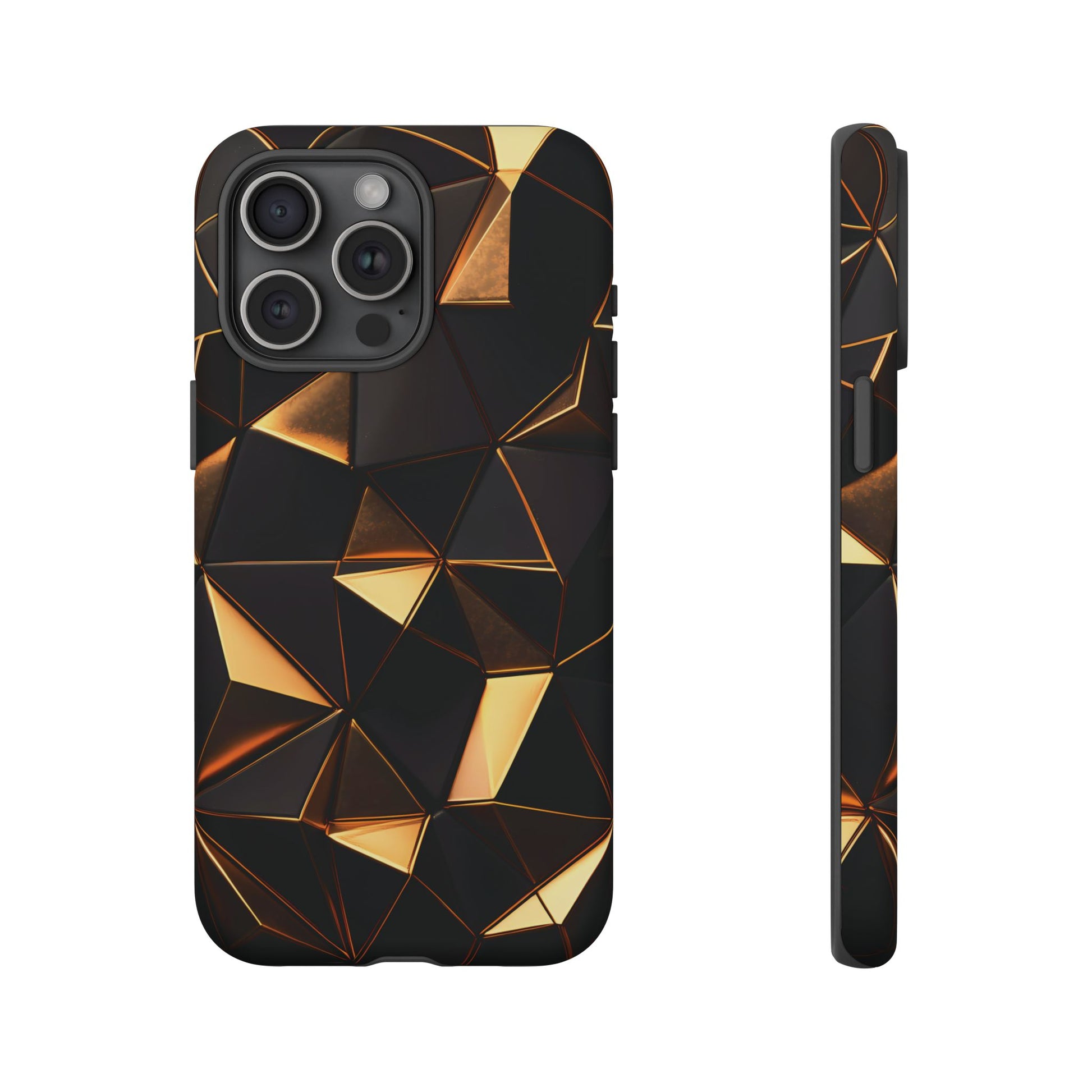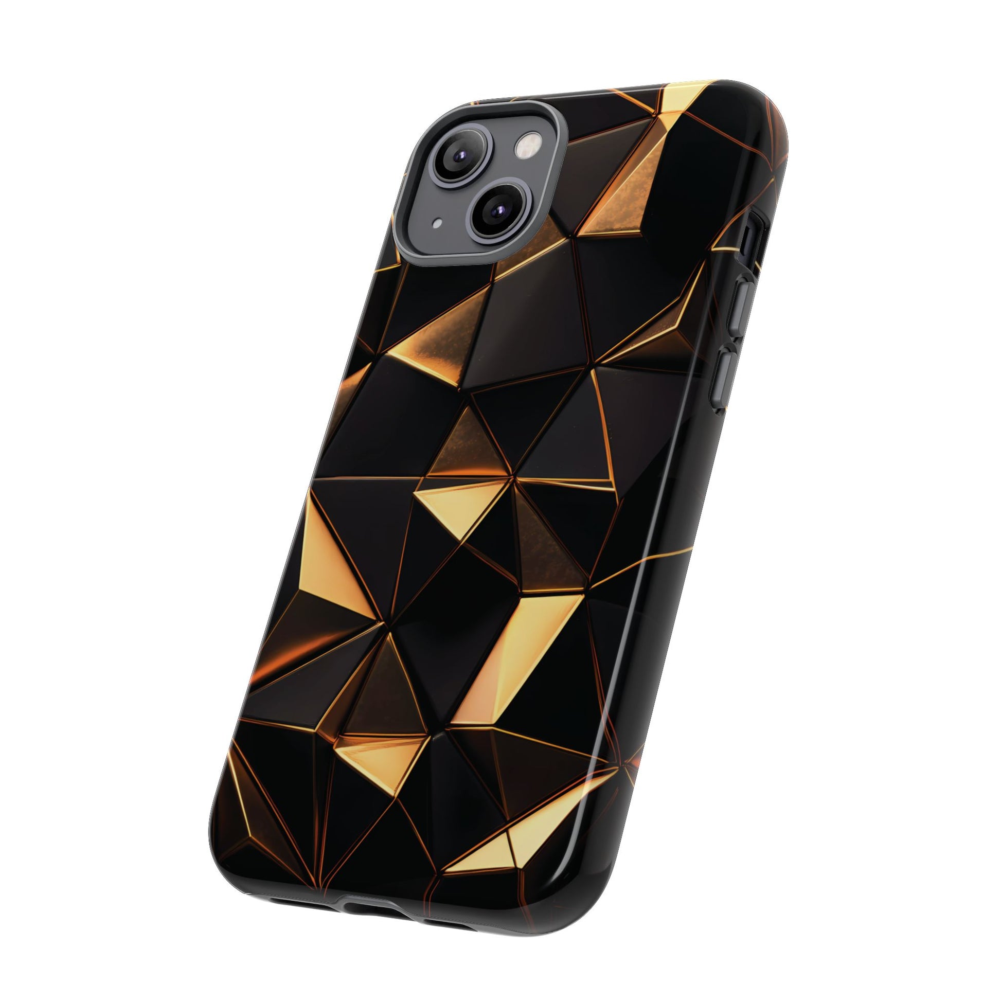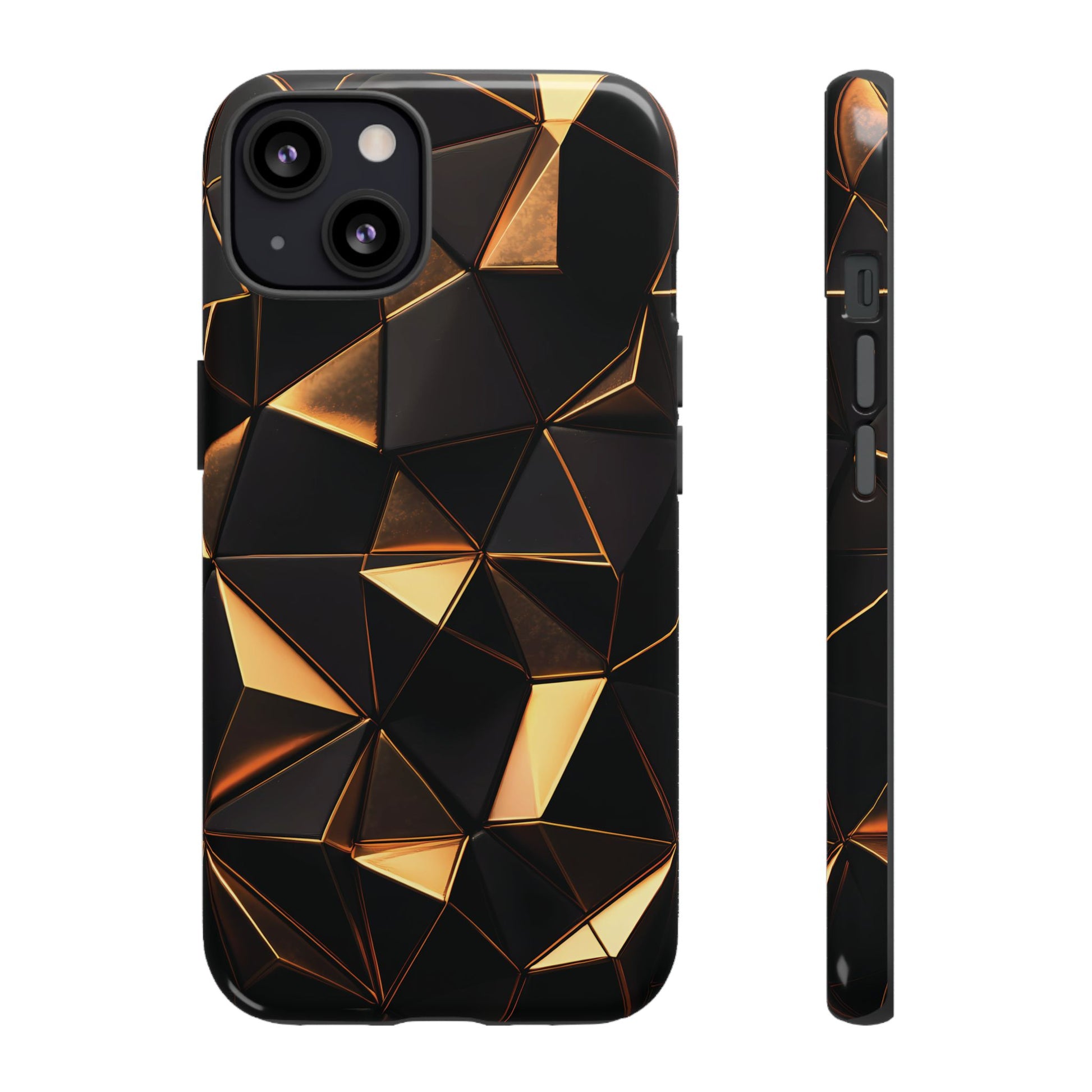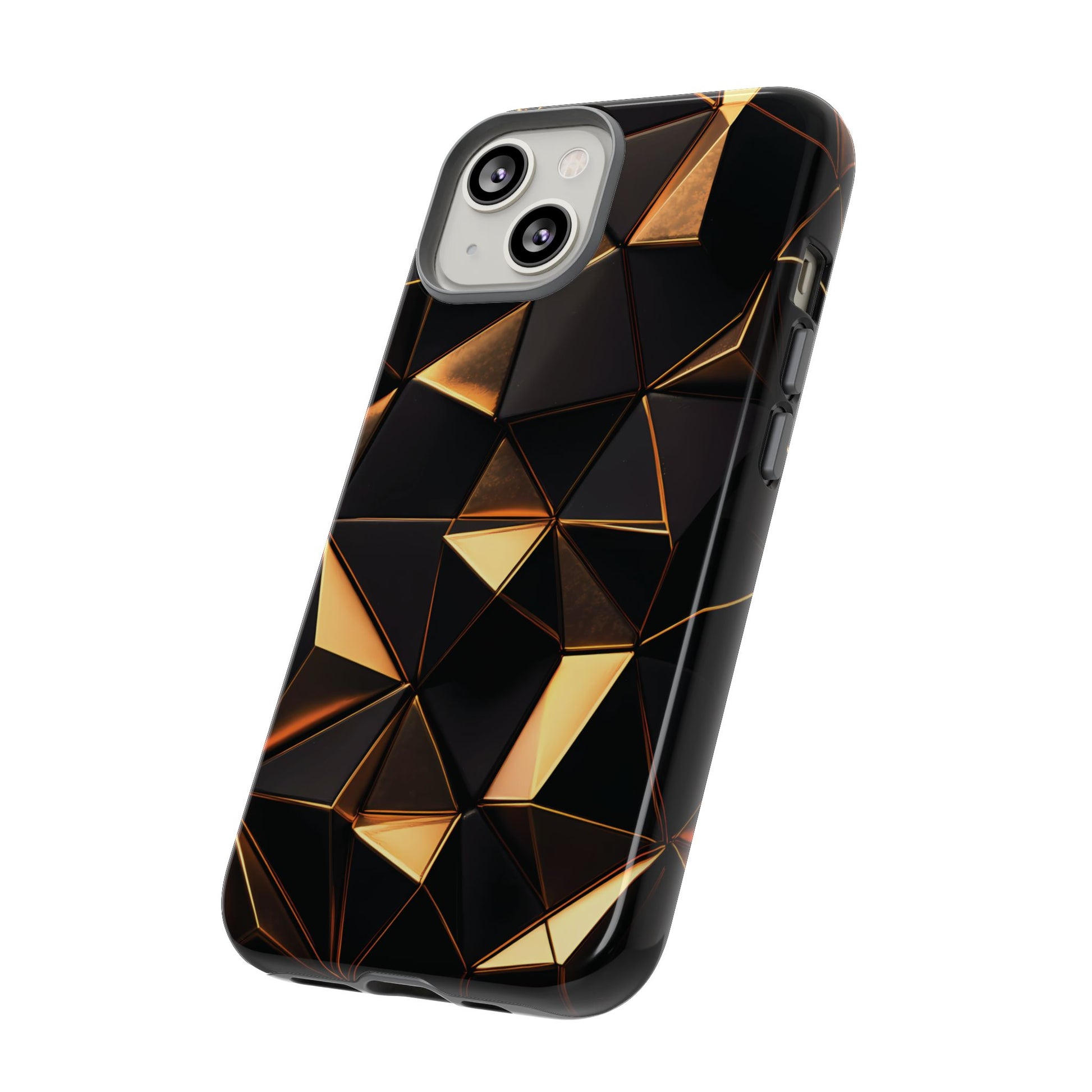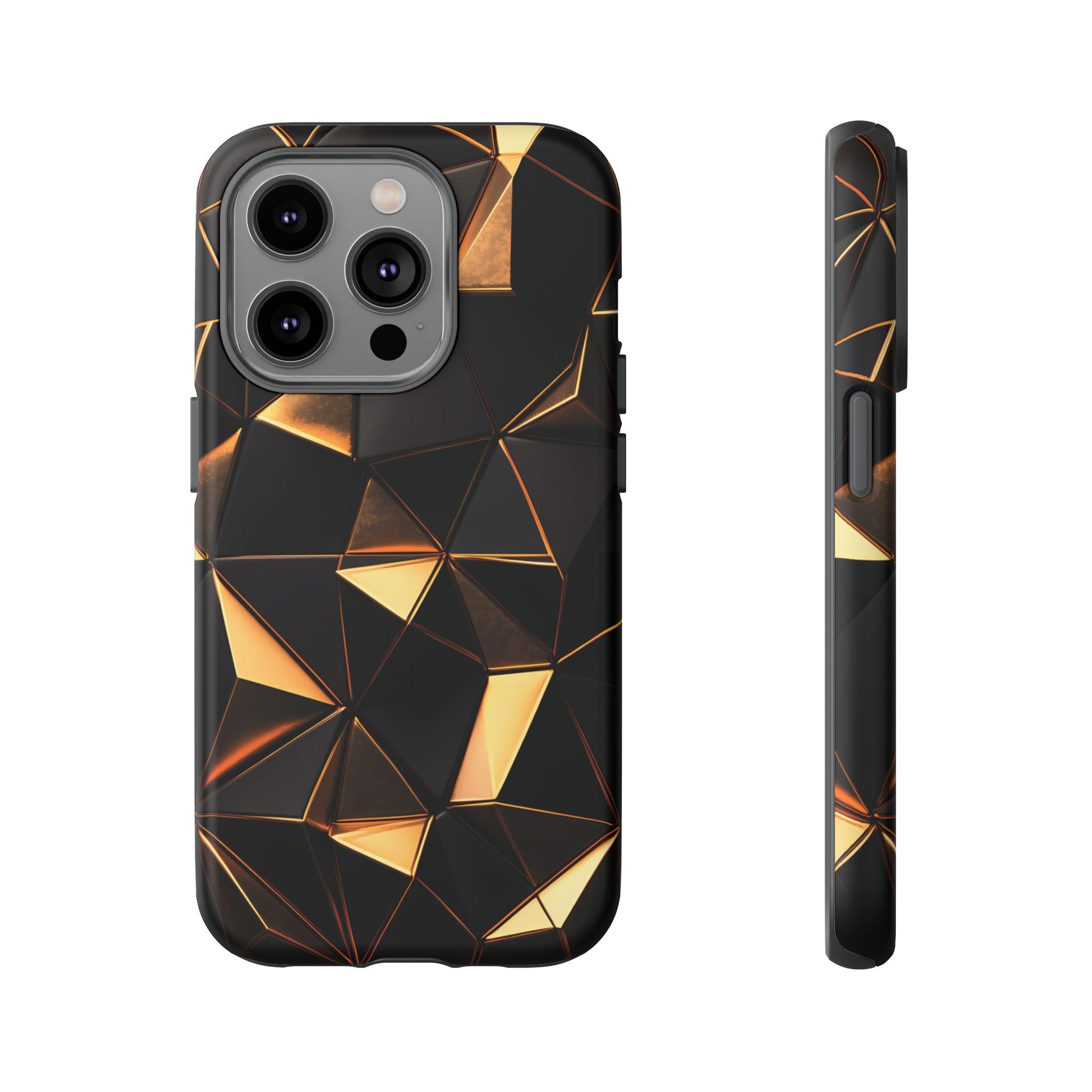 Elevate your style with this luxurious gold and black geometric pattern, designed for those who appreciate sophisticated elegance. With high-detail photorealistic textures and soft lighting, this case exudes modern opulence and timeless class.
