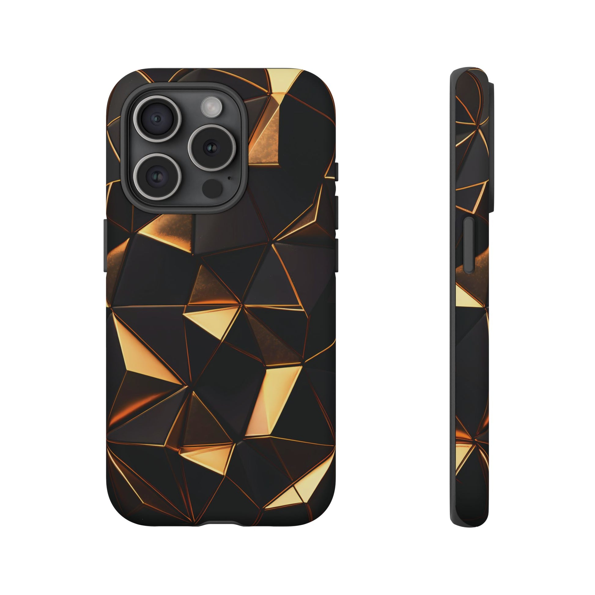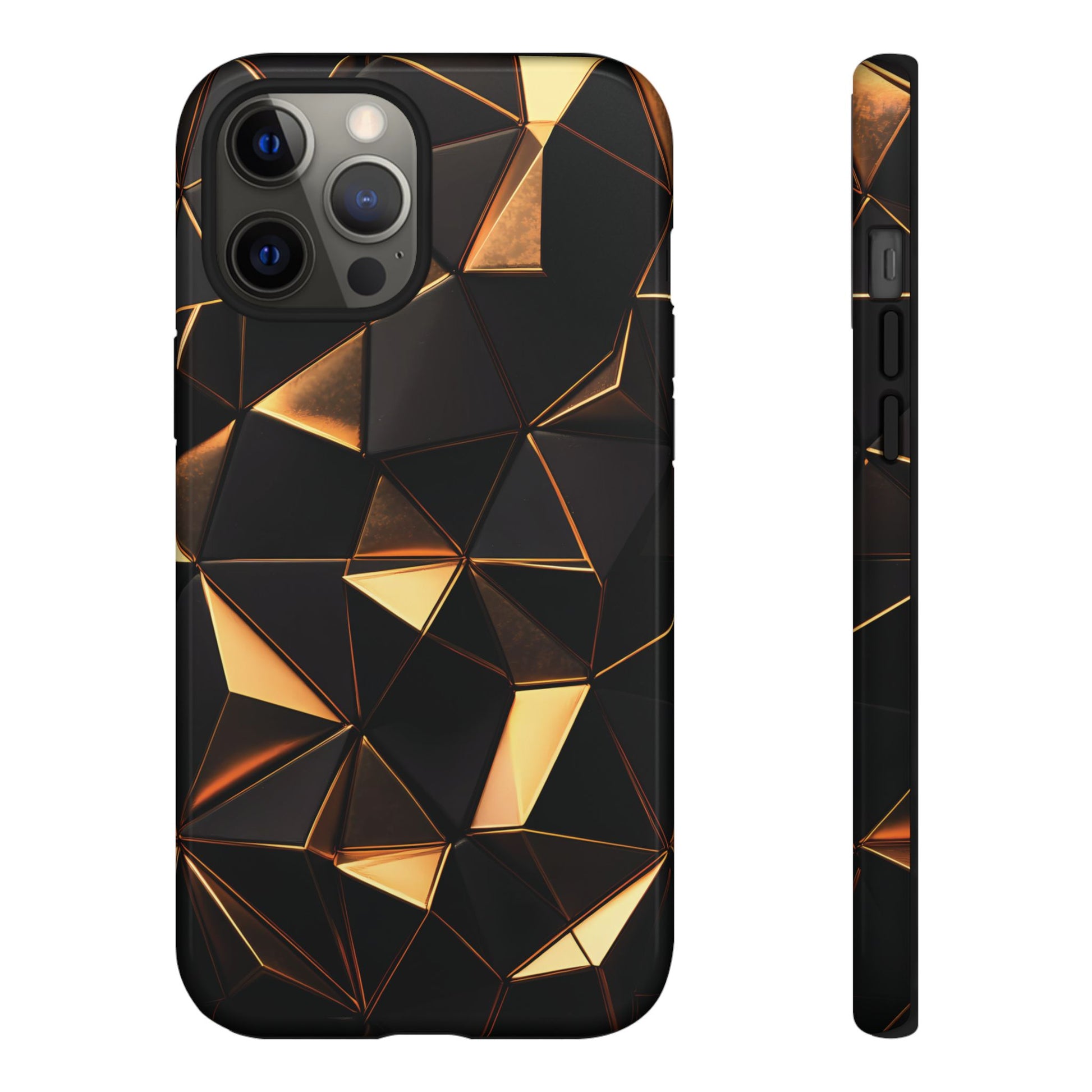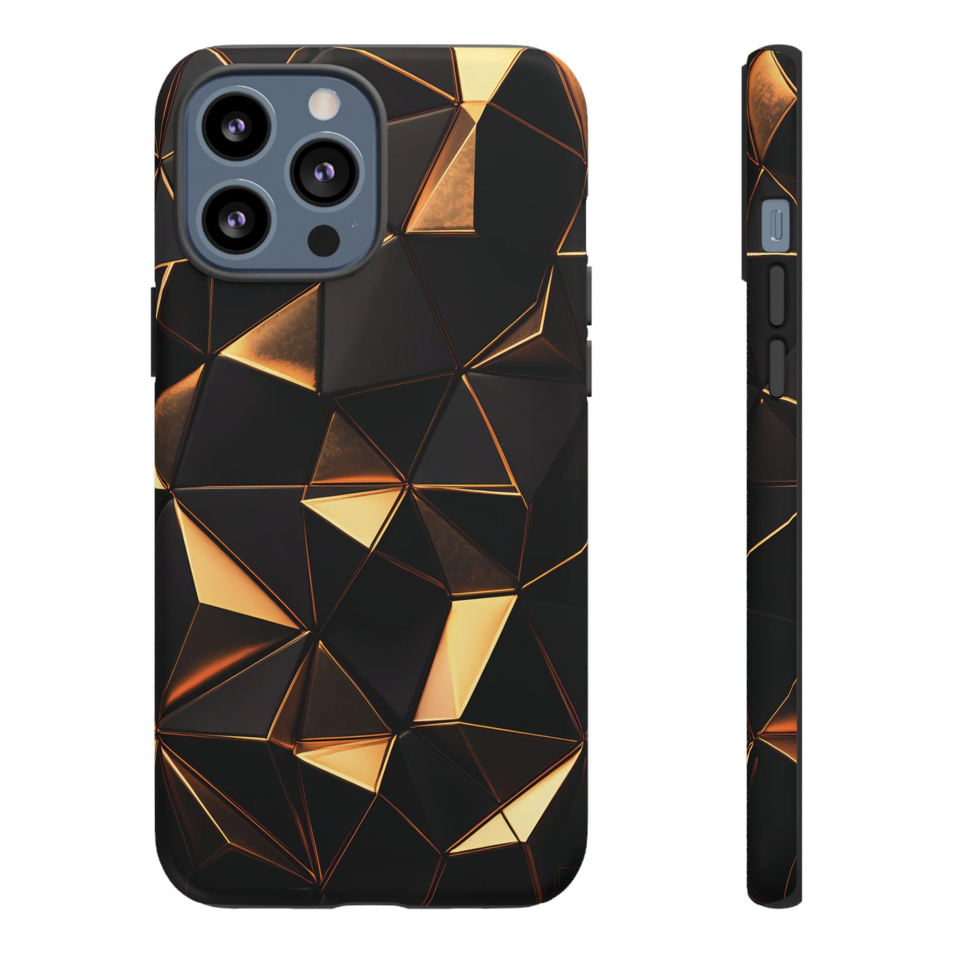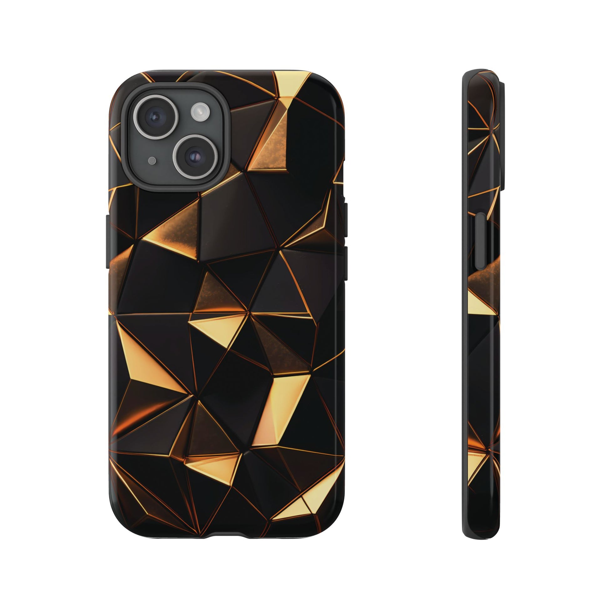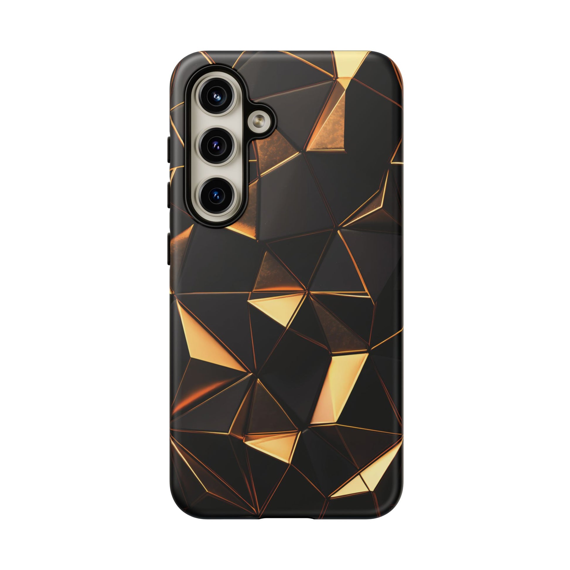 Elevate your style with this luxurious gold and black geometric pattern, designed for those who appreciate sophisticated elegance. With high-detail photorealistic textures and soft lighting, this case exudes modern opulence and timeless class.