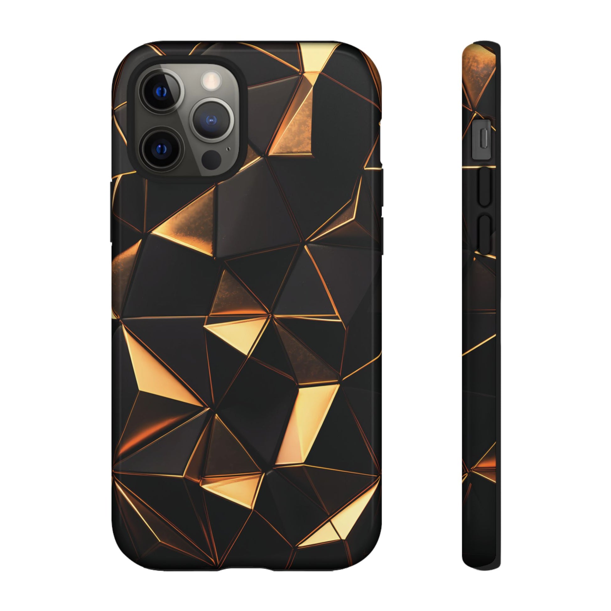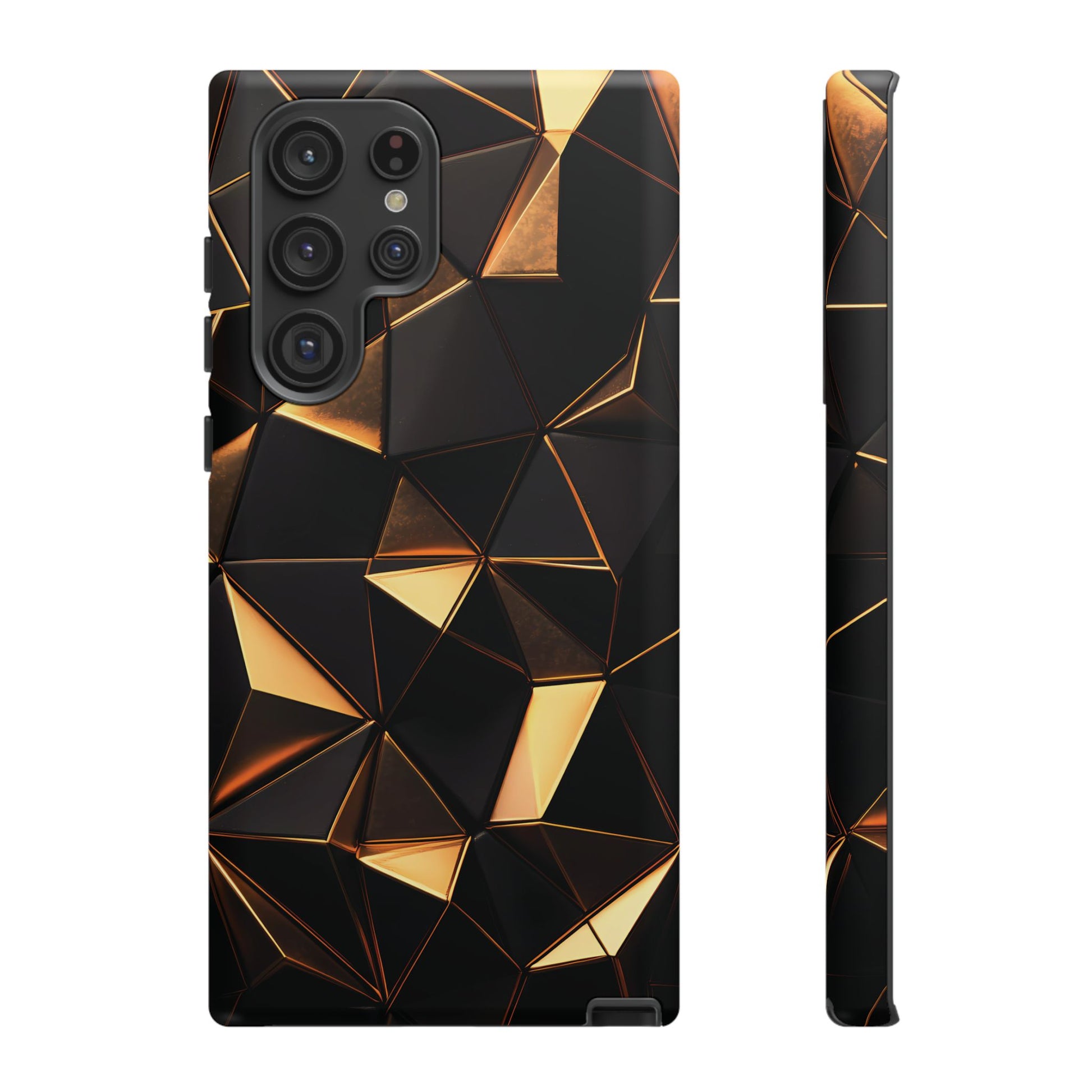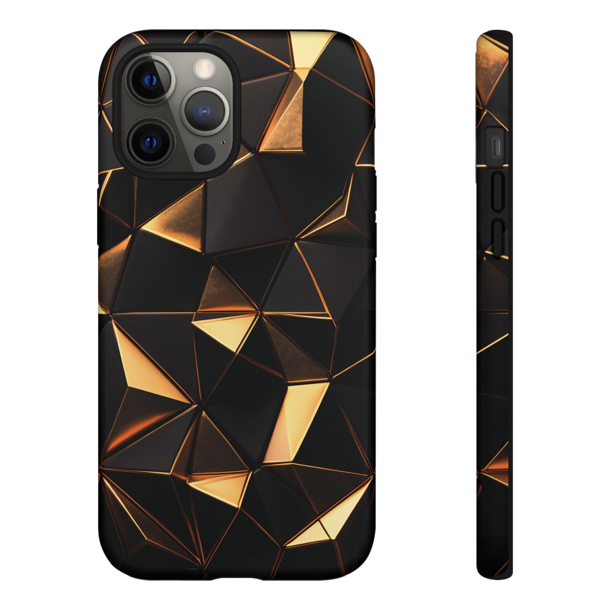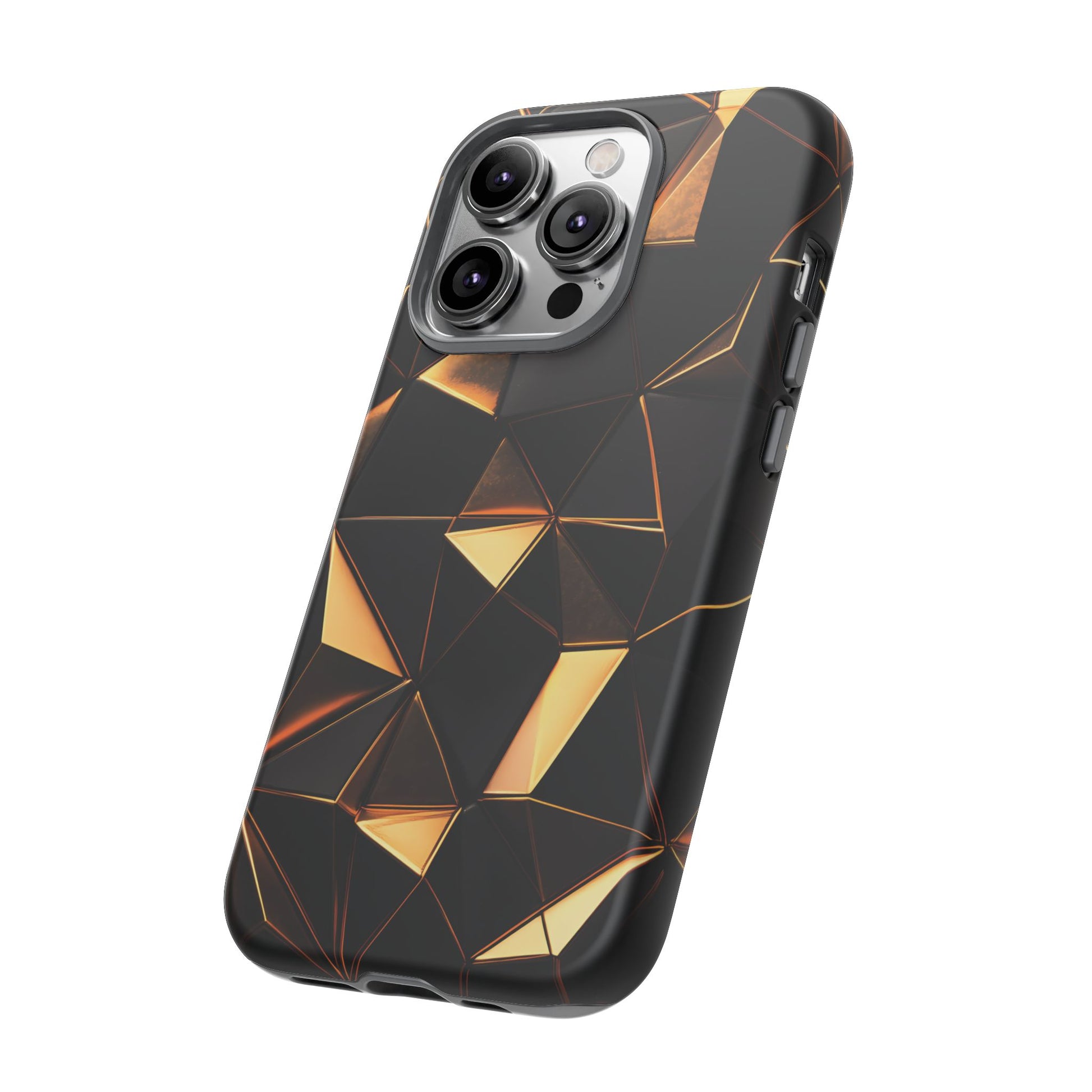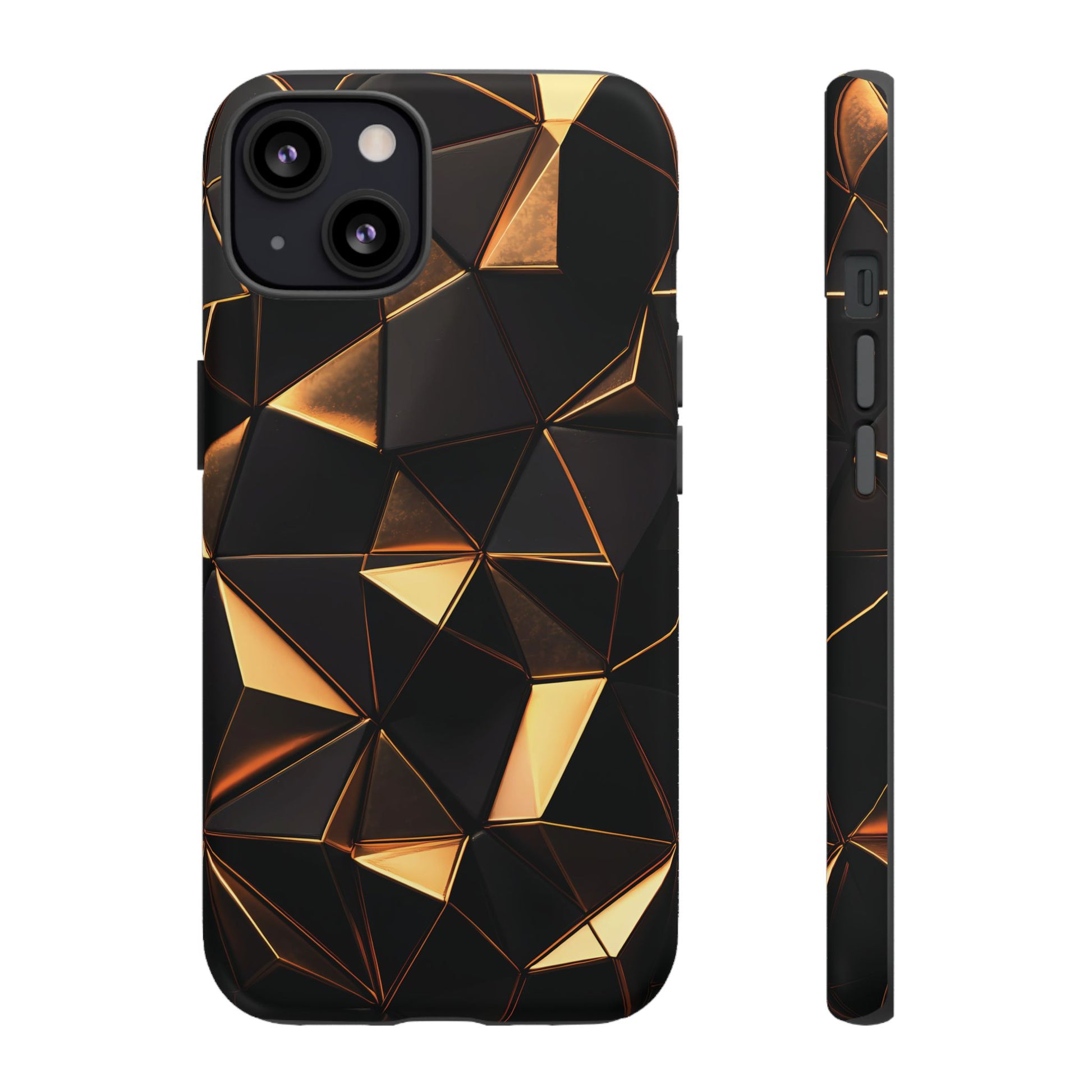 Elevate your style with this luxurious gold and black geometric pattern, designed for those who appreciate sophisticated elegance. With high-detail photorealistic textures and soft lighting, this case exudes modern opulence and timeless class.