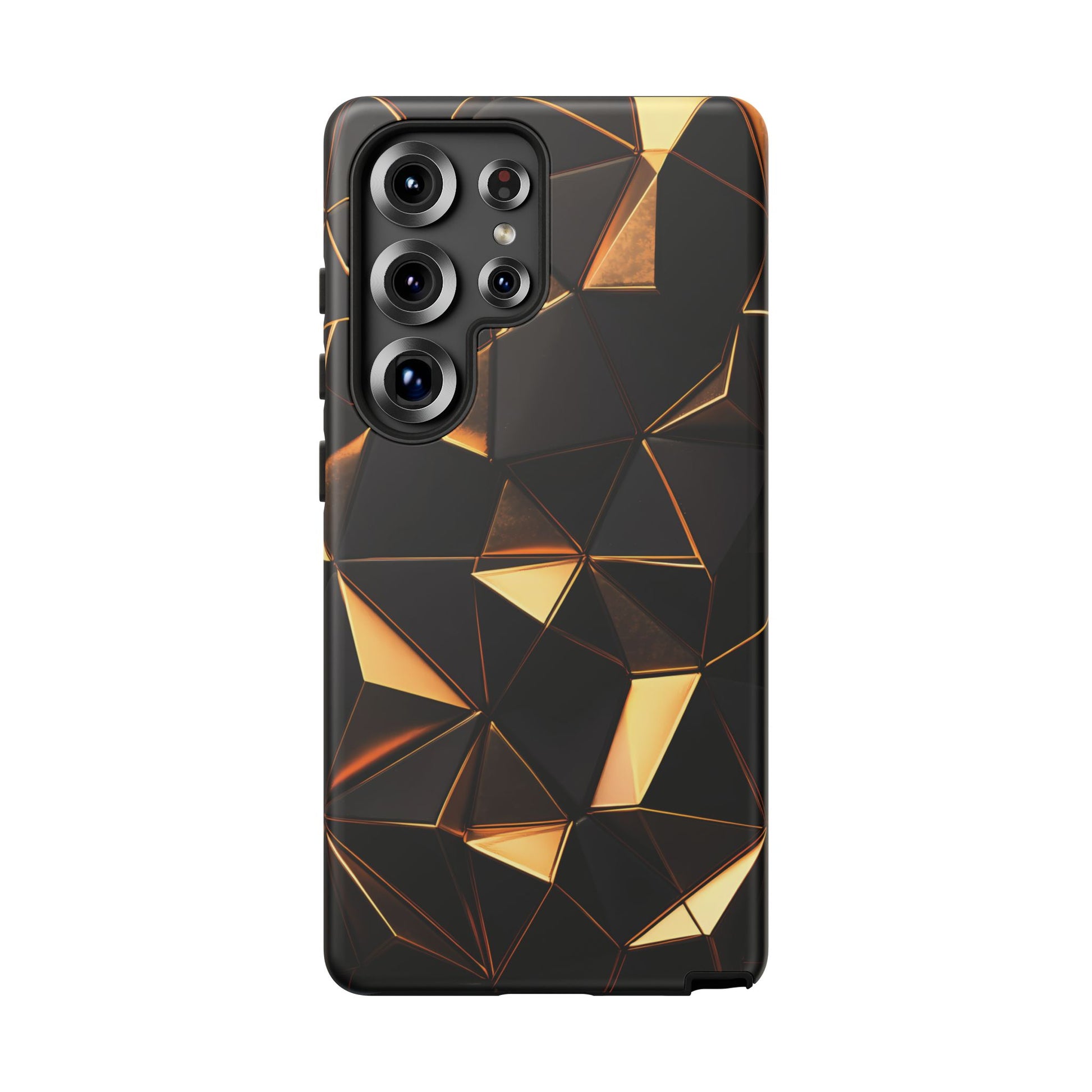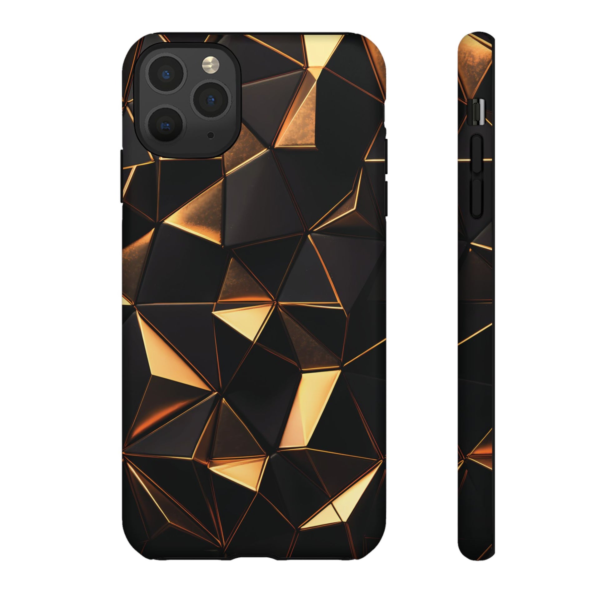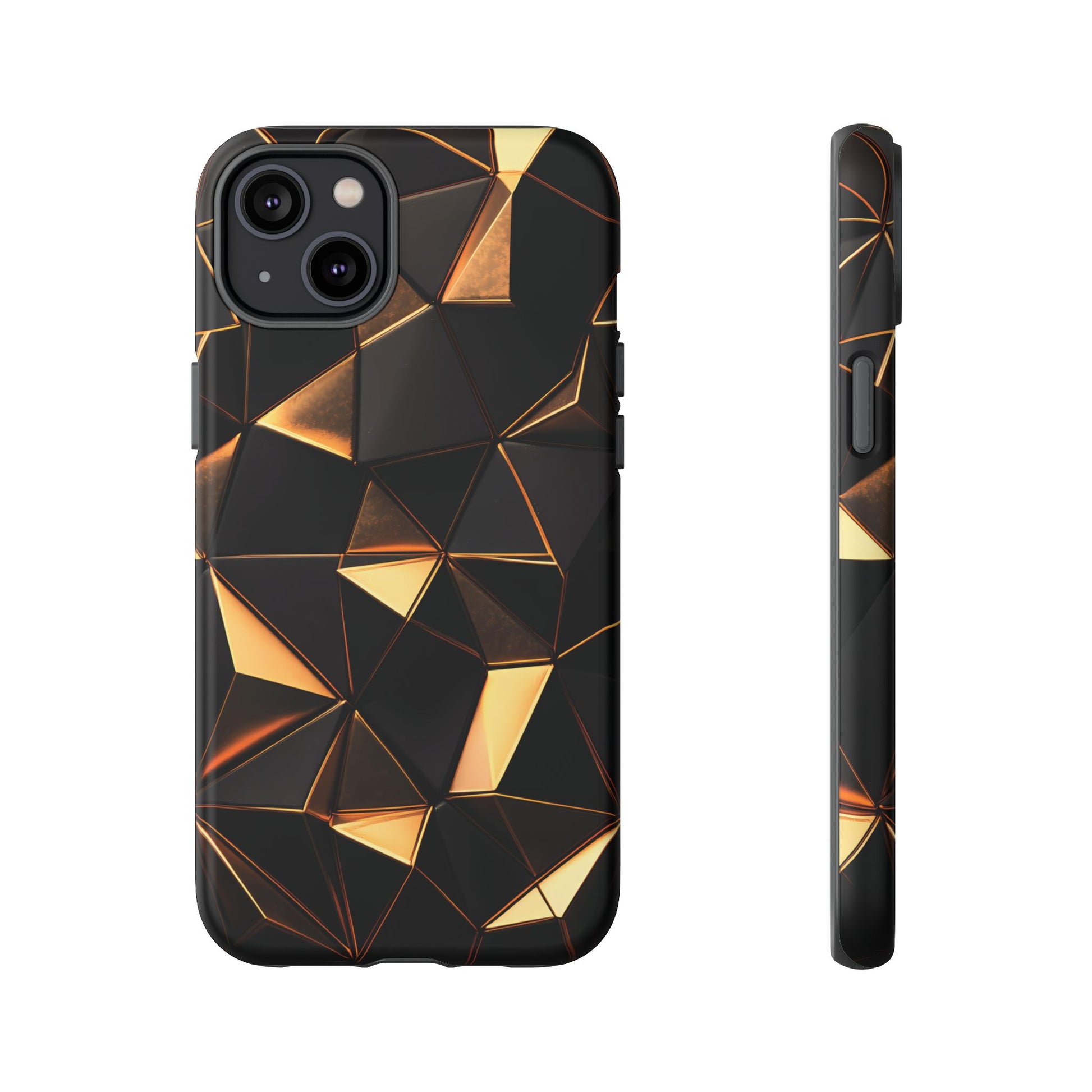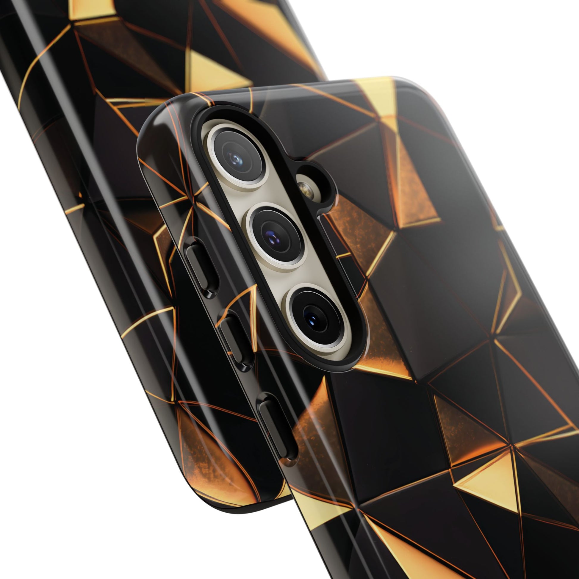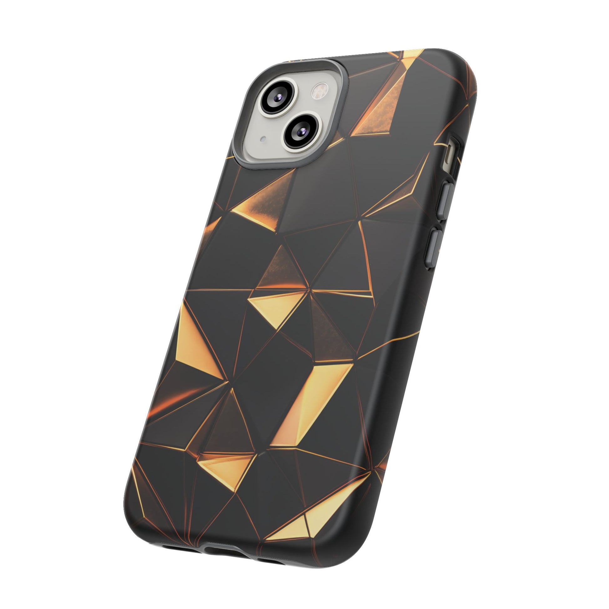 Elevate your style with this luxurious gold and black geometric pattern, designed for those who appreciate sophisticated elegance. With high-detail photorealistic textures and soft lighting, this case exudes modern opulence and timeless class.
