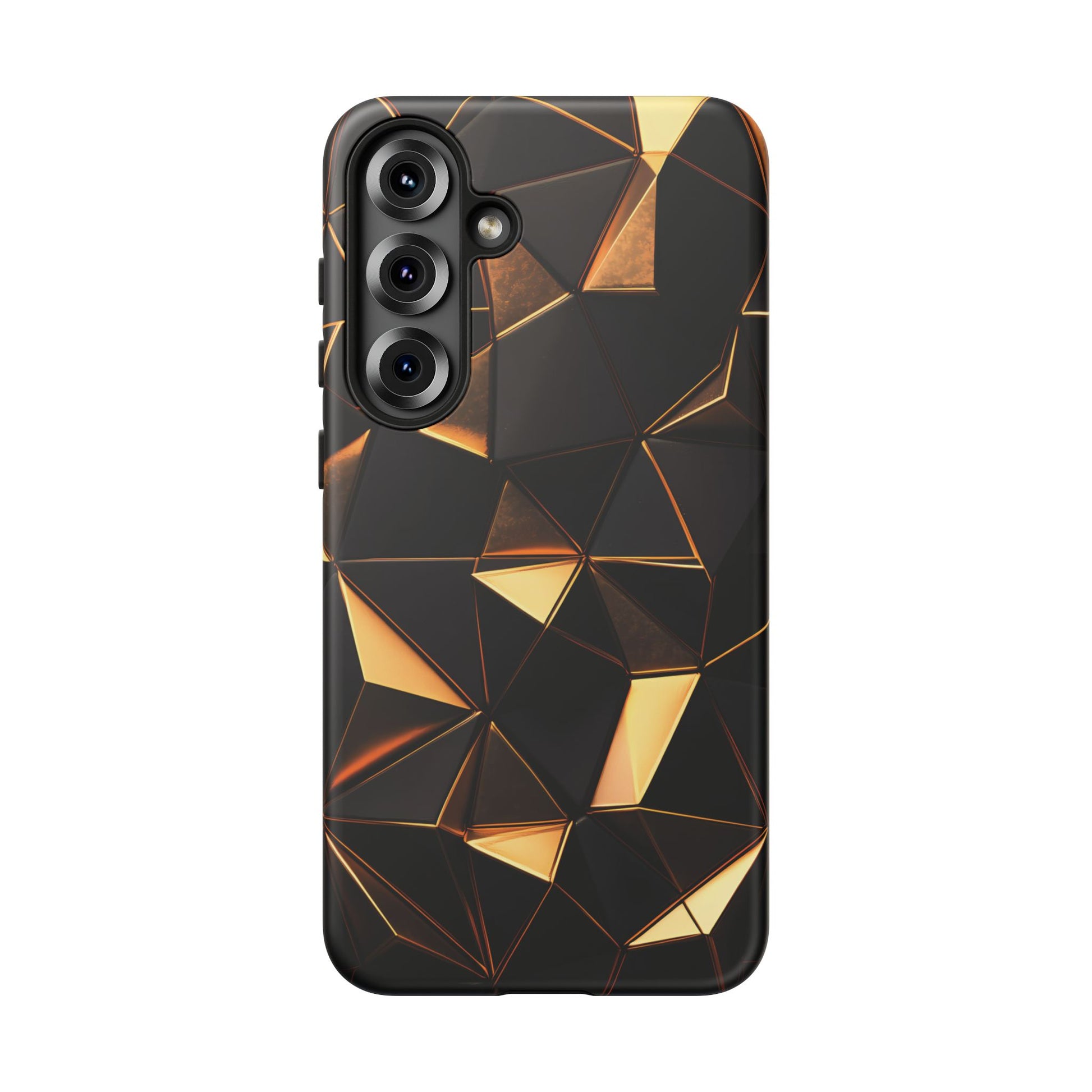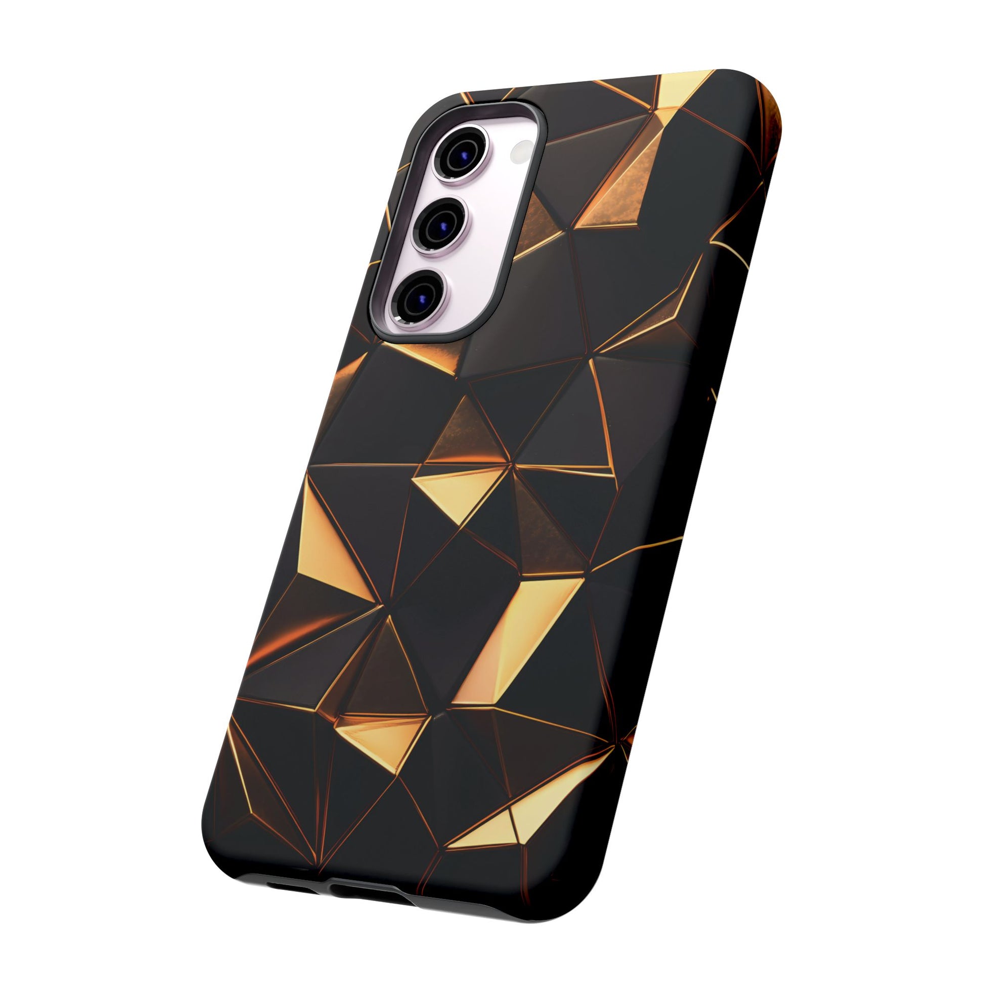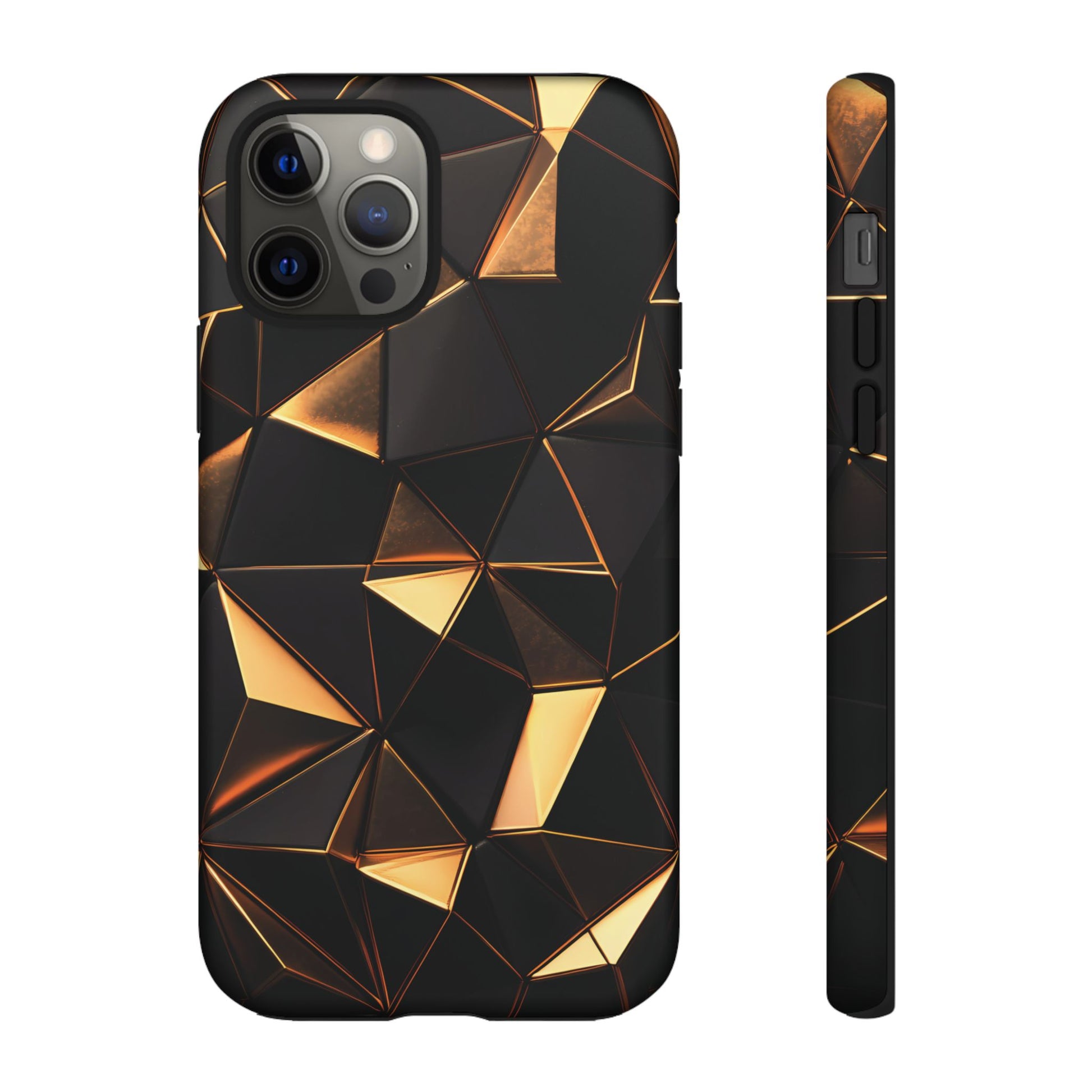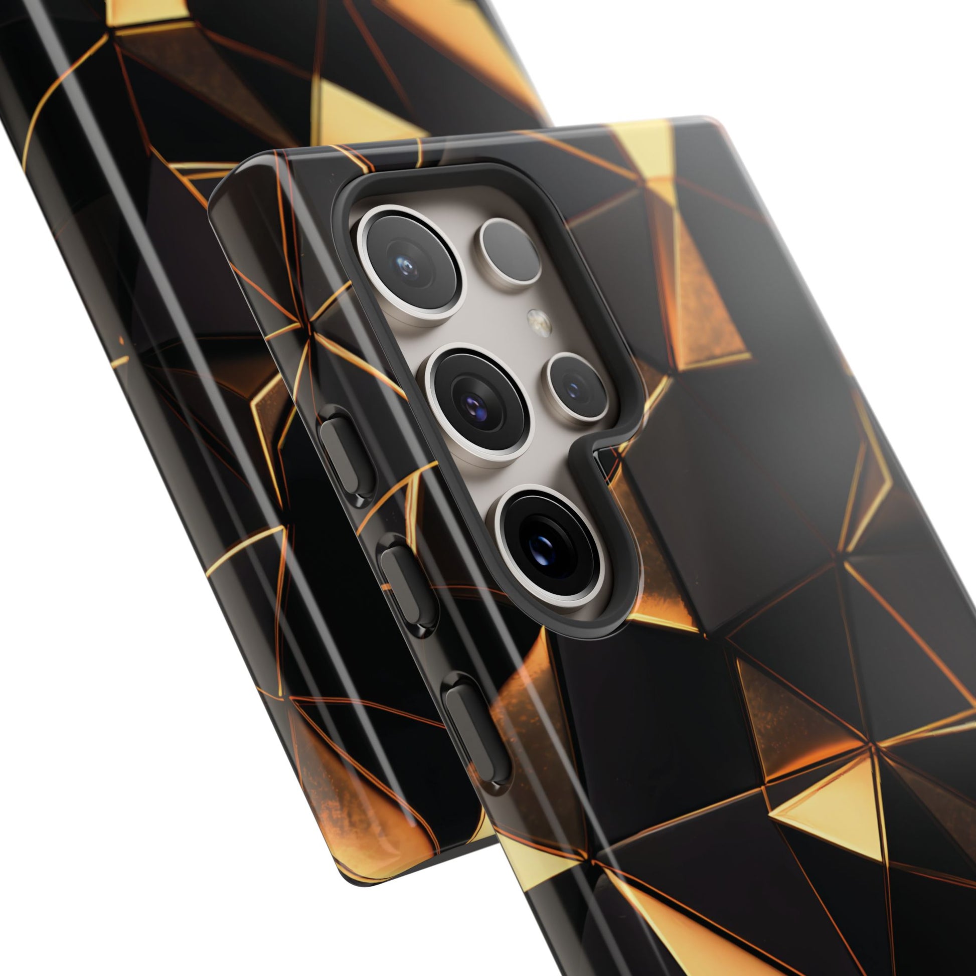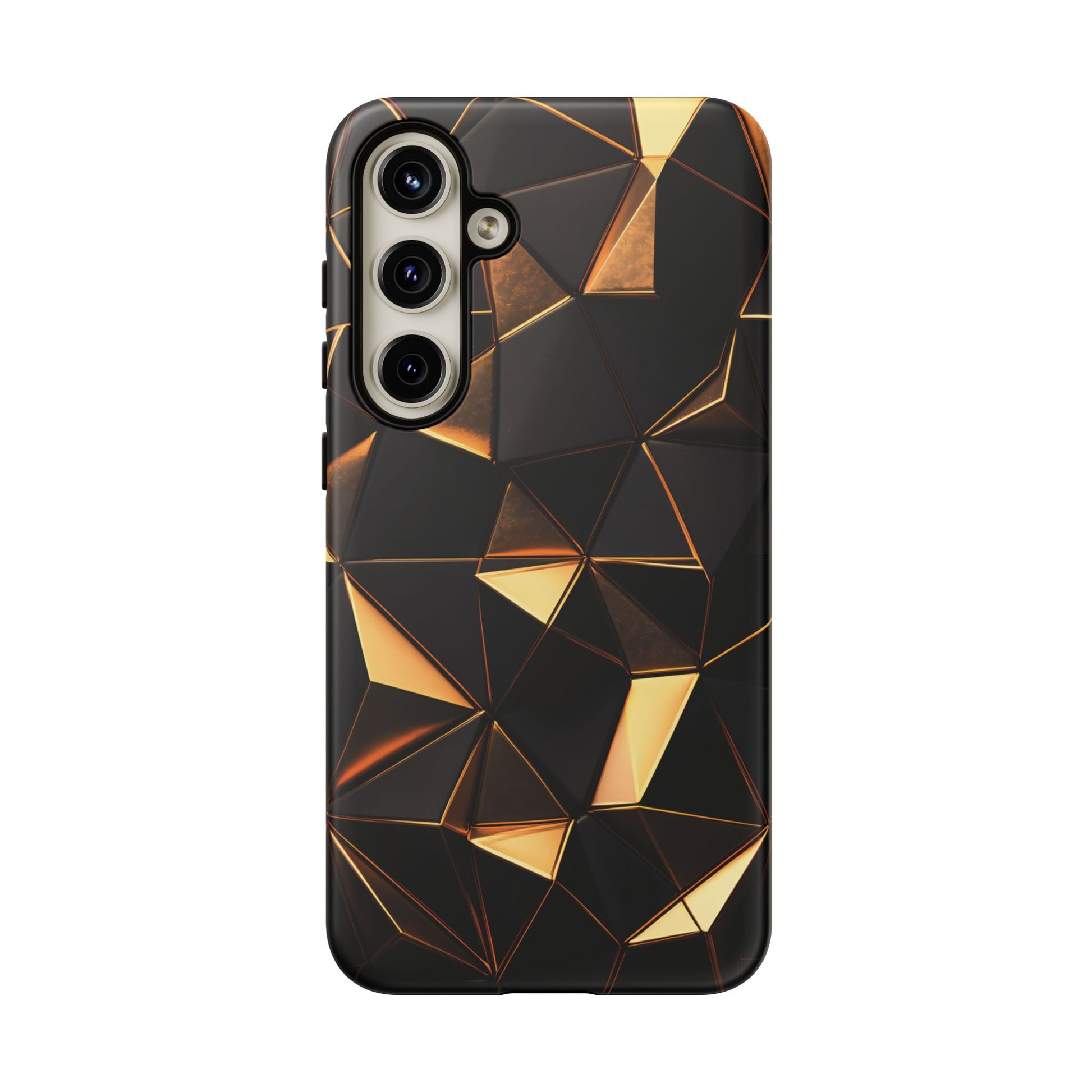 Elevate your style with this luxurious gold and black geometric pattern, designed for those who appreciate sophisticated elegance. With high-detail photorealistic textures and soft lighting, this case exudes modern opulence and timeless class.