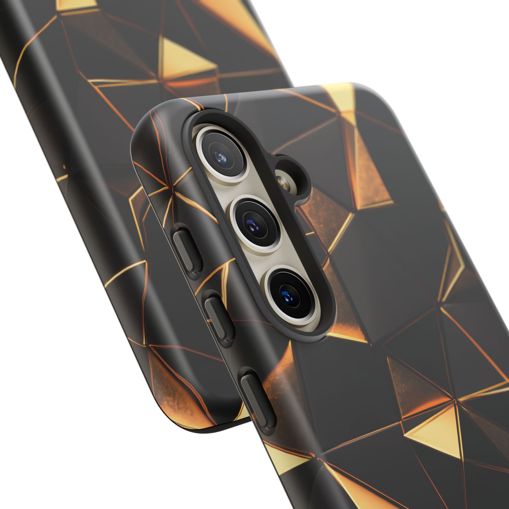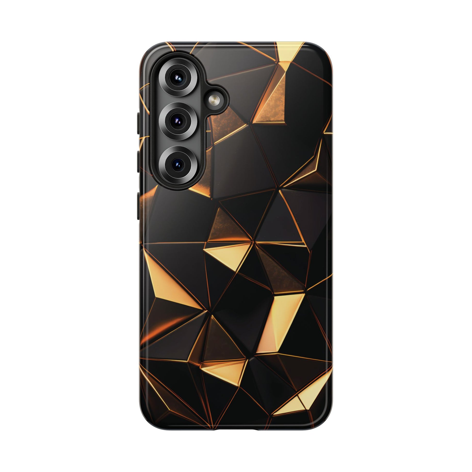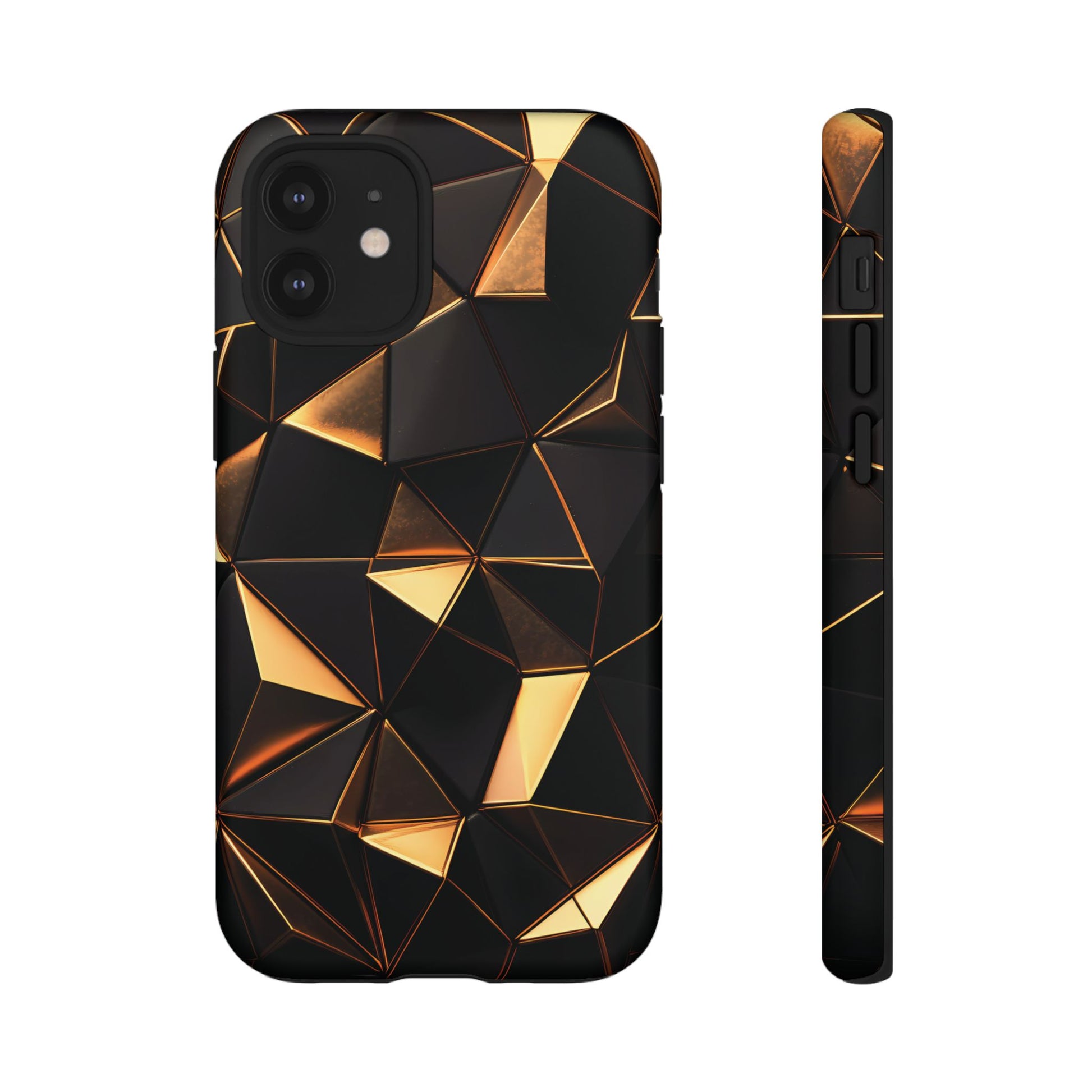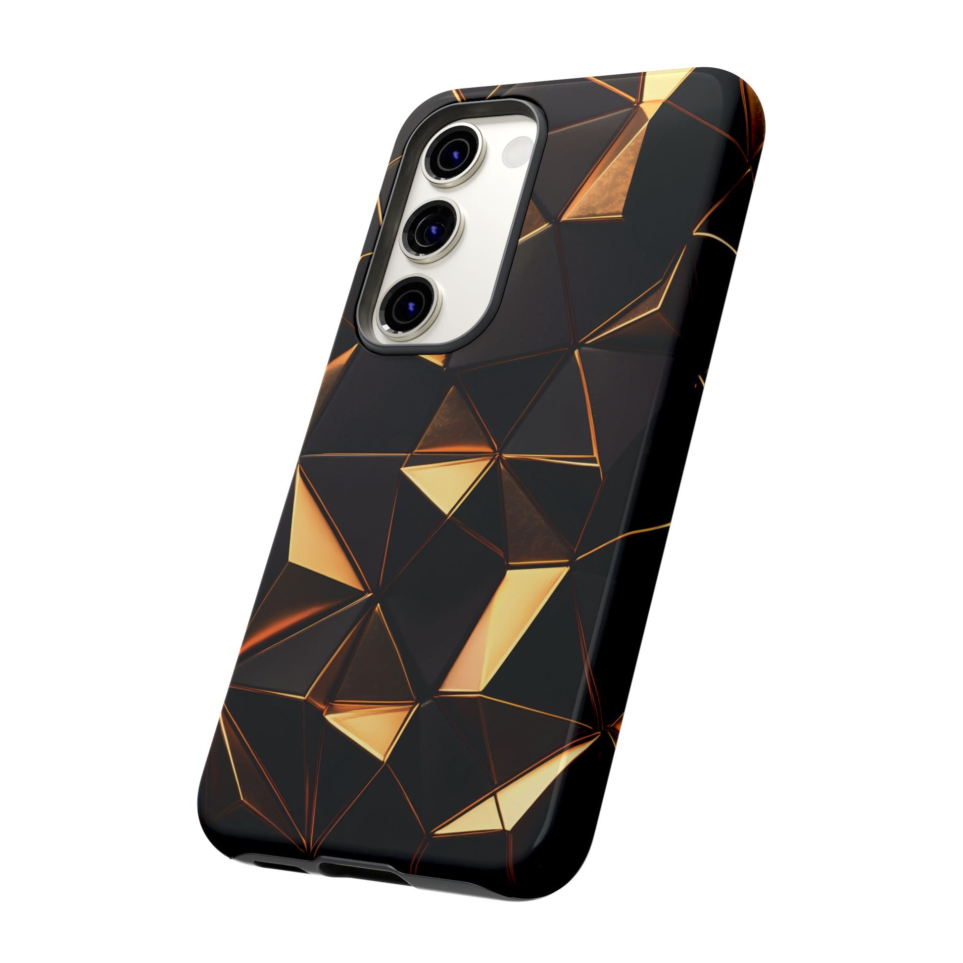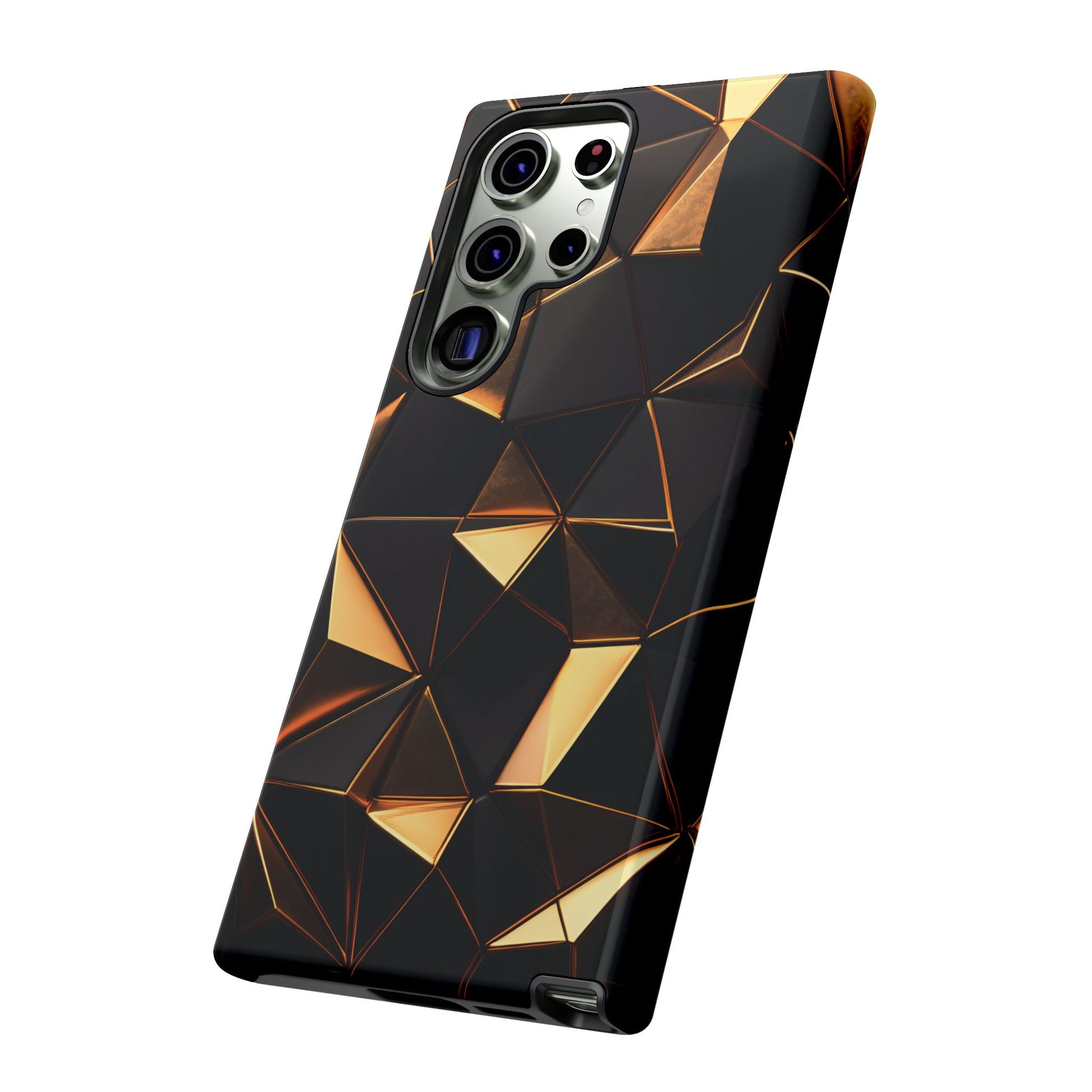 Elevate your style with this luxurious gold and black geometric pattern, designed for those who appreciate sophisticated elegance. With high-detail photorealistic textures and soft lighting, this case exudes modern opulence and timeless class.