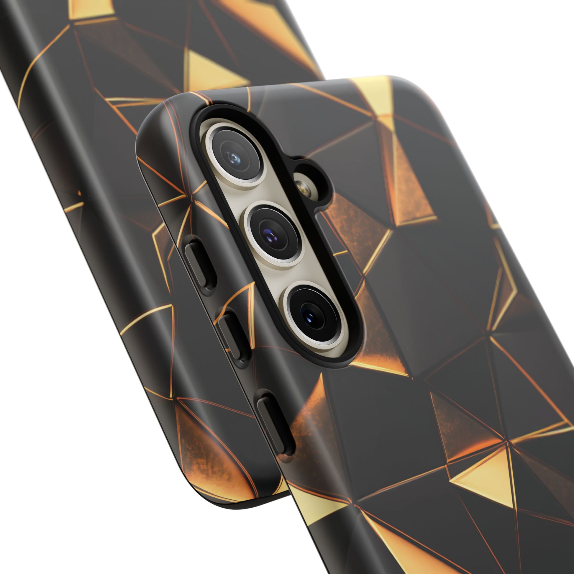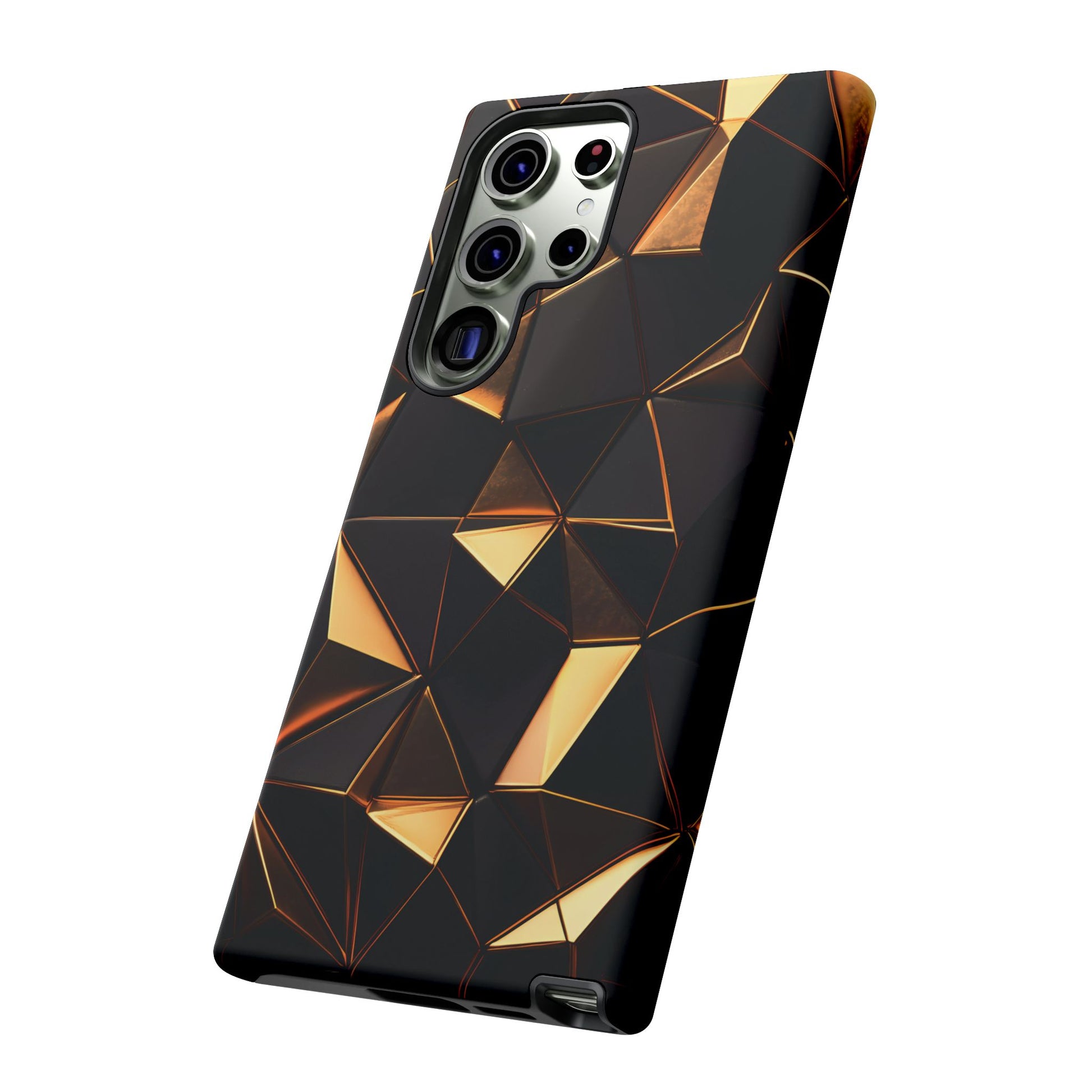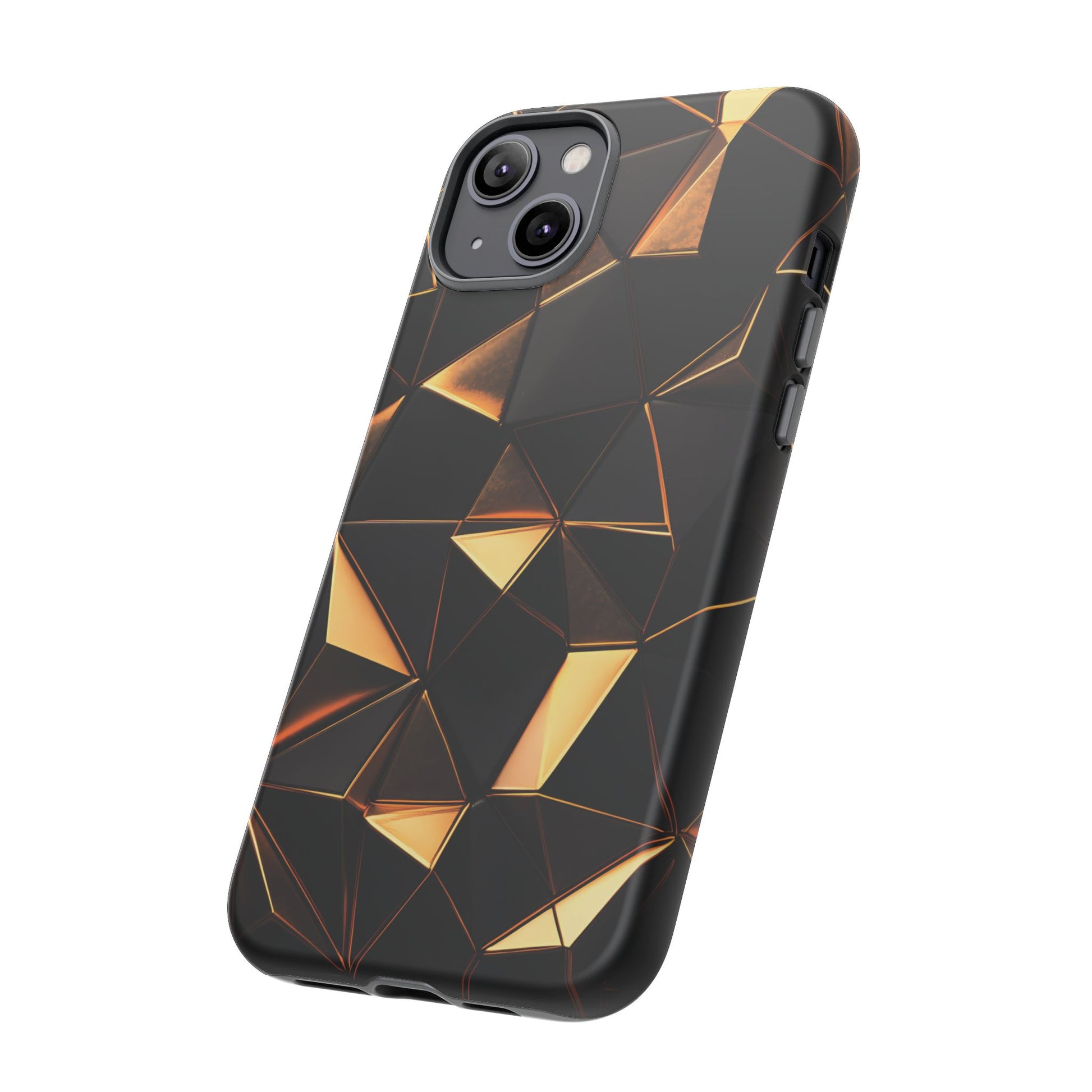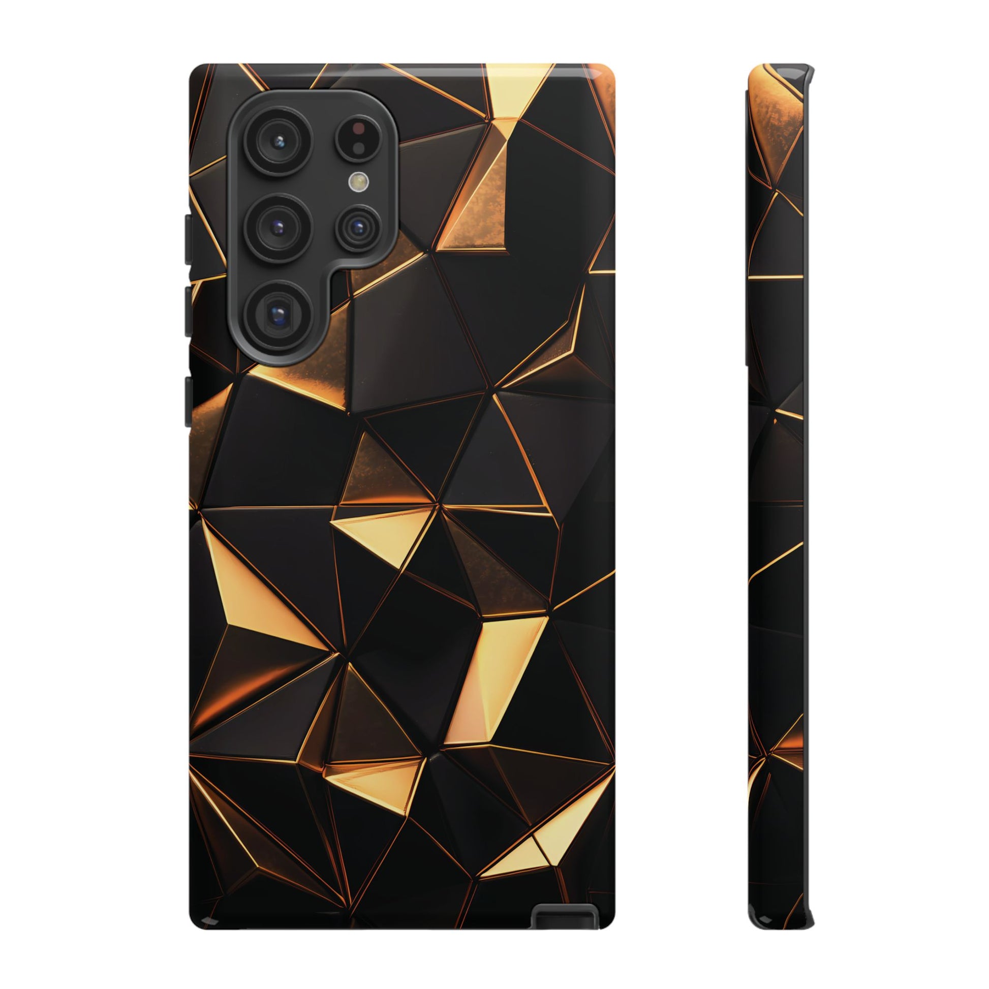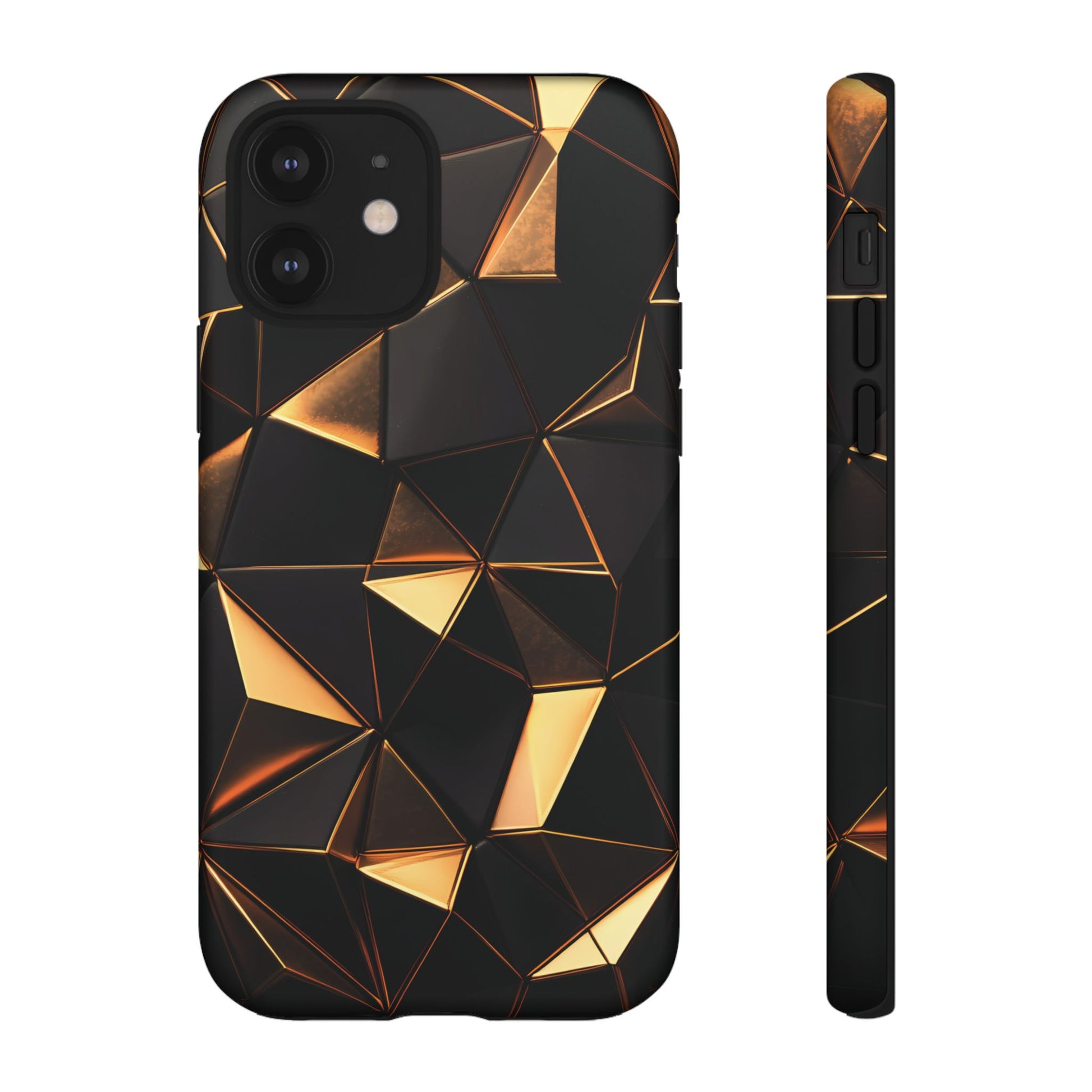 Elevate your style with this luxurious gold and black geometric pattern, designed for those who appreciate sophisticated elegance. With high-detail photorealistic textures and soft lighting, this case exudes modern opulence and timeless class.
