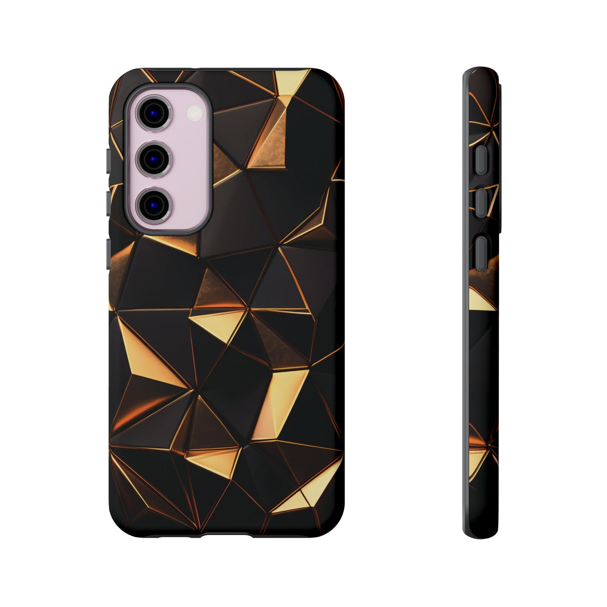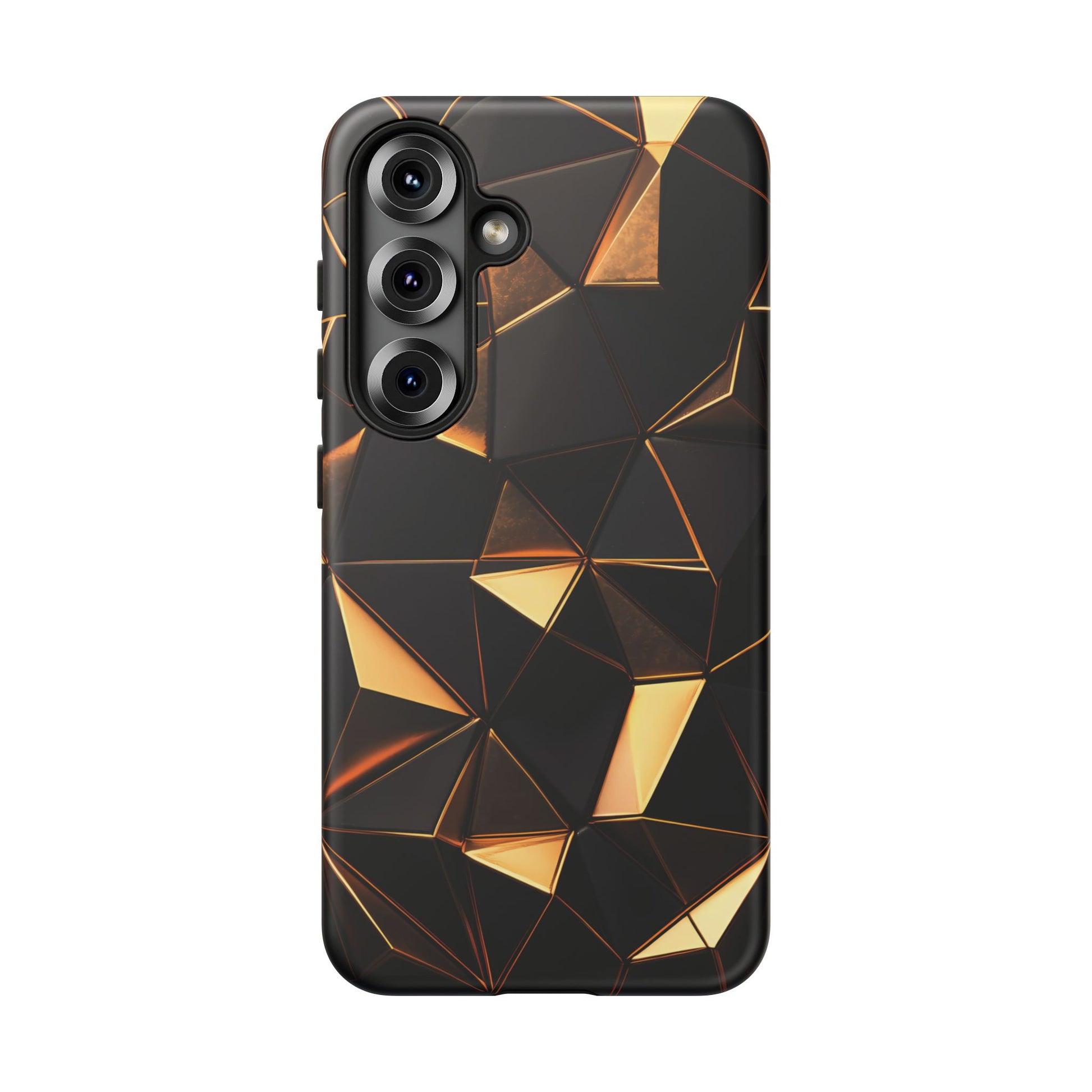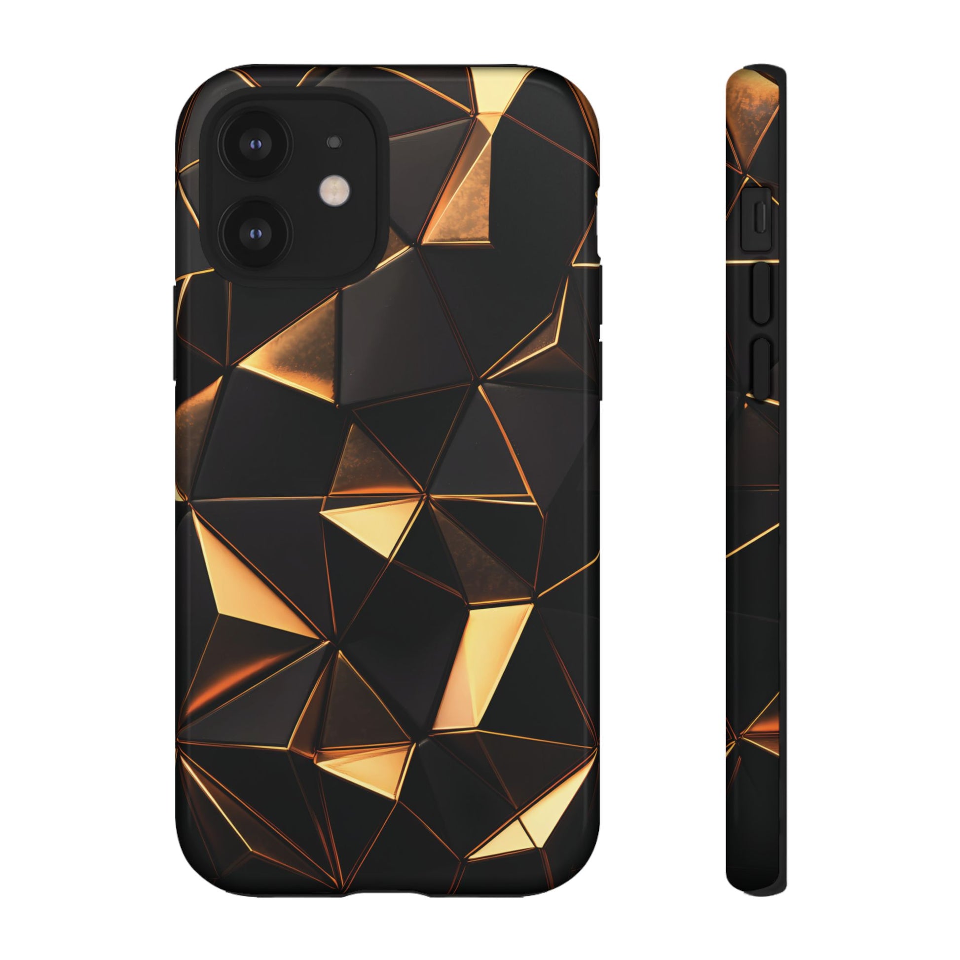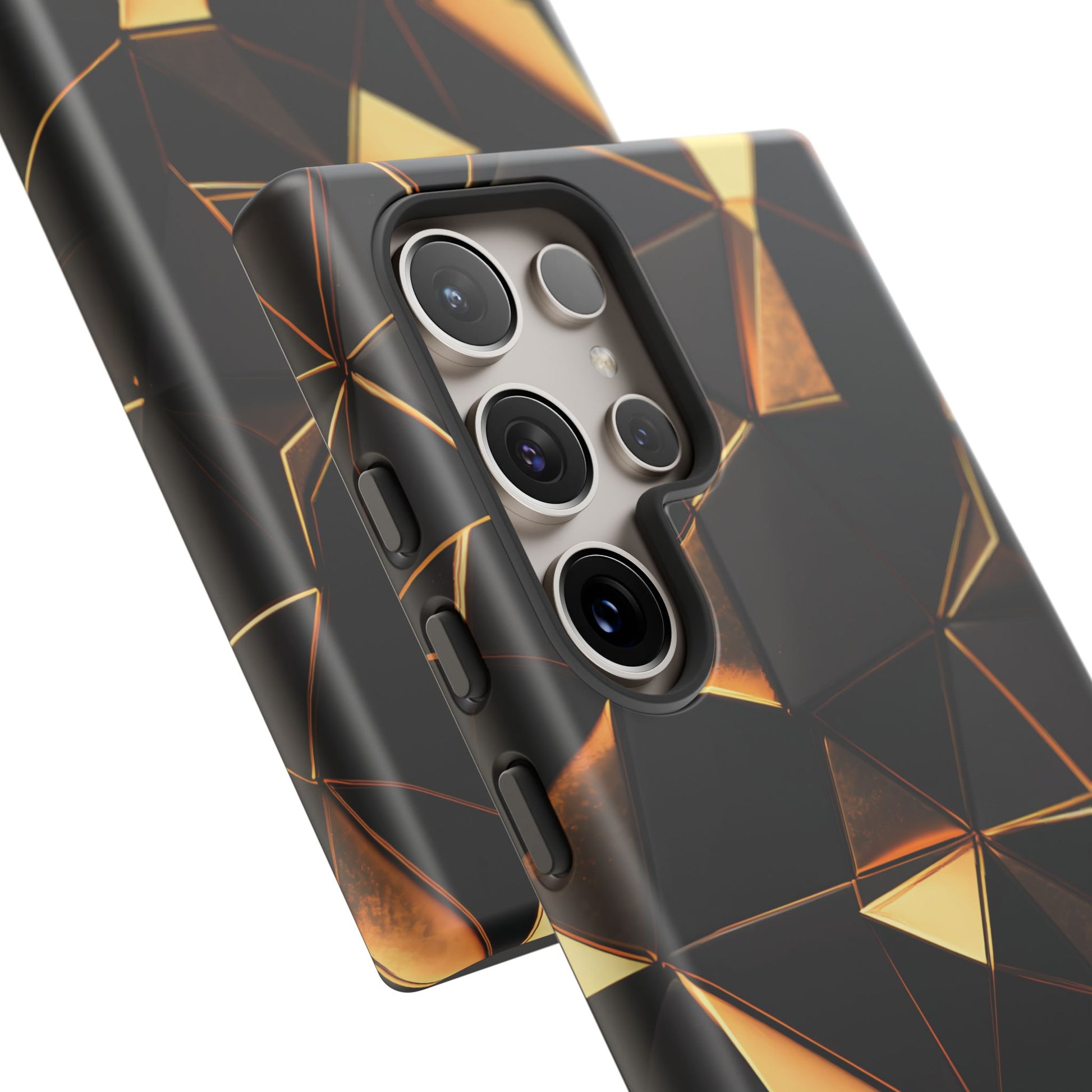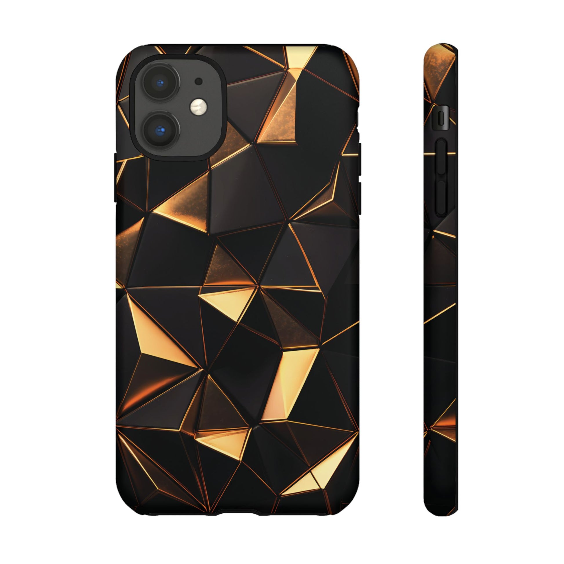 Elevate your style with this luxurious gold and black geometric pattern, designed for those who appreciate sophisticated elegance. With high-detail photorealistic textures and soft lighting, this case exudes modern opulence and timeless class.