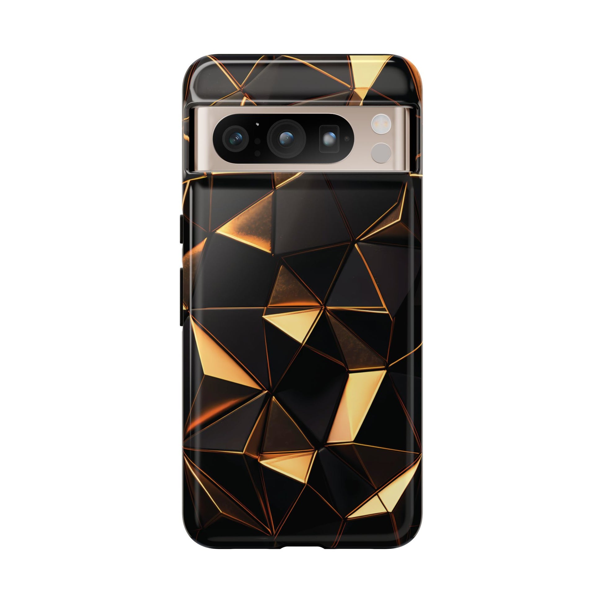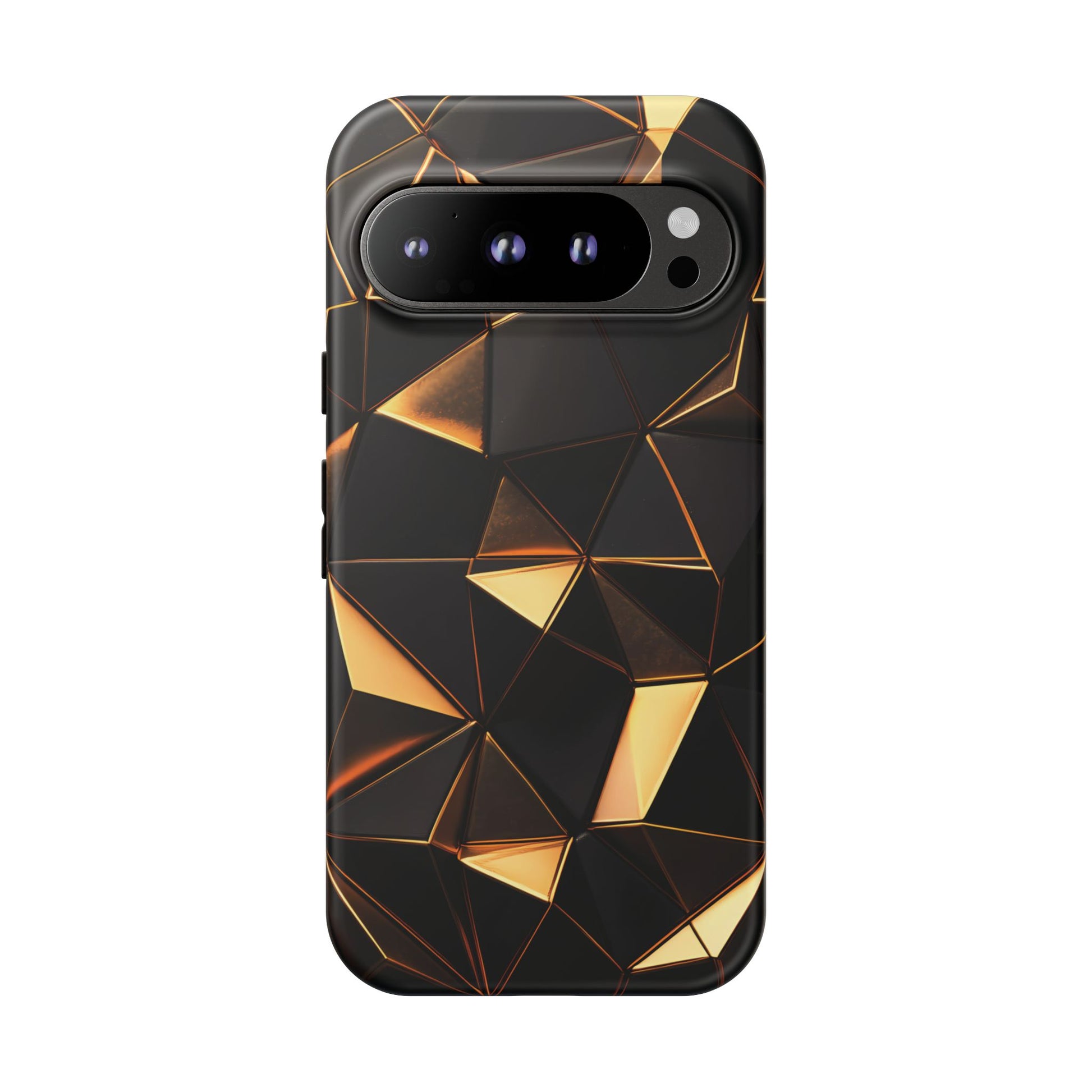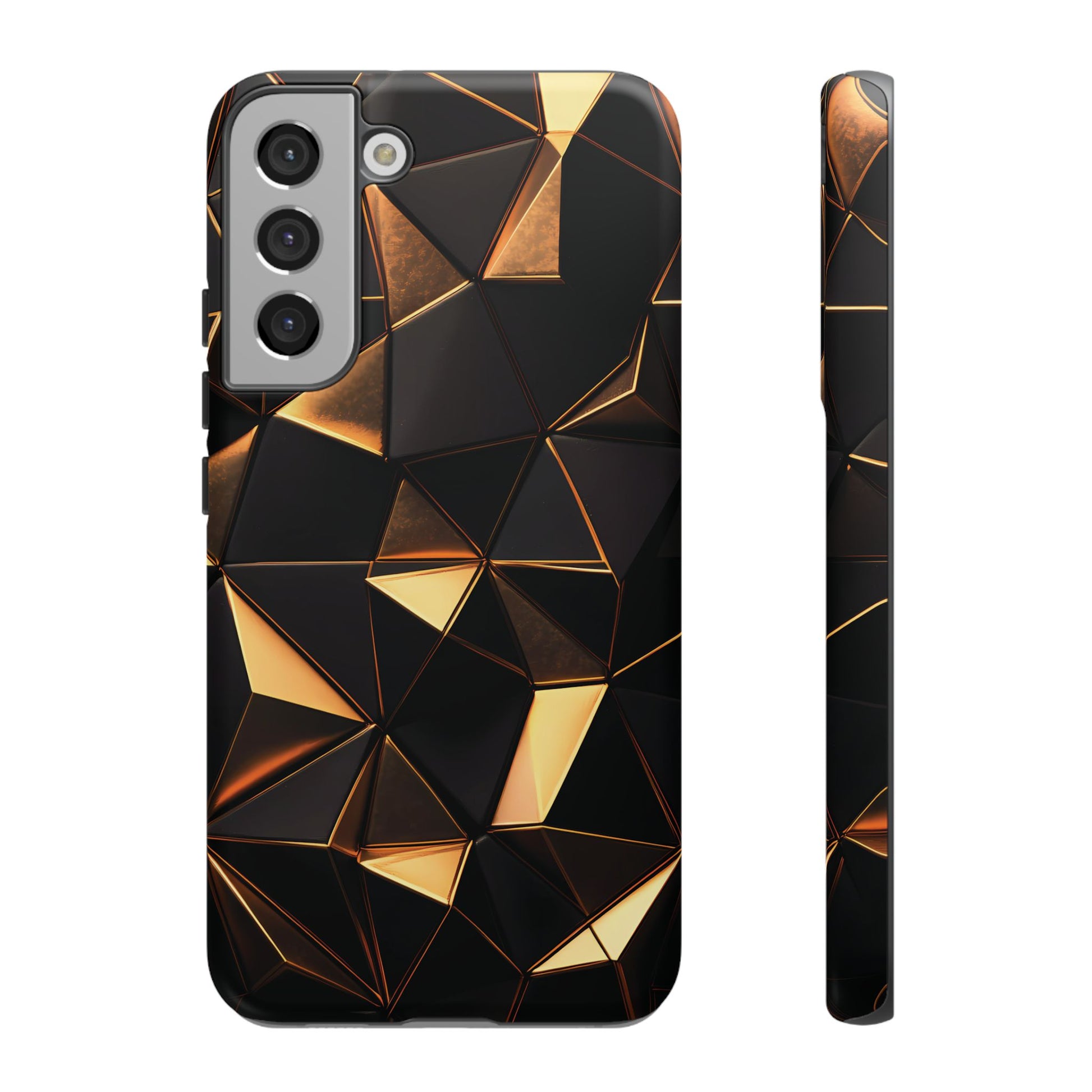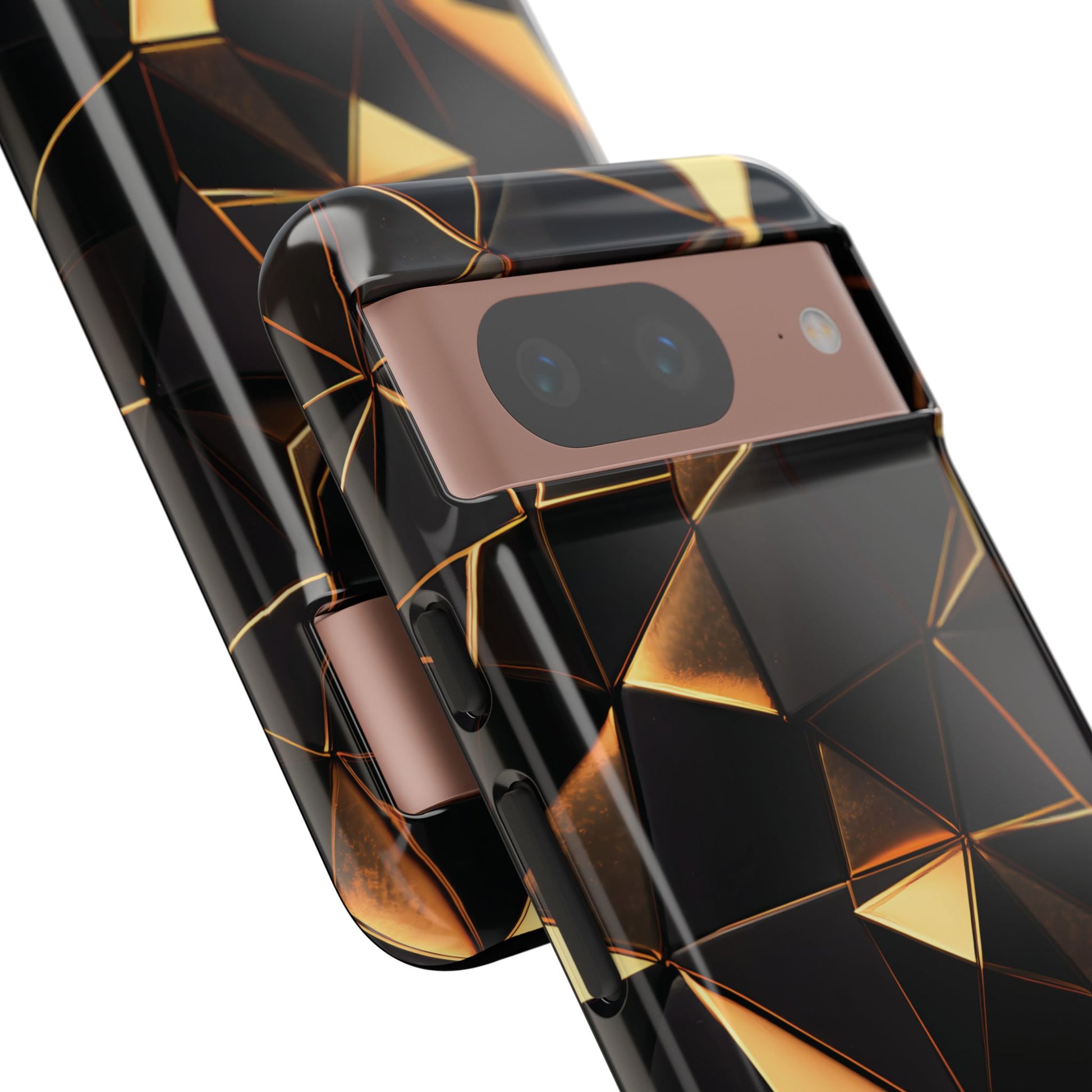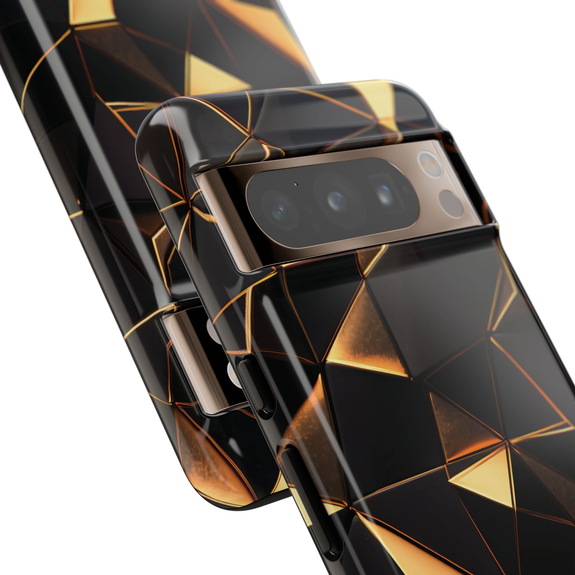Elevate your style with this luxurious gold and black geometric pattern, designed for those who appreciate sophisticated elegance. With high-detail photorealistic textures and soft lighting, this case exudes modern opulence and timeless class.