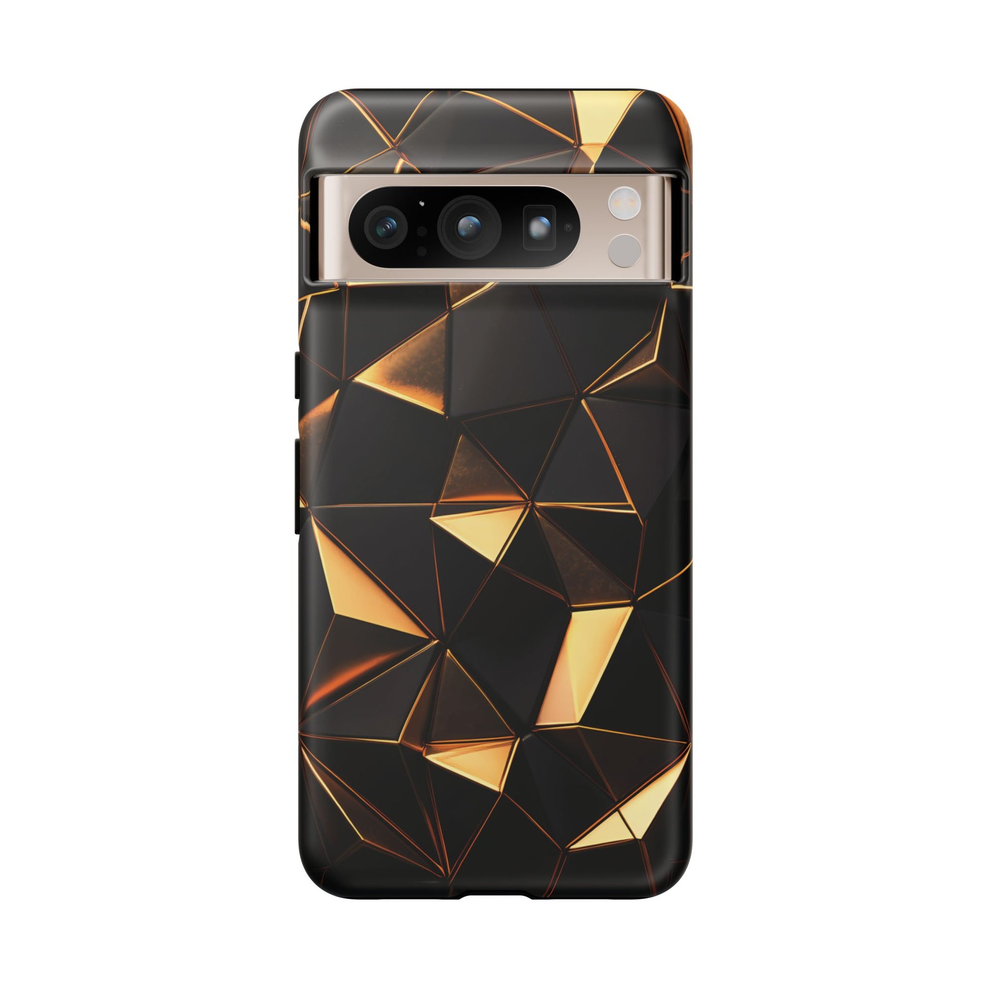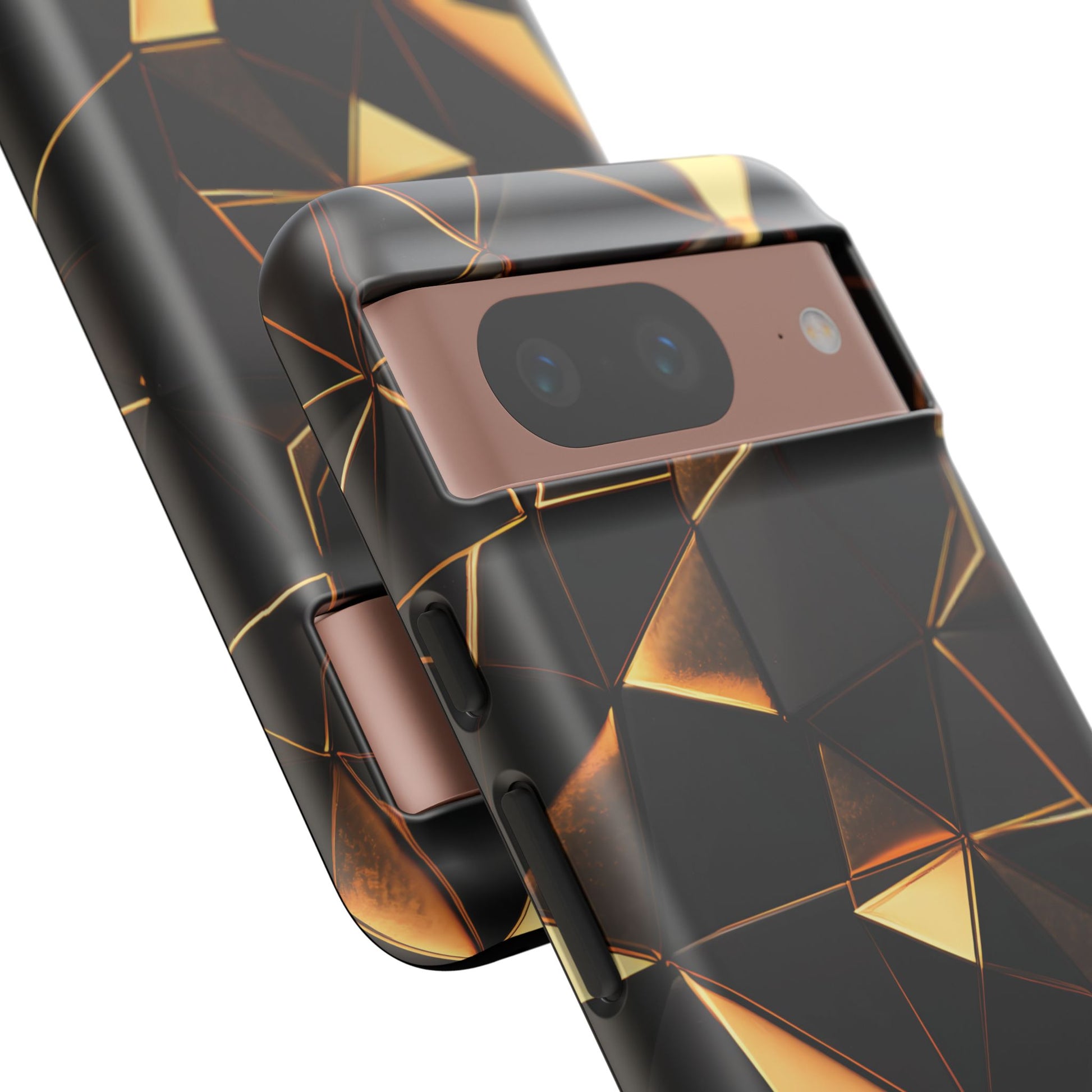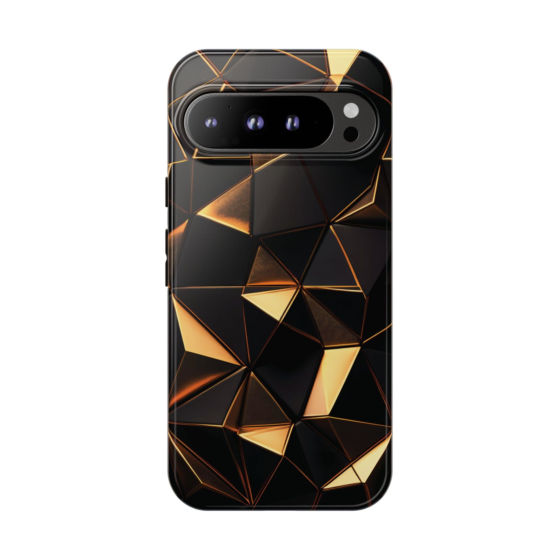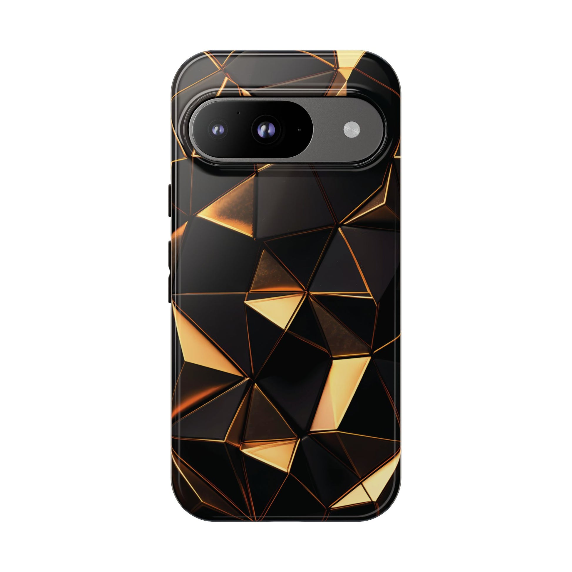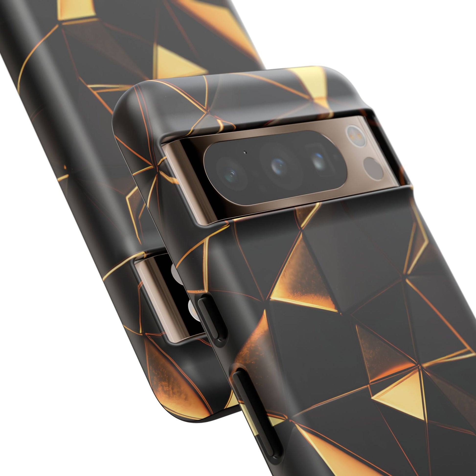 Elevate your style with this luxurious gold and black geometric pattern, designed for those who appreciate sophisticated elegance. With high-detail photorealistic textures and soft lighting, this case exudes modern opulence and timeless class.