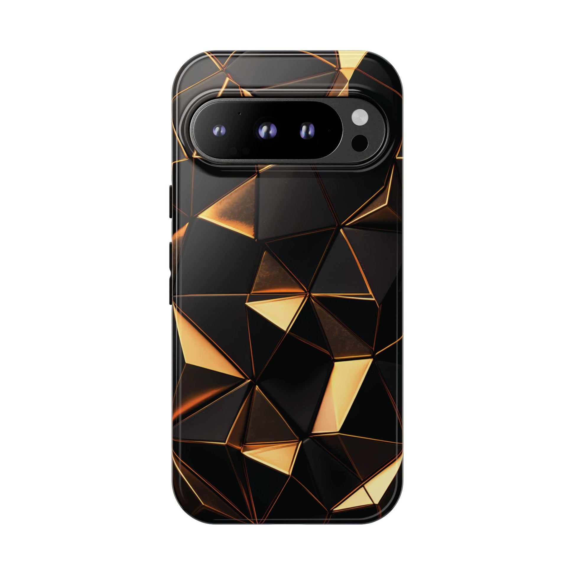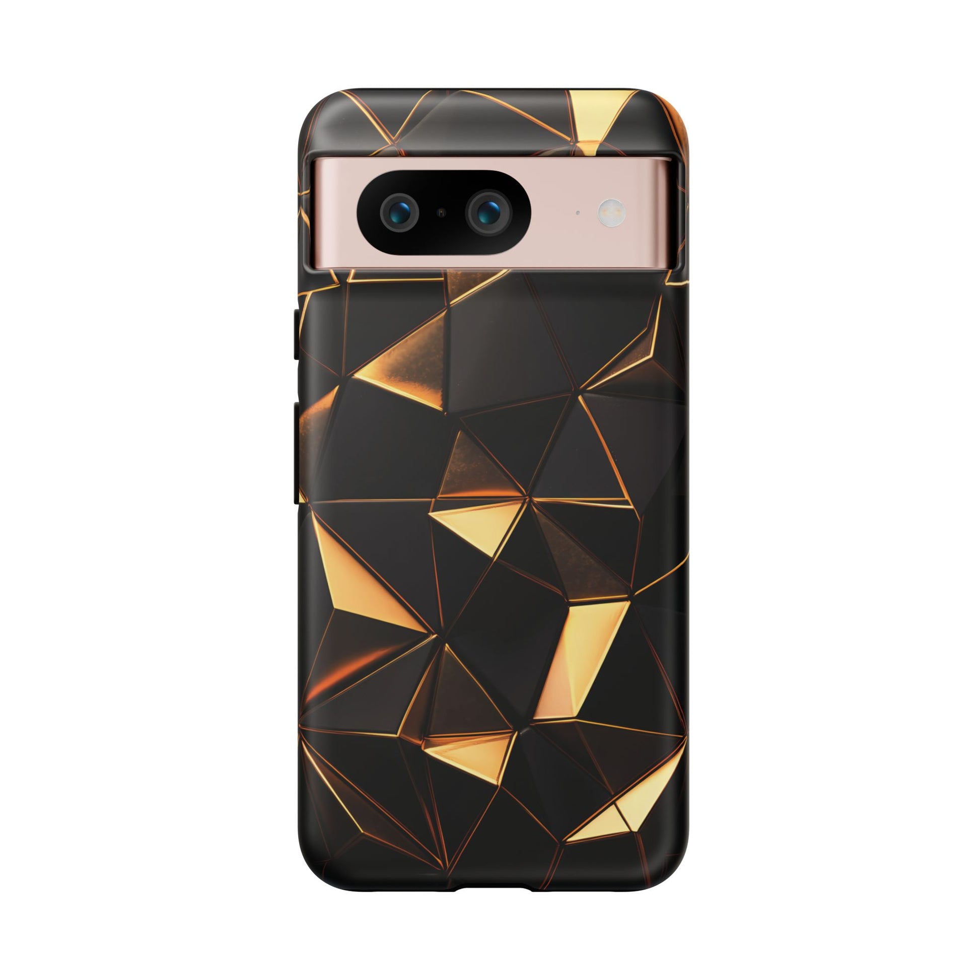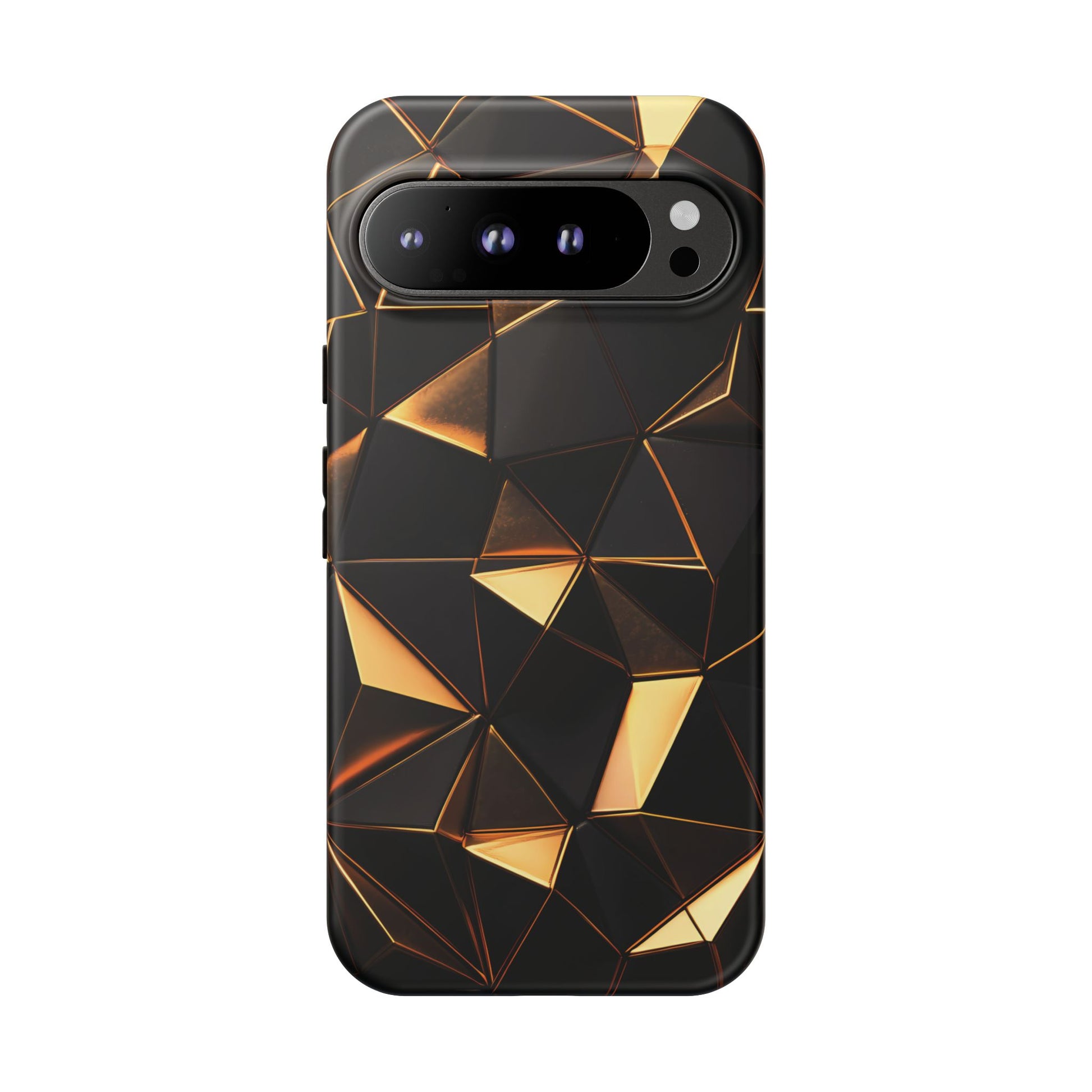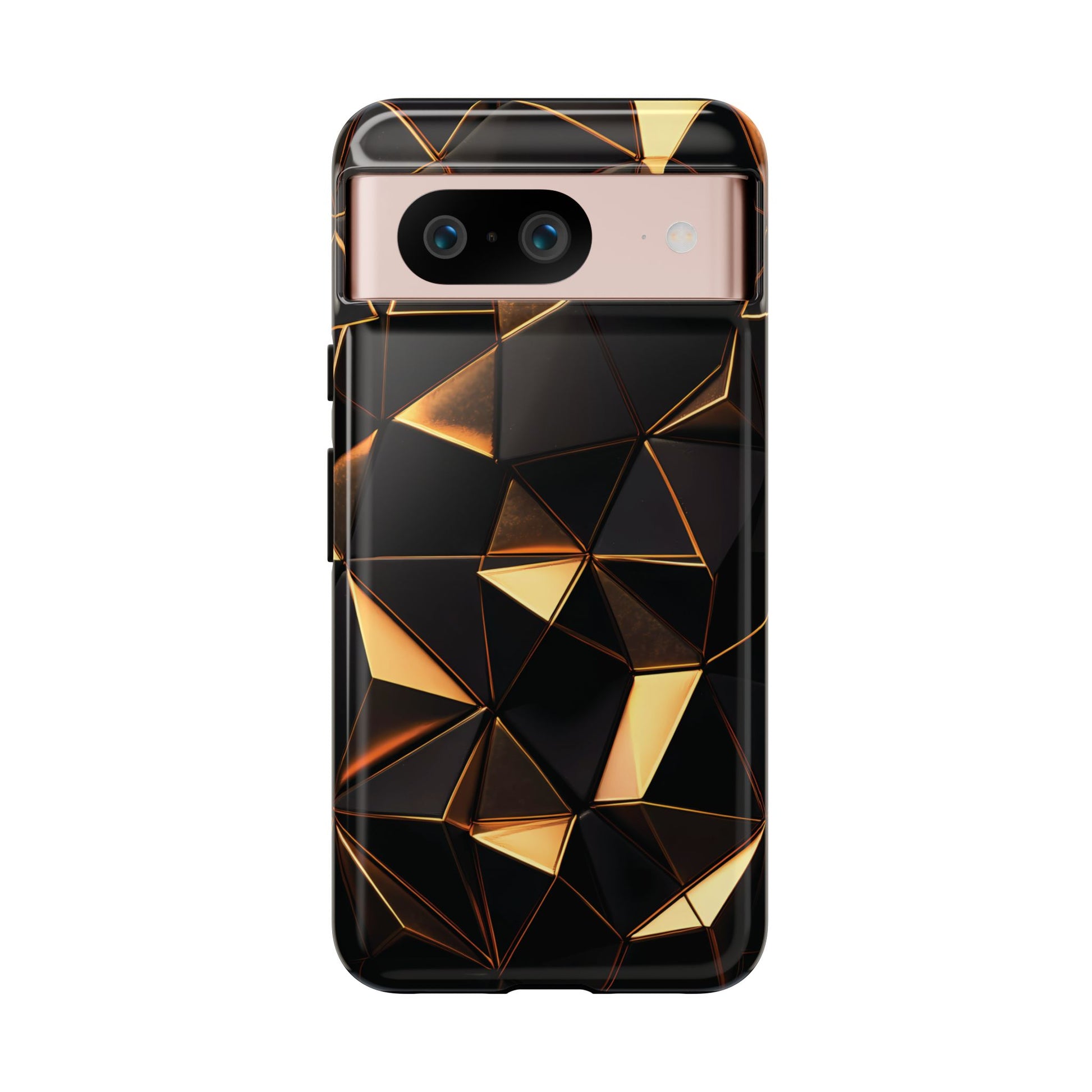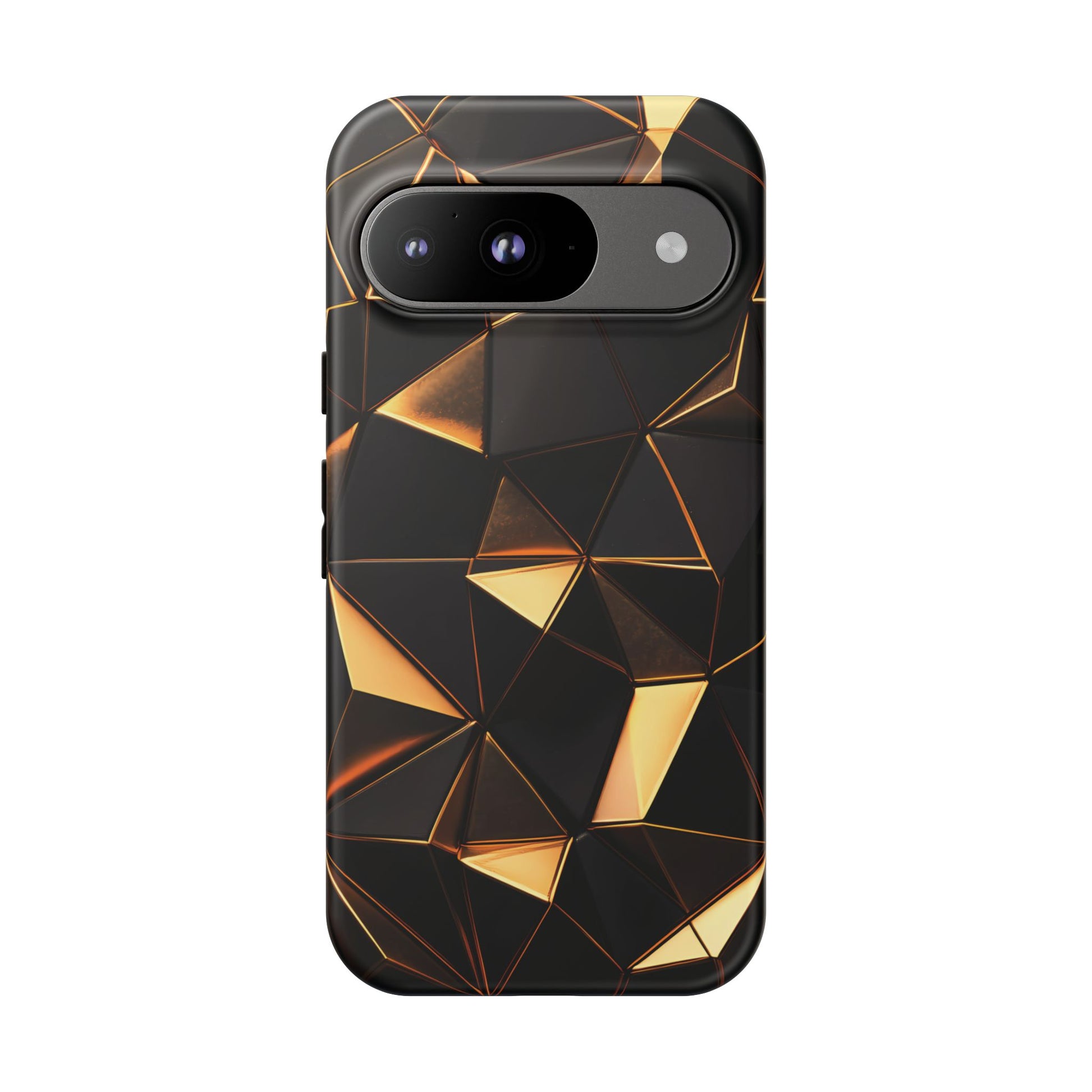 Elevate your style with this luxurious gold and black geometric pattern, designed for those who appreciate sophisticated elegance. With high-detail photorealistic textures and soft lighting, this case exudes modern opulence and timeless class.