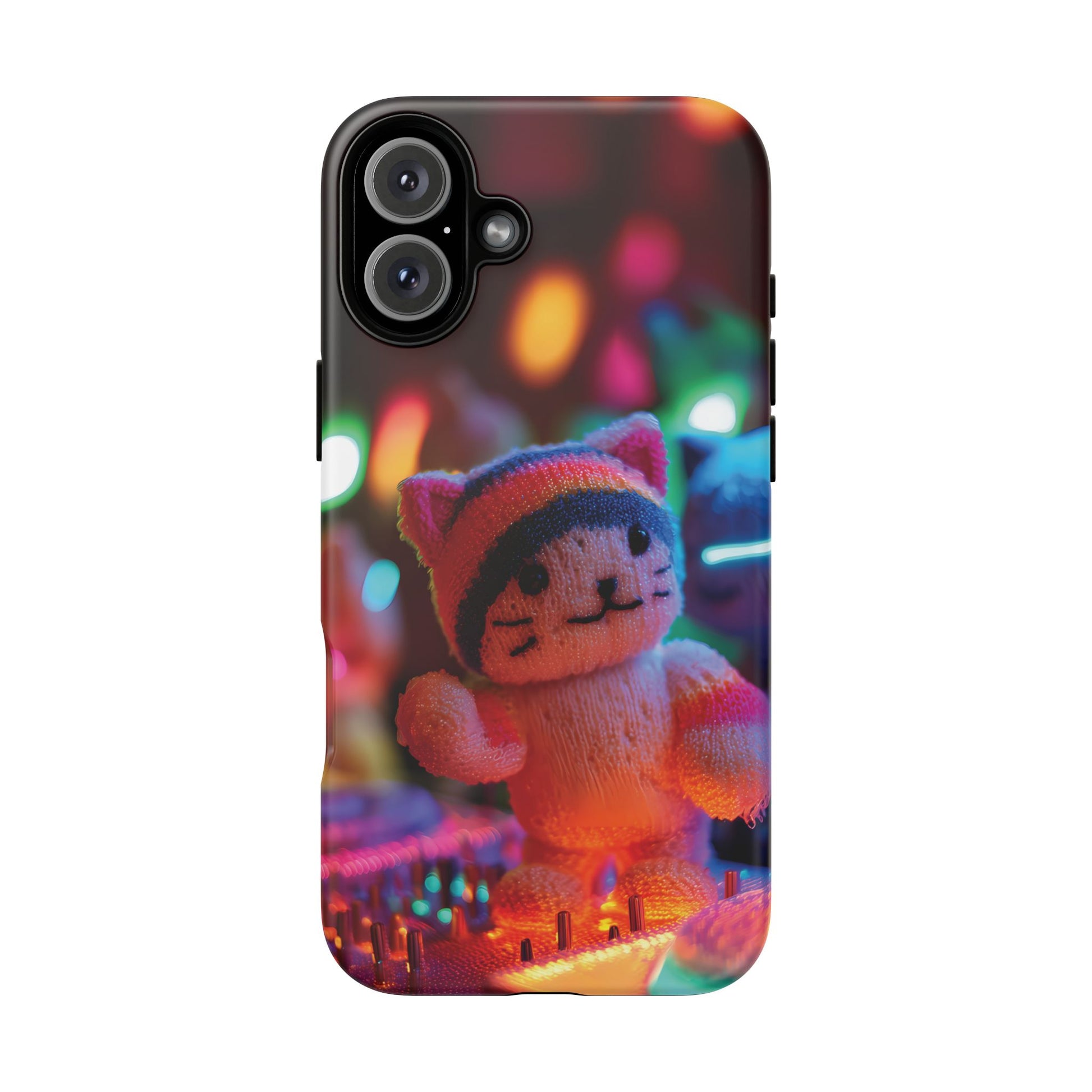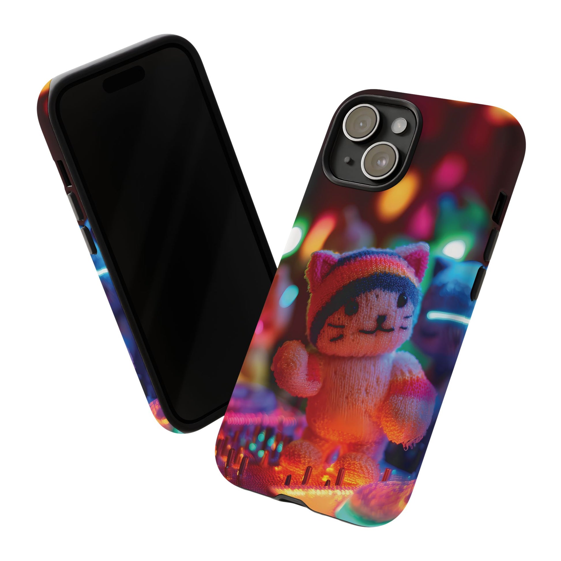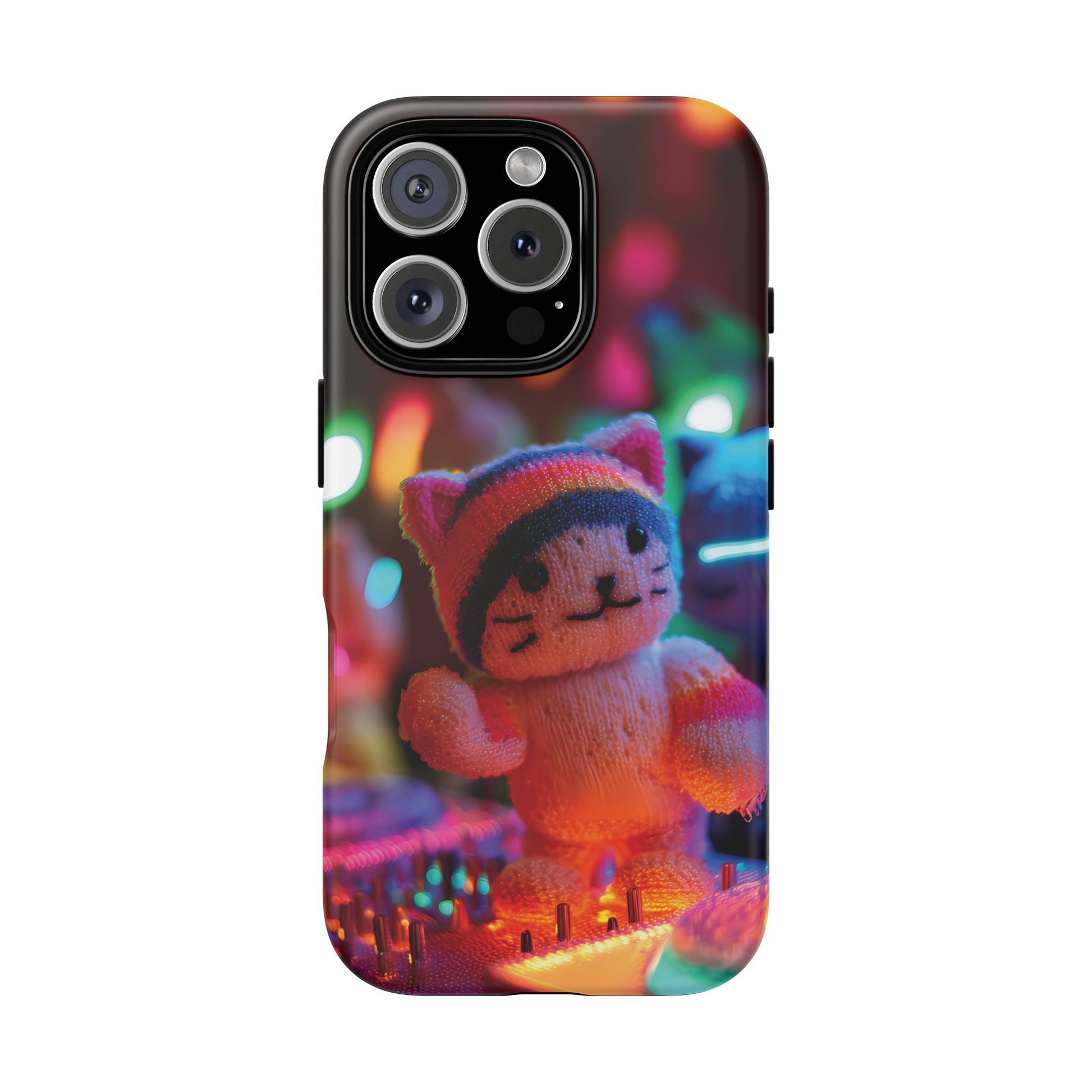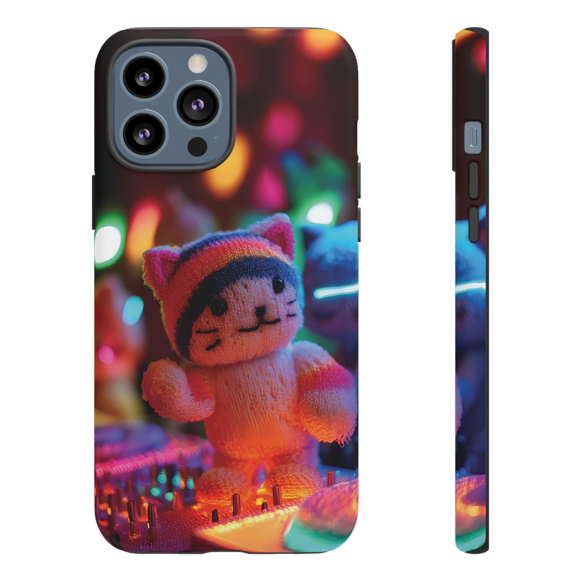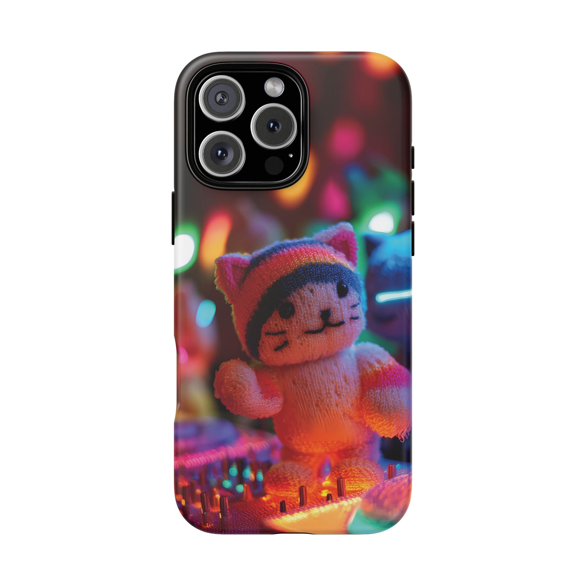 This playful kitty rocks the DJ booth with glowing decks and a purr-fect sense of rhythm. Bright lights, rave energy, and crochet charm make this the ultimate statement case for your phone.
