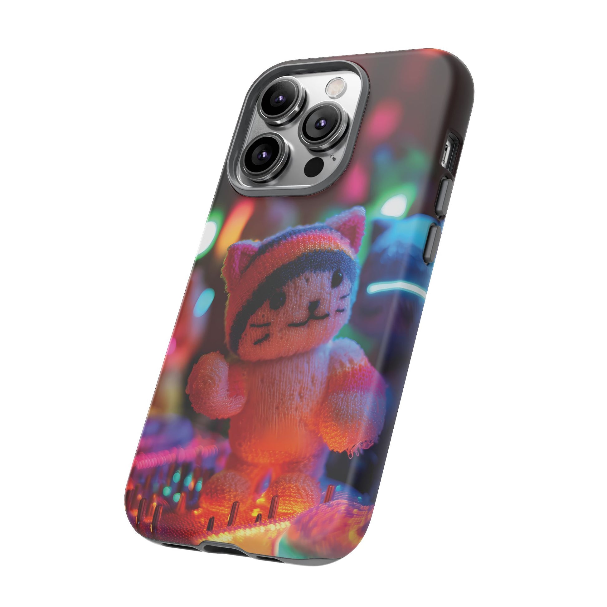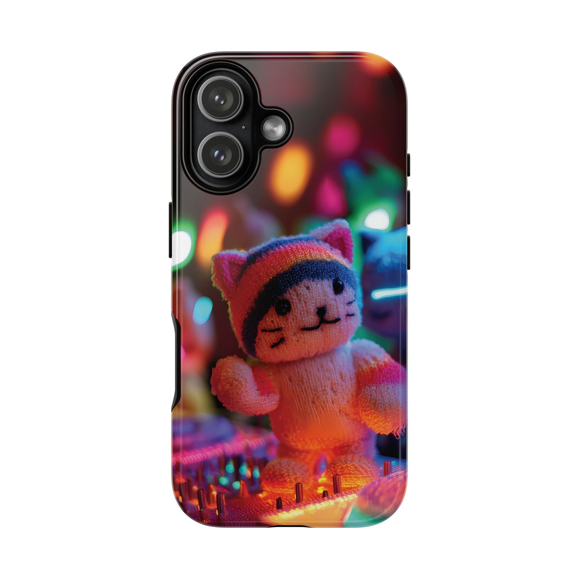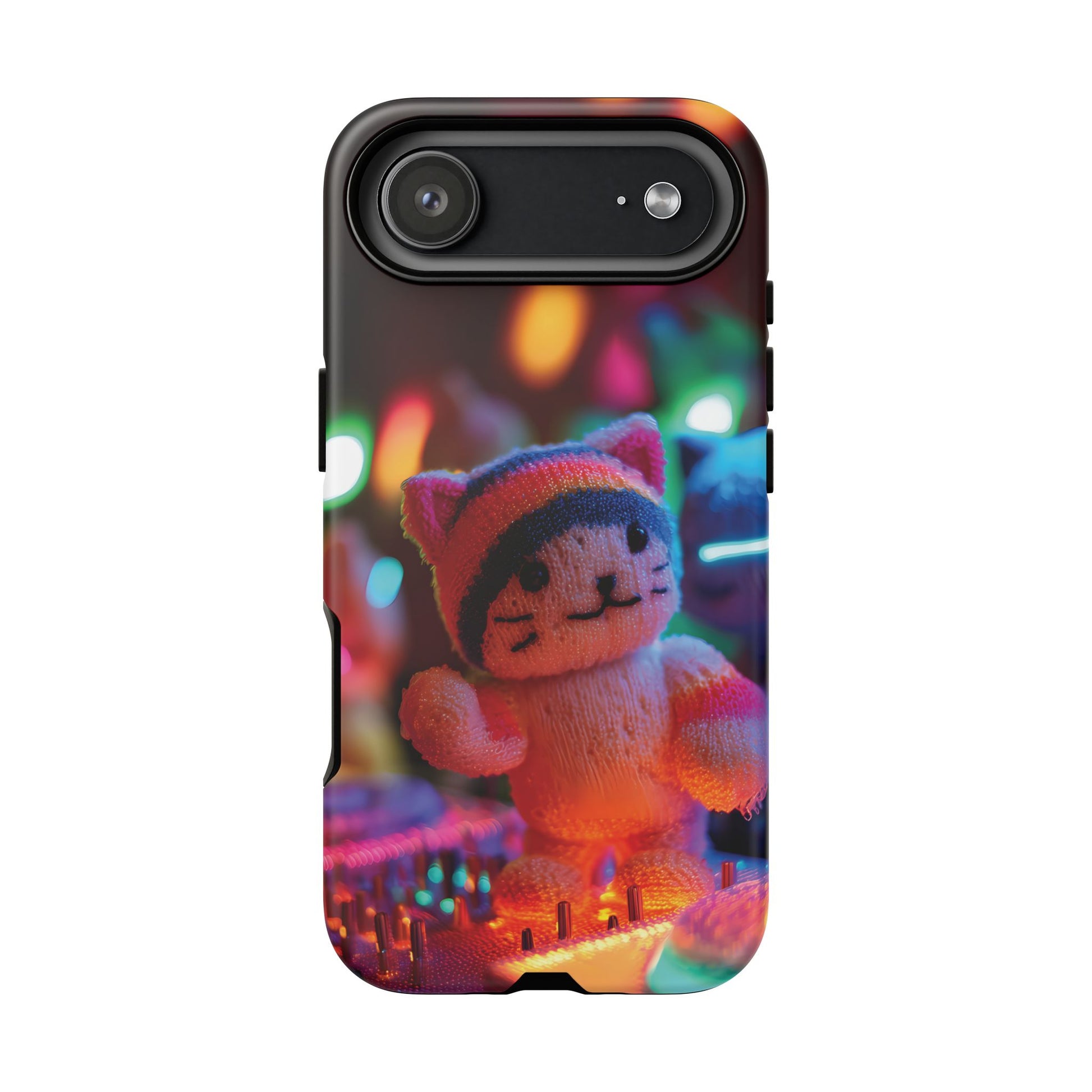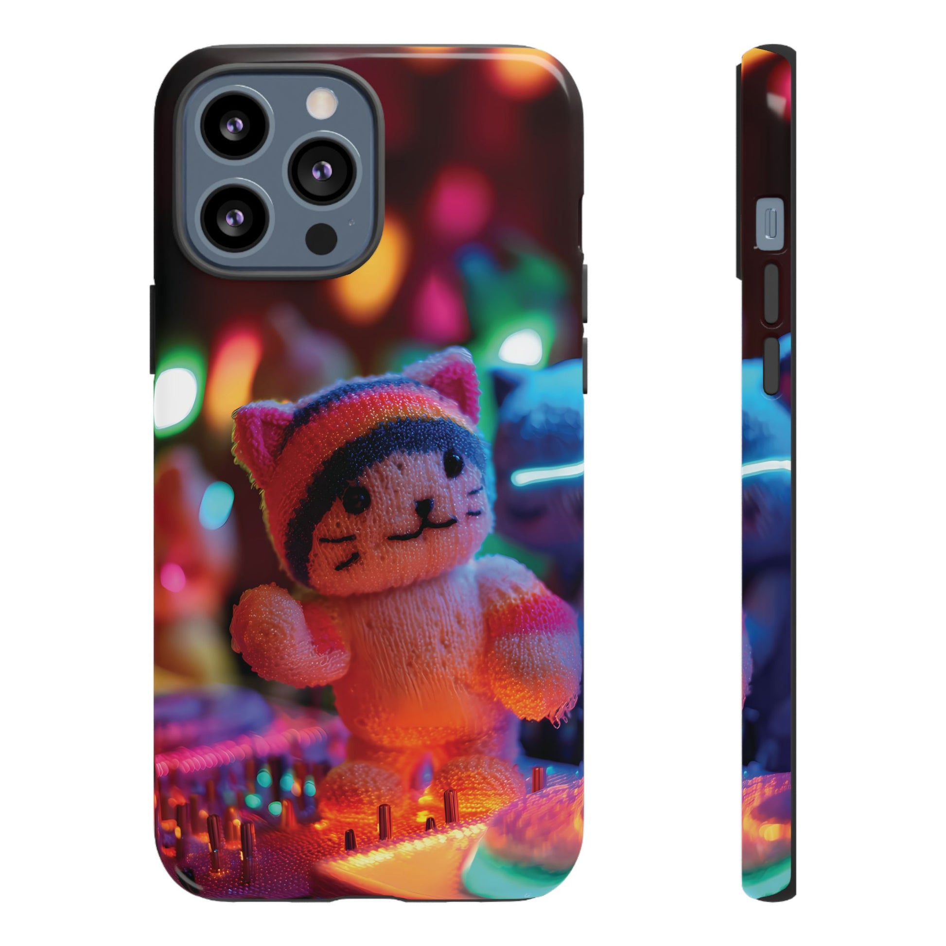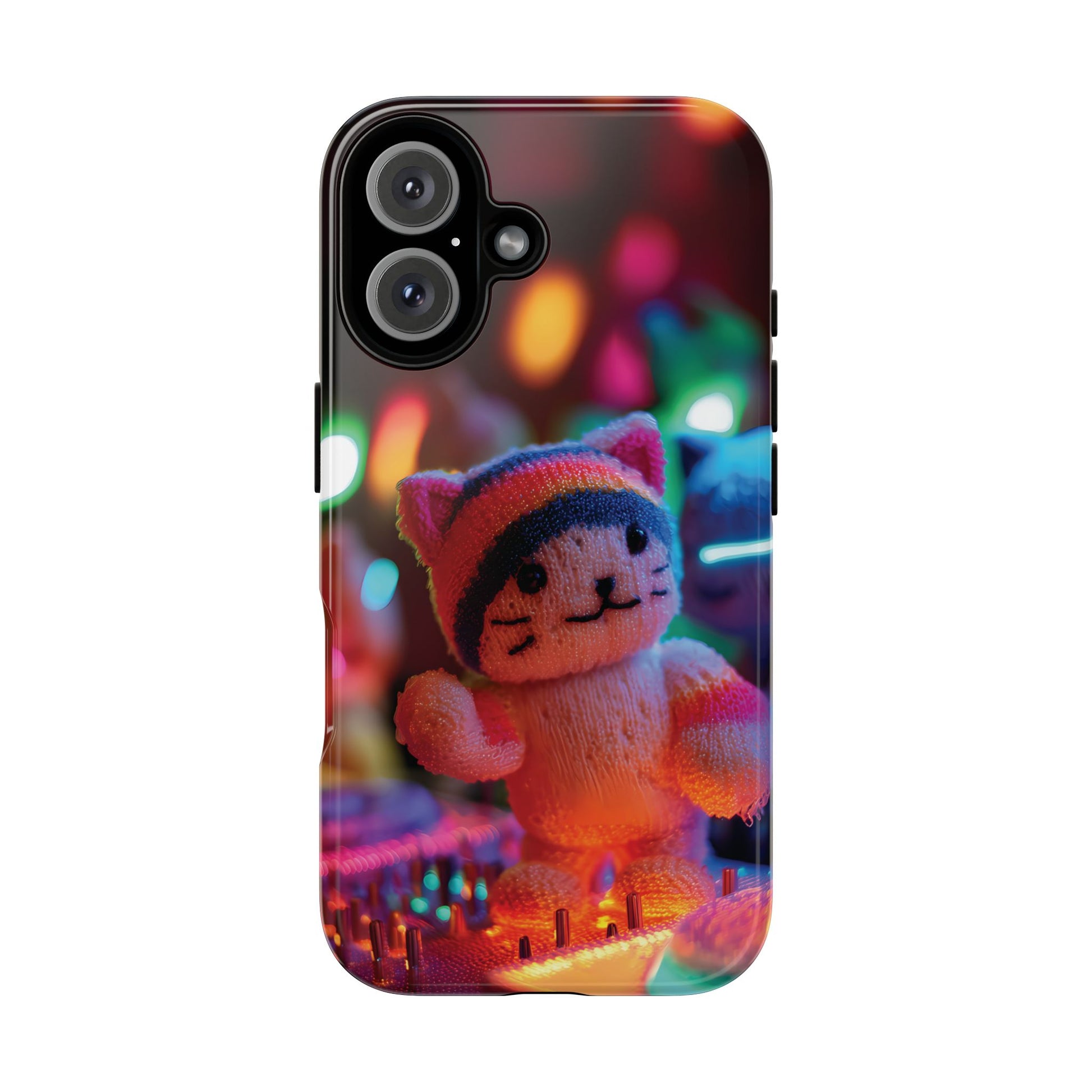 This playful kitty rocks the DJ booth with glowing decks and a purr-fect sense of rhythm. Bright lights, rave energy, and crochet charm make this the ultimate statement case for your phone.