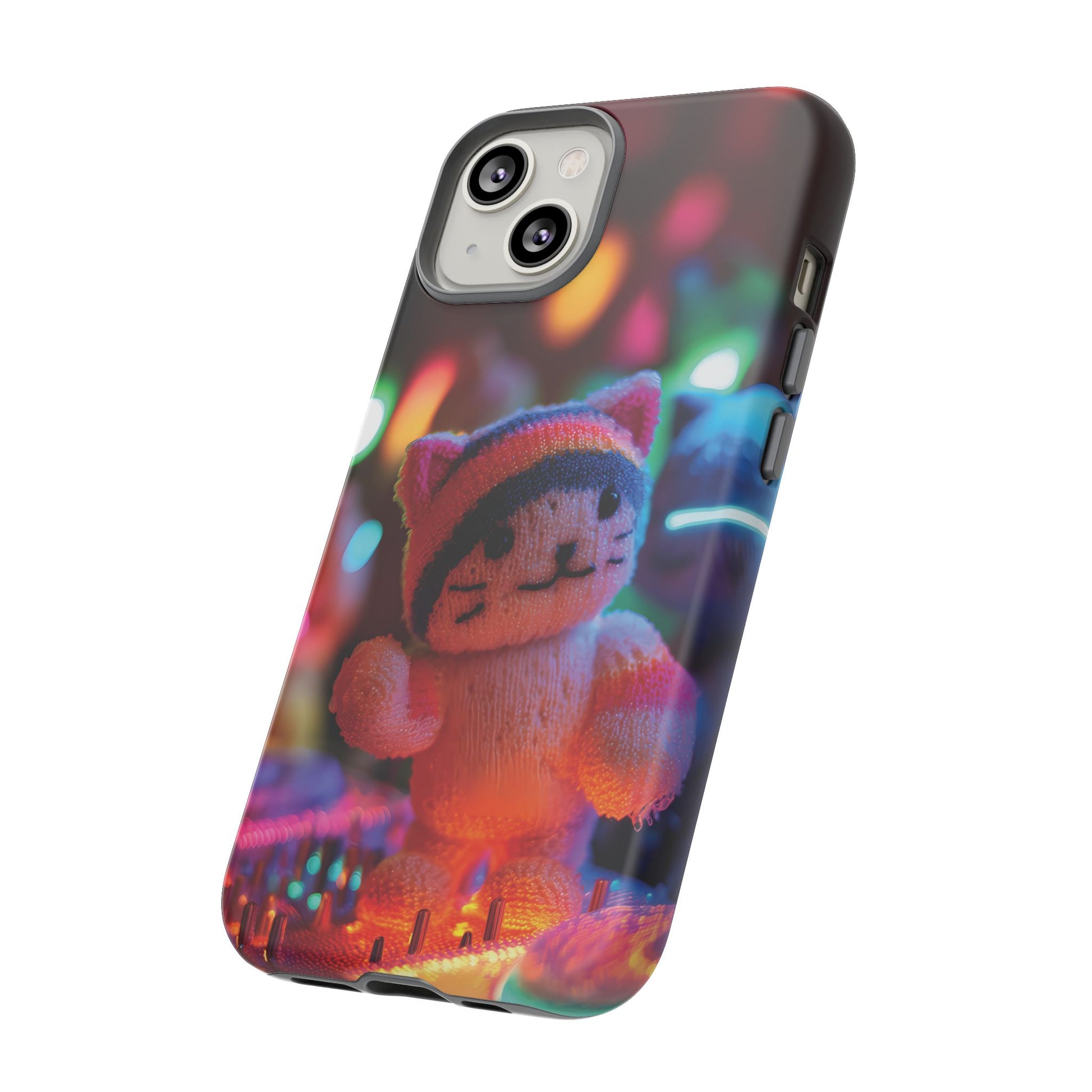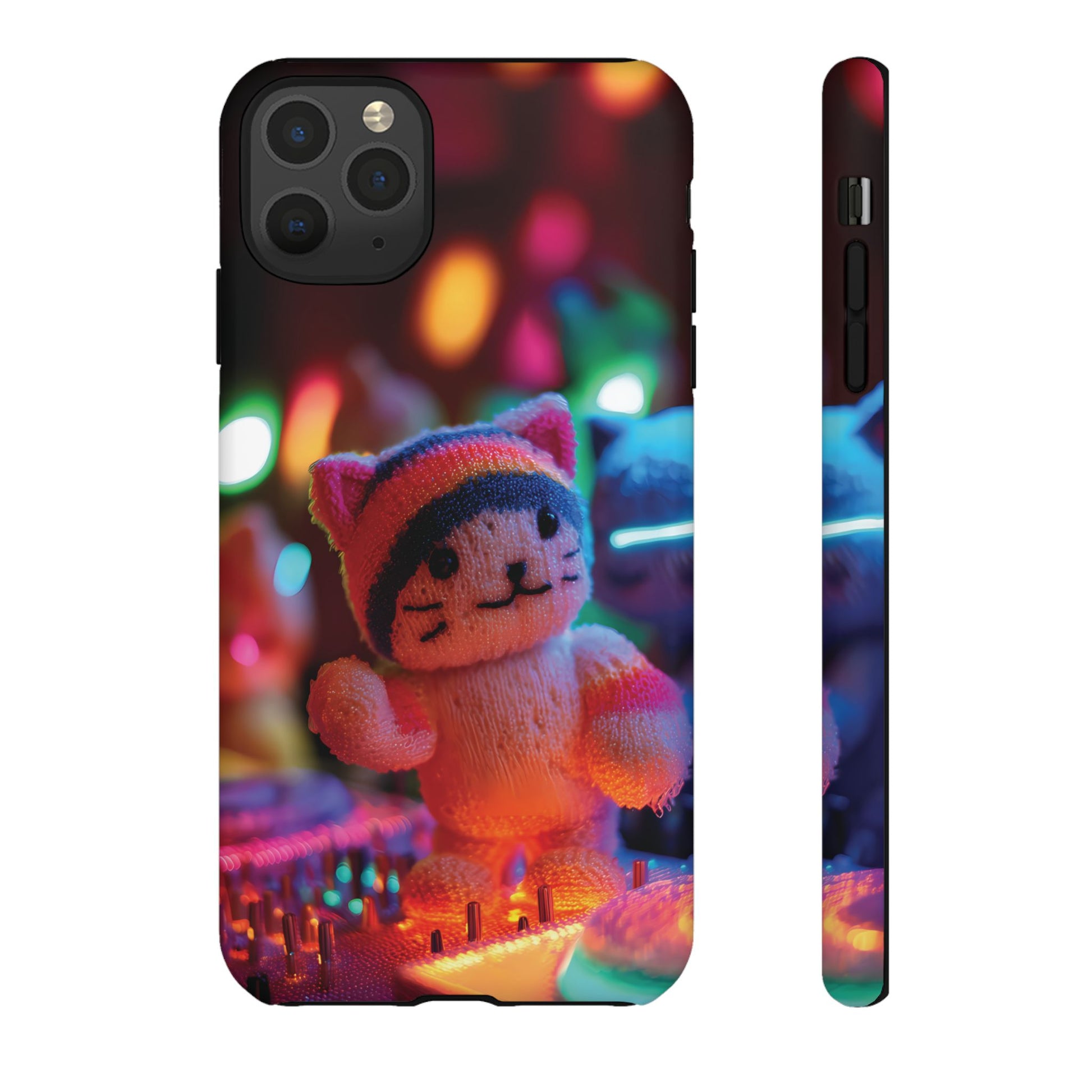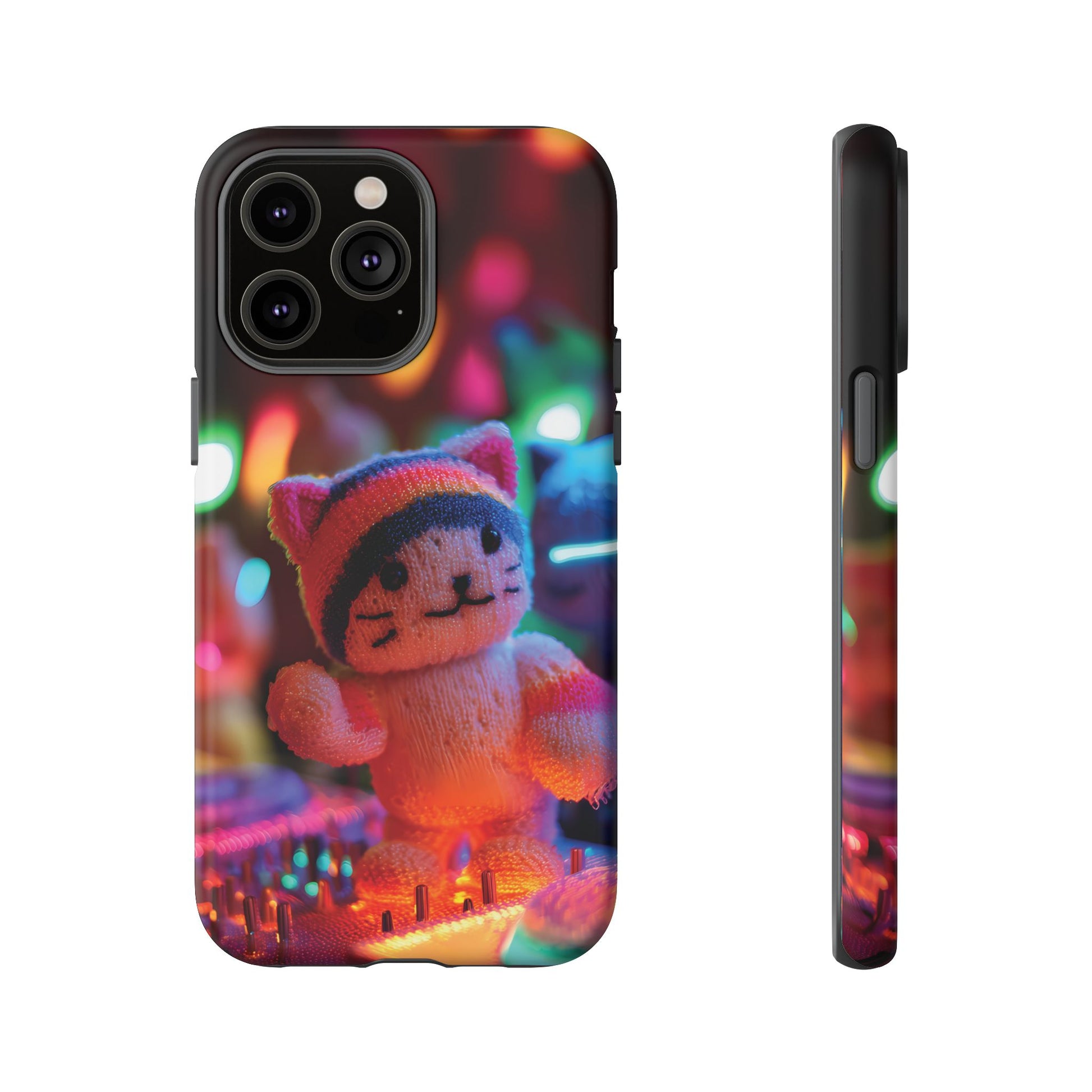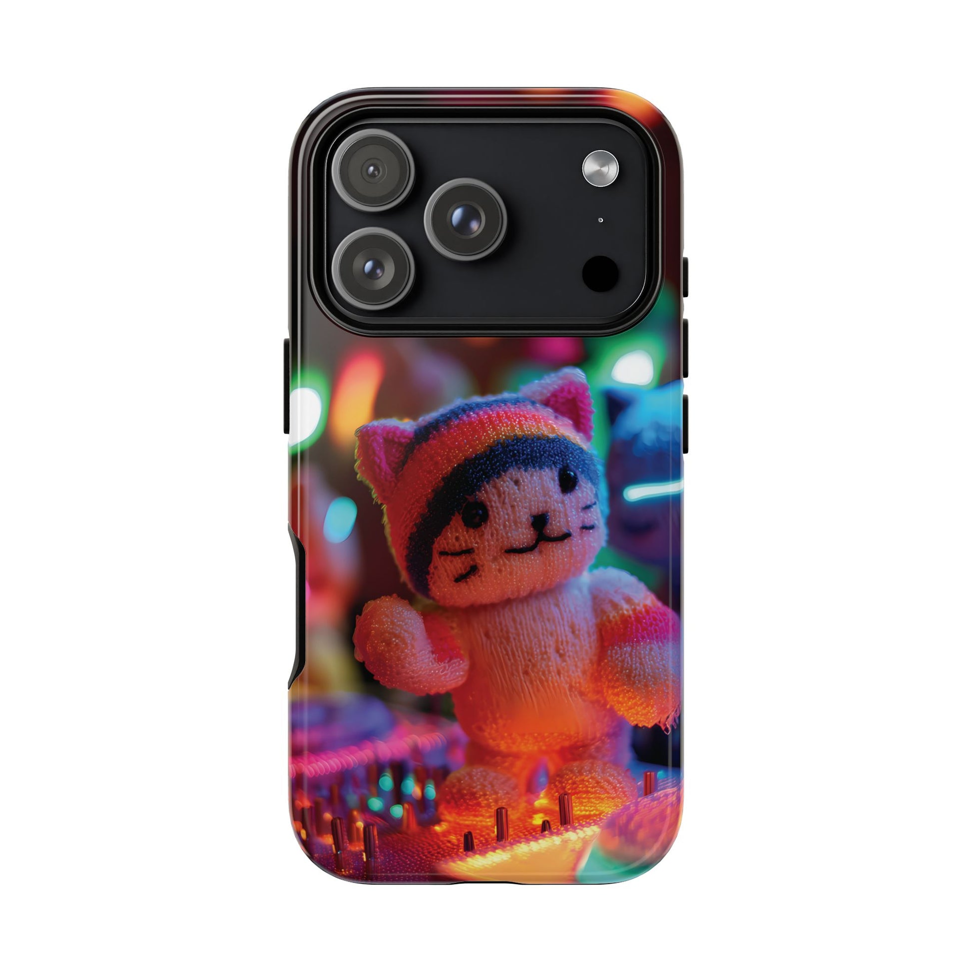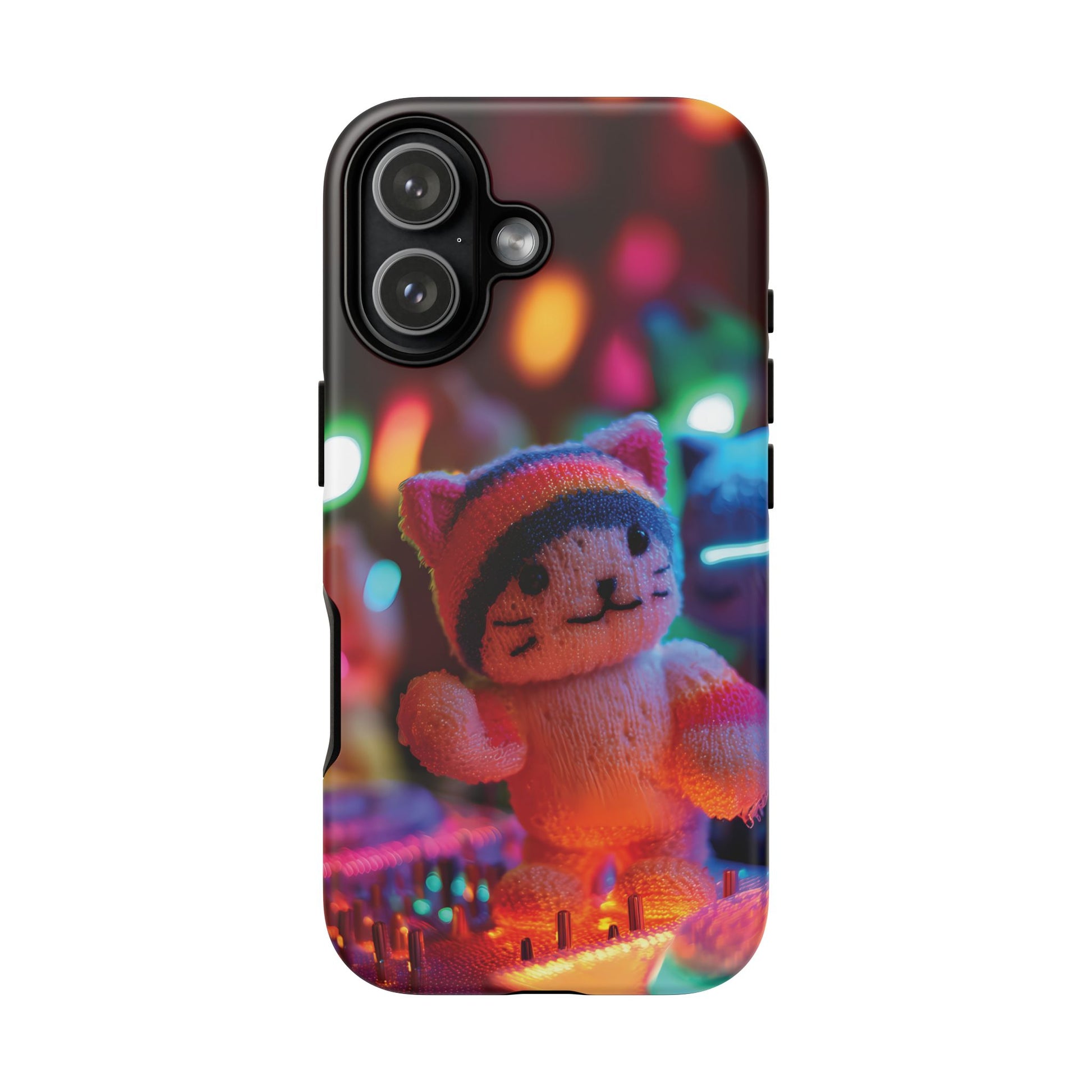 This playful kitty rocks the DJ booth with glowing decks and a purr-fect sense of rhythm. Bright lights, rave energy, and crochet charm make this the ultimate statement case for your phone.