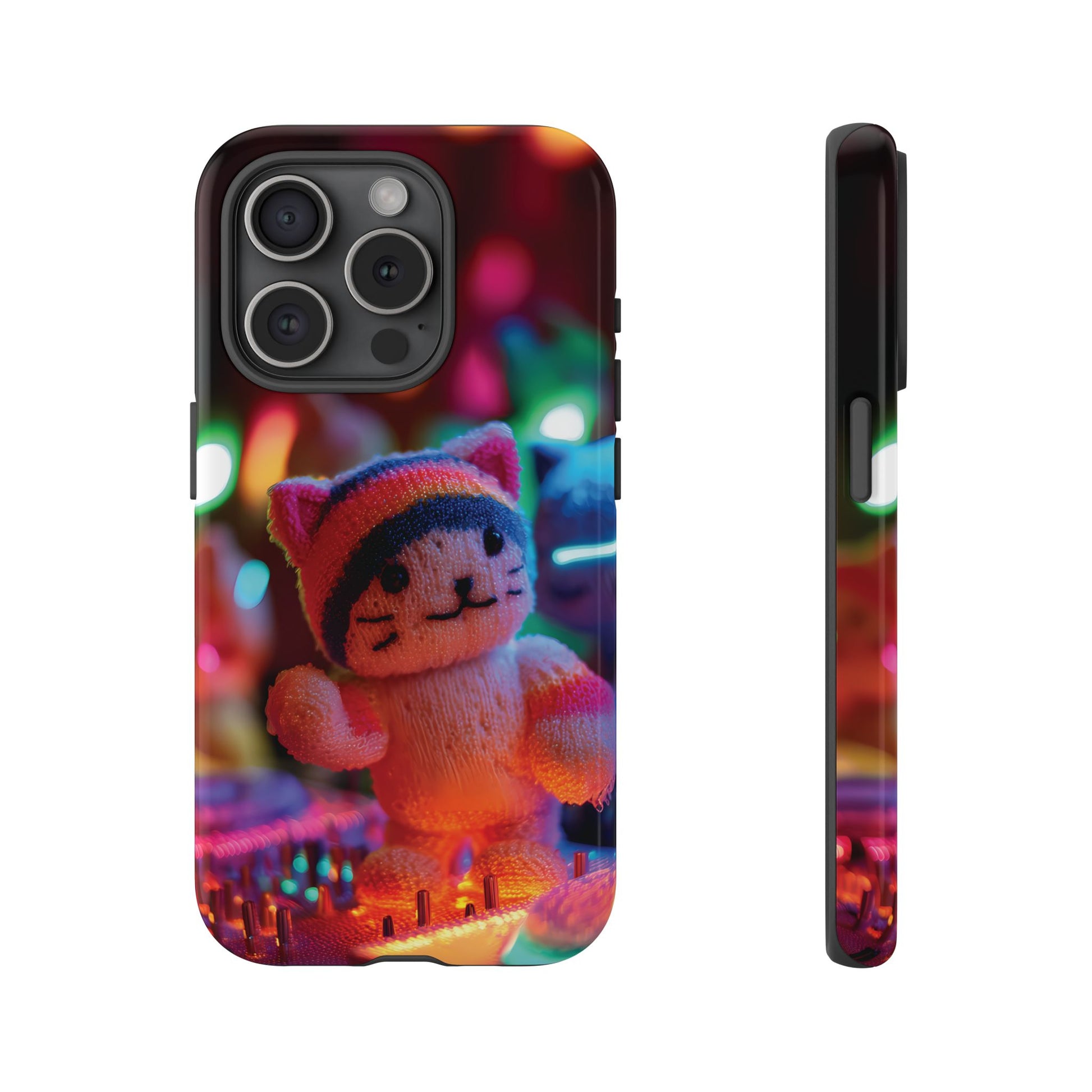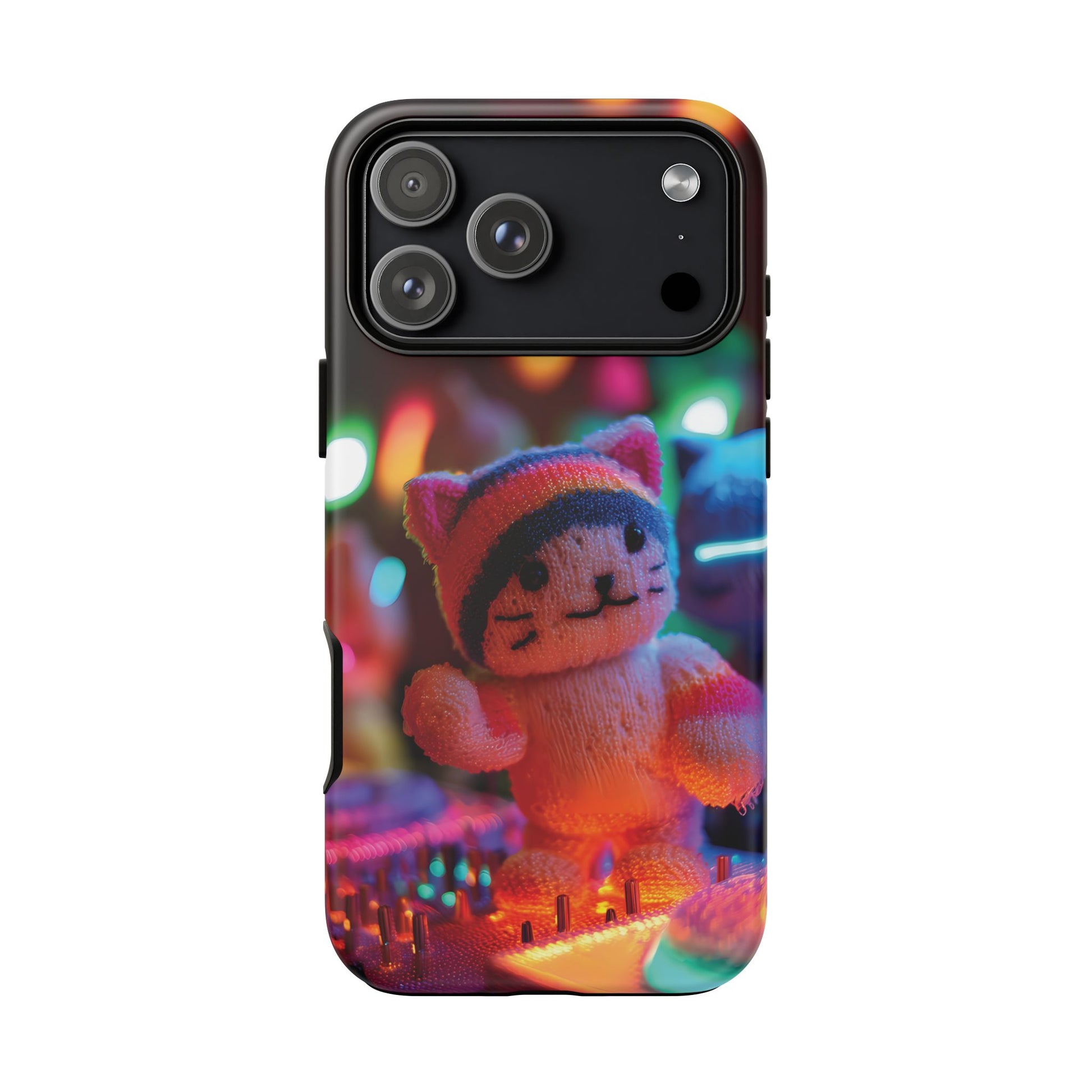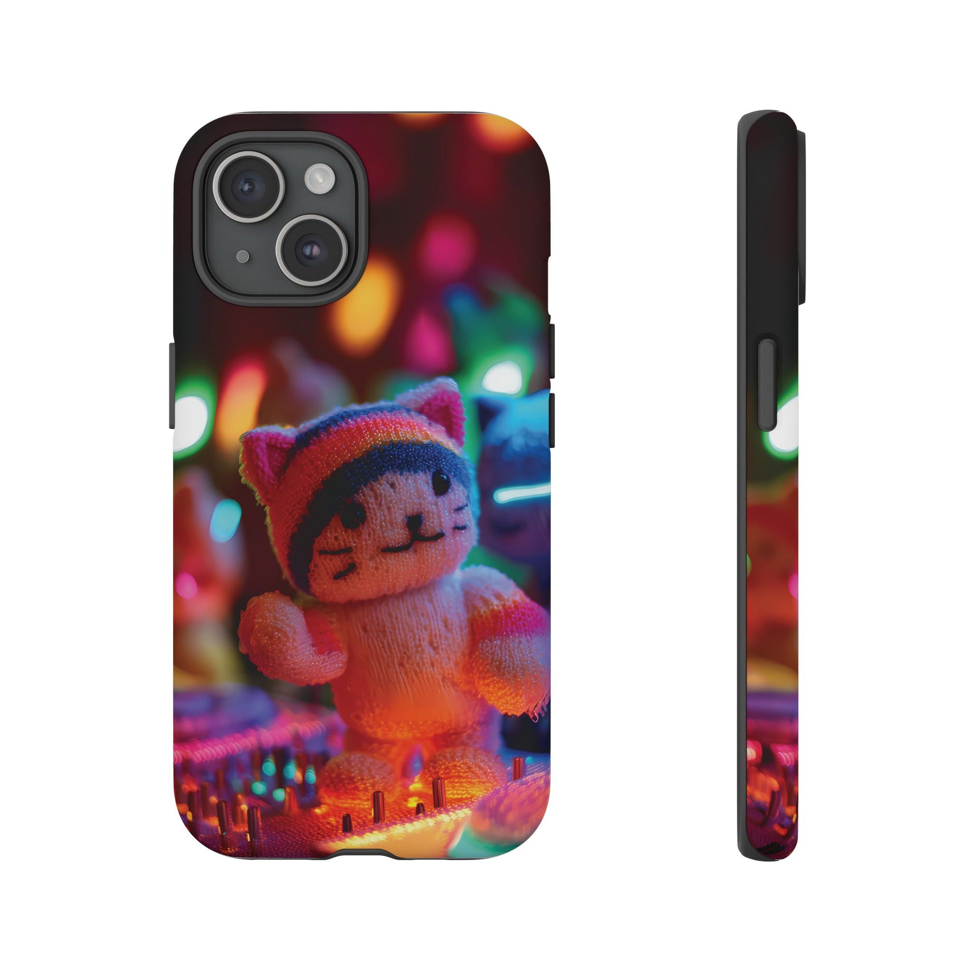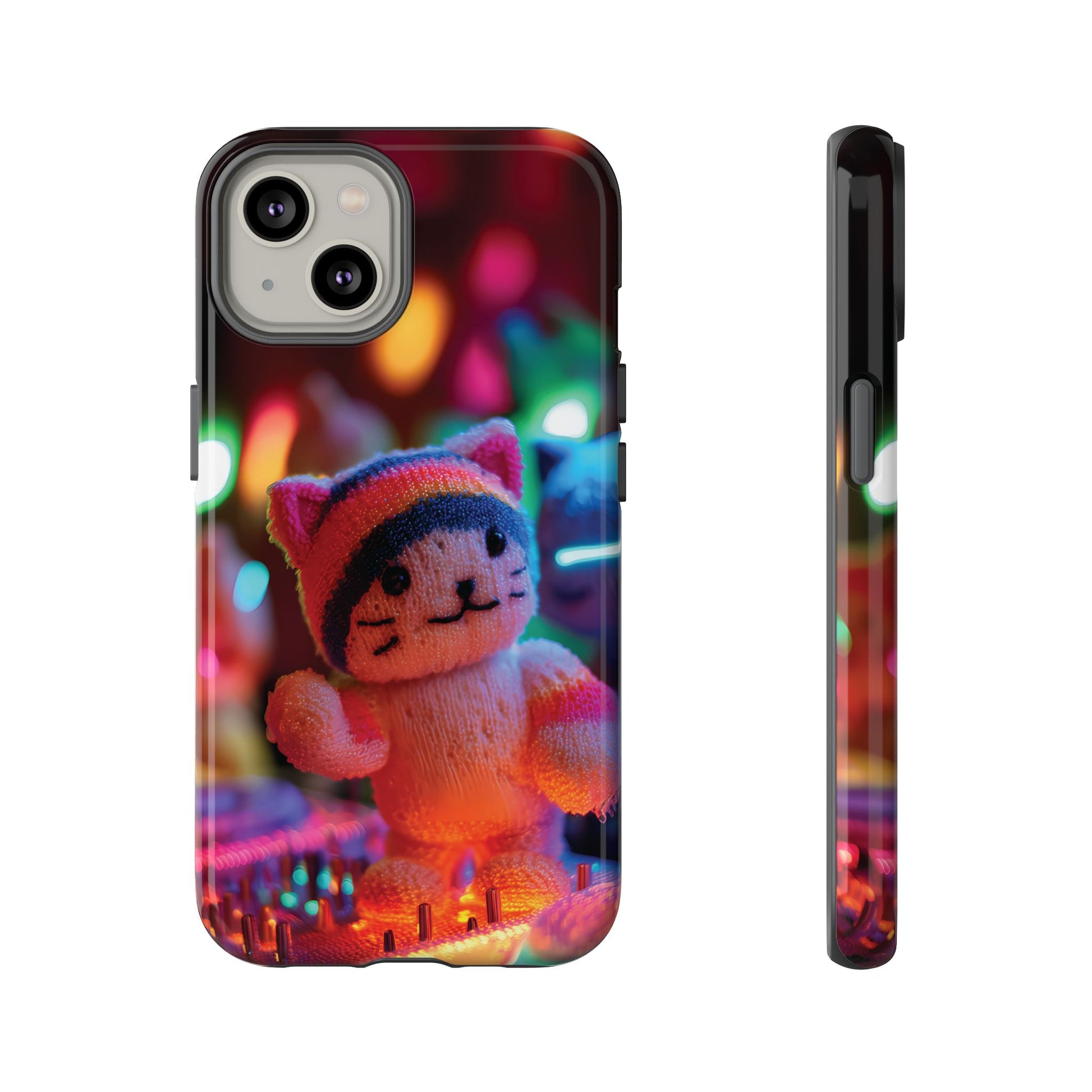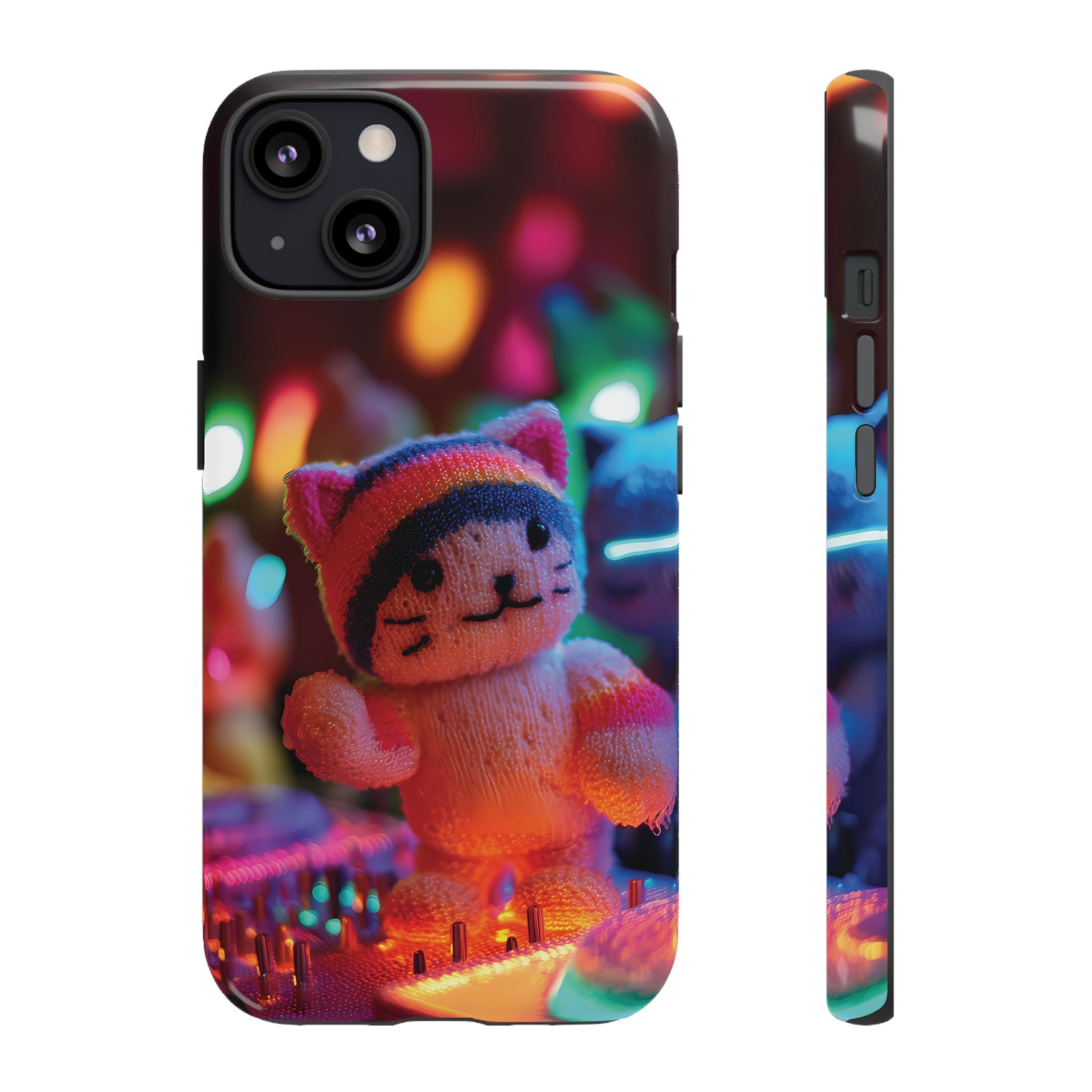 This playful kitty rocks the DJ booth with glowing decks and a purr-fect sense of rhythm. Bright lights, rave energy, and crochet charm make this the ultimate statement case for your phone.