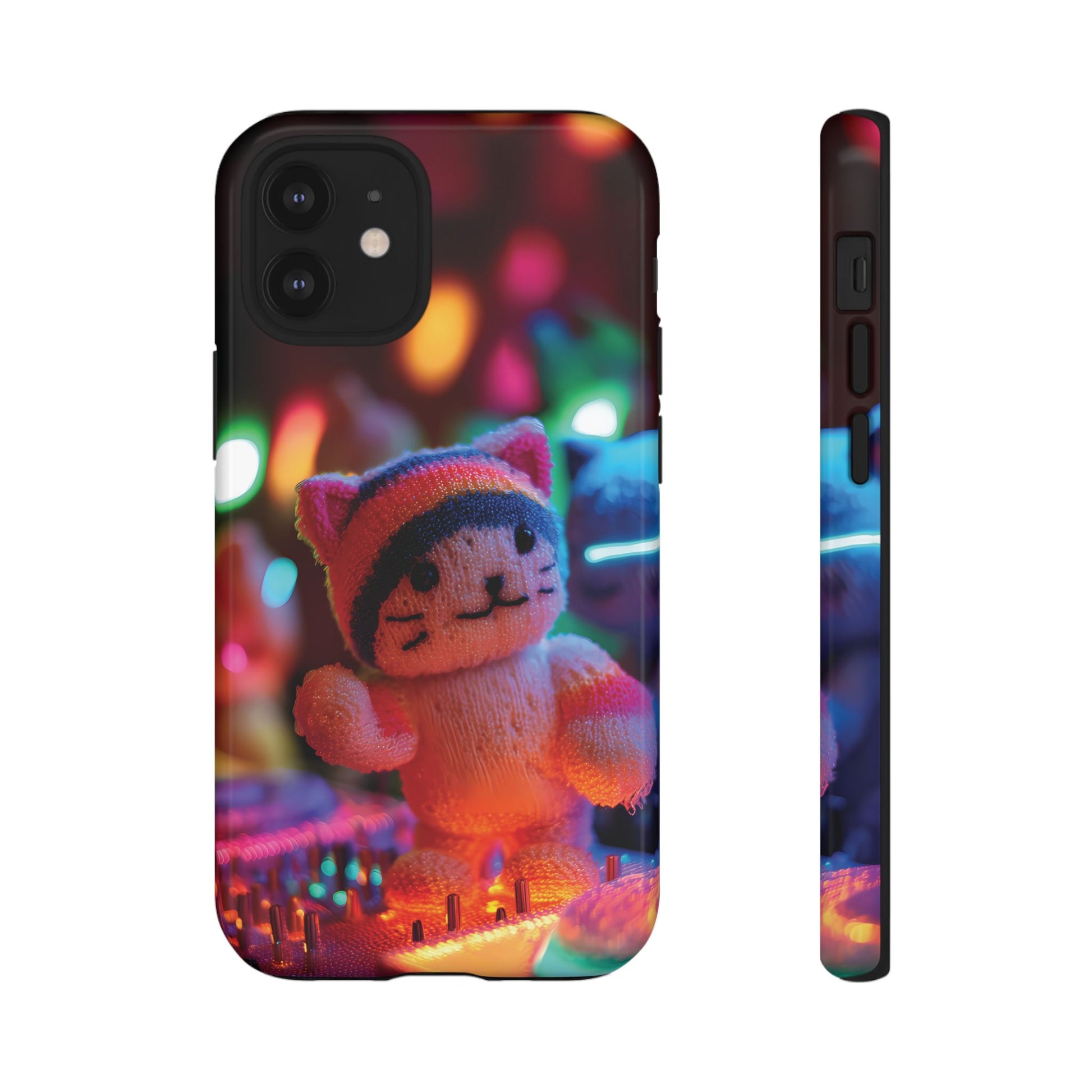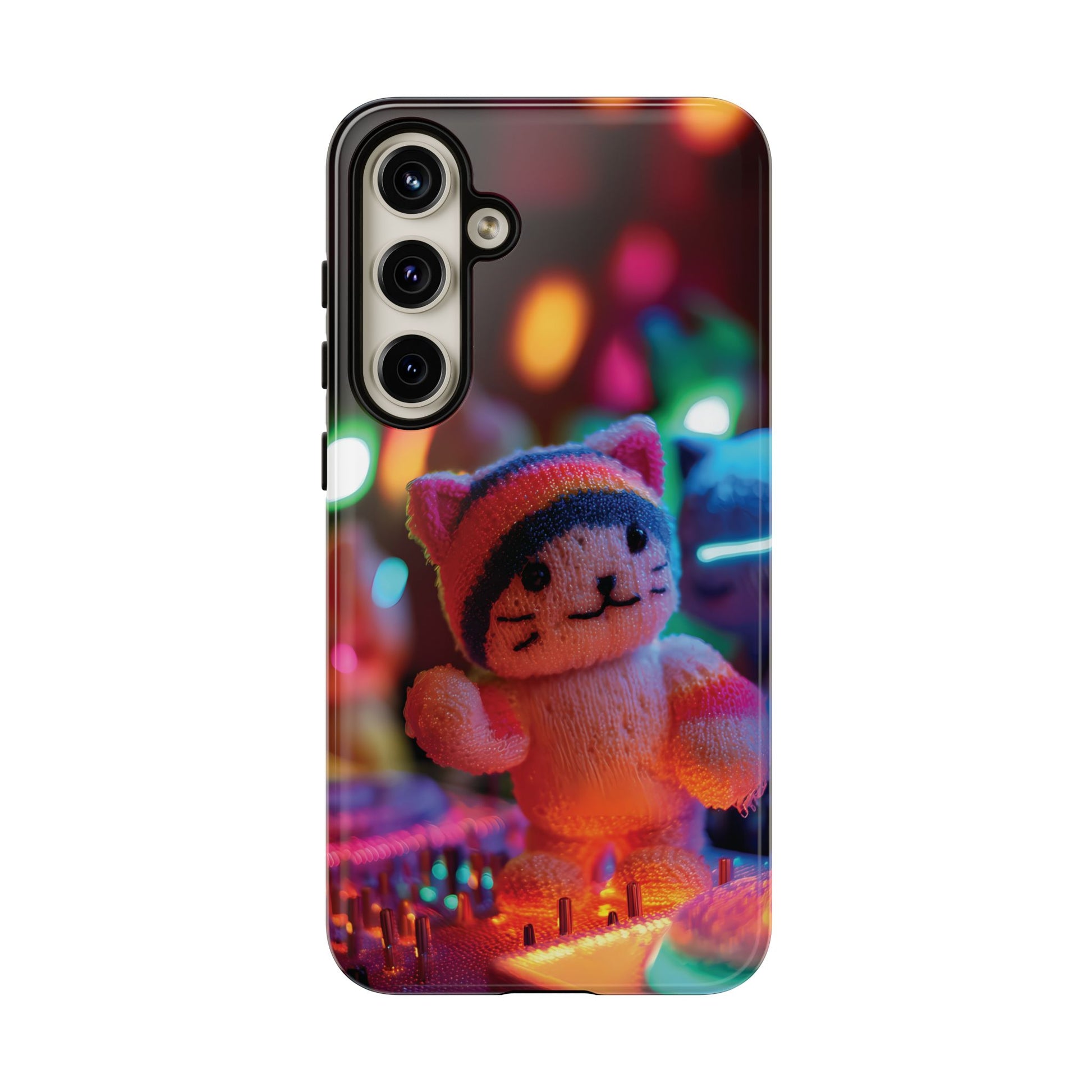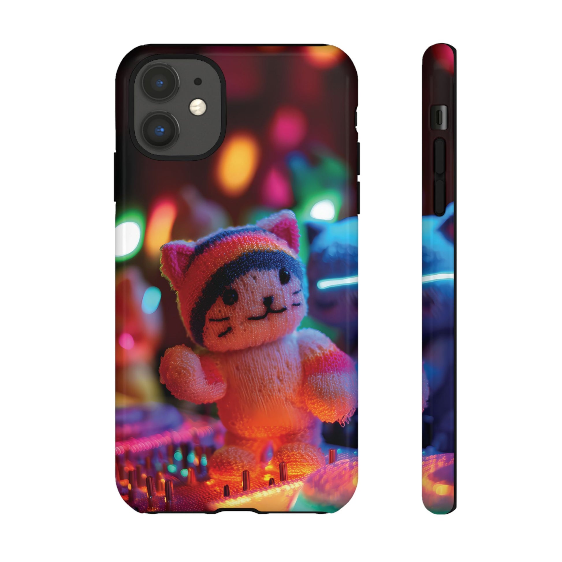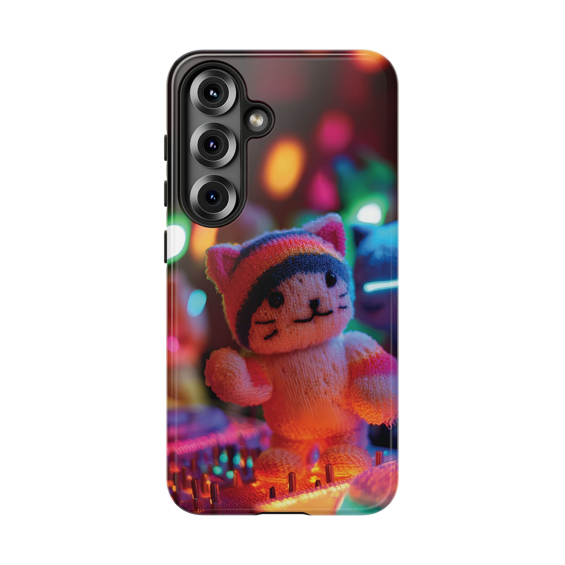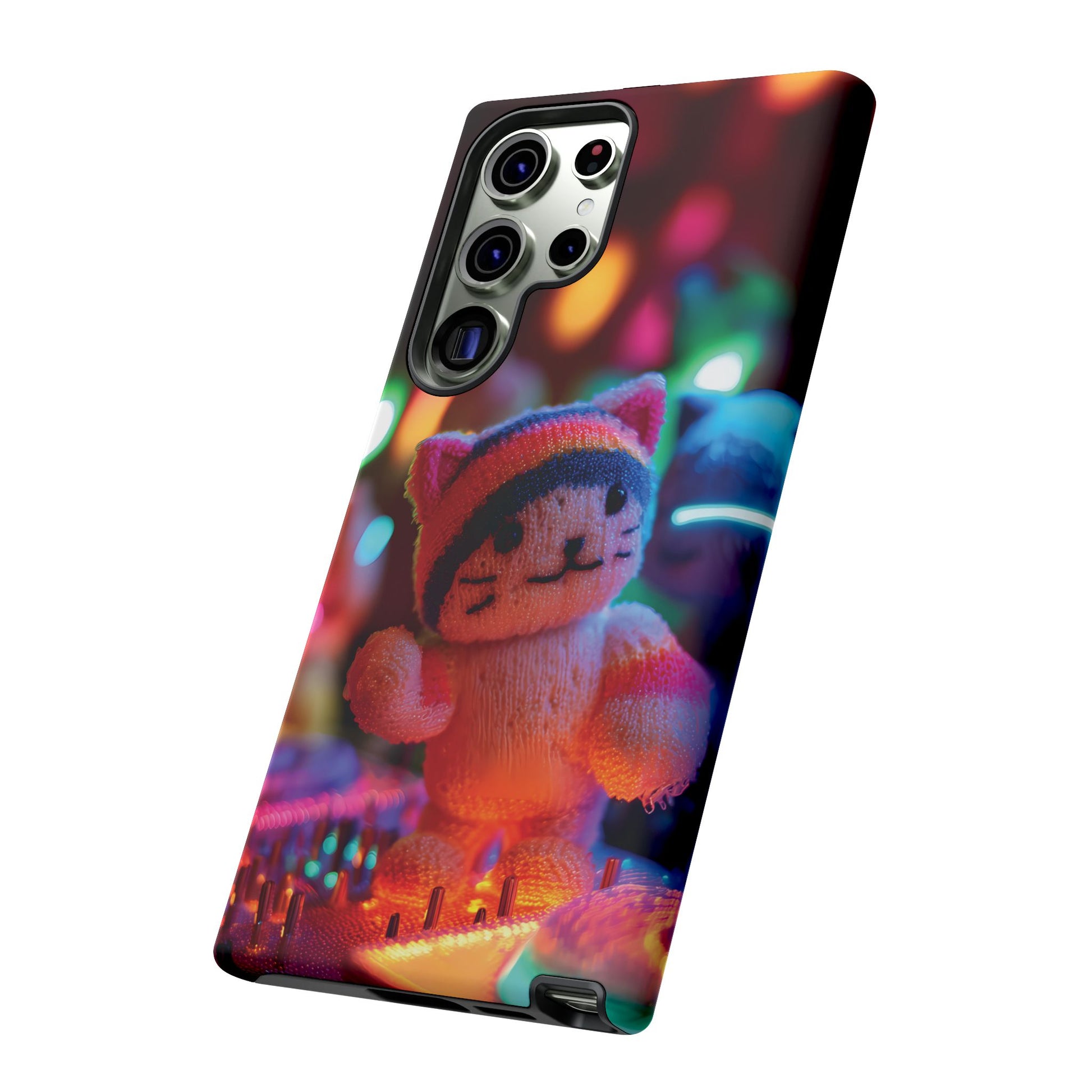 This playful kitty rocks the DJ booth with glowing decks and a purr-fect sense of rhythm. Bright lights, rave energy, and crochet charm make this the ultimate statement case for your phone.