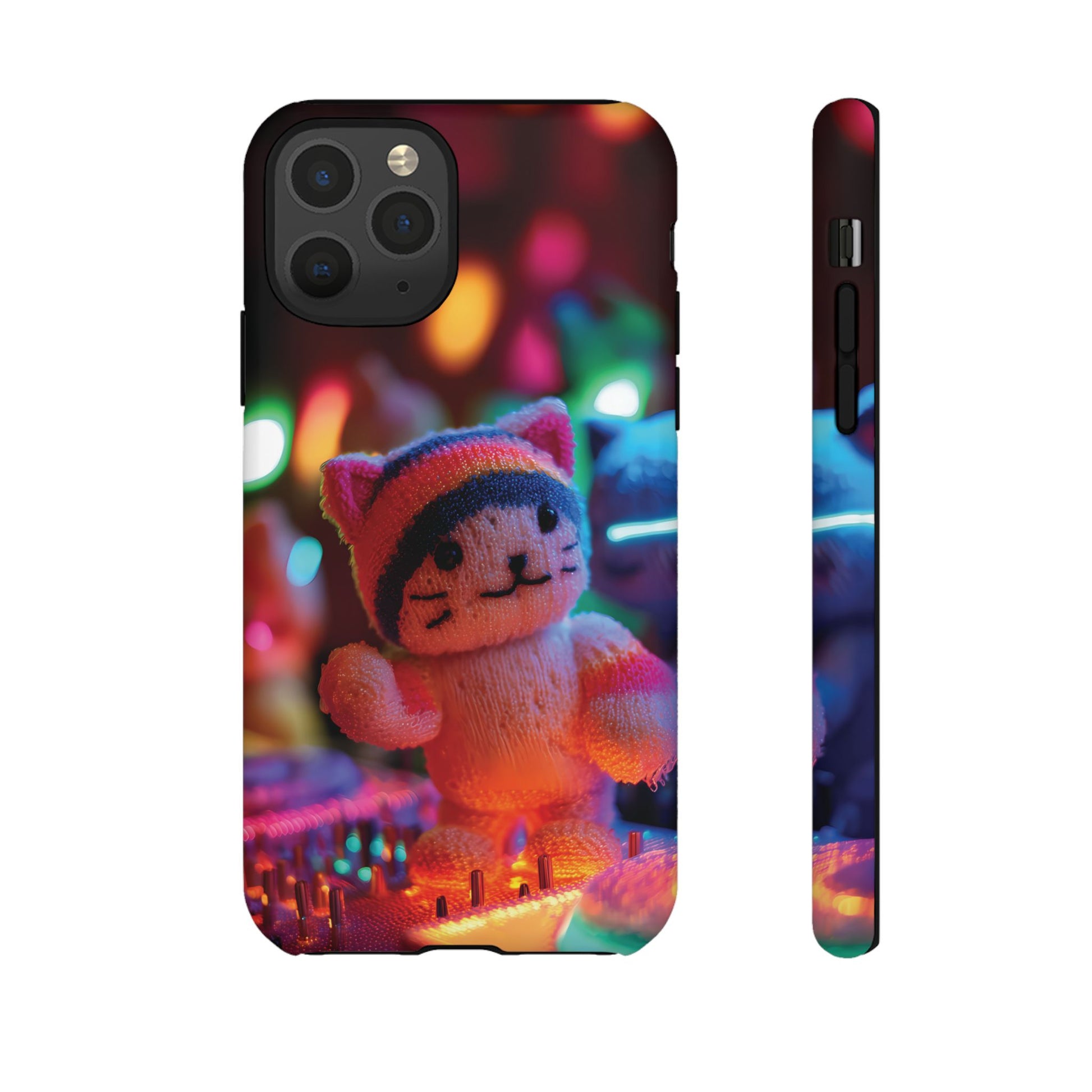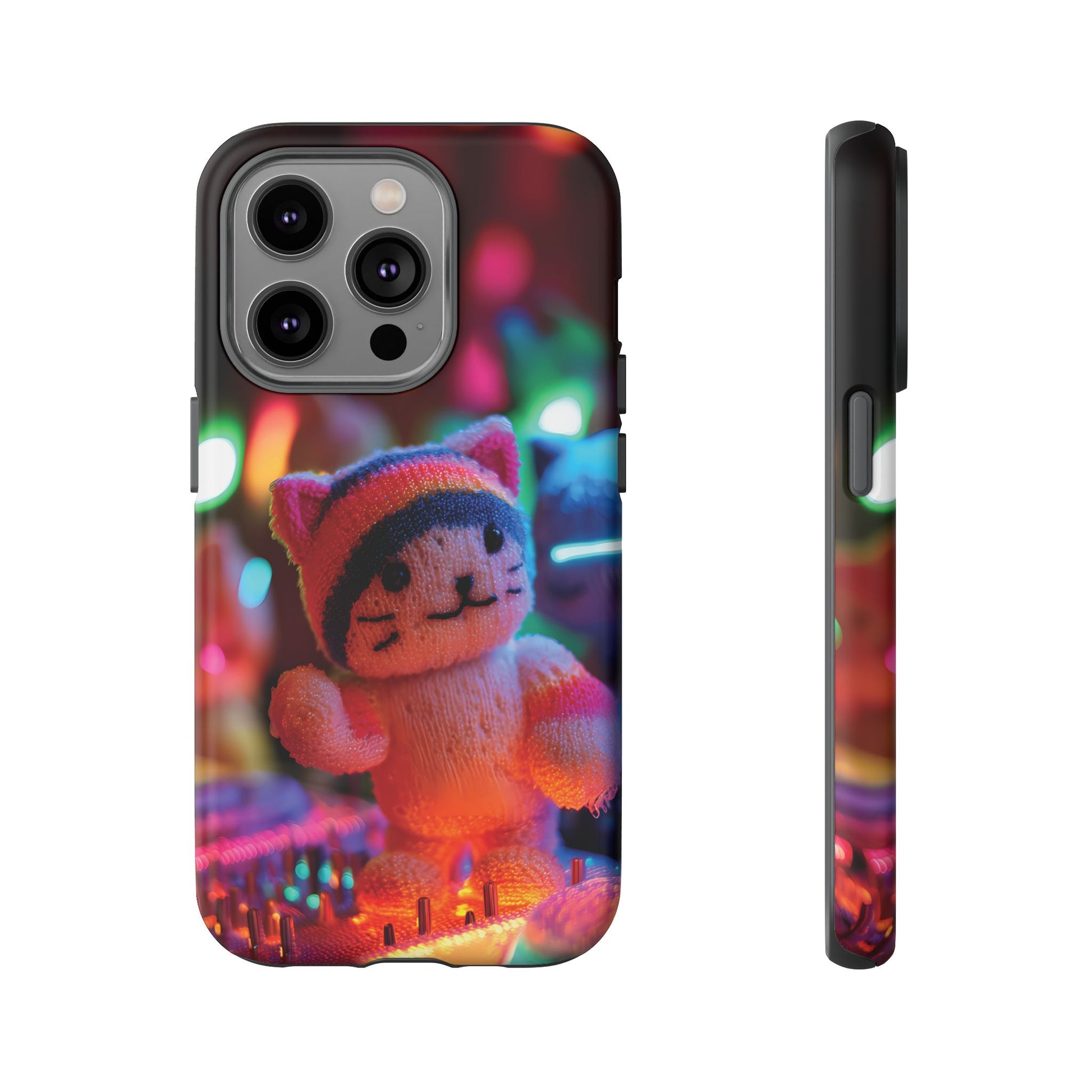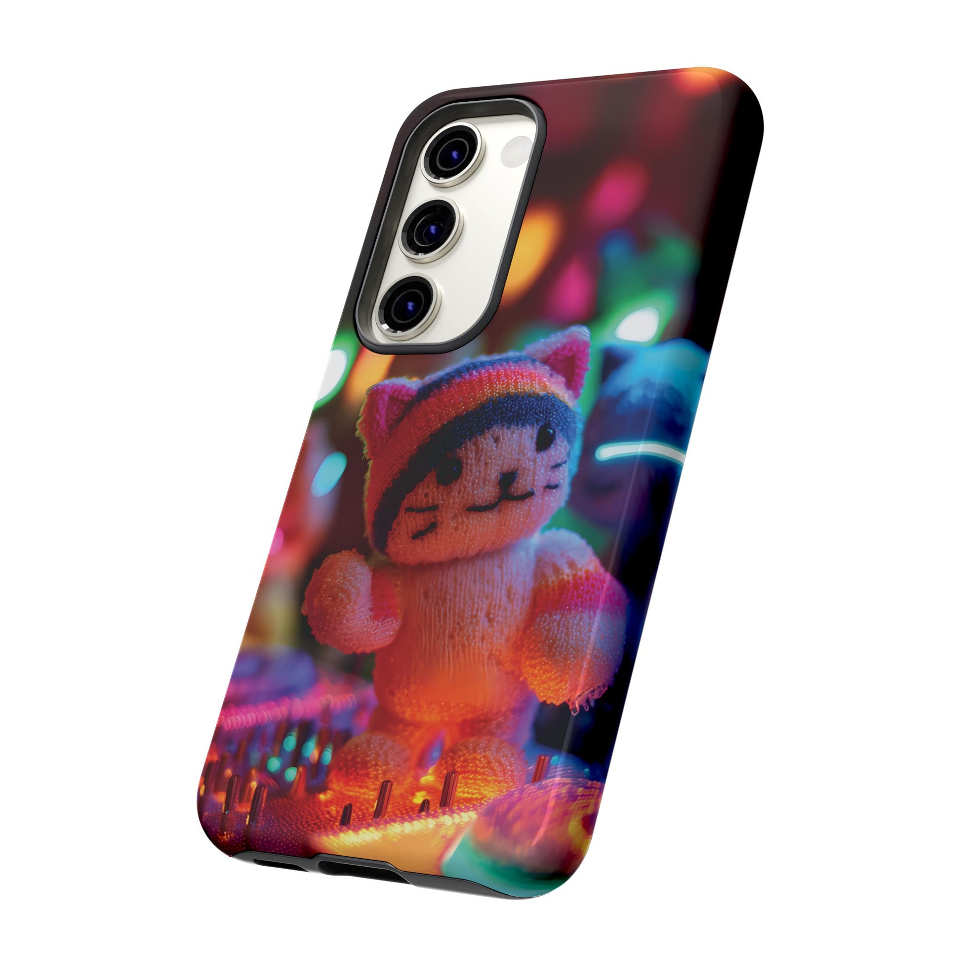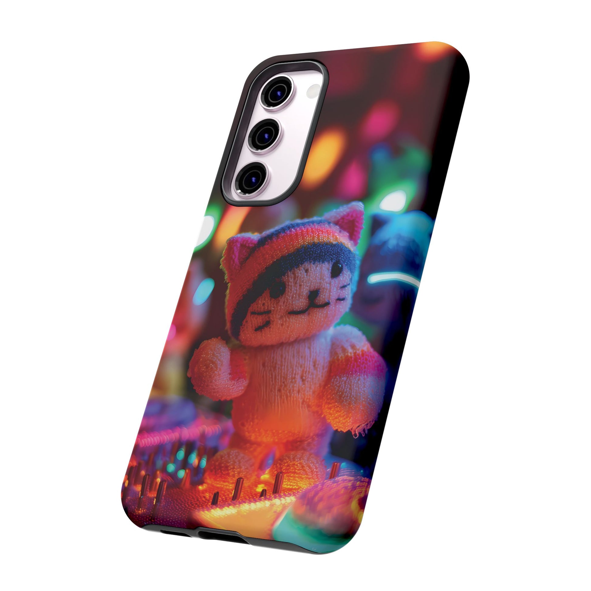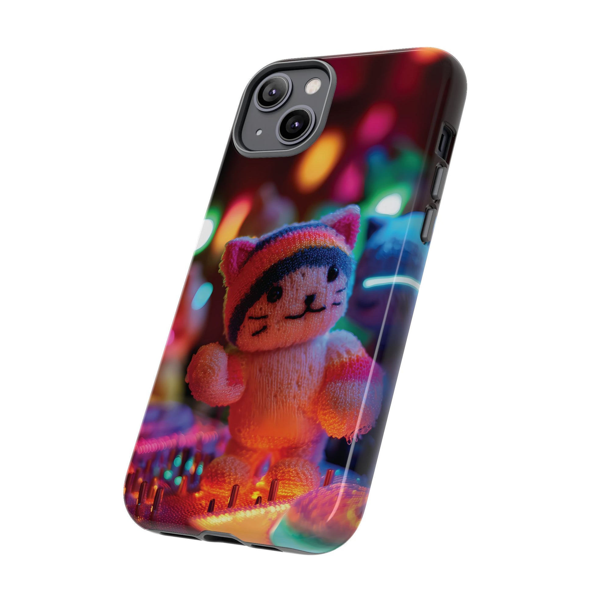 This playful kitty rocks the DJ booth with glowing decks and a purr-fect sense of rhythm. Bright lights, rave energy, and crochet charm make this the ultimate statement case for your phone.