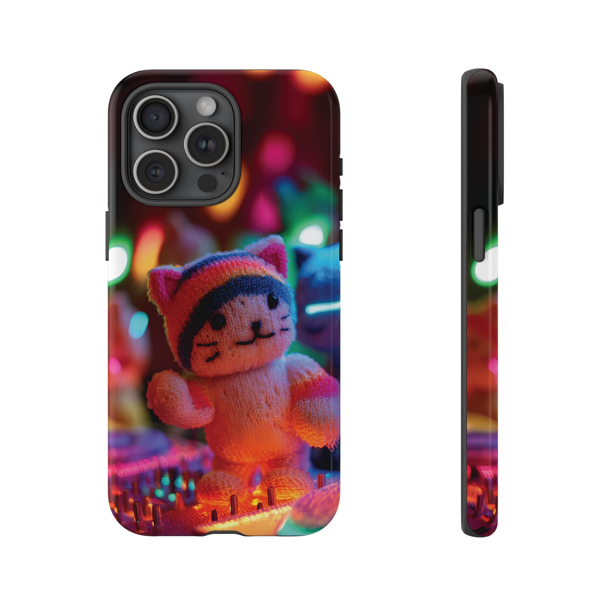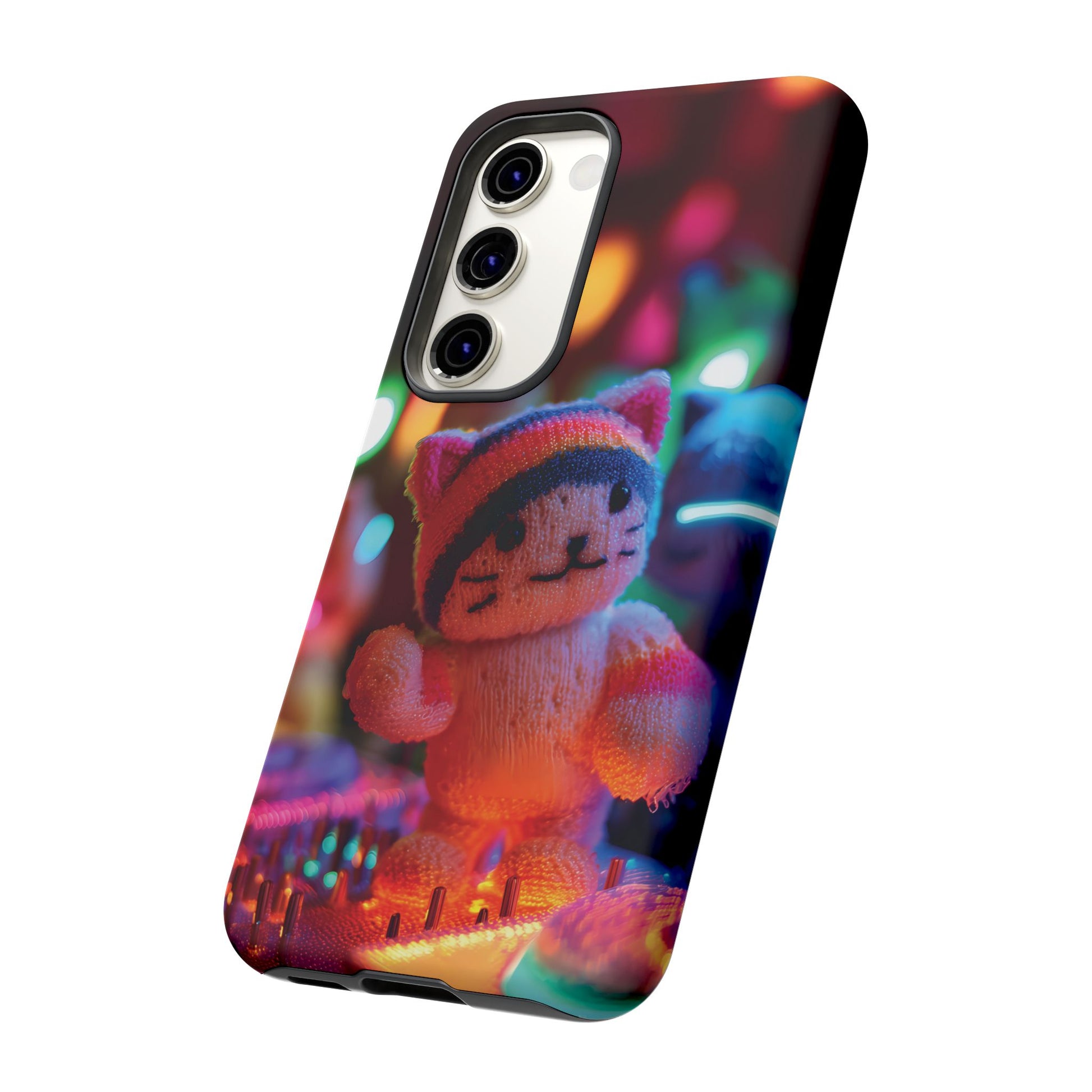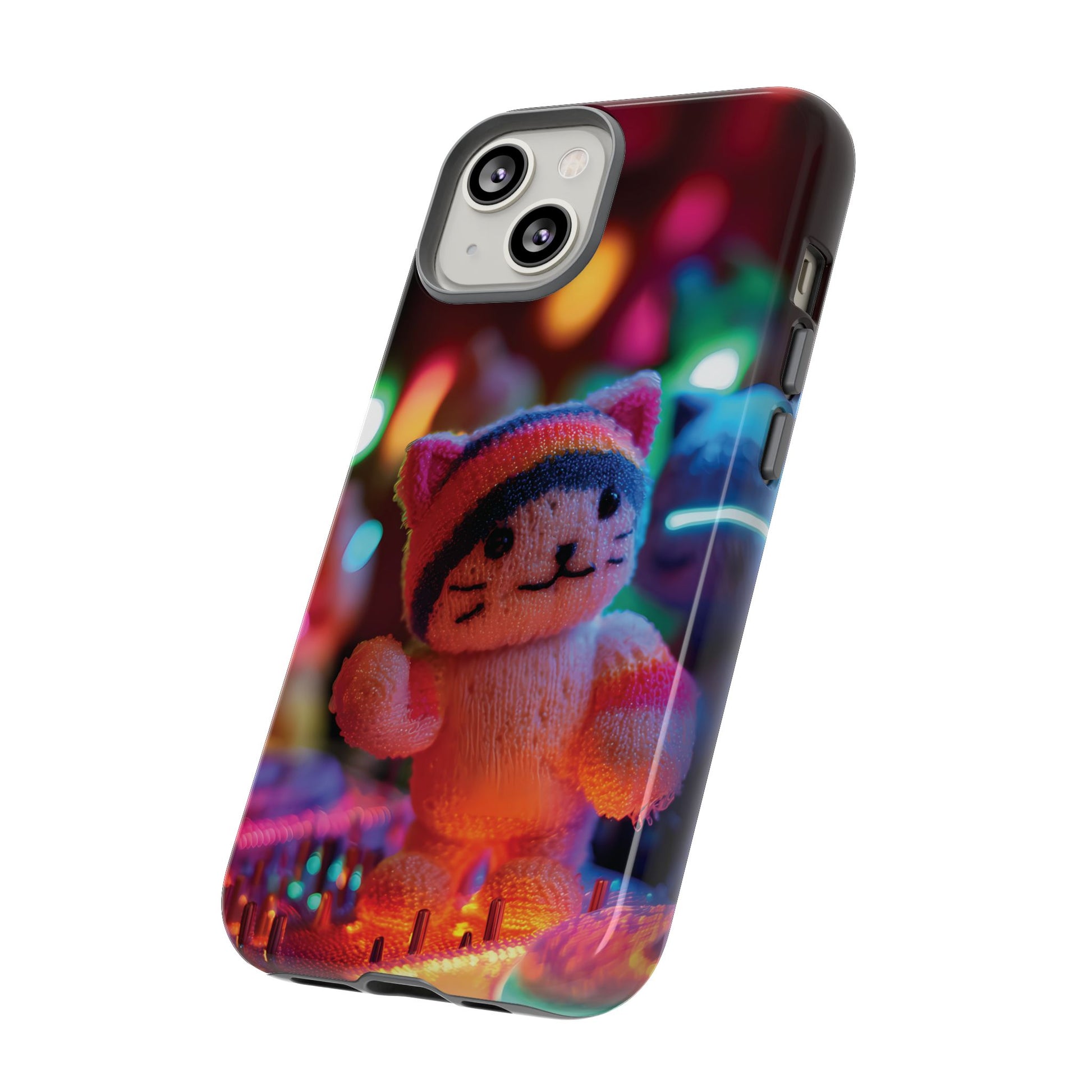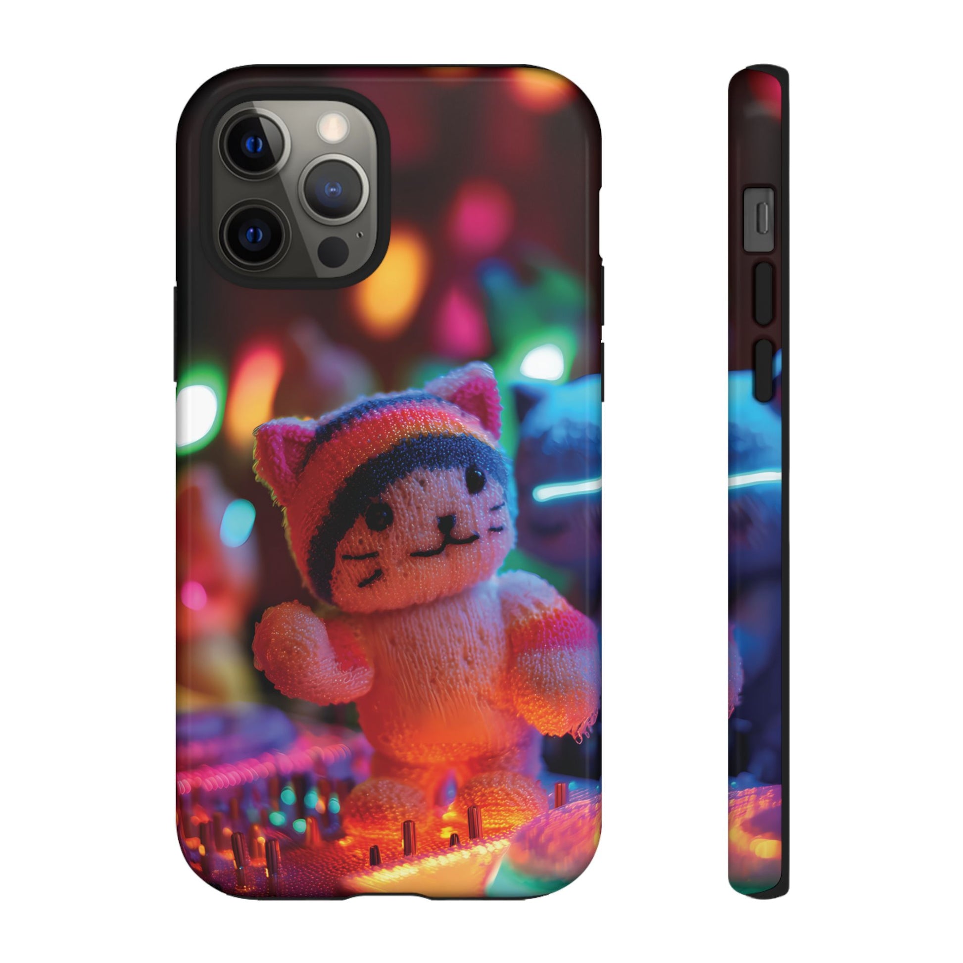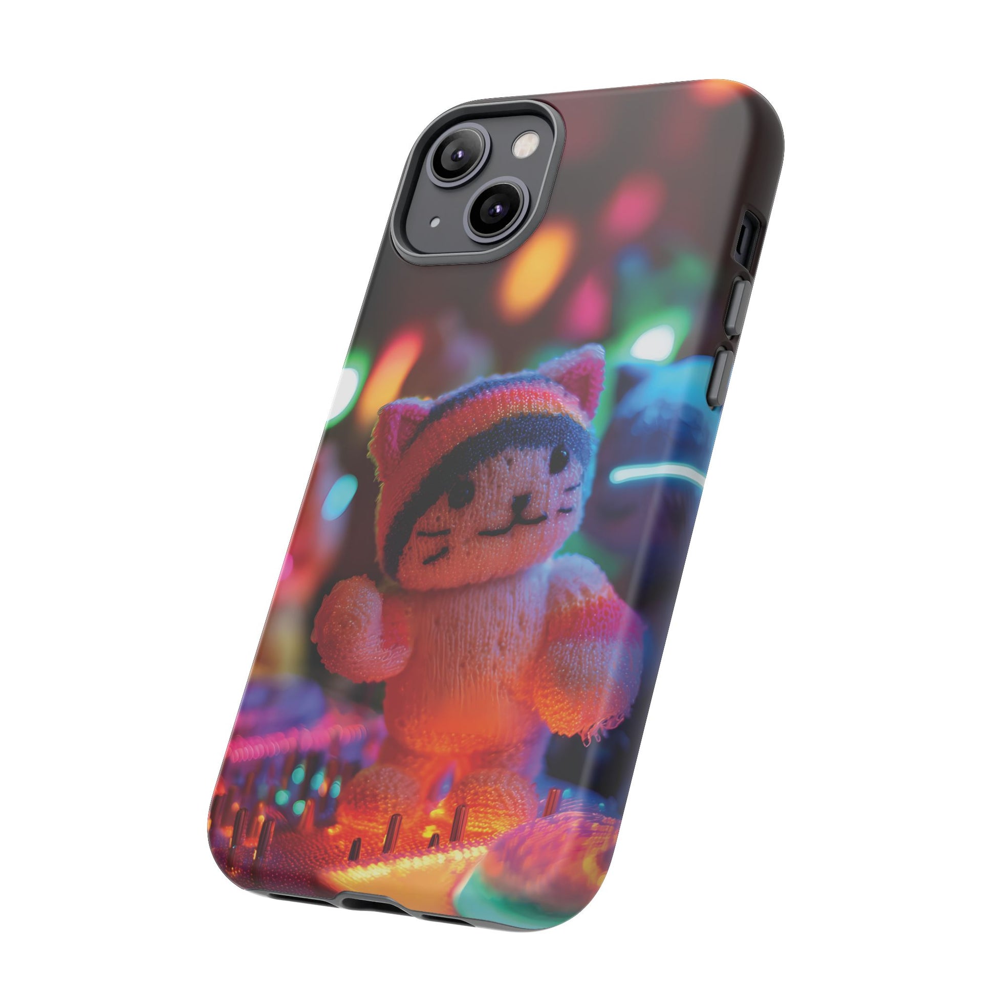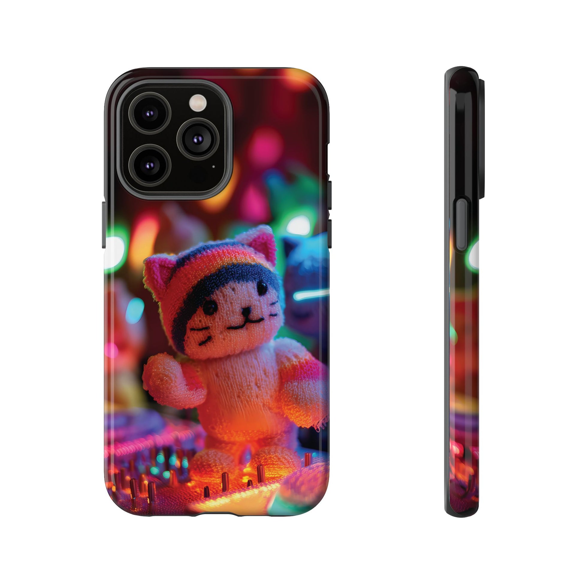 This playful kitty rocks the DJ booth with glowing decks and a purr-fect sense of rhythm. Bright lights, rave energy, and crochet charm make this the ultimate statement case for your phone.