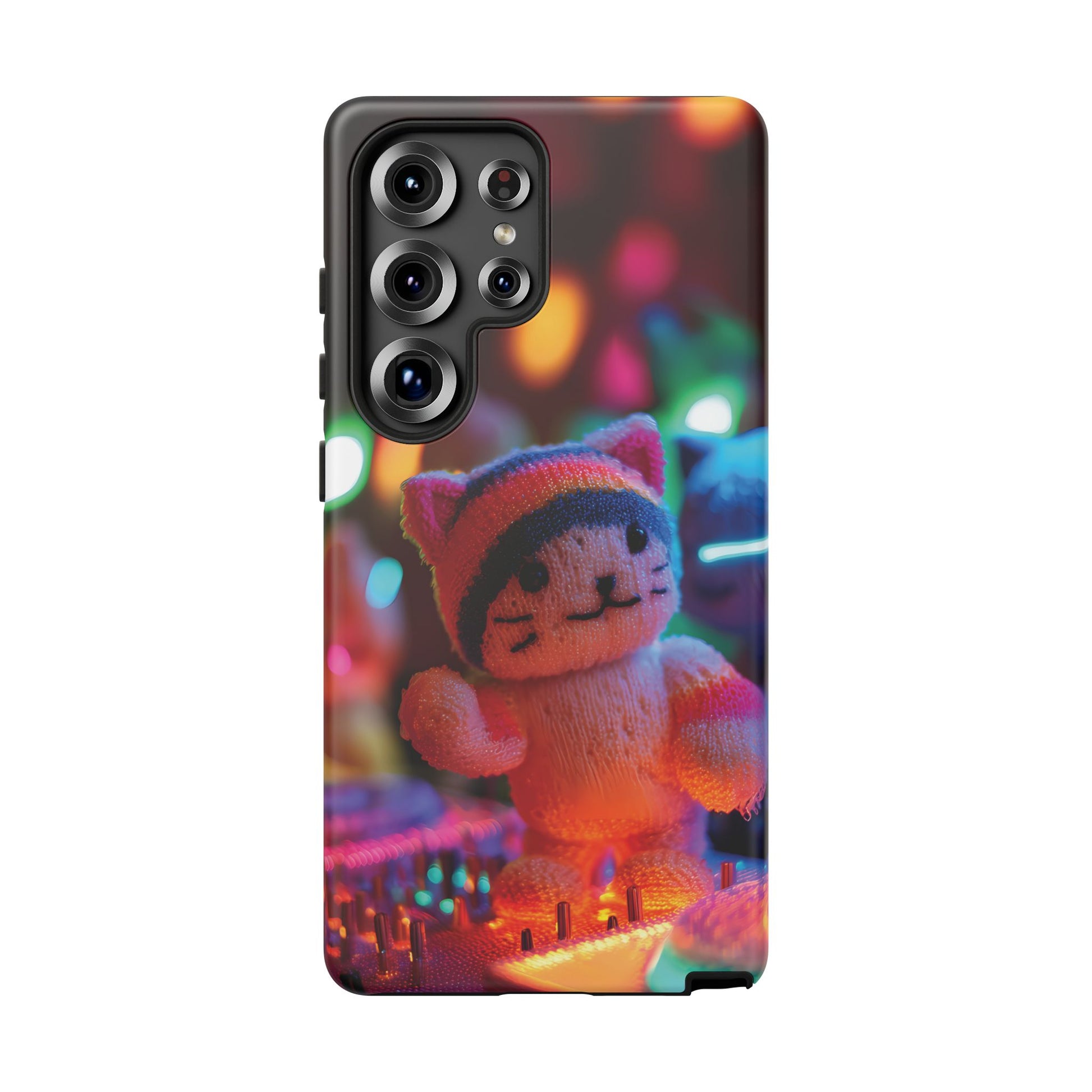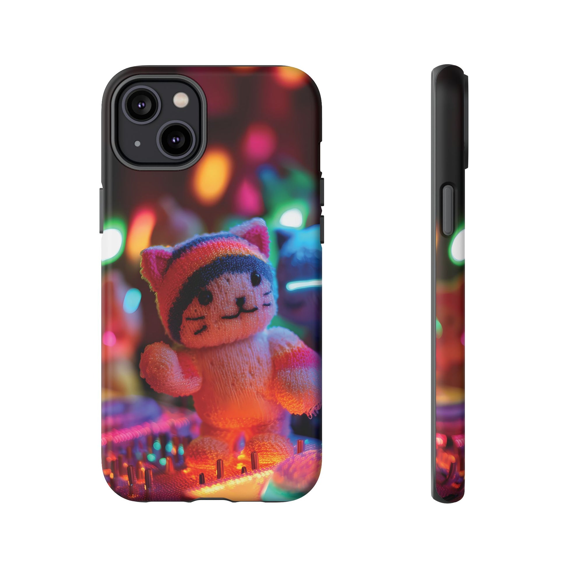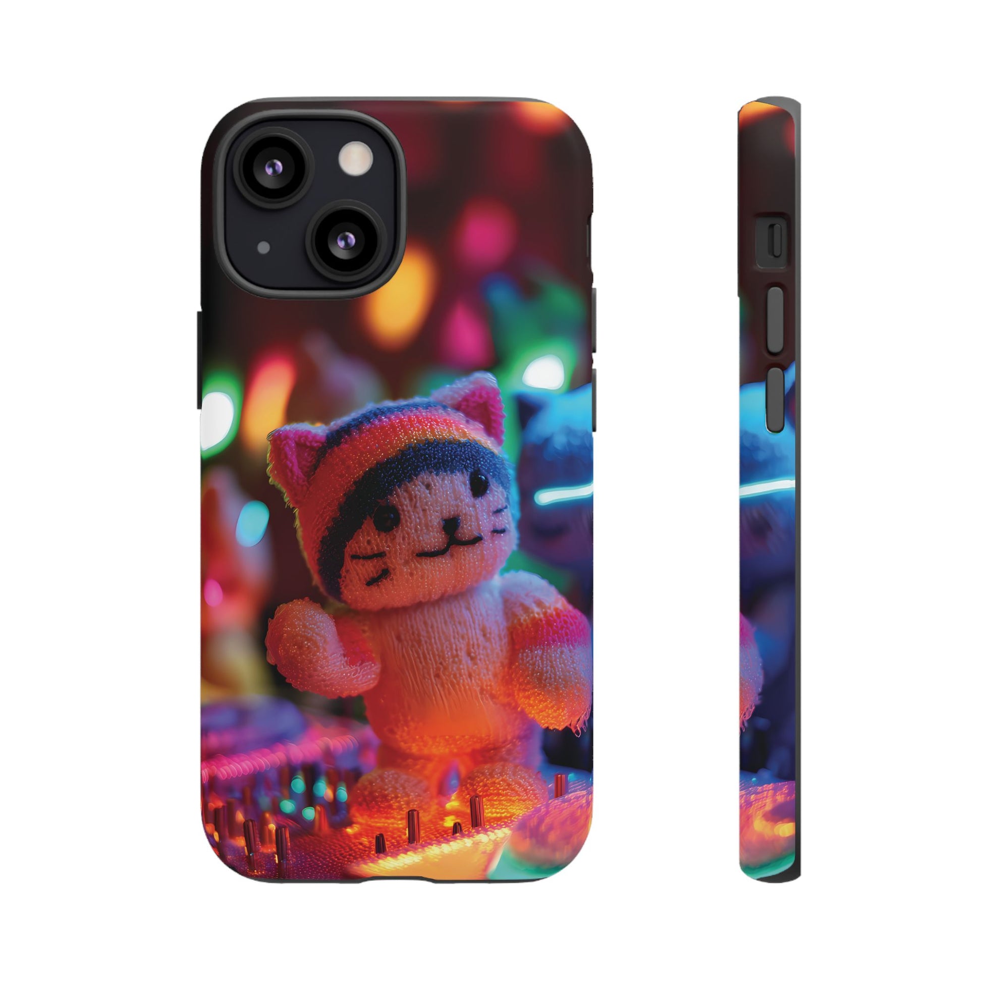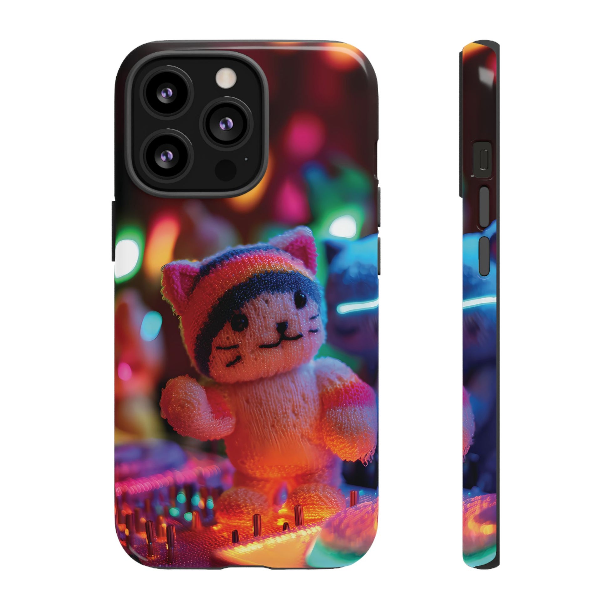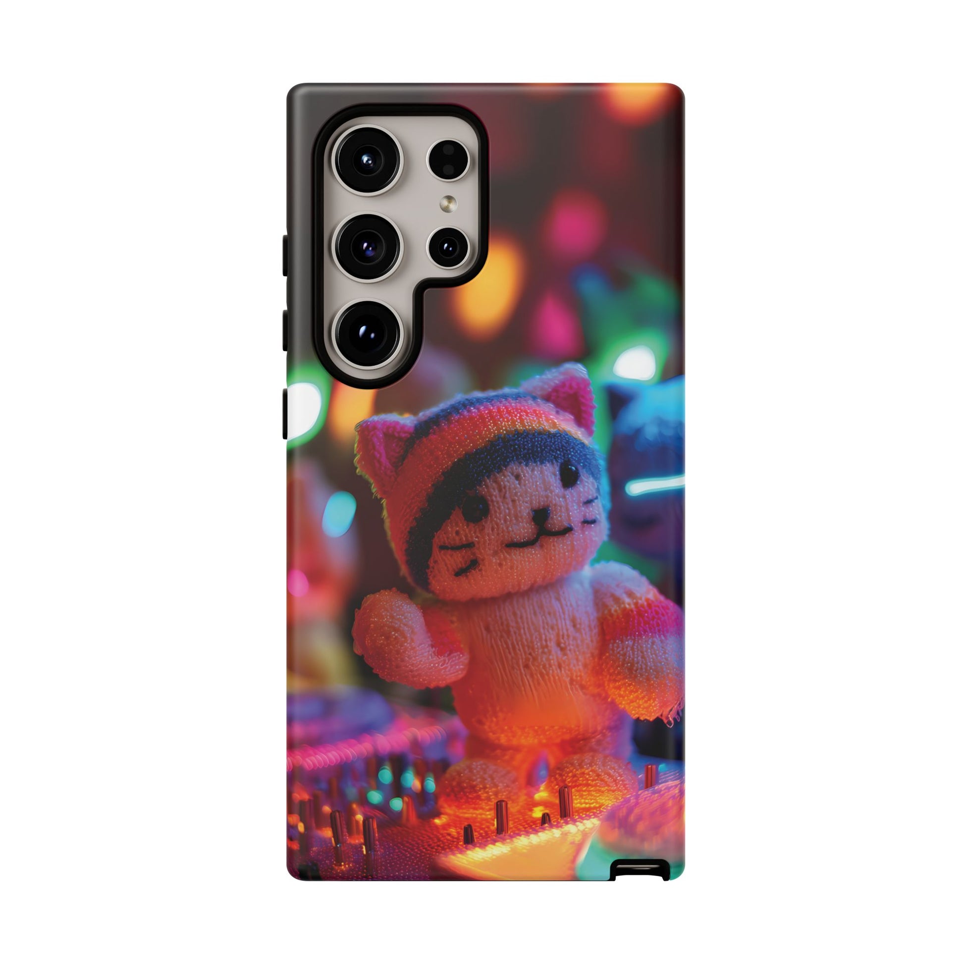 This playful kitty rocks the DJ booth with glowing decks and a purr-fect sense of rhythm. Bright lights, rave energy, and crochet charm make this the ultimate statement case for your phone.