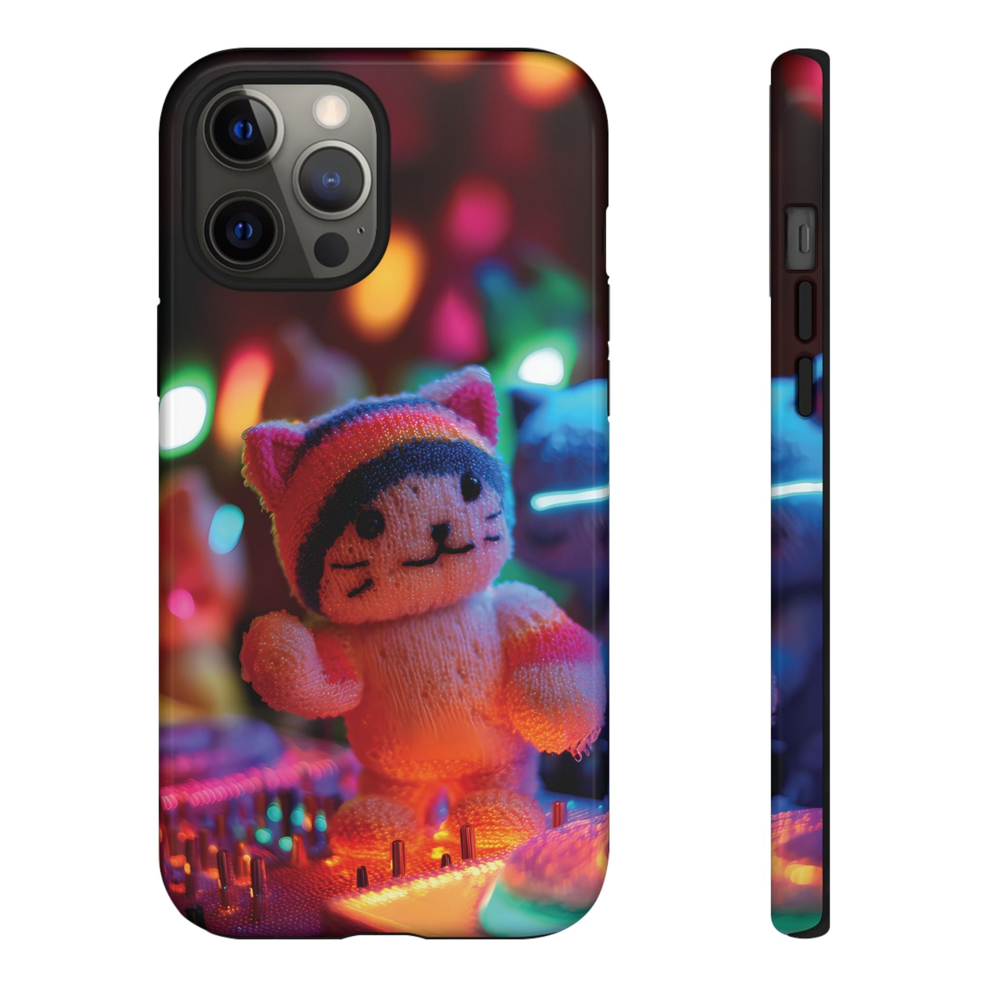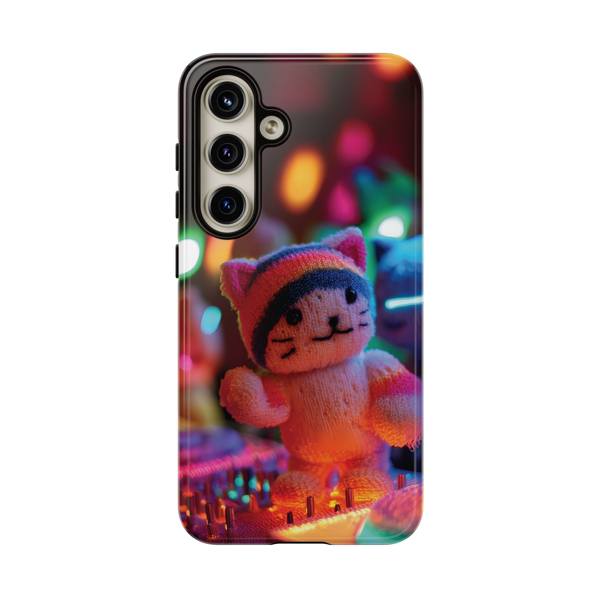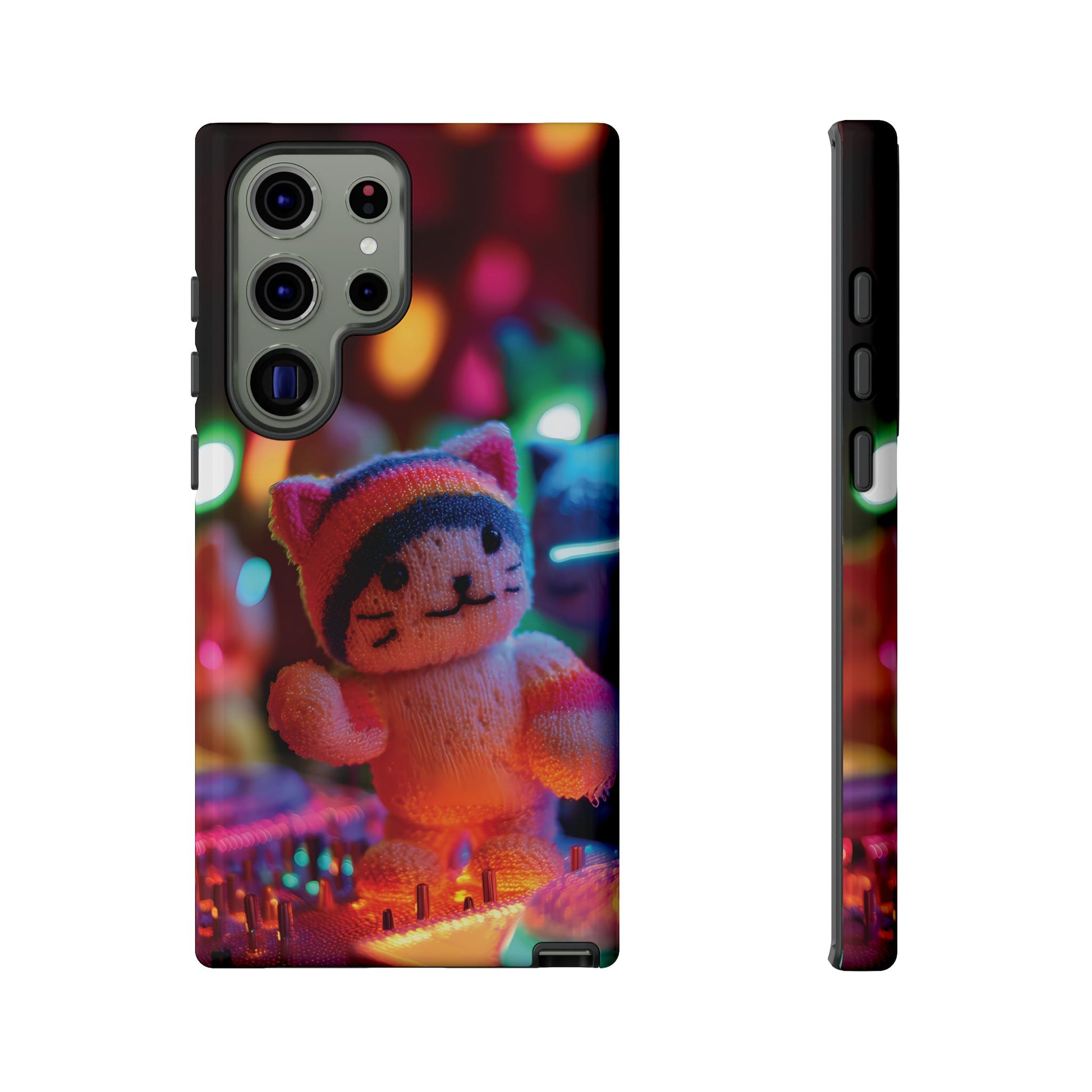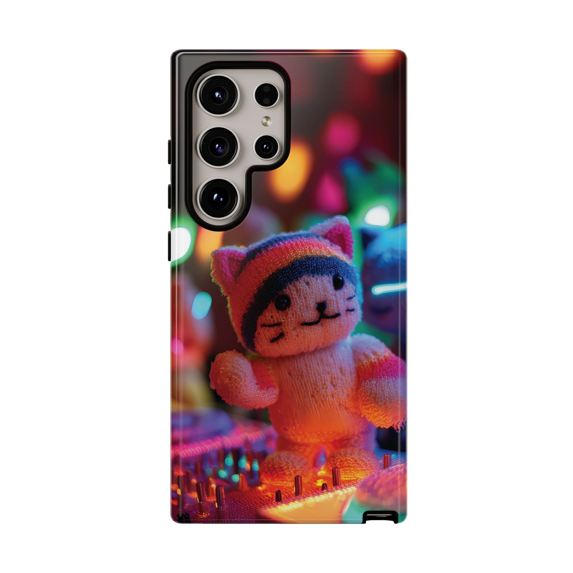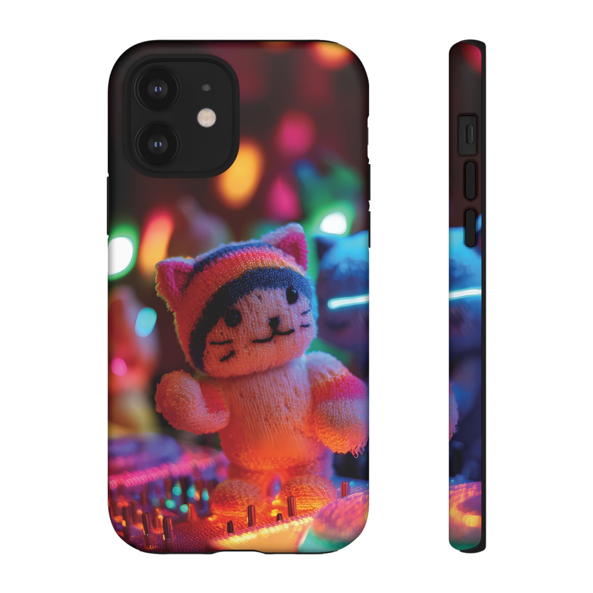 This playful kitty rocks the DJ booth with glowing decks and a purr-fect sense of rhythm. Bright lights, rave energy, and crochet charm make this the ultimate statement case for your phone.