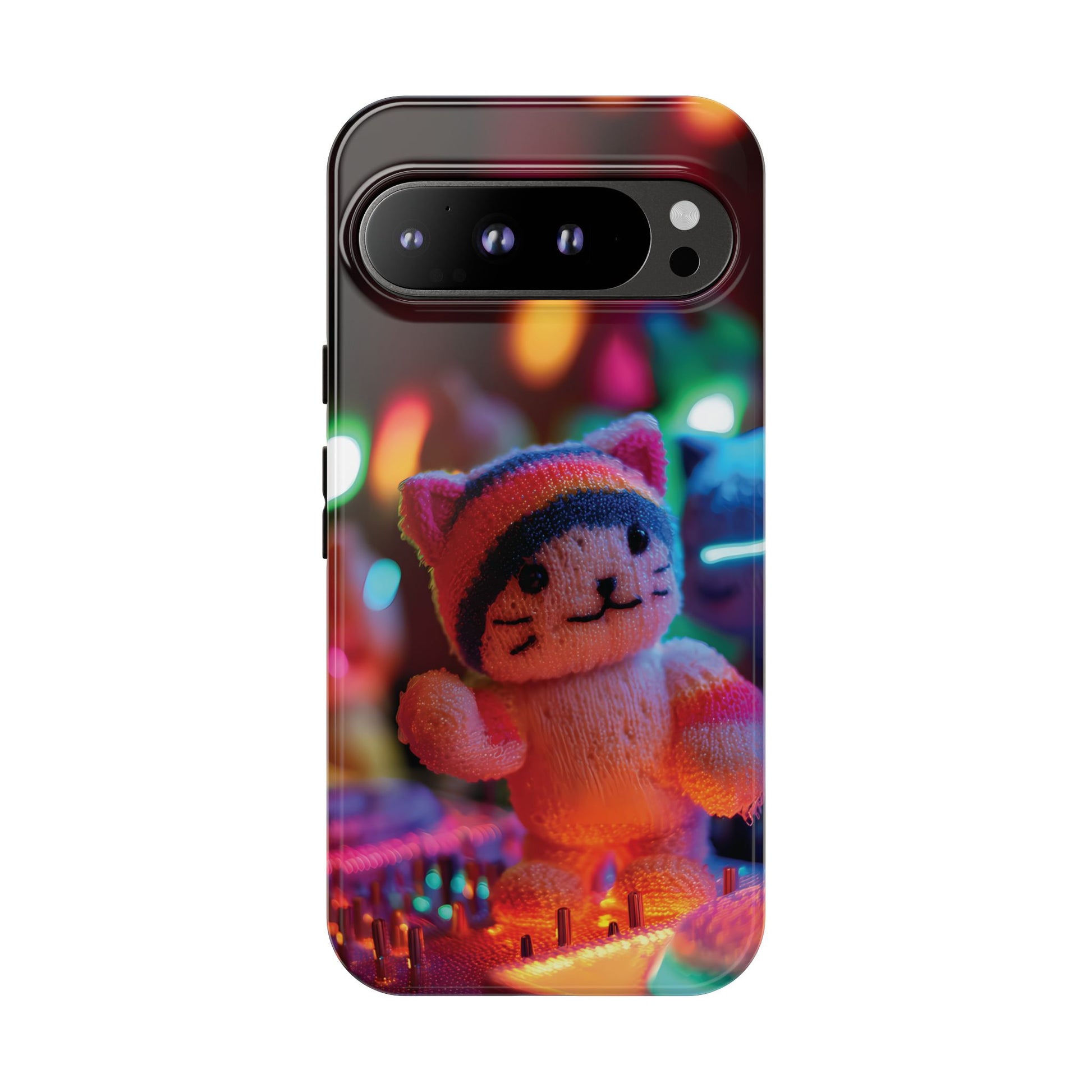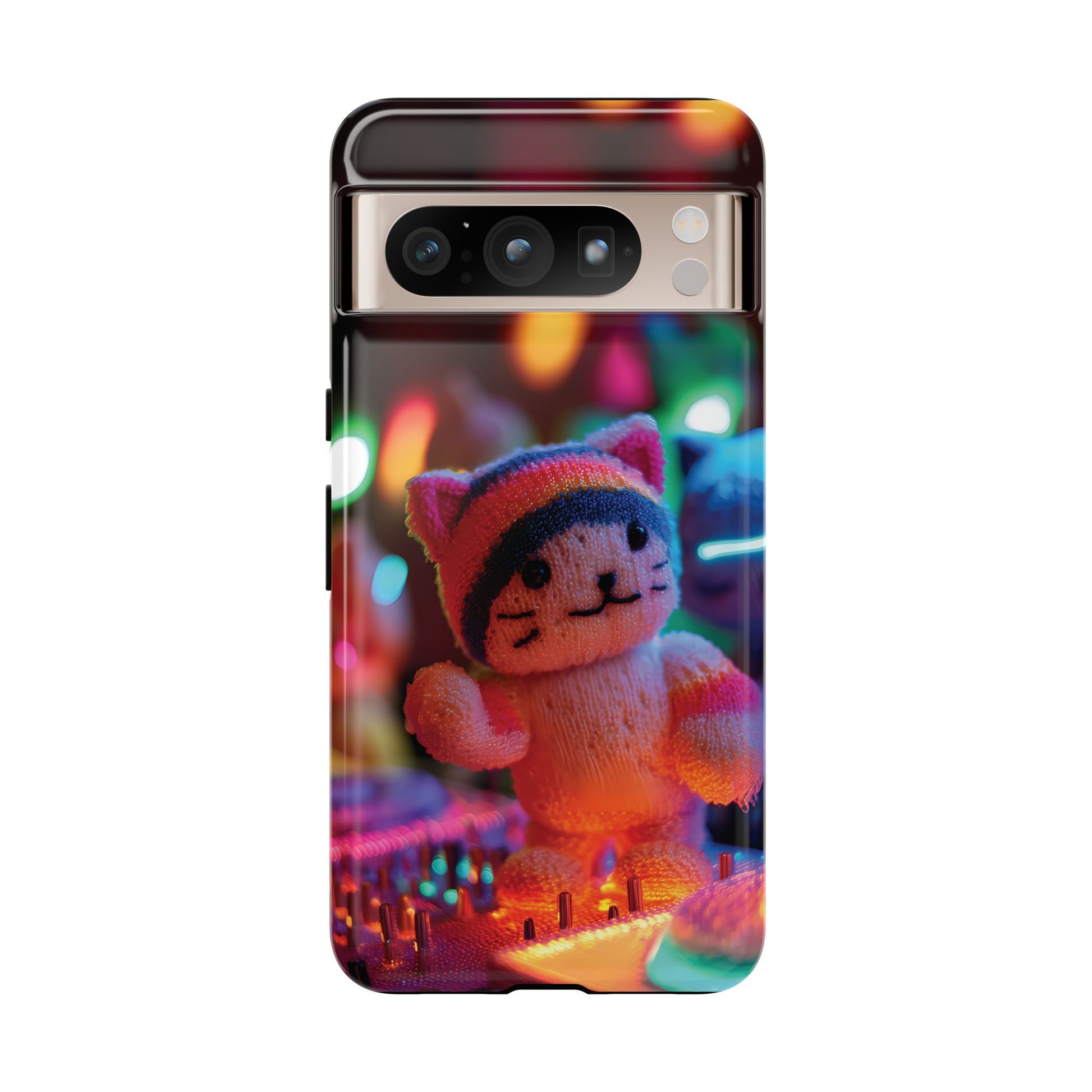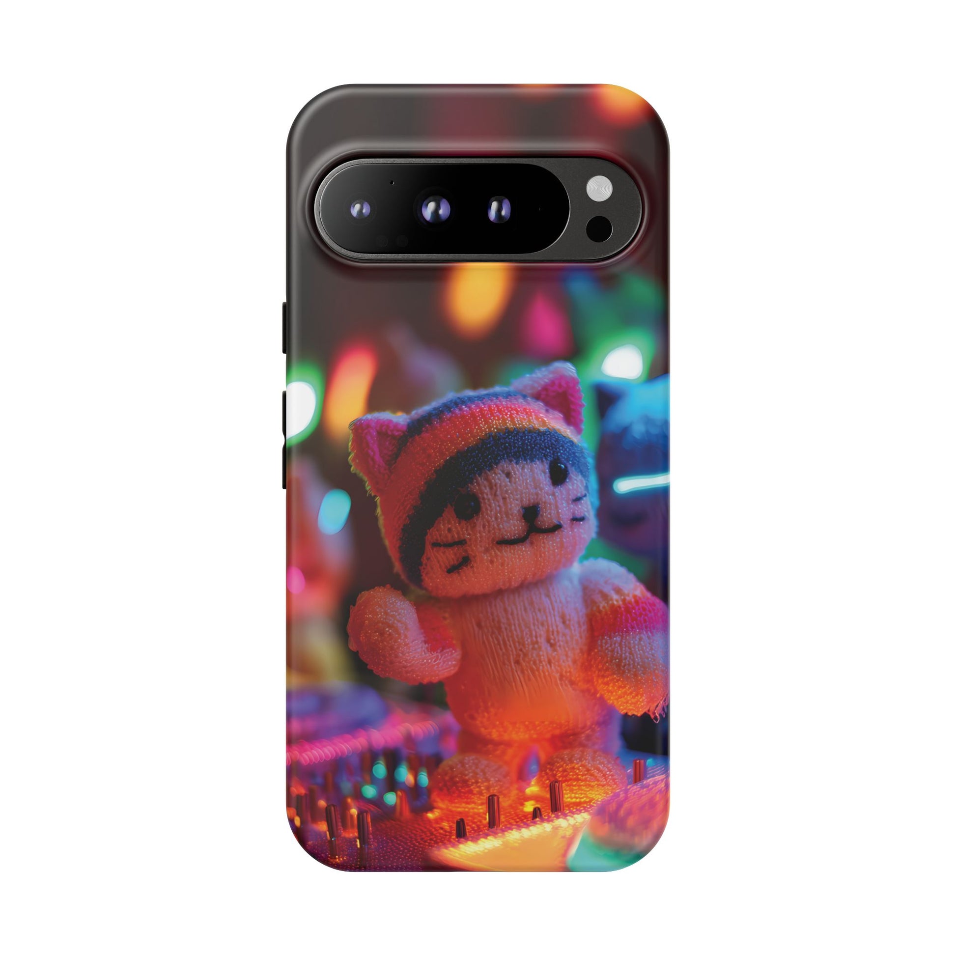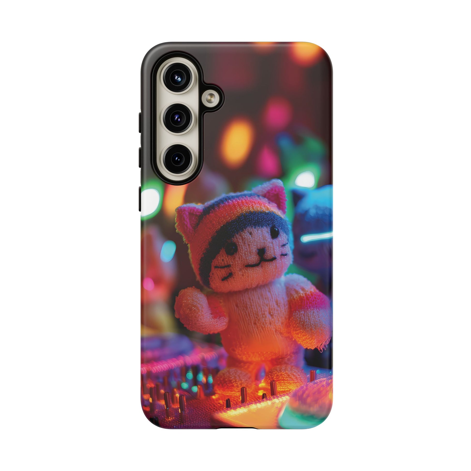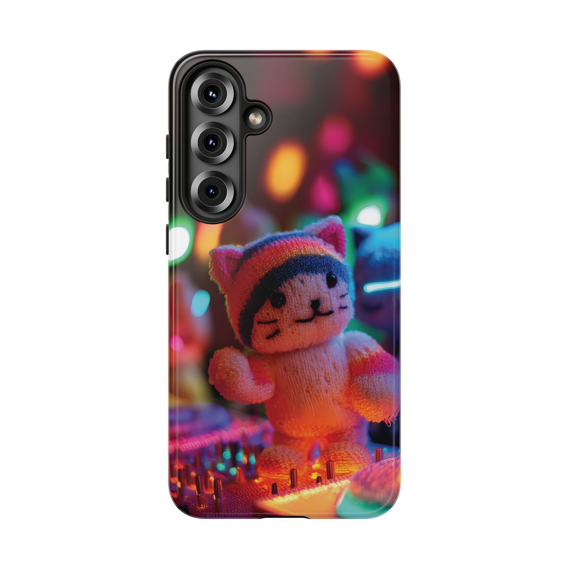 This playful kitty rocks the DJ booth with glowing decks and a purr-fect sense of rhythm. Bright lights, rave energy, and crochet charm make this the ultimate statement case for your phone.