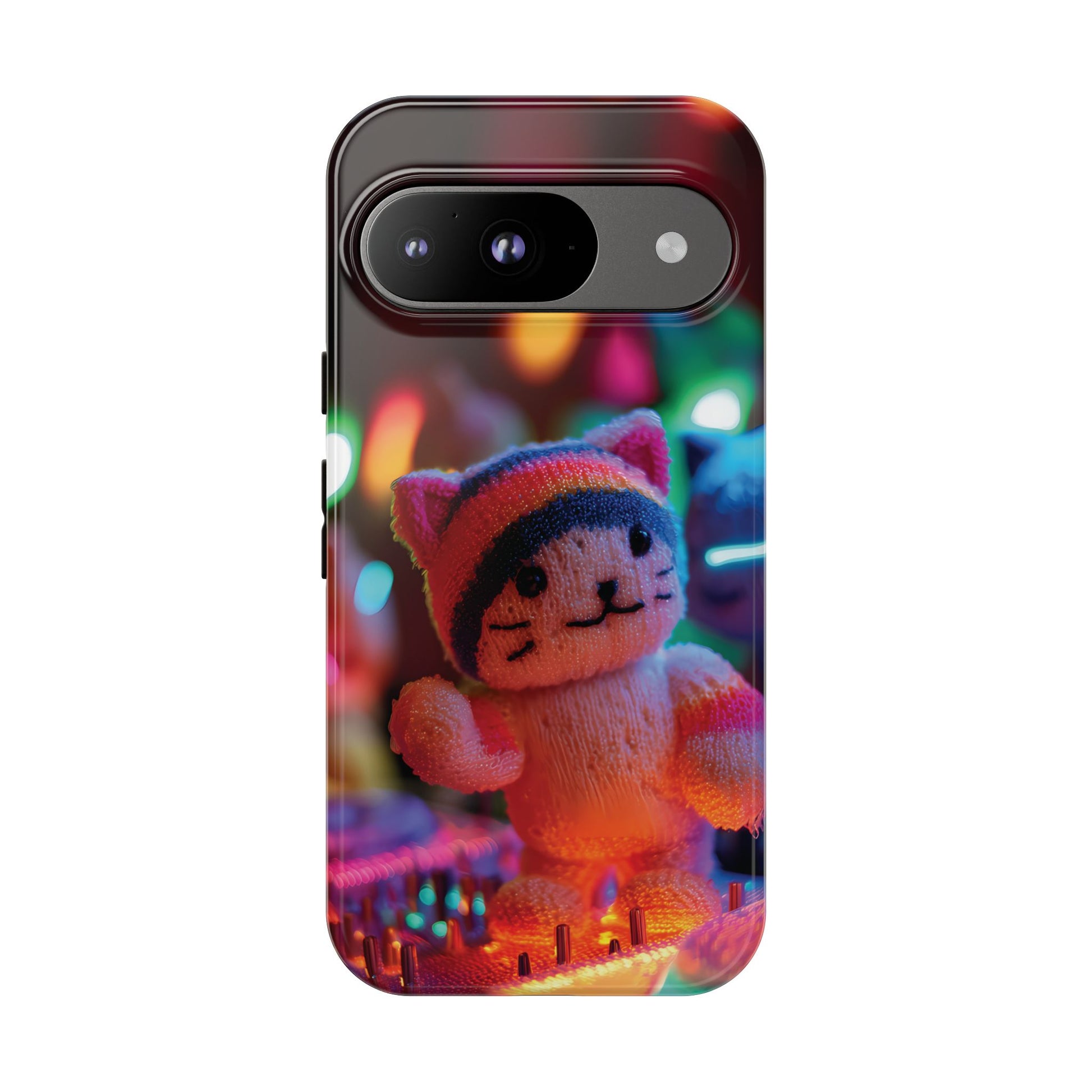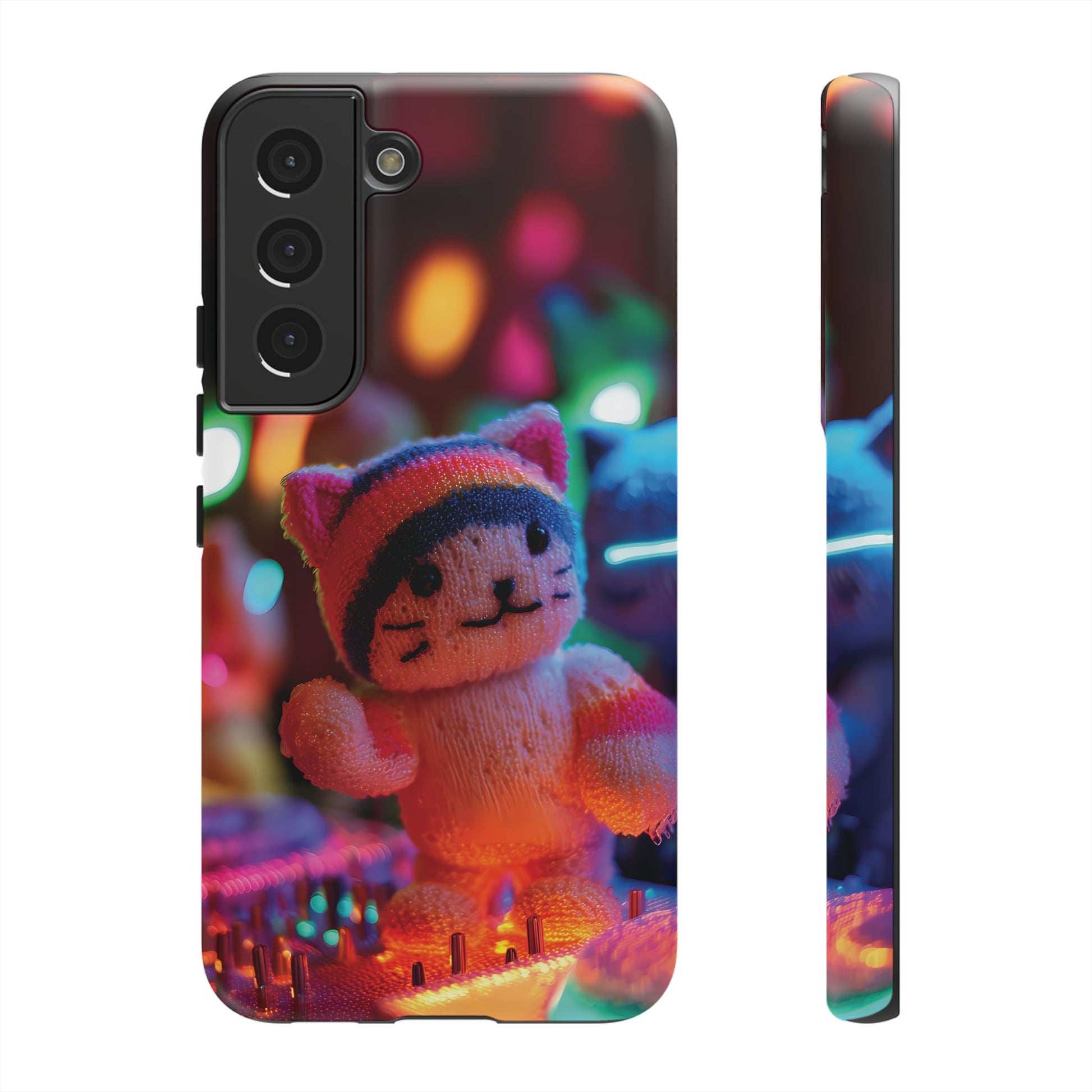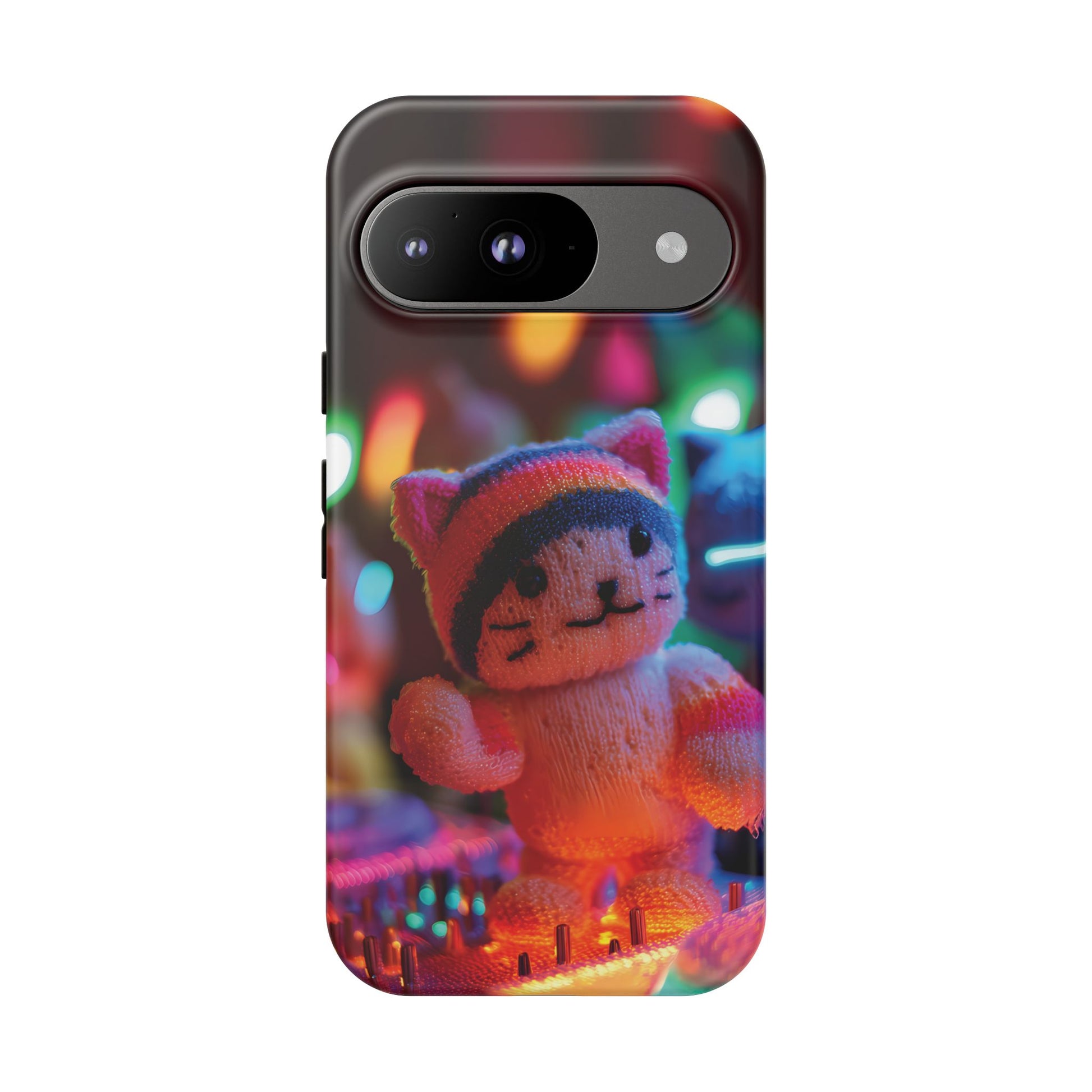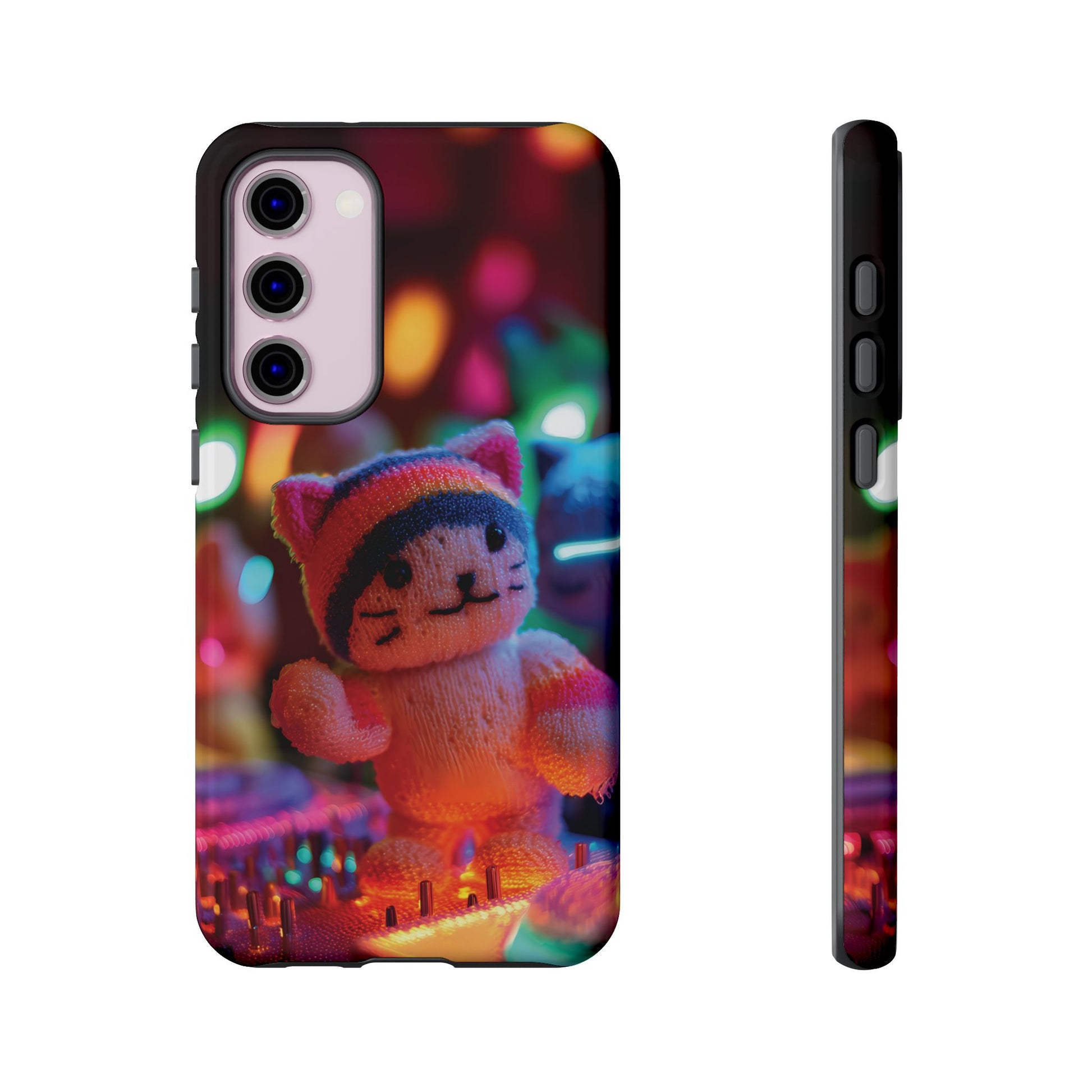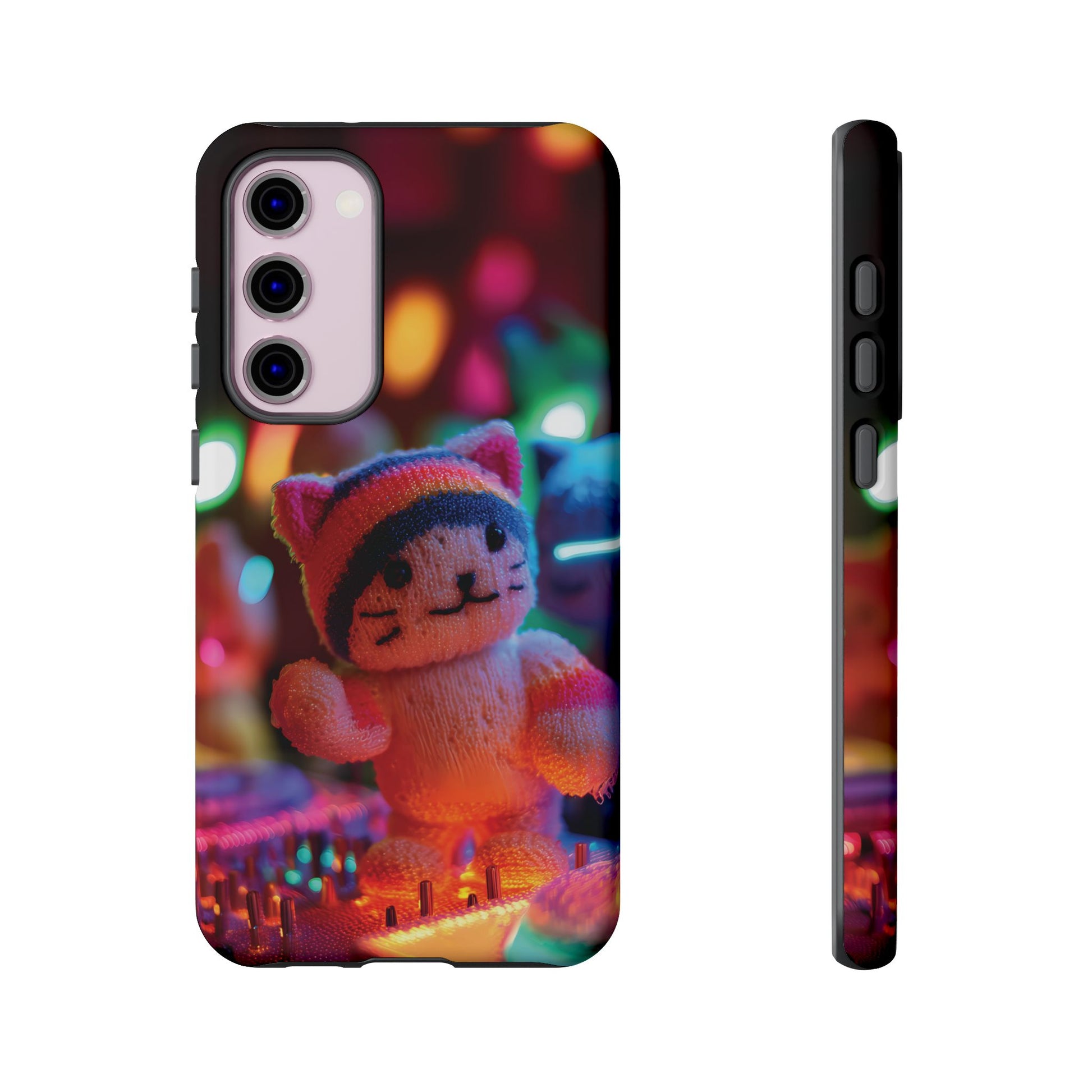 This playful kitty rocks the DJ booth with glowing decks and a purr-fect sense of rhythm. Bright lights, rave energy, and crochet charm make this the ultimate statement case for your phone.