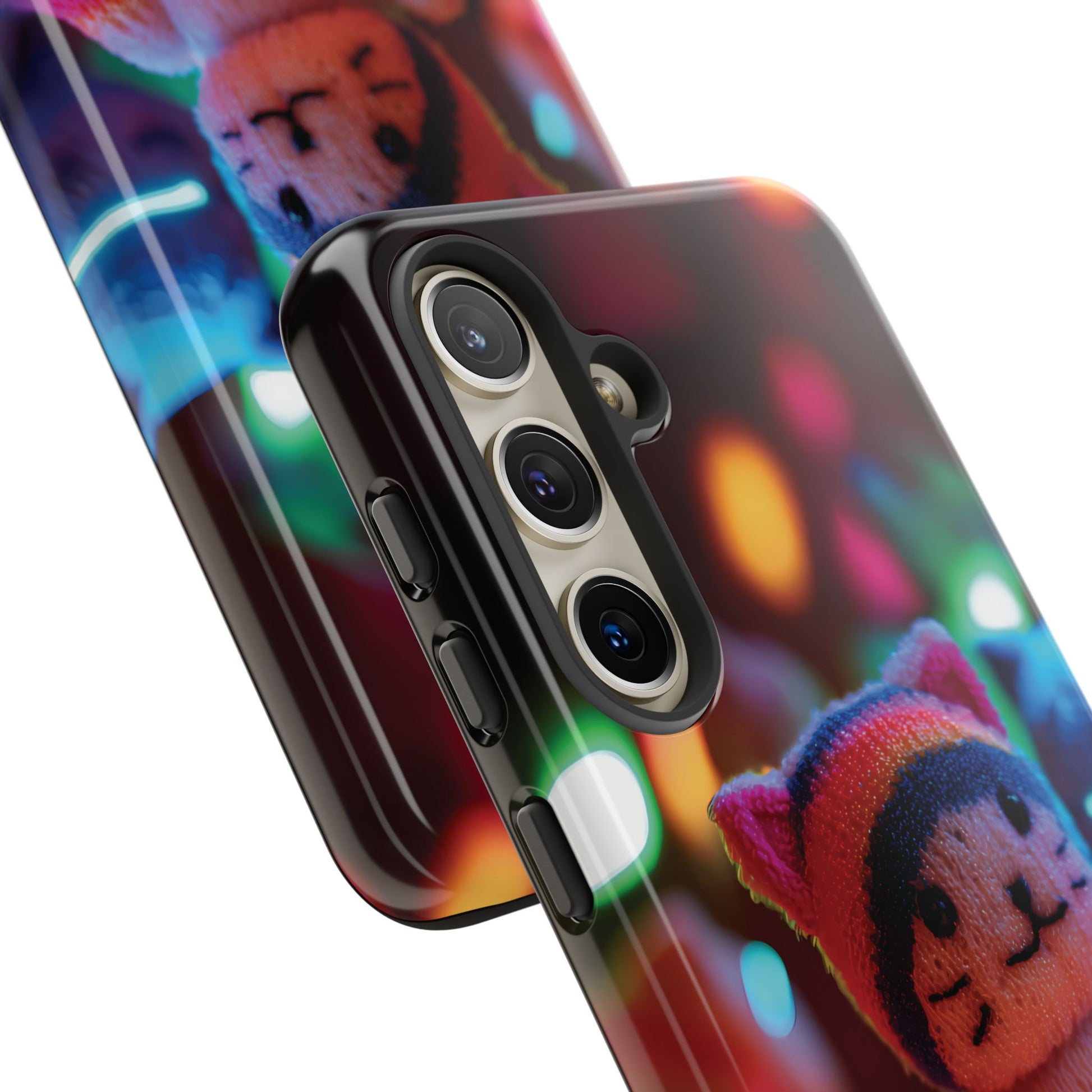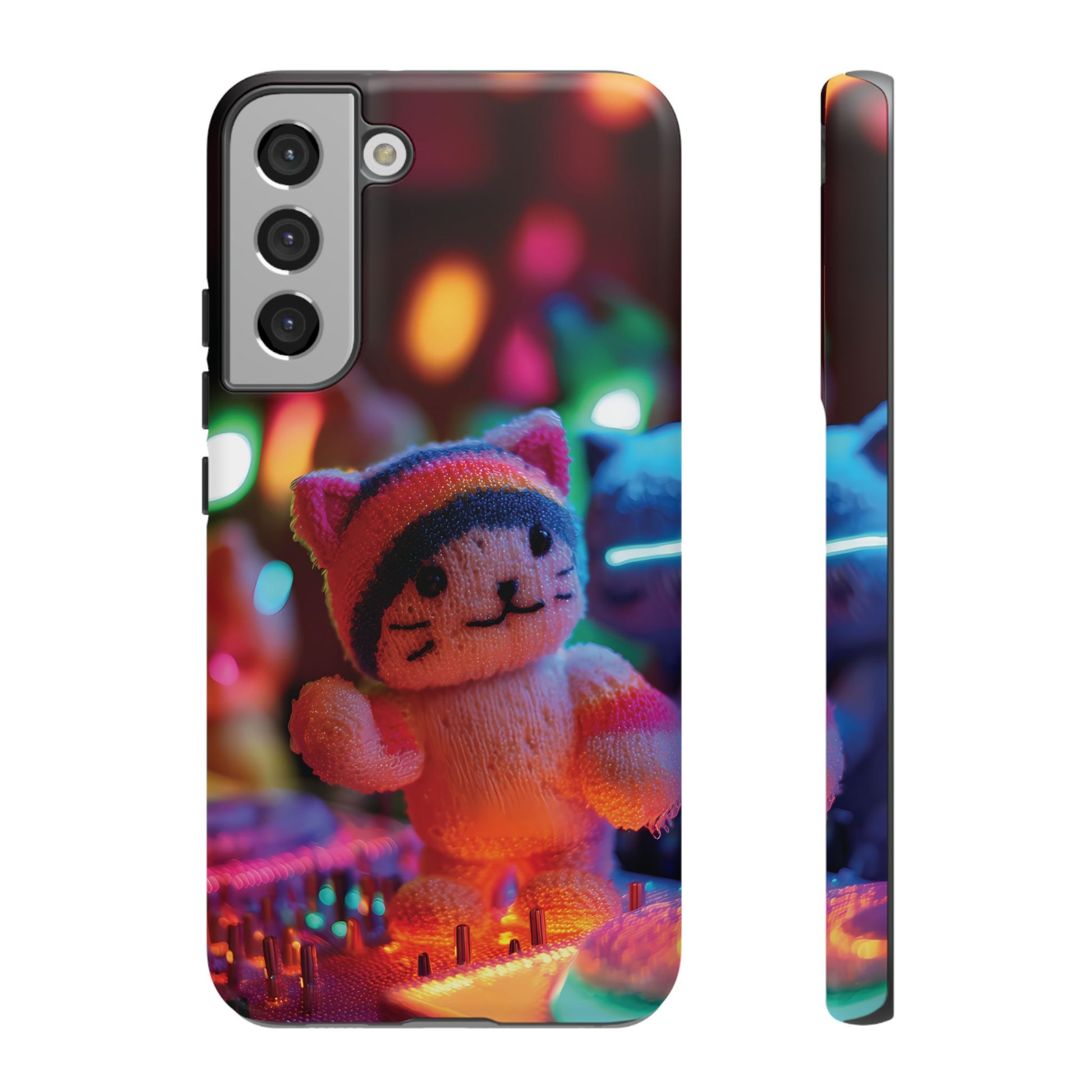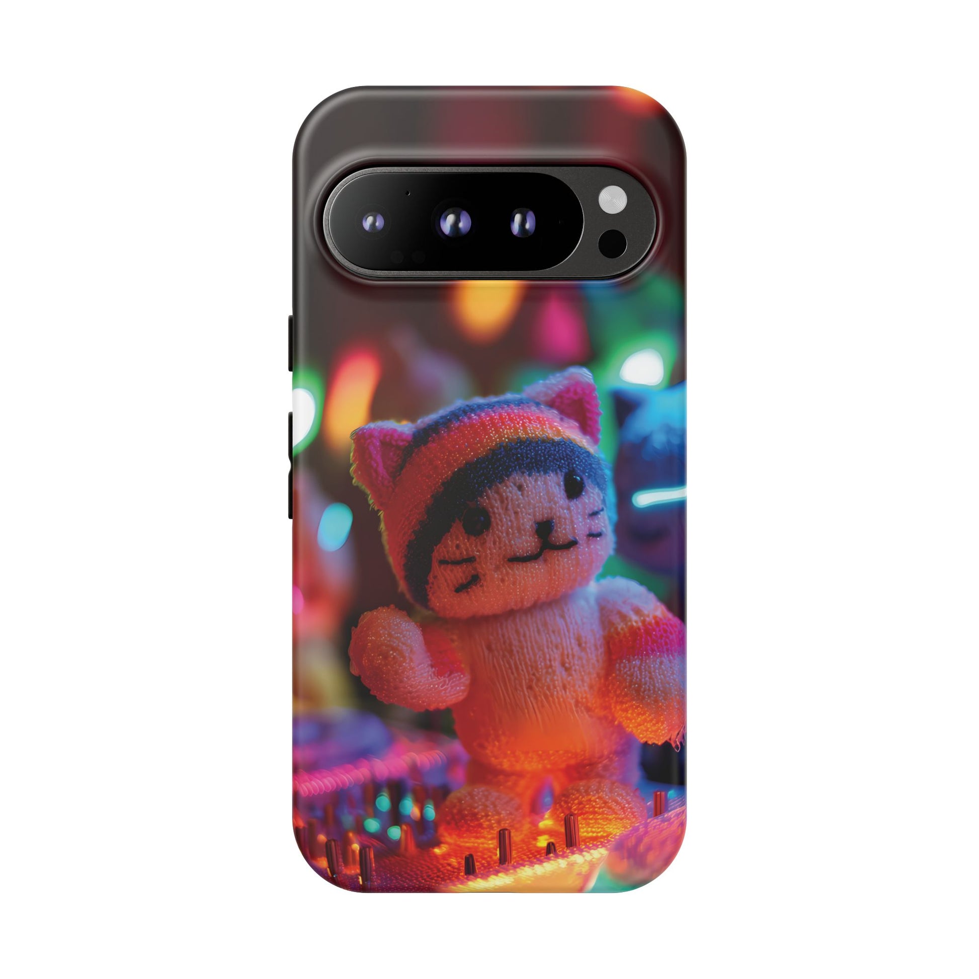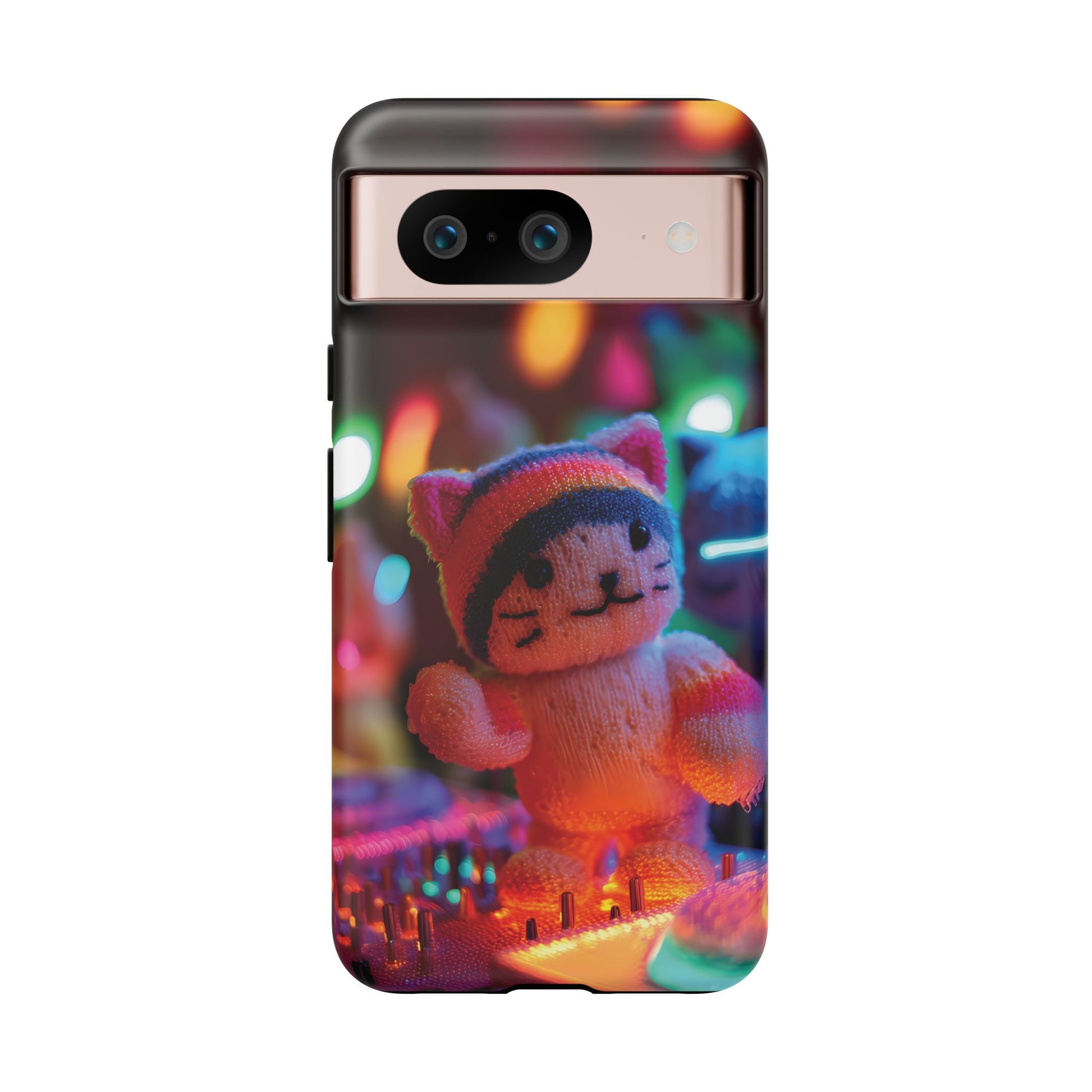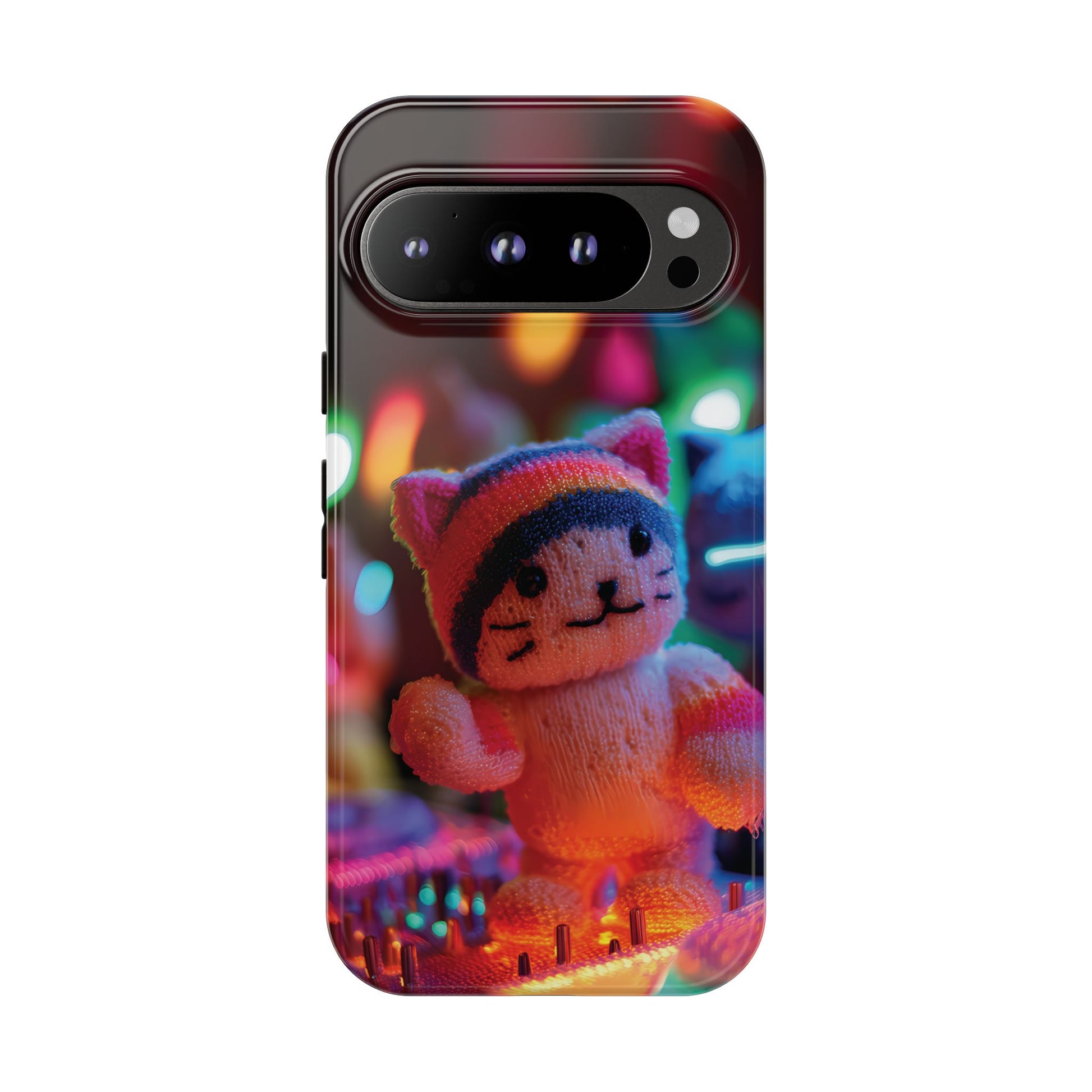 This playful kitty rocks the DJ booth with glowing decks and a purr-fect sense of rhythm. Bright lights, rave energy, and crochet charm make this the ultimate statement case for your phone.