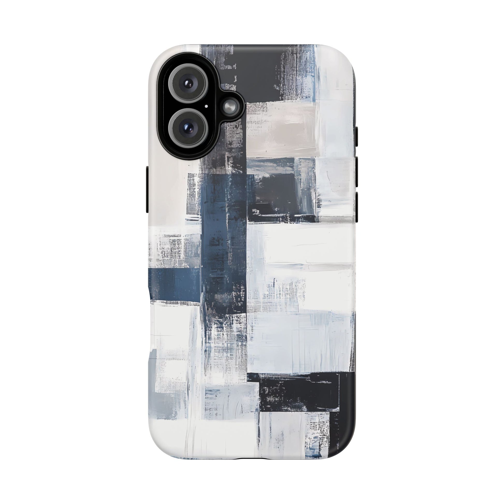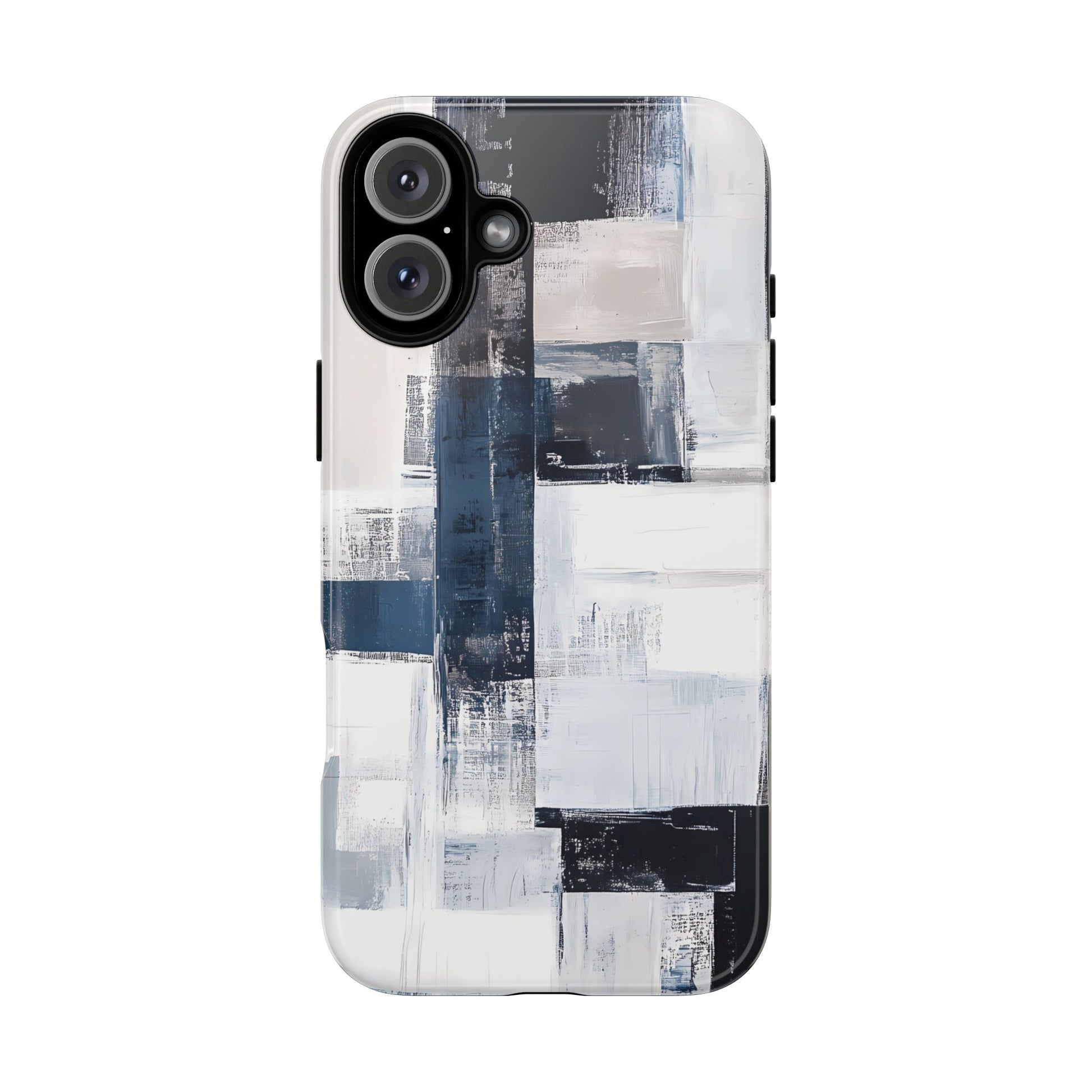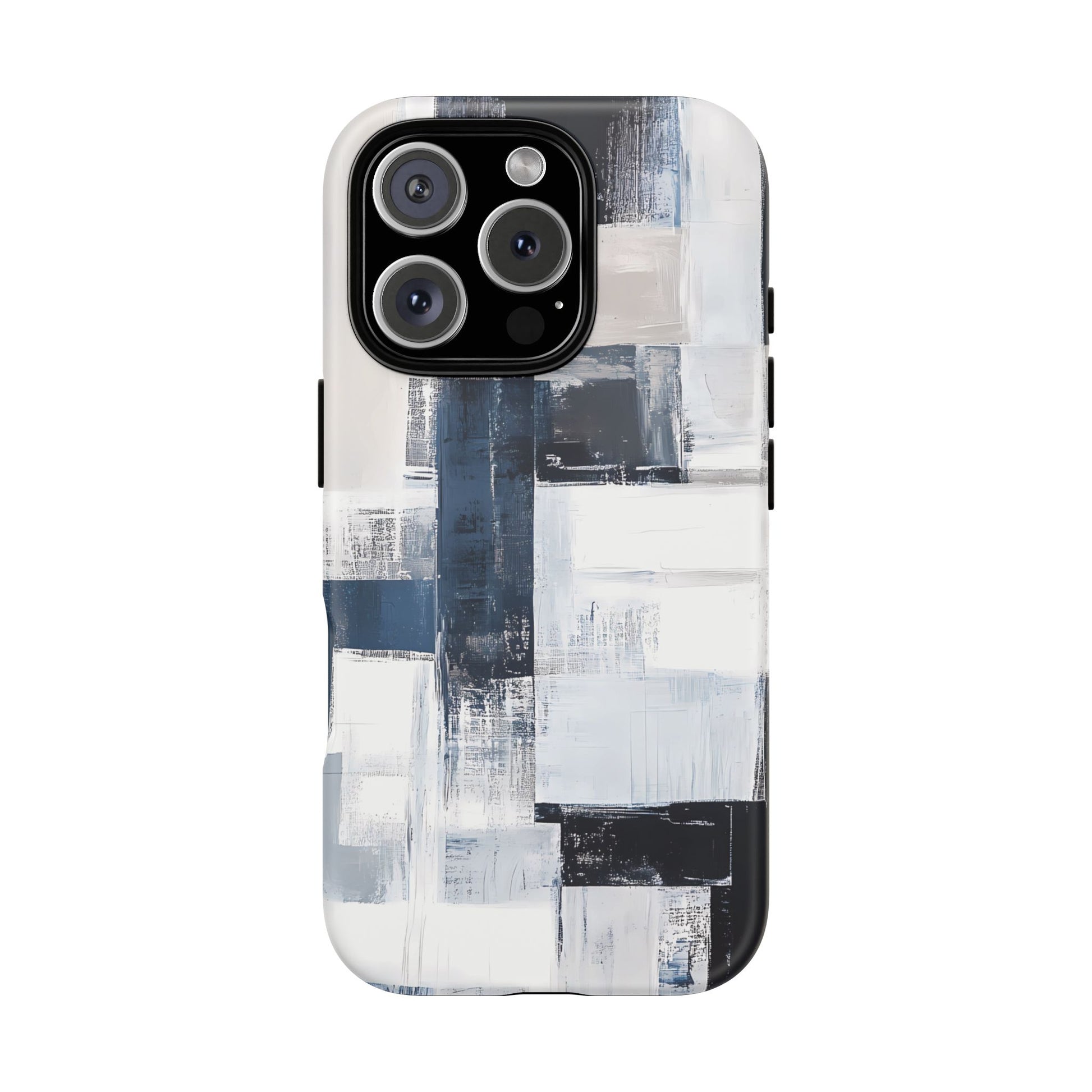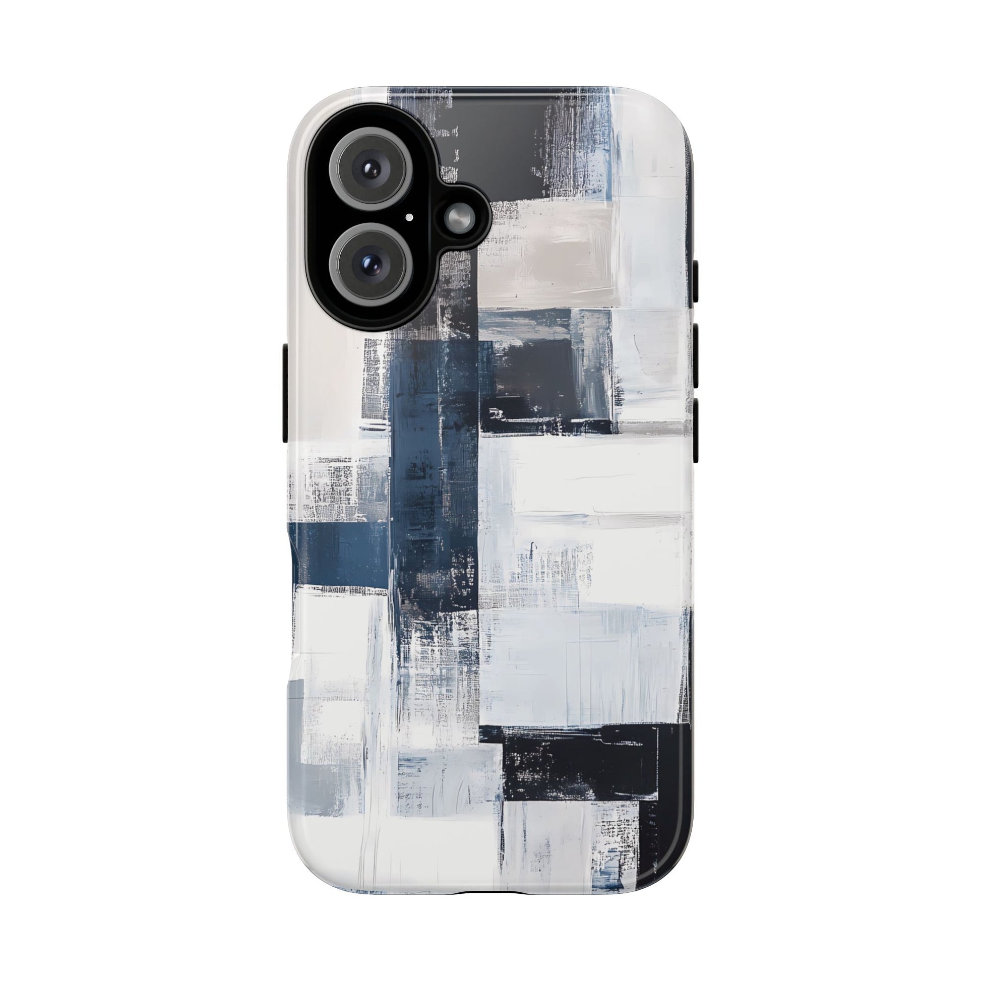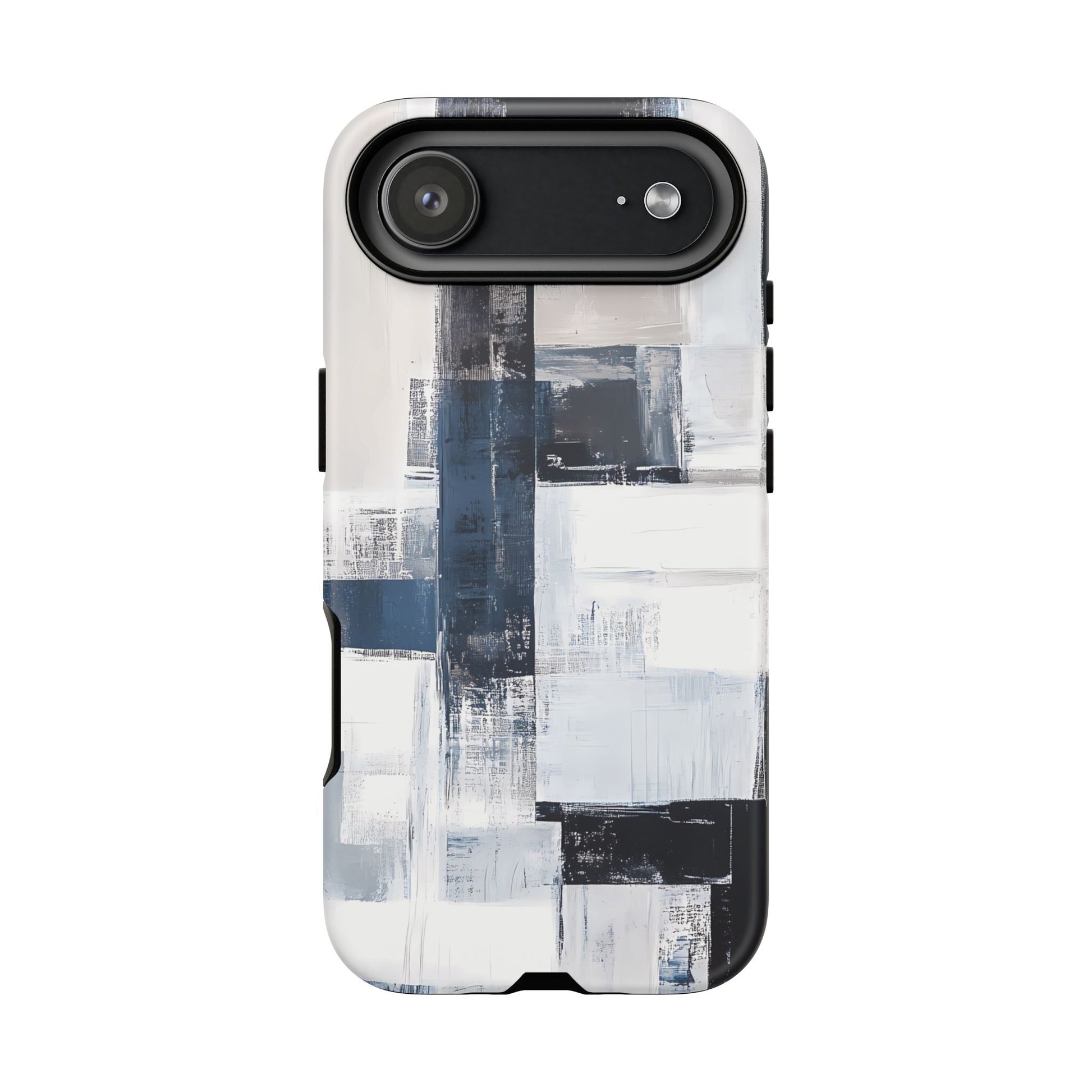A sleek design built on bold geometry, Modern Balance layers large solid rectangles in white, black, blue, grey, and taupe. The clean lines and seamless color blending give this case a timeless, architectural aesthetic — perfect for those who love understated sophistication.