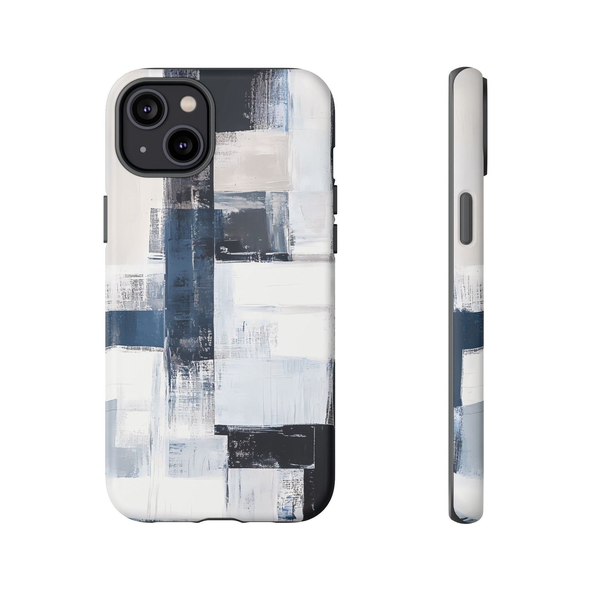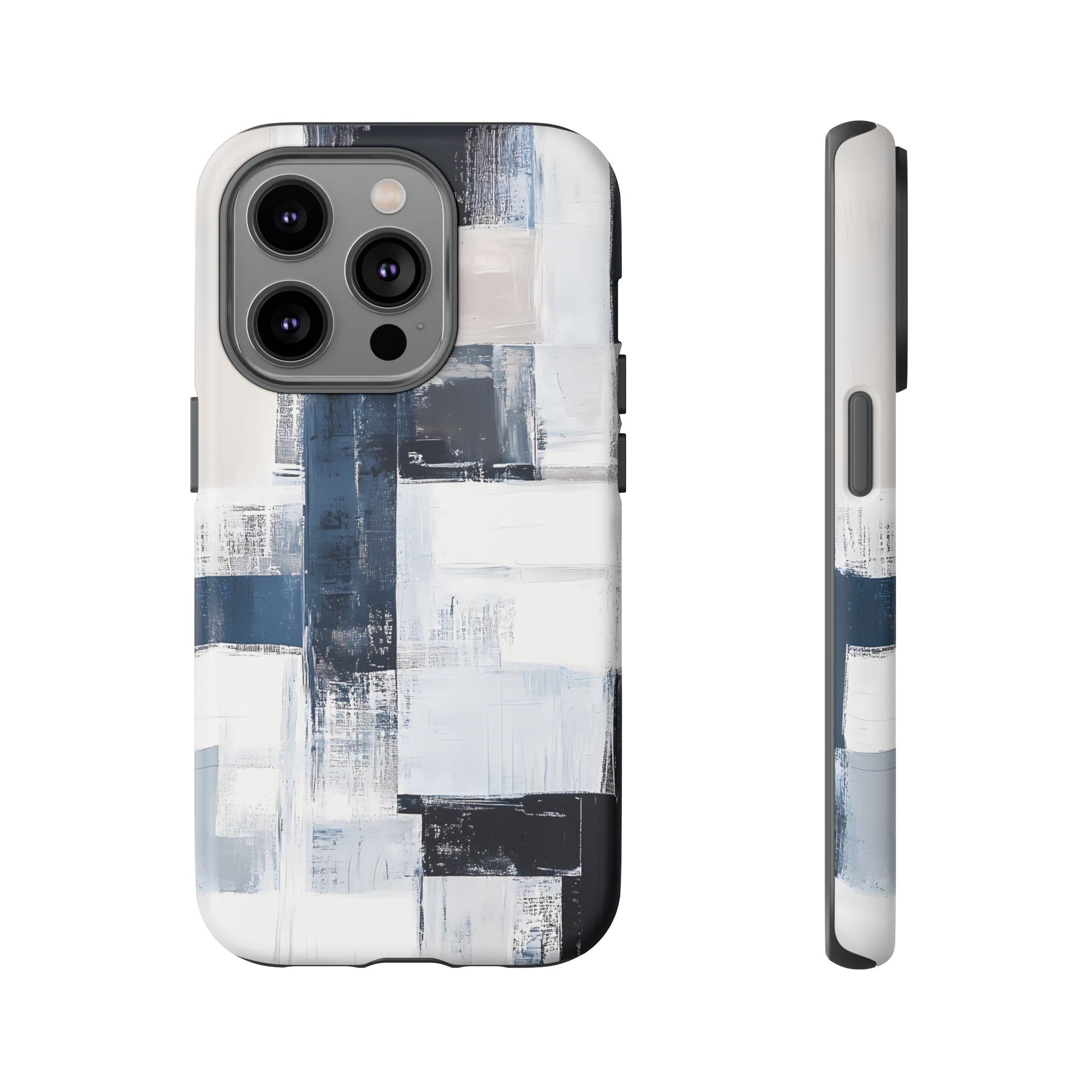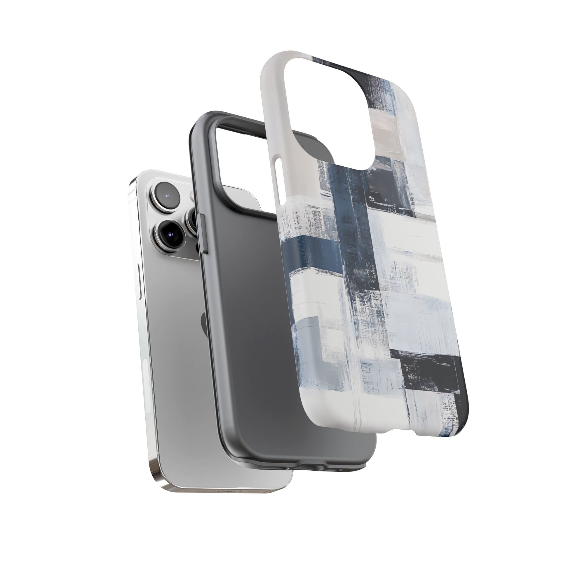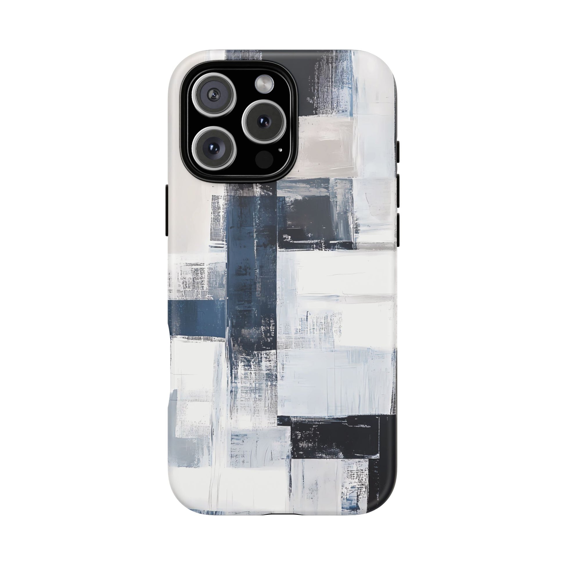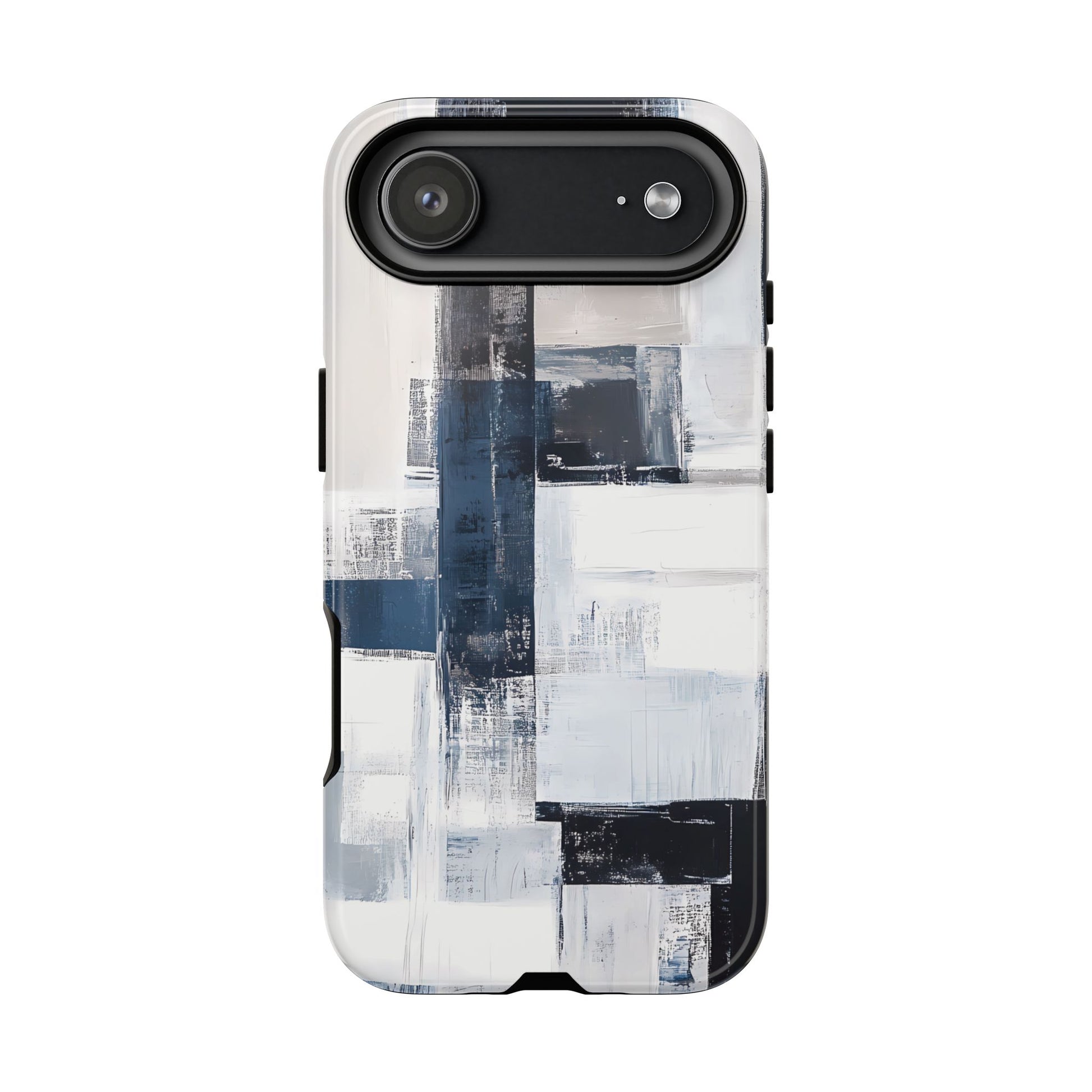 A sleek design built on bold geometry, Modern Balance layers large solid rectangles in white, black, blue, grey, and taupe. The clean lines and seamless color blending give this case a timeless, architectural aesthetic — perfect for those who love understated sophistication.
