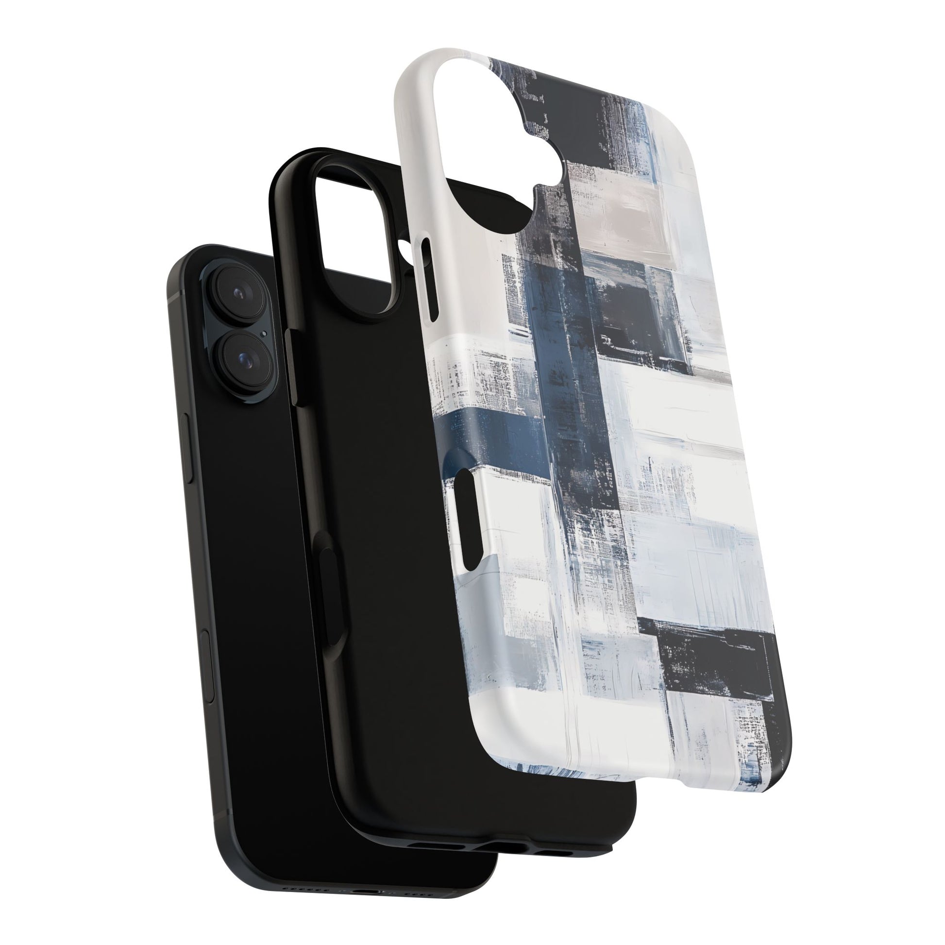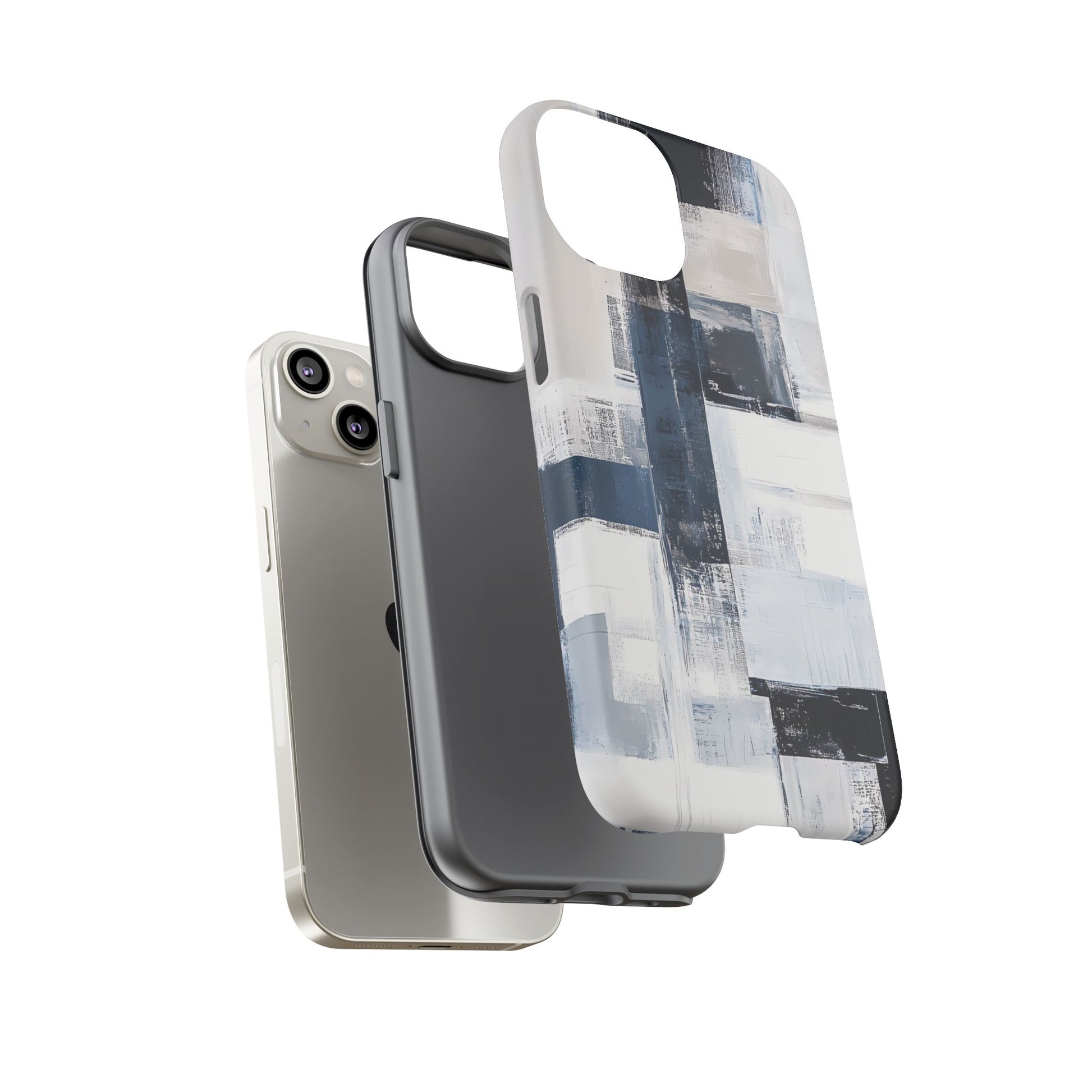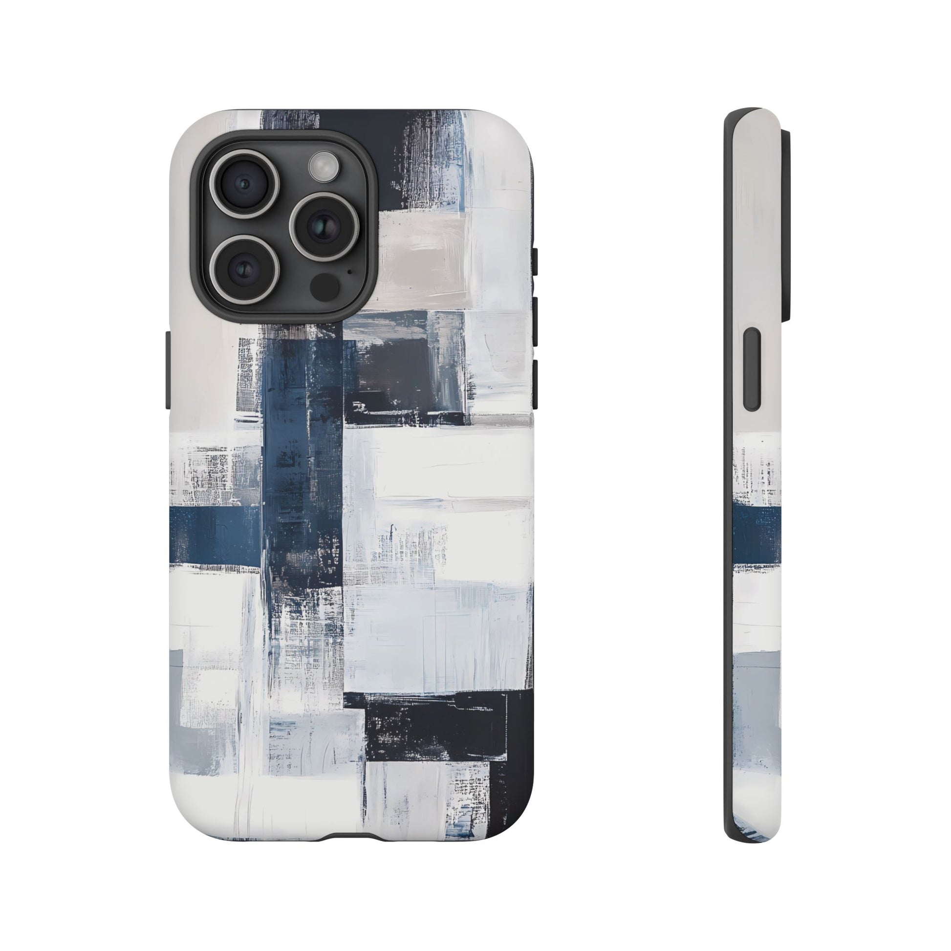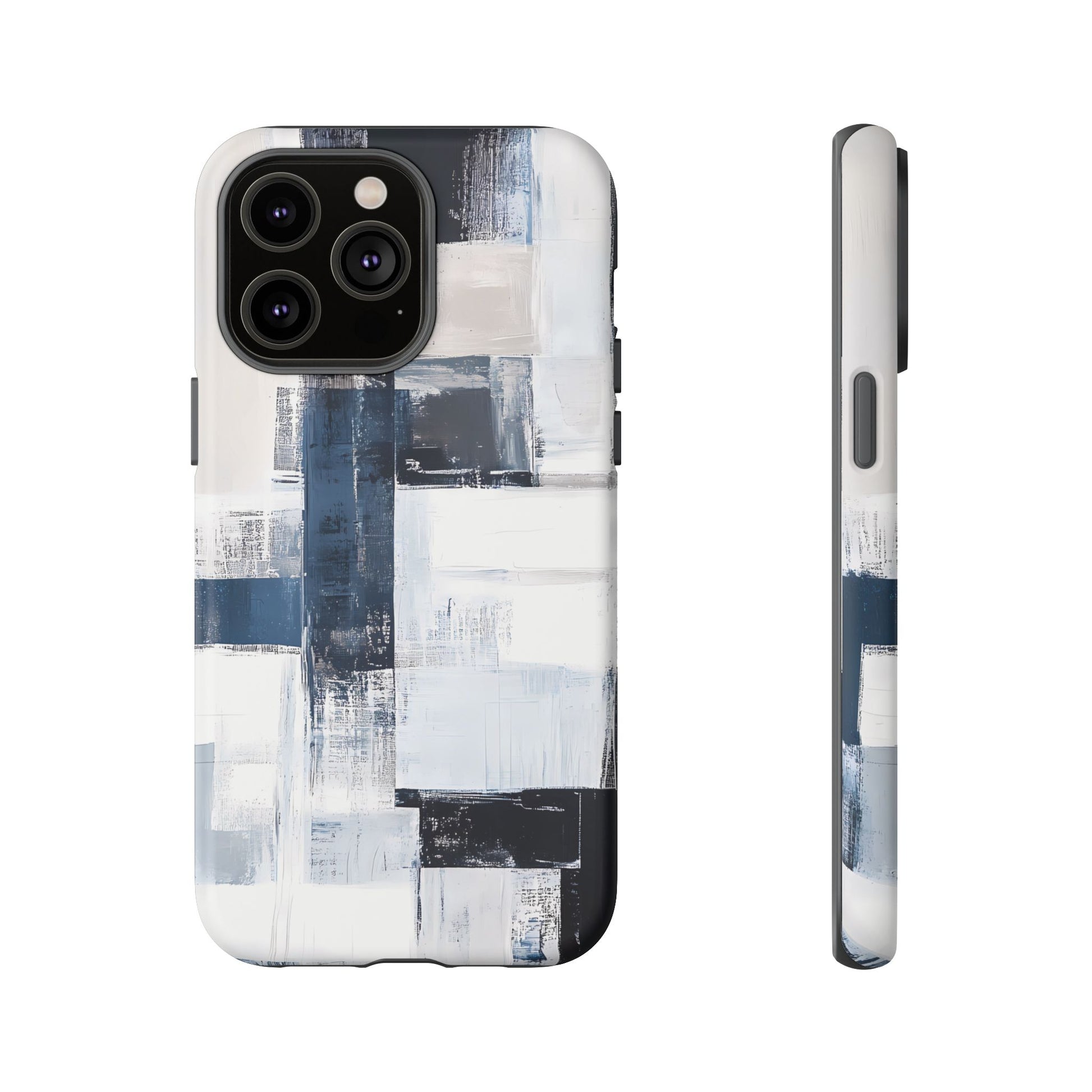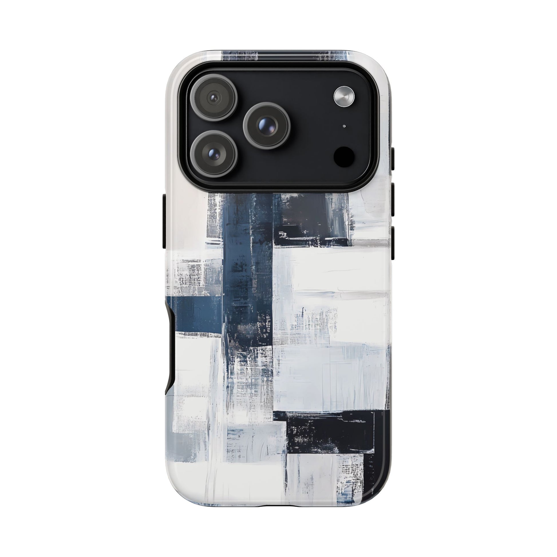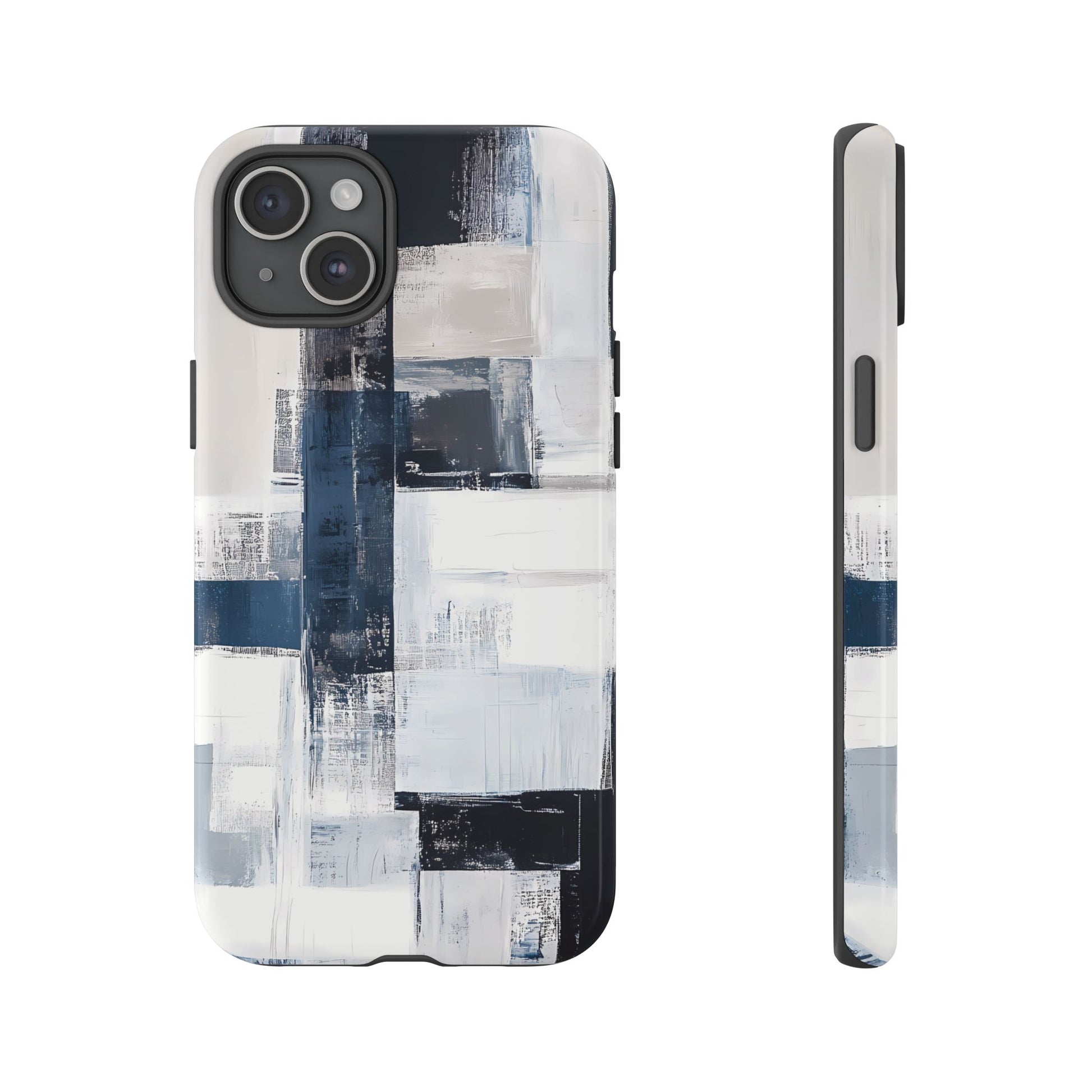 A sleek design built on bold geometry, Modern Balance layers large solid rectangles in white, black, blue, grey, and taupe. The clean lines and seamless color blending give this case a timeless, architectural aesthetic — perfect for those who love understated sophistication.