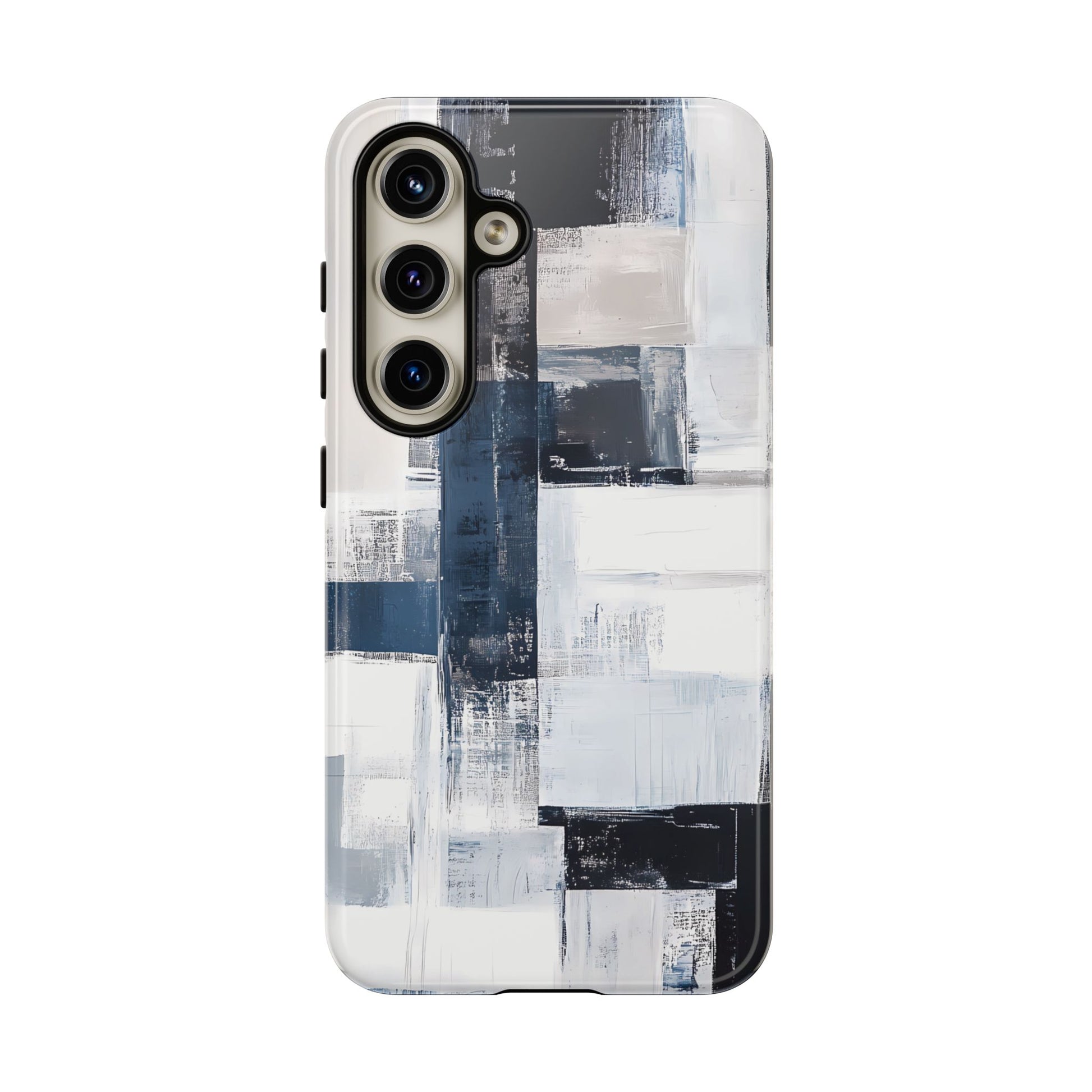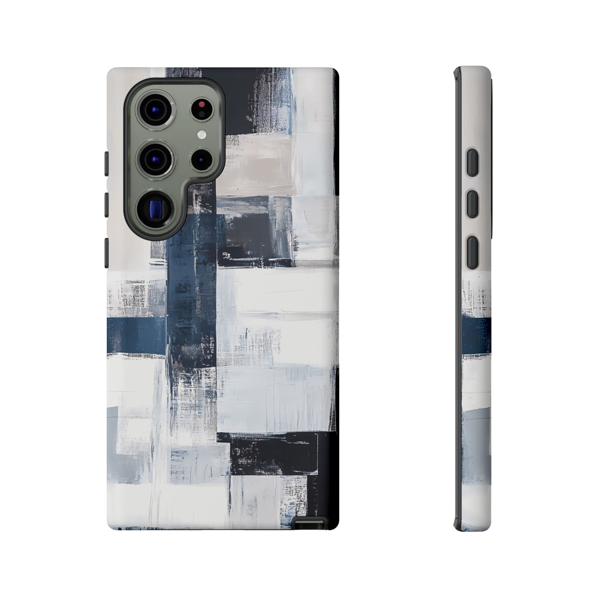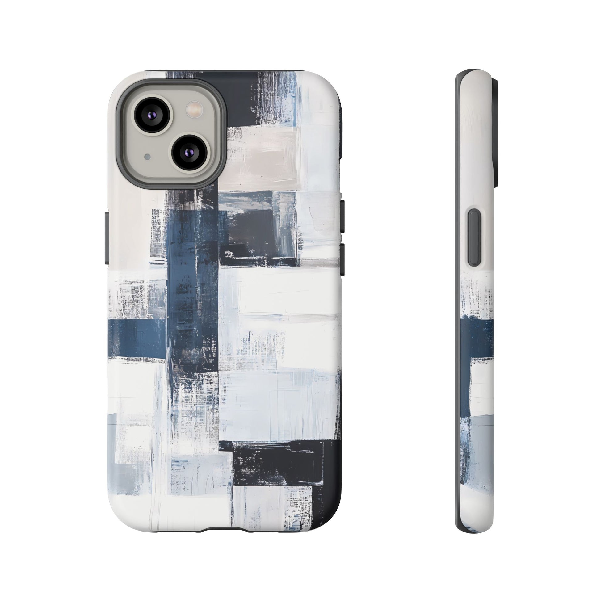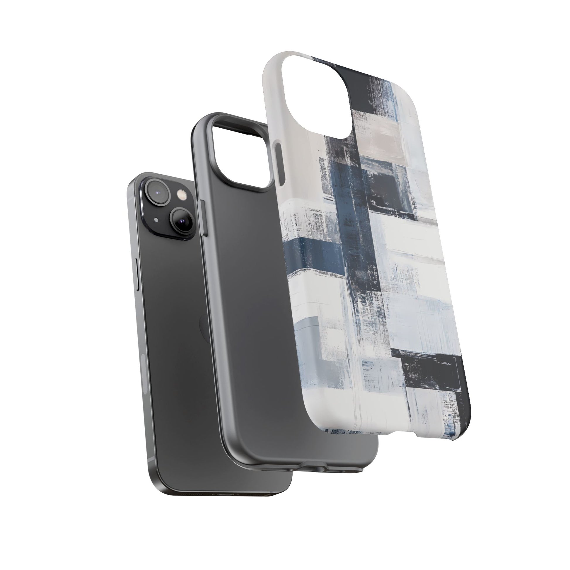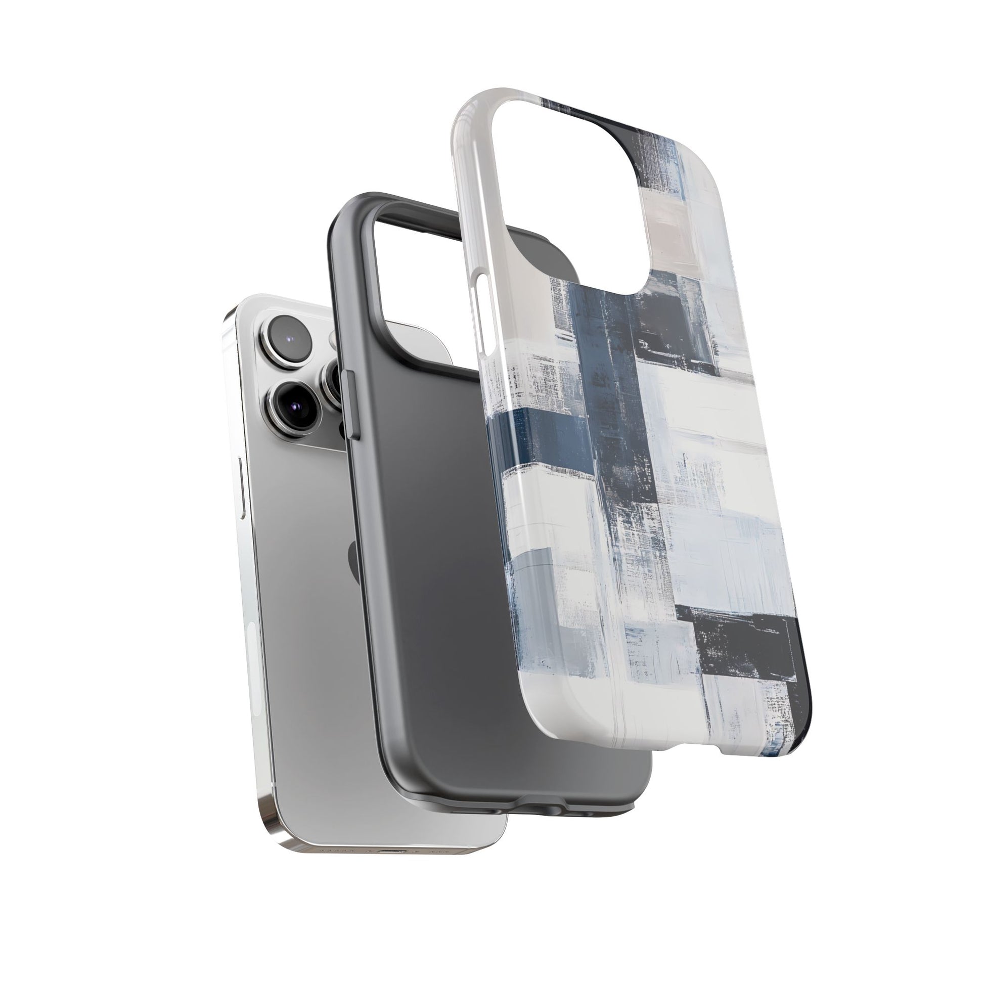 A sleek design built on bold geometry, Modern Balance layers large solid rectangles in white, black, blue, grey, and taupe. The clean lines and seamless color blending give this case a timeless, architectural aesthetic — perfect for those who love understated sophistication.
