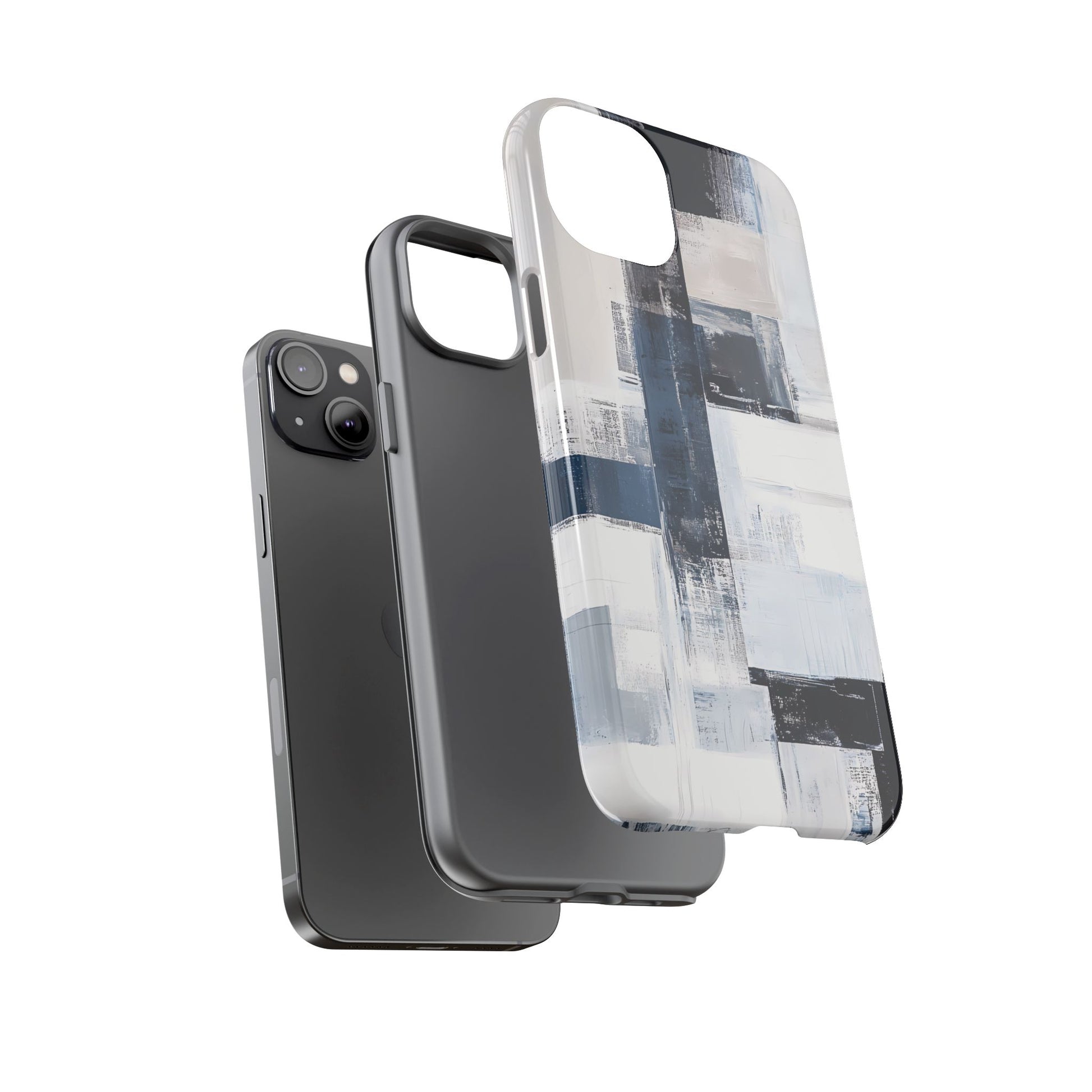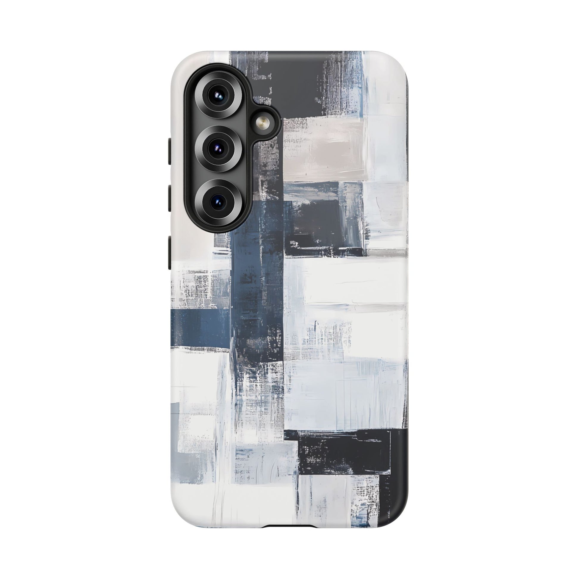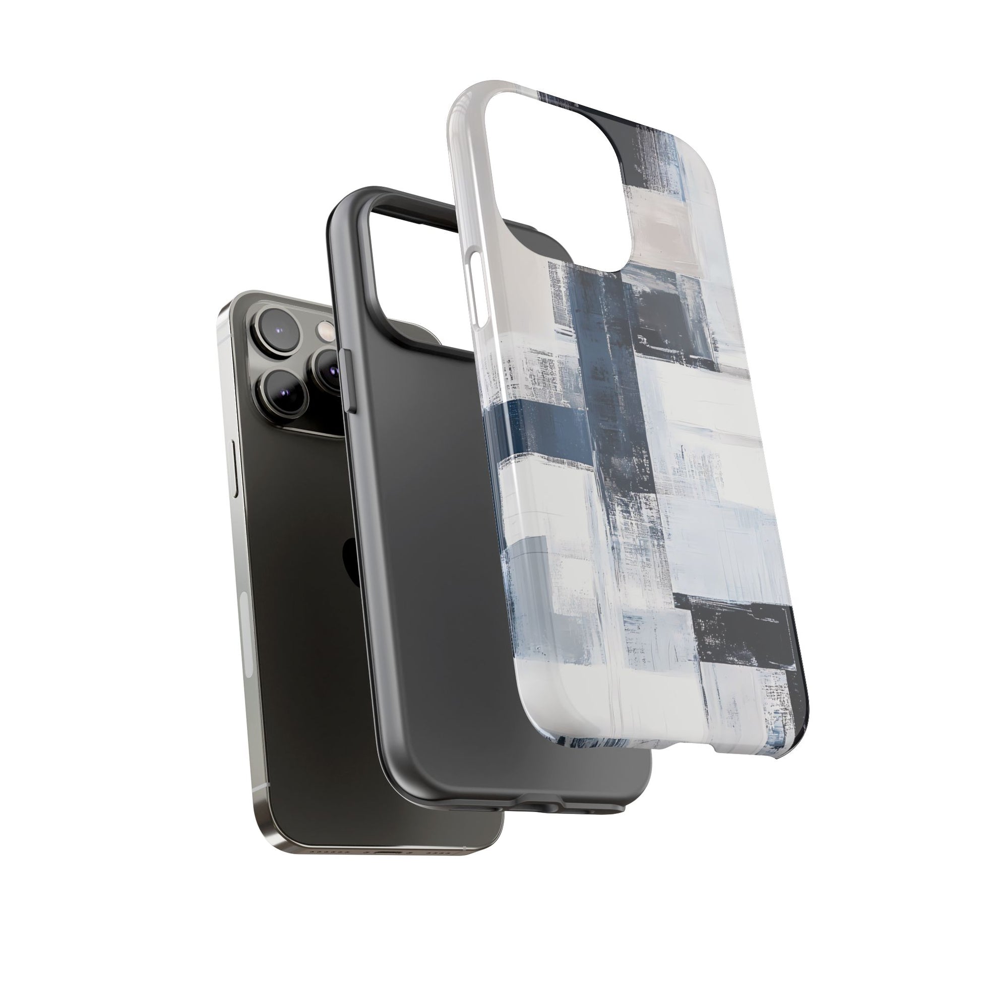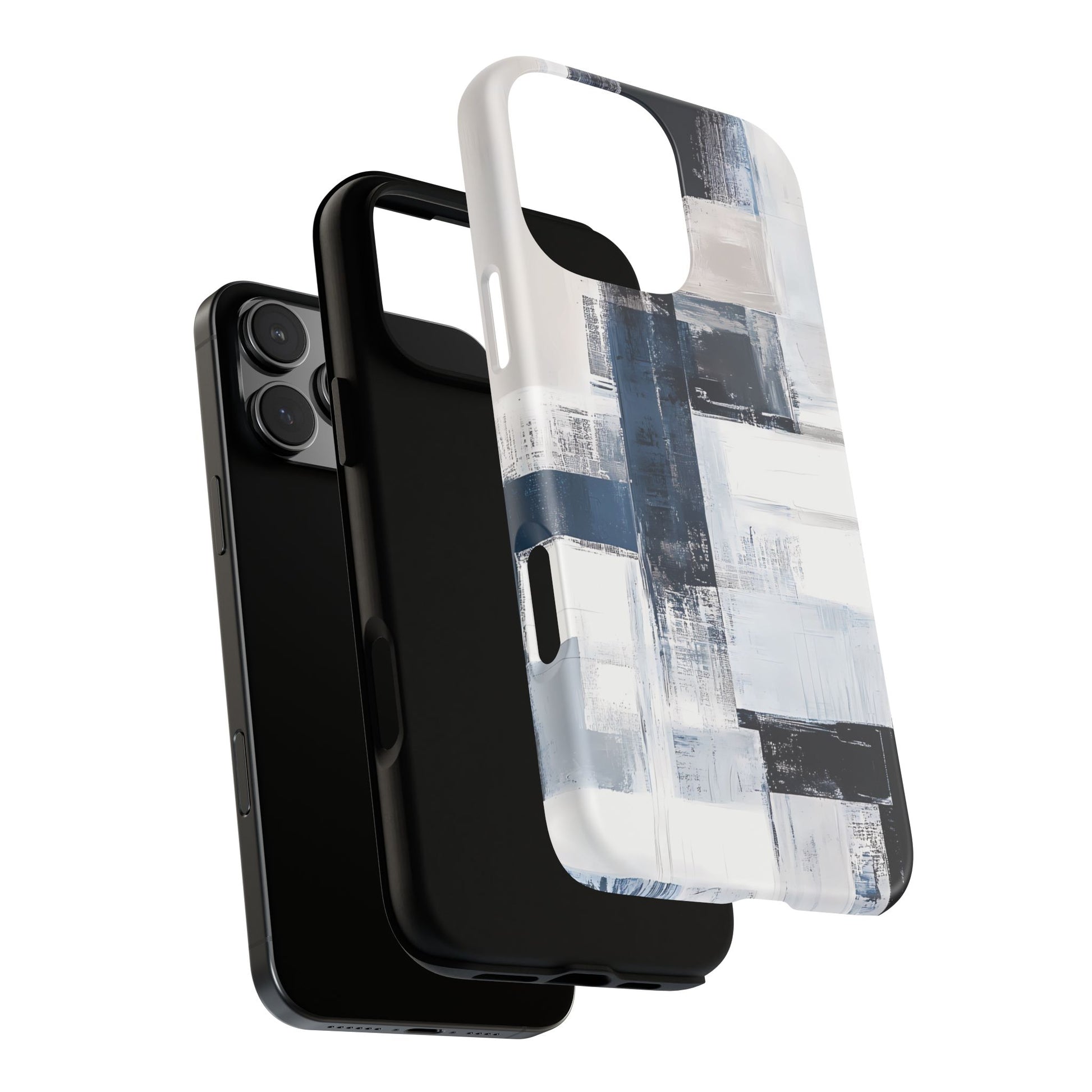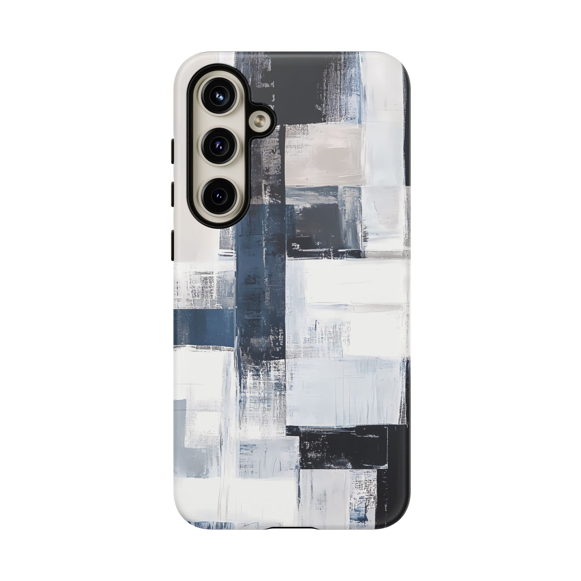 A sleek design built on bold geometry, Modern Balance layers large solid rectangles in white, black, blue, grey, and taupe. The clean lines and seamless color blending give this case a timeless, architectural aesthetic — perfect for those who love understated sophistication.