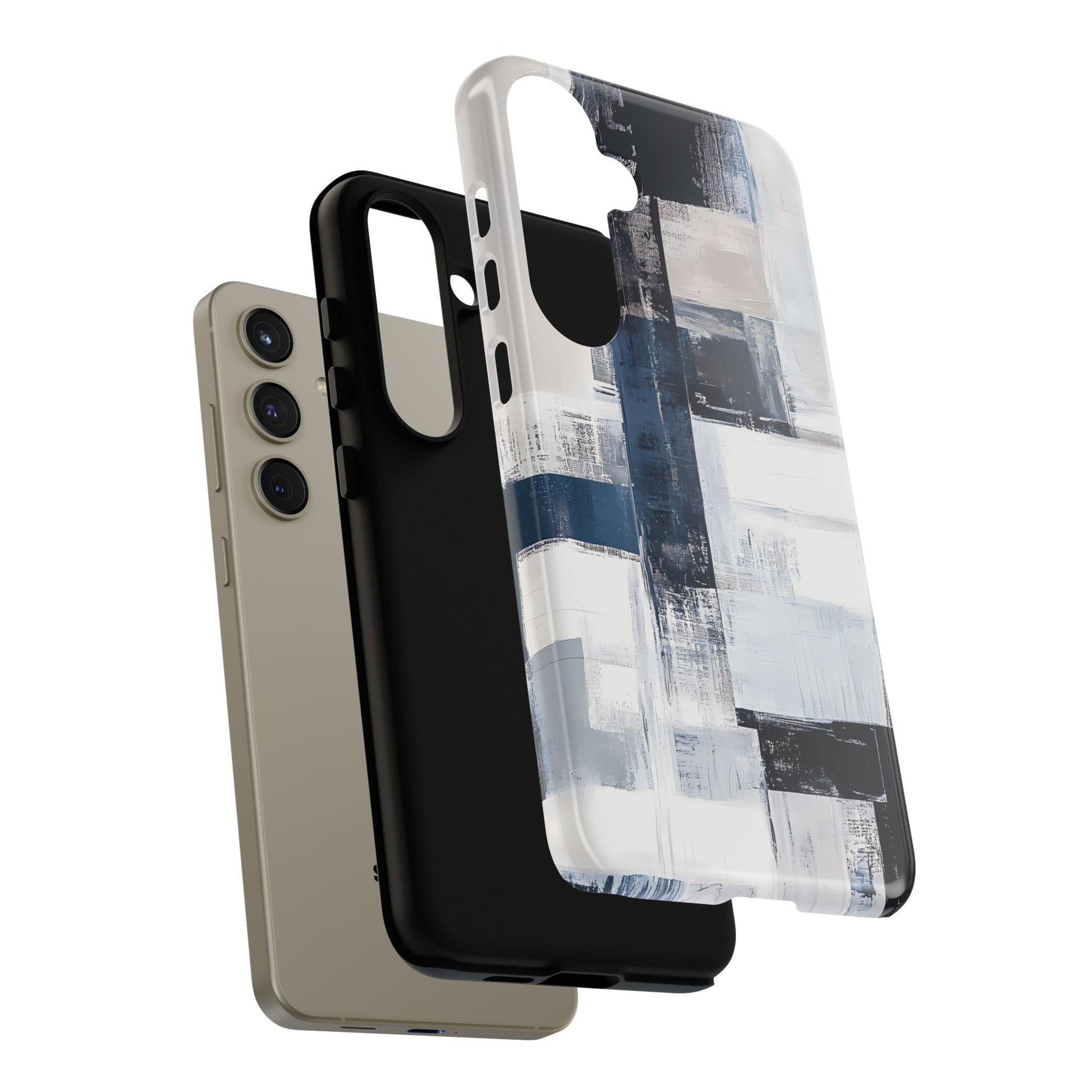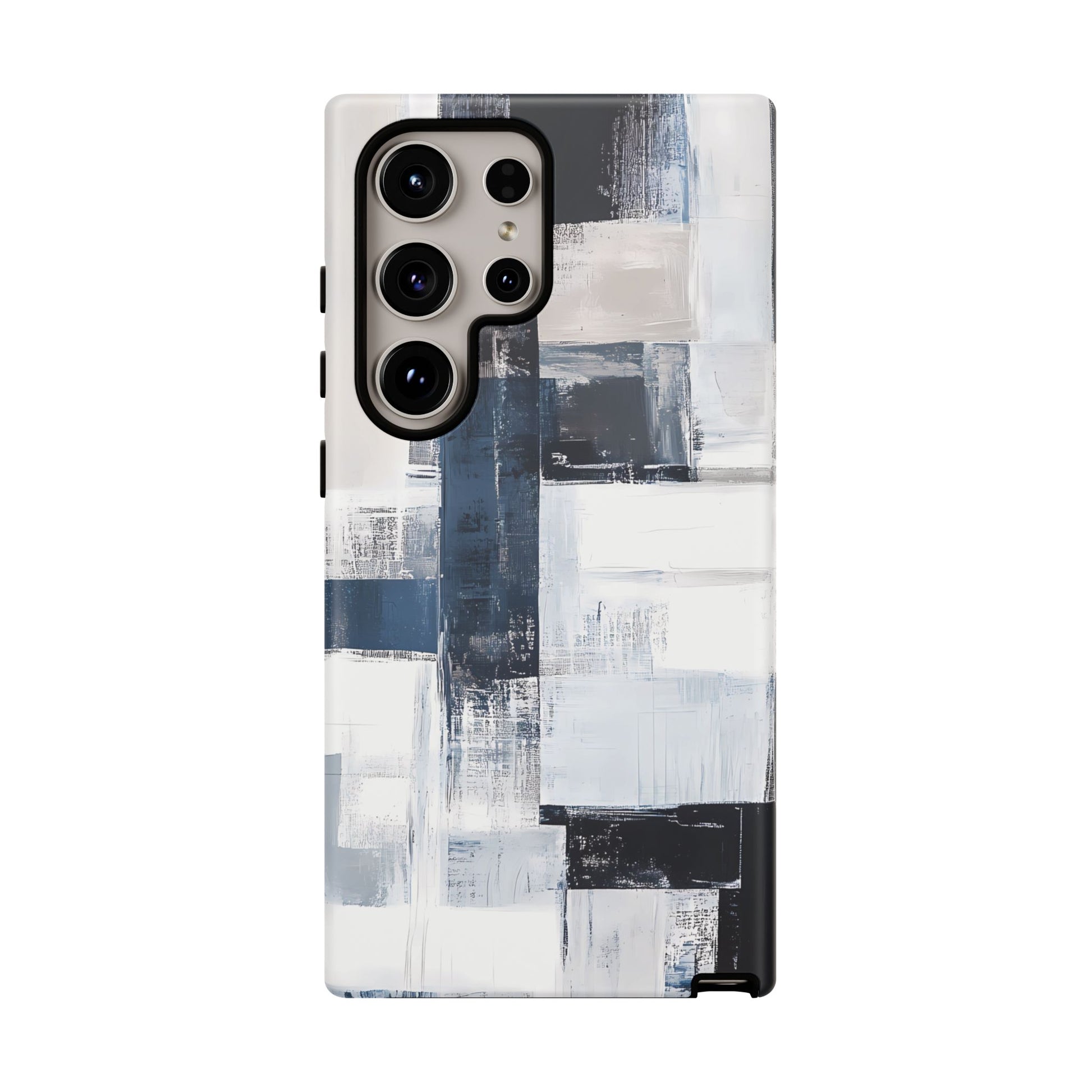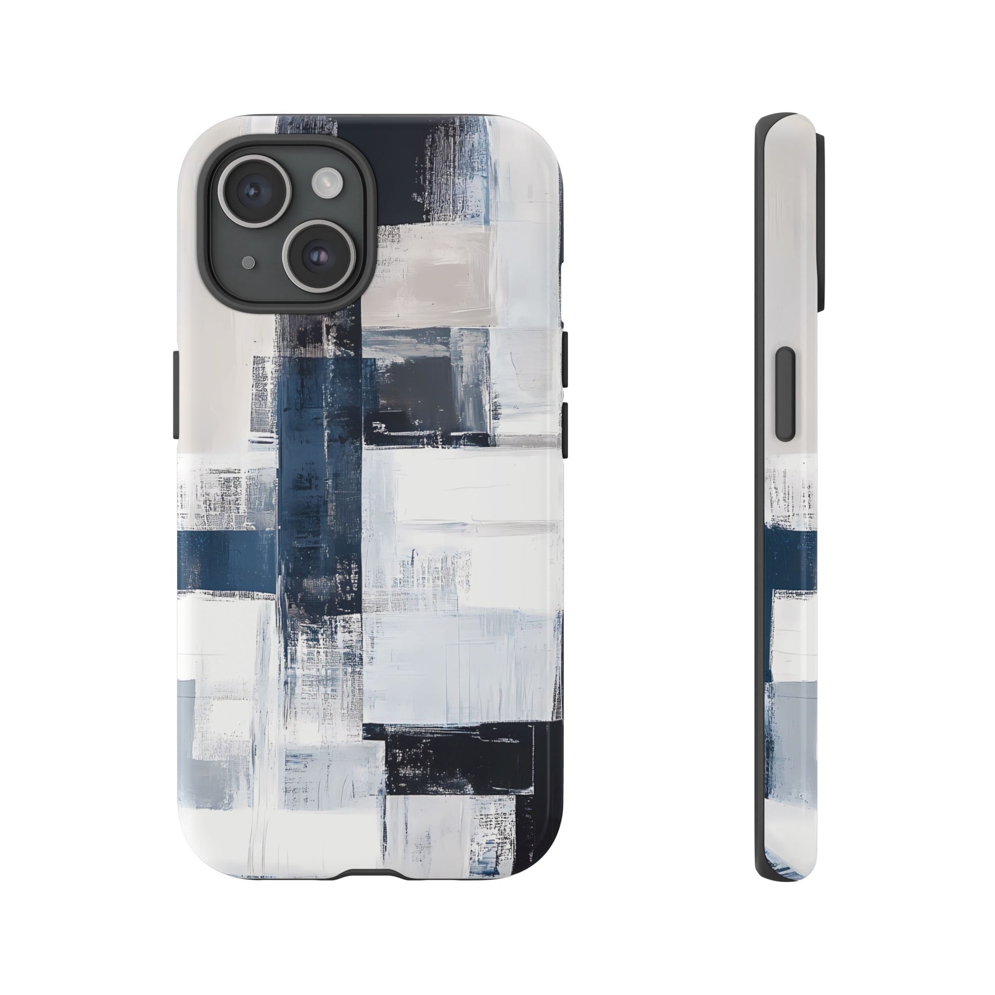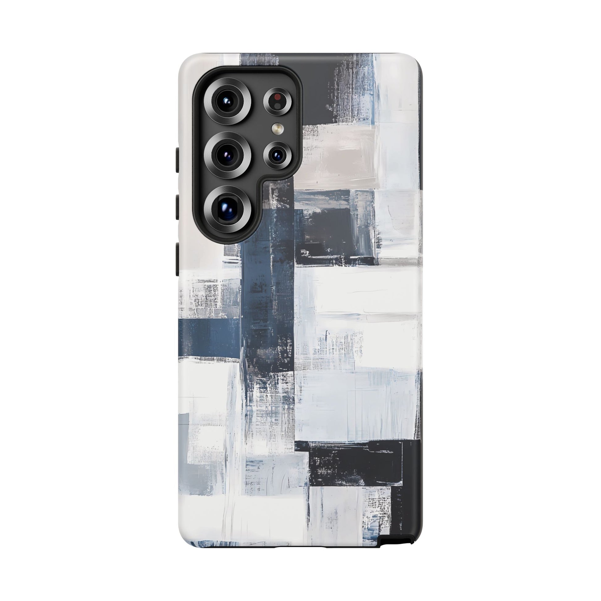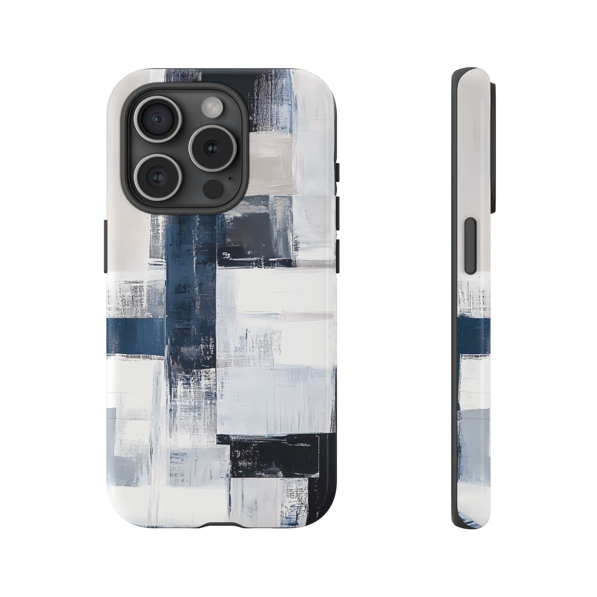 A sleek design built on bold geometry, Modern Balance layers large solid rectangles in white, black, blue, grey, and taupe. The clean lines and seamless color blending give this case a timeless, architectural aesthetic — perfect for those who love understated sophistication.