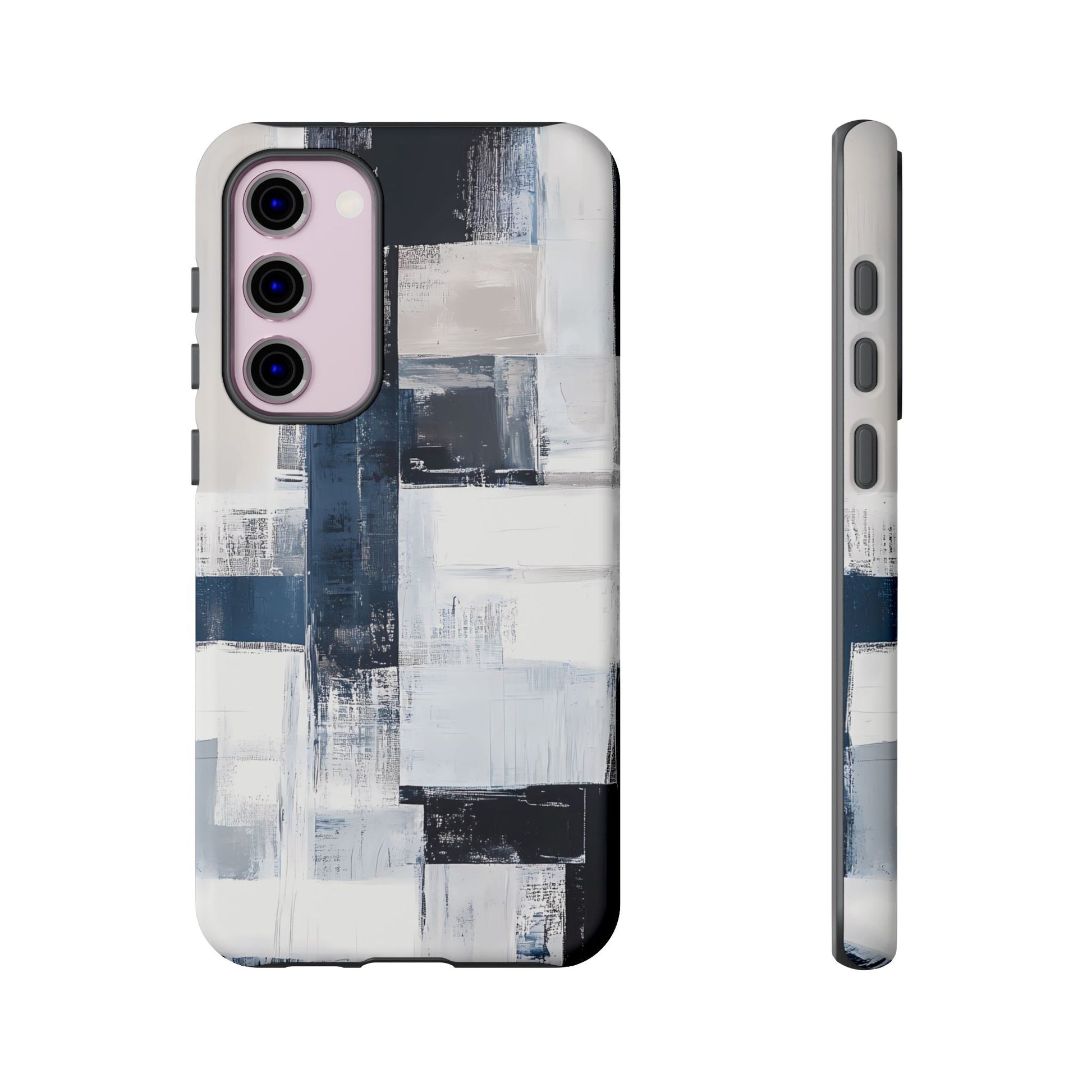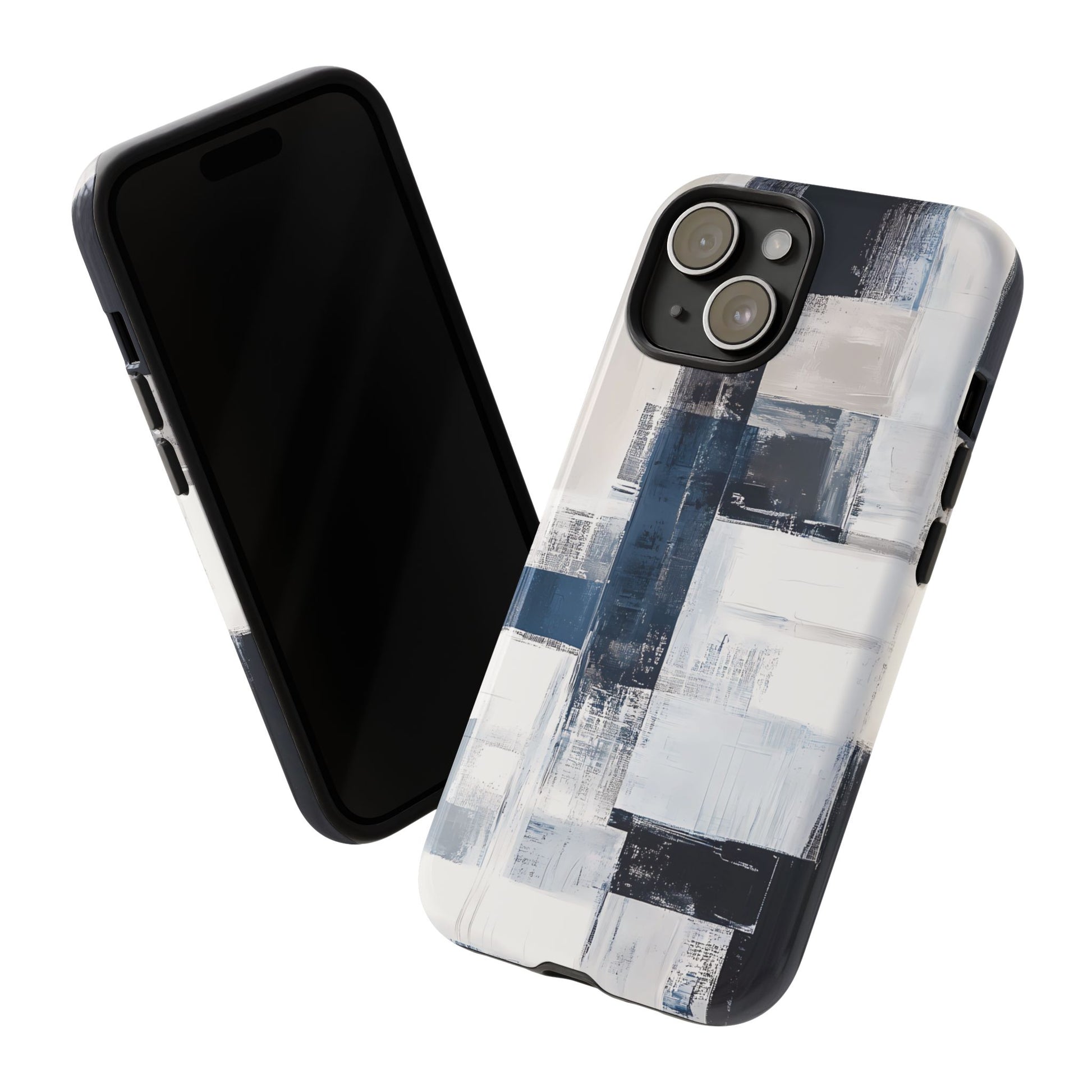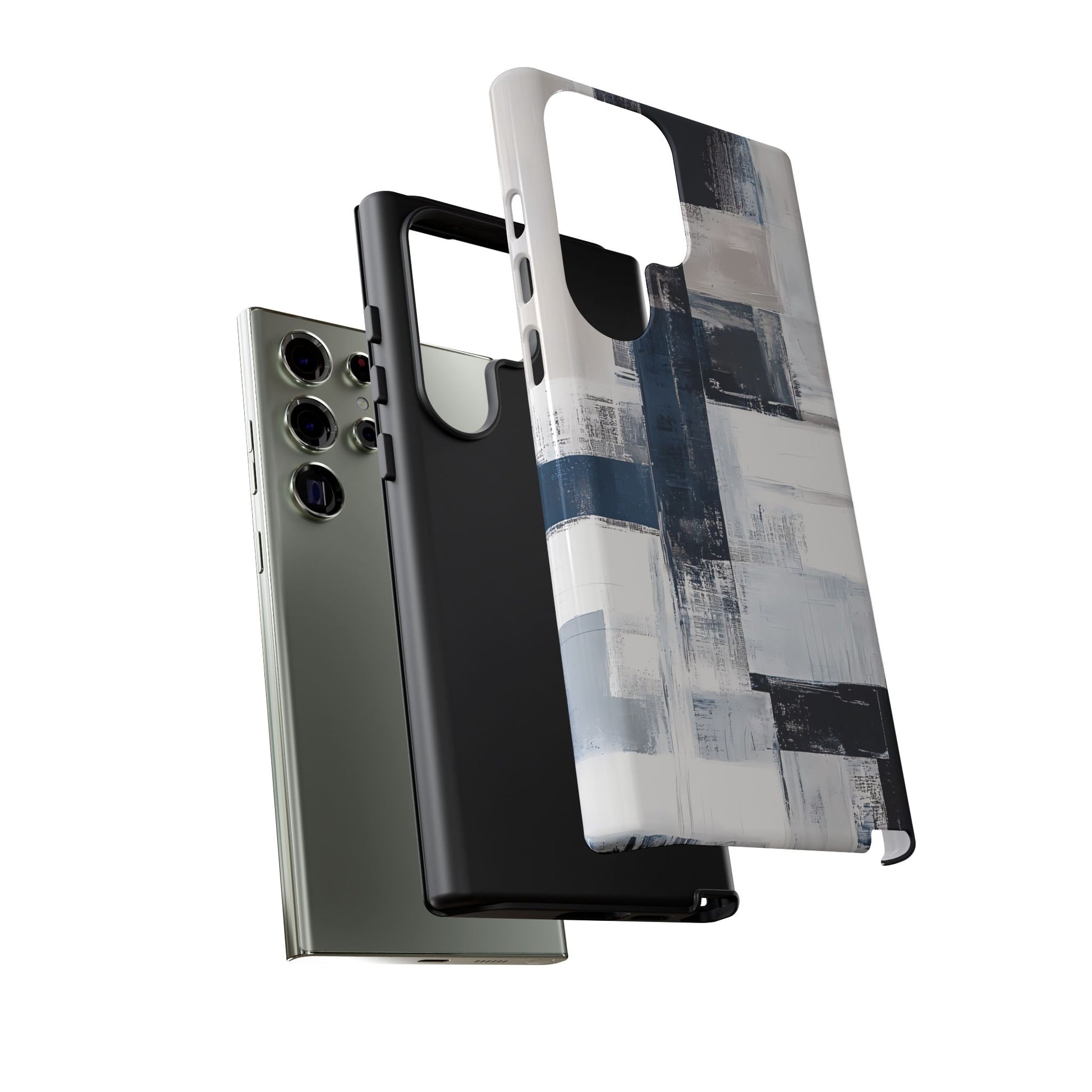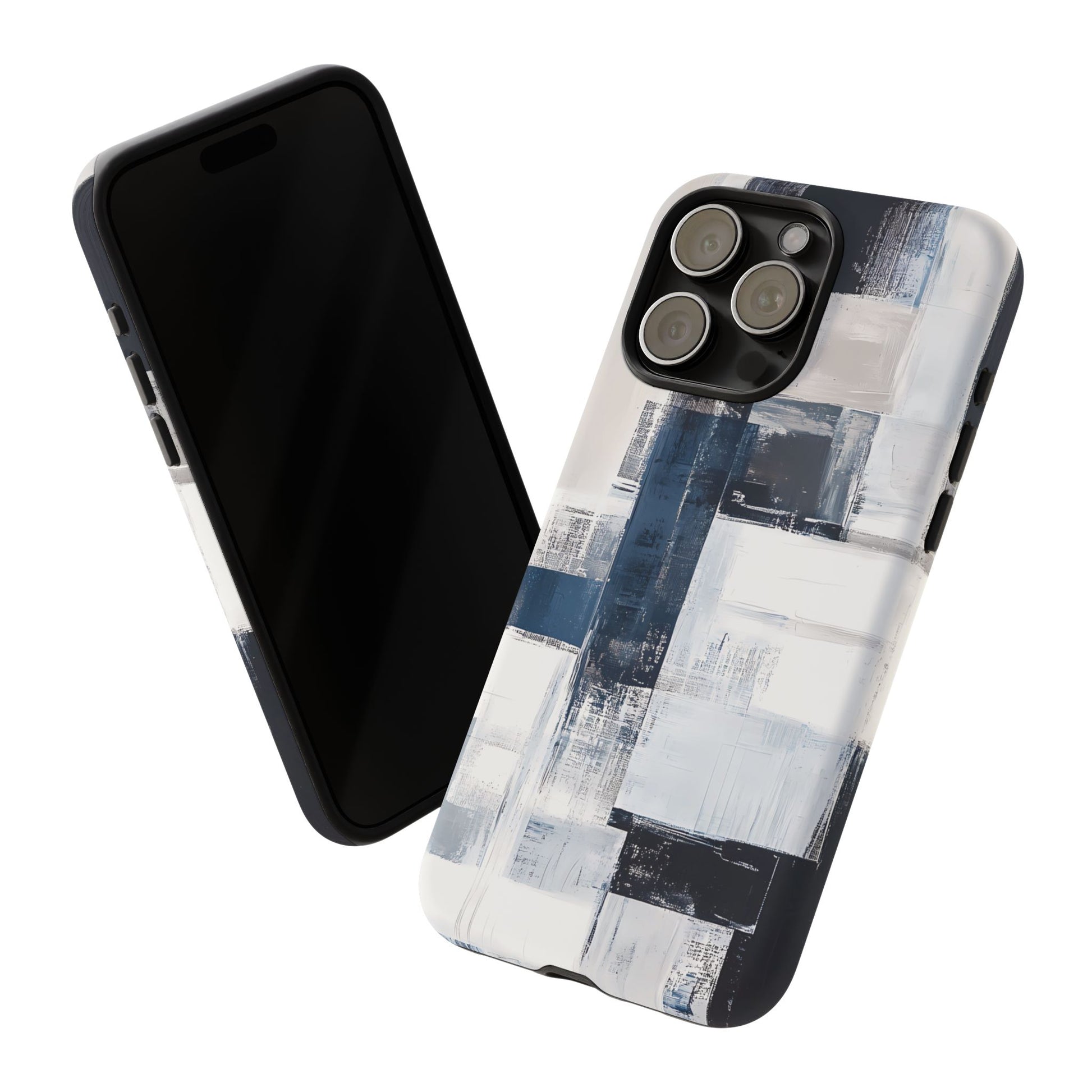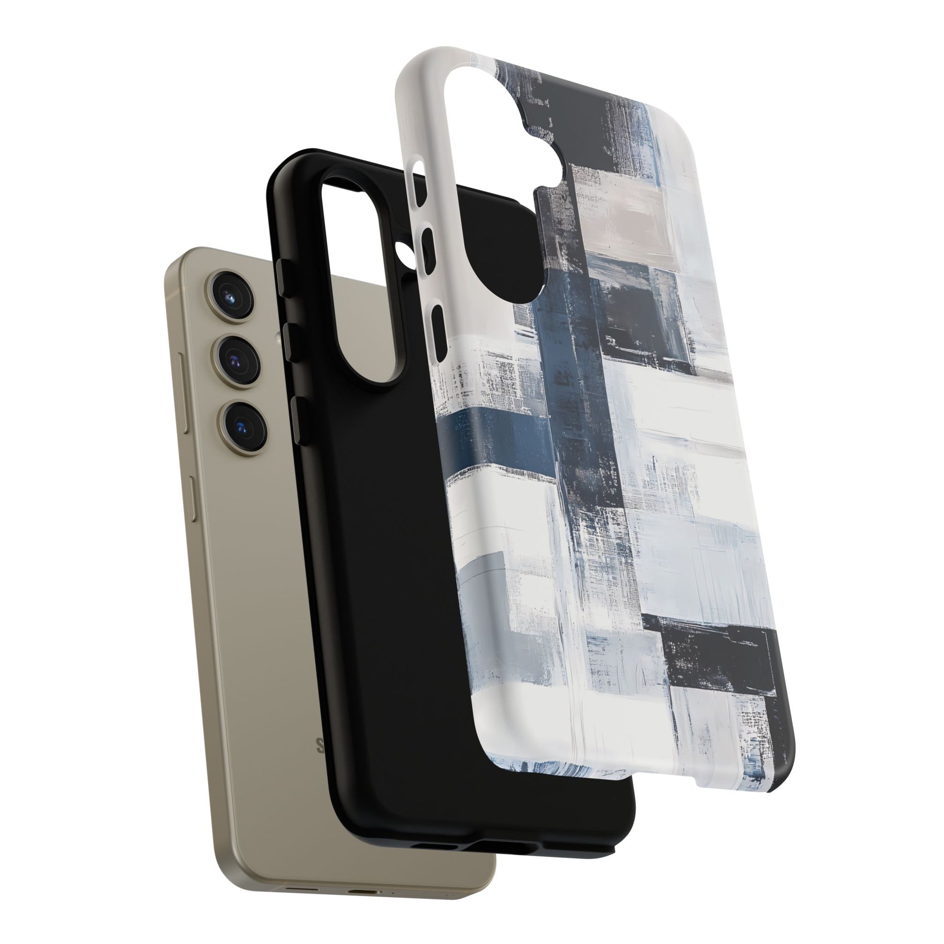 A sleek design built on bold geometry, Modern Balance layers large solid rectangles in white, black, blue, grey, and taupe. The clean lines and seamless color blending give this case a timeless, architectural aesthetic — perfect for those who love understated sophistication.