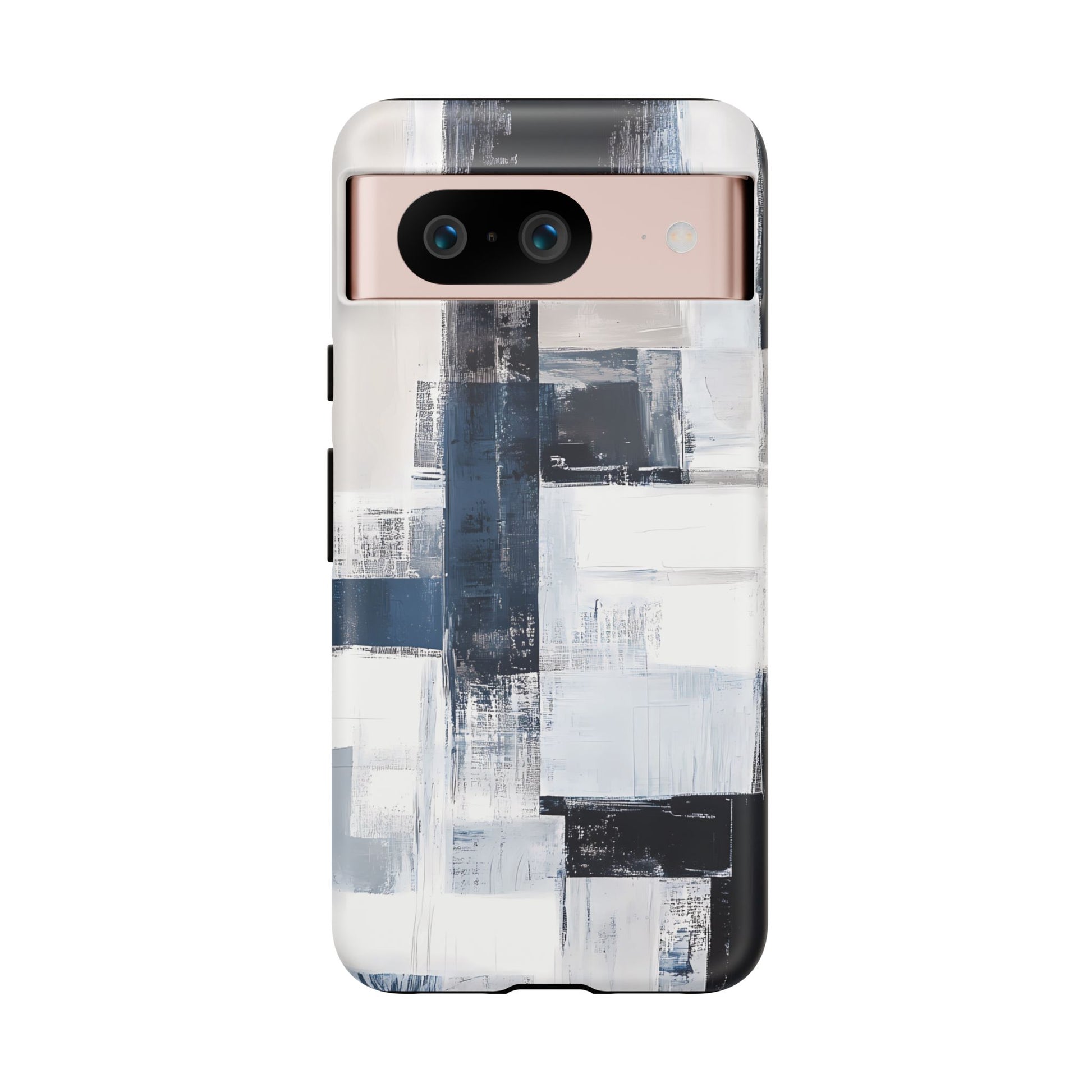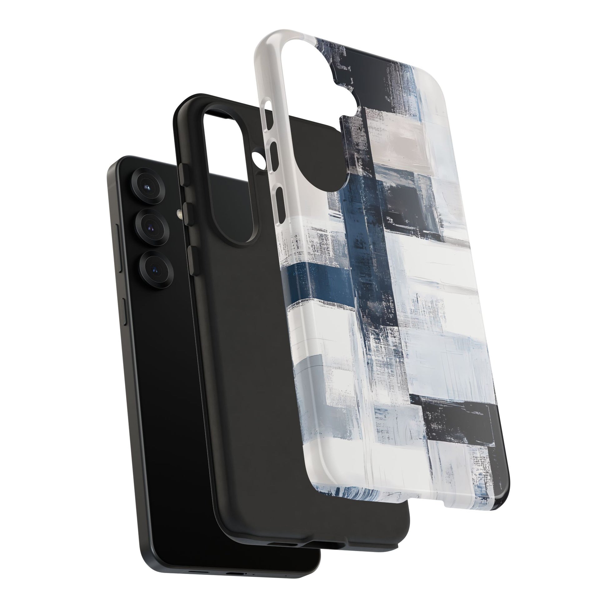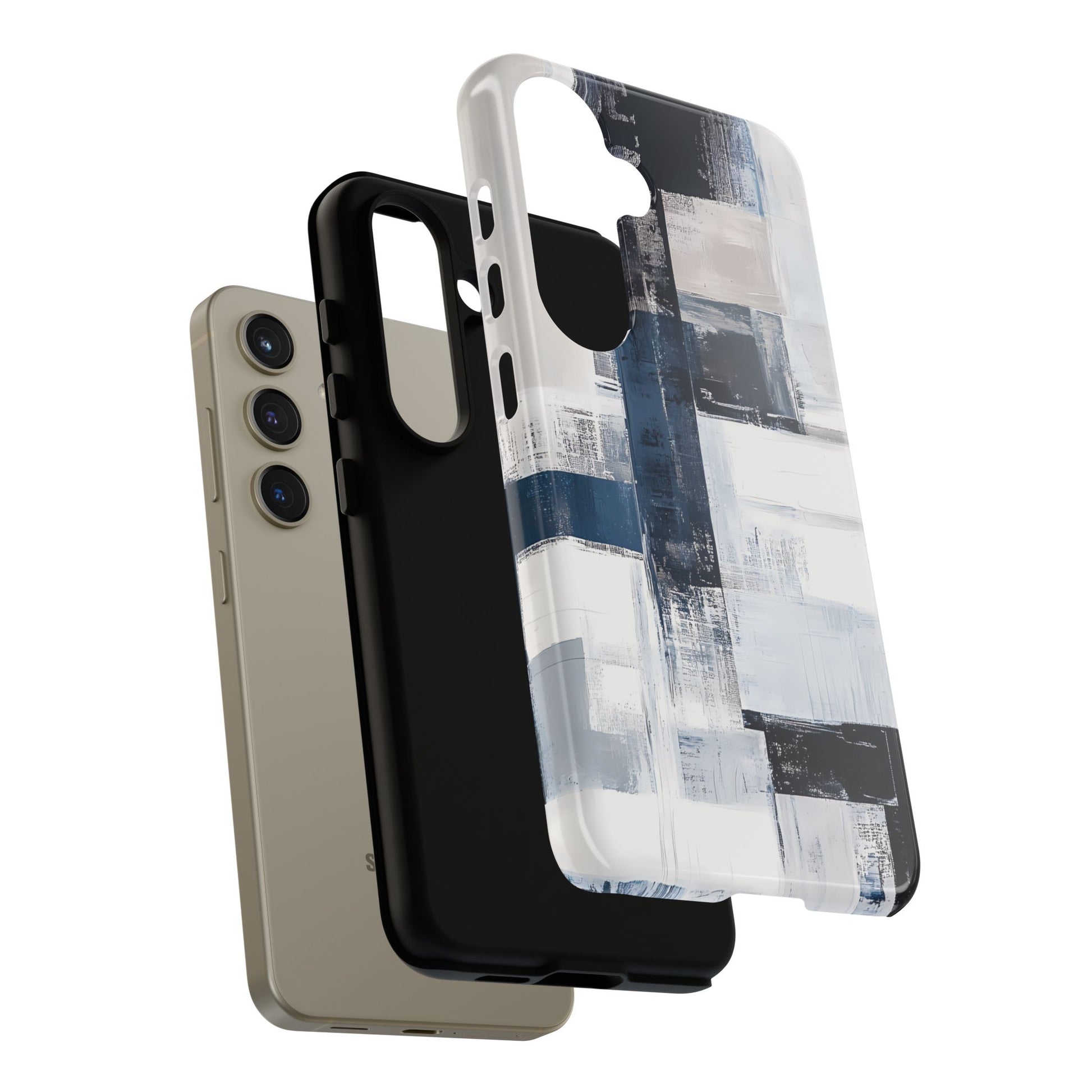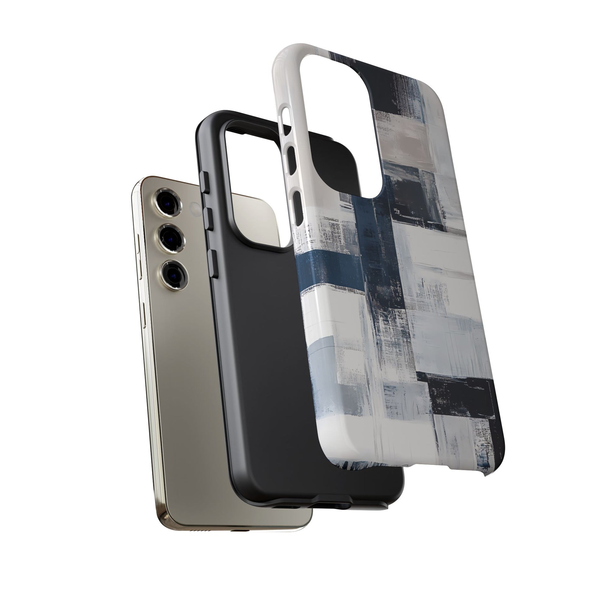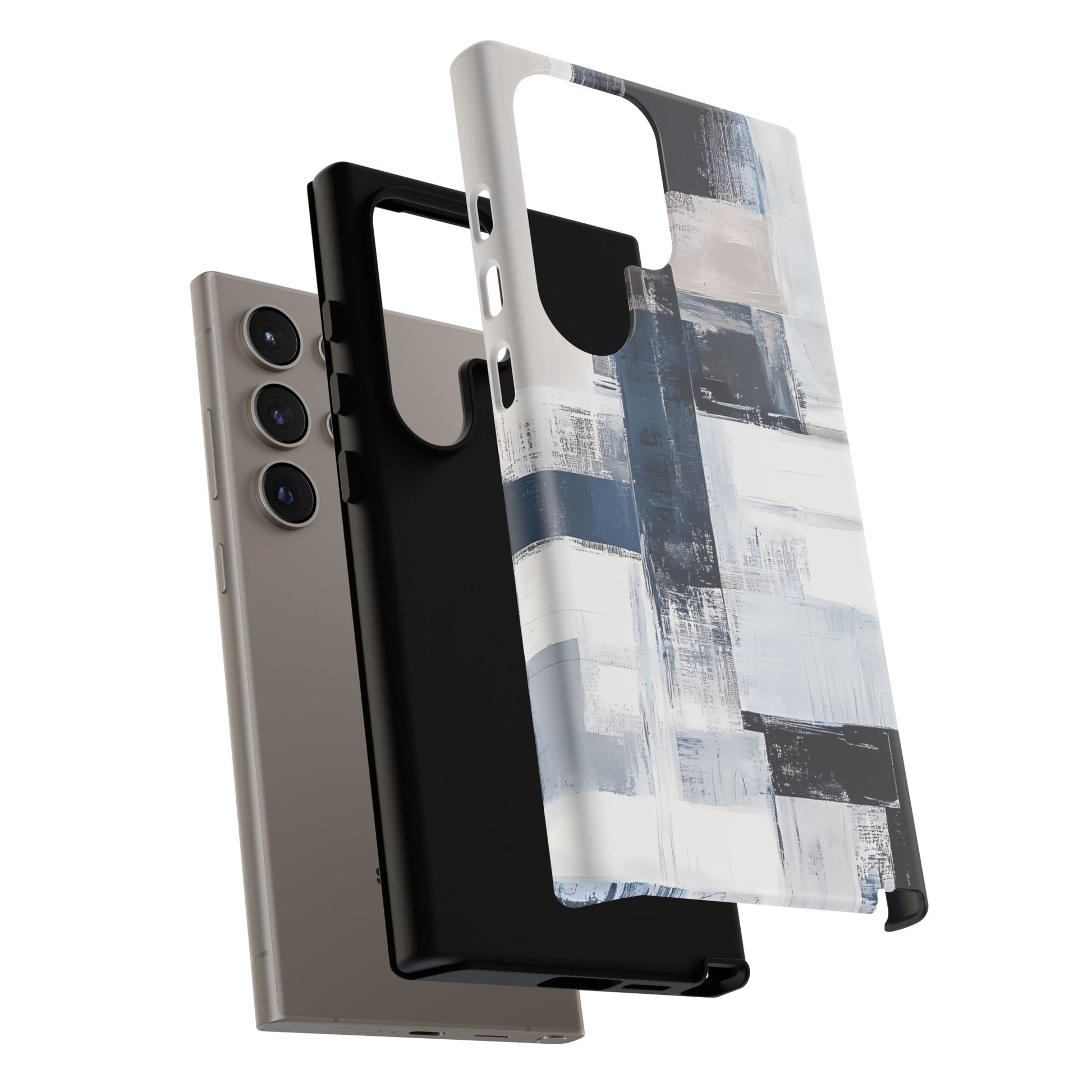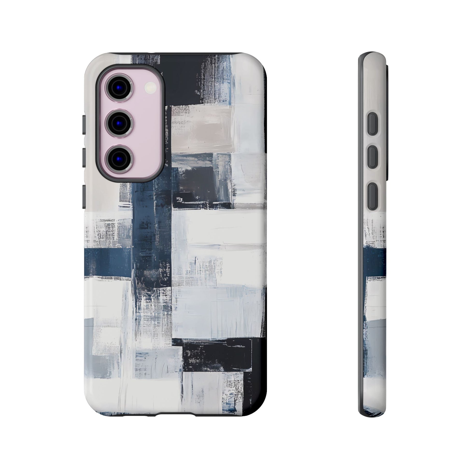 A sleek design built on bold geometry, Modern Balance layers large solid rectangles in white, black, blue, grey, and taupe. The clean lines and seamless color blending give this case a timeless, architectural aesthetic — perfect for those who love understated sophistication.