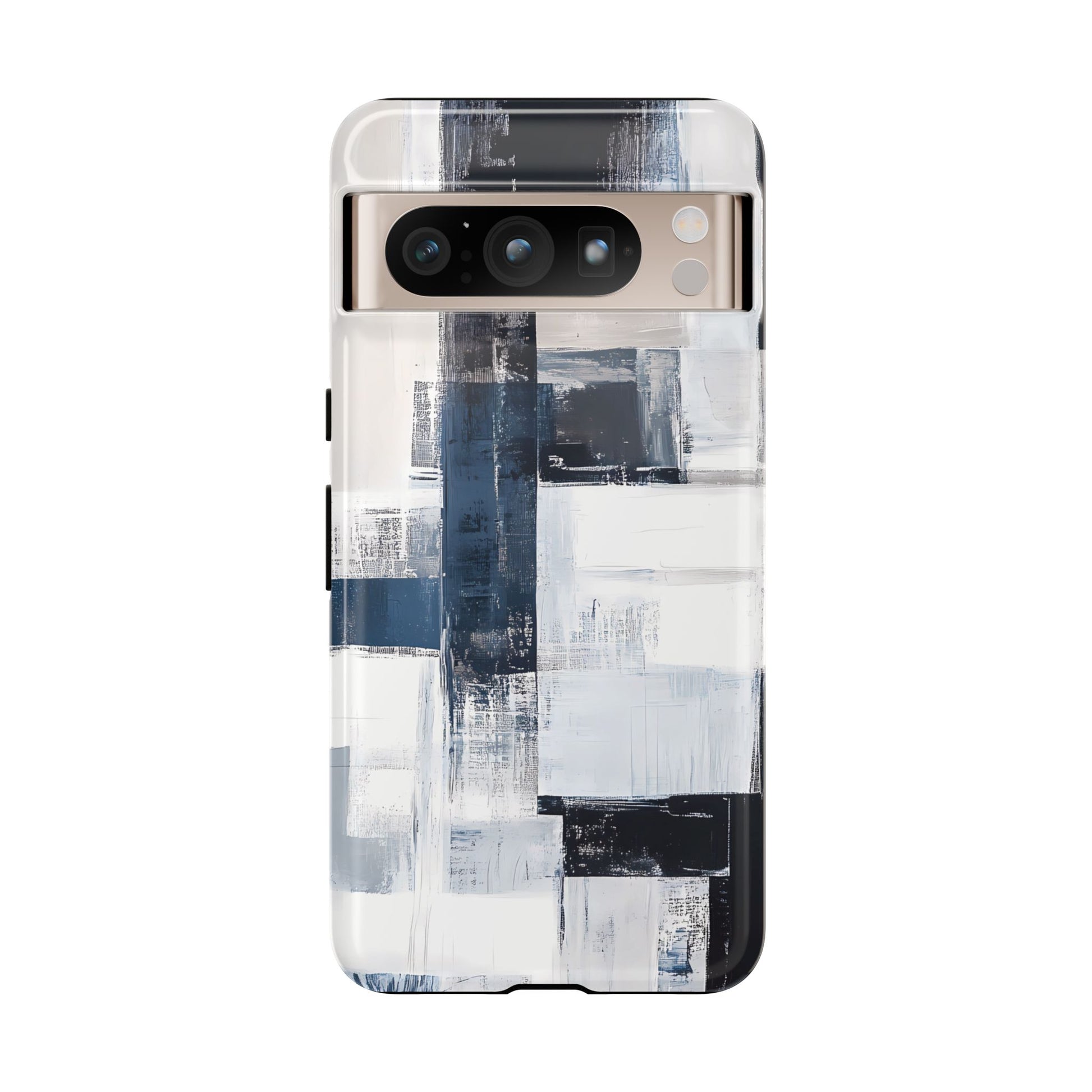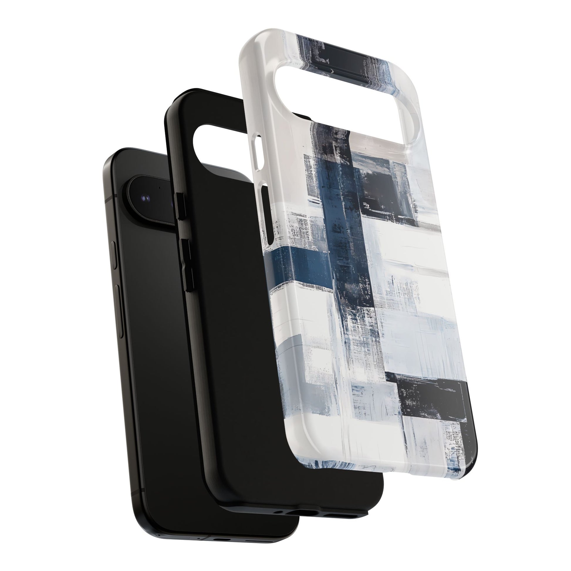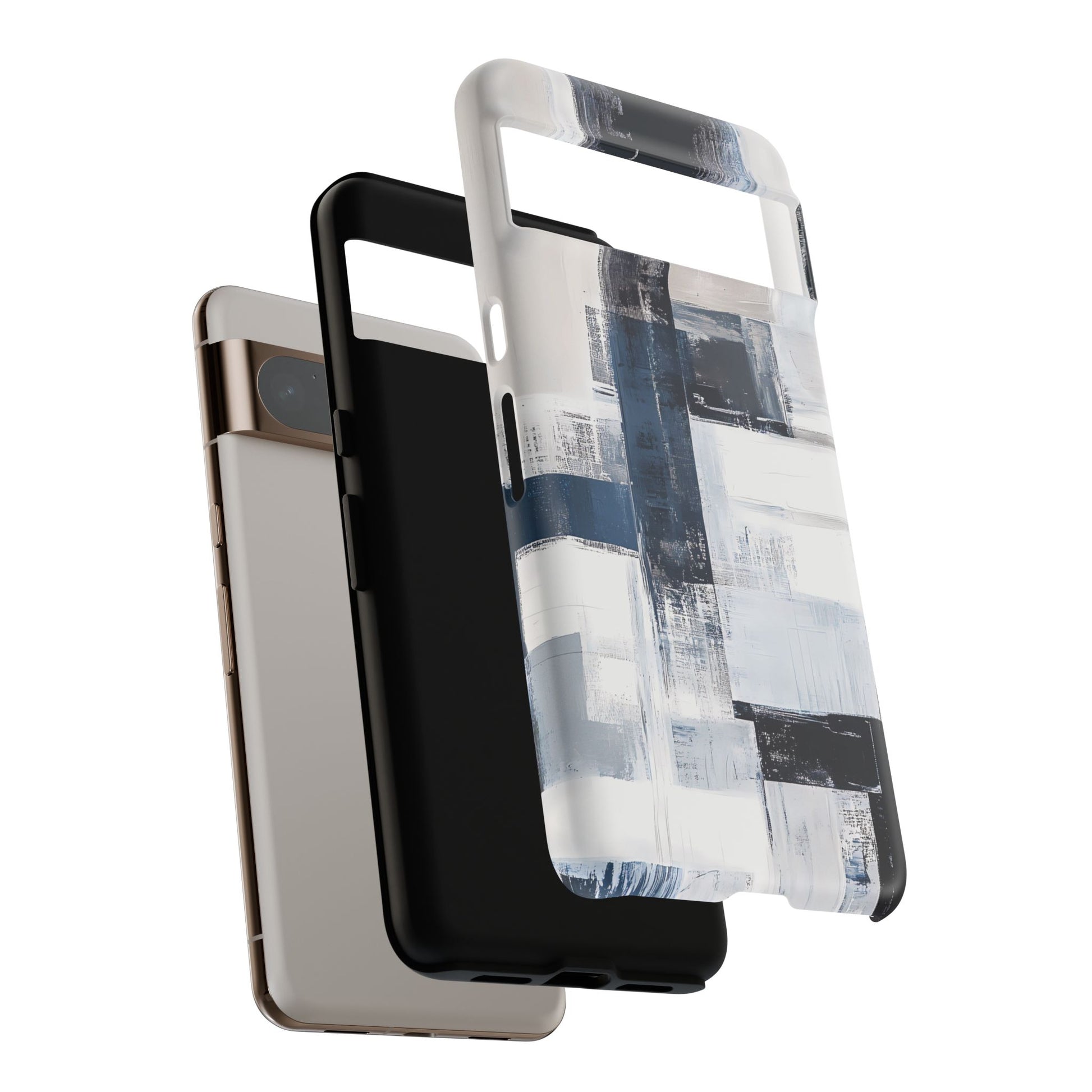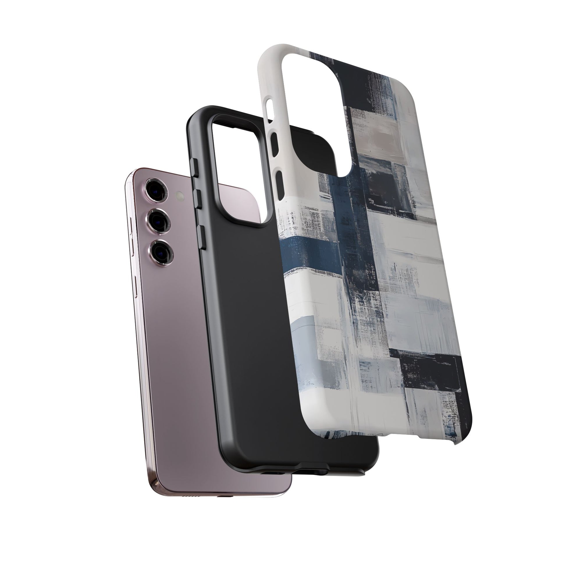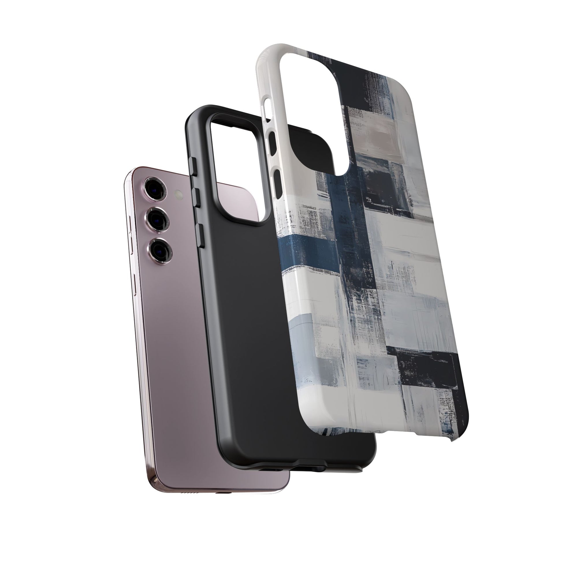 A sleek design built on bold geometry, Modern Balance layers large solid rectangles in white, black, blue, grey, and taupe. The clean lines and seamless color blending give this case a timeless, architectural aesthetic — perfect for those who love understated sophistication.