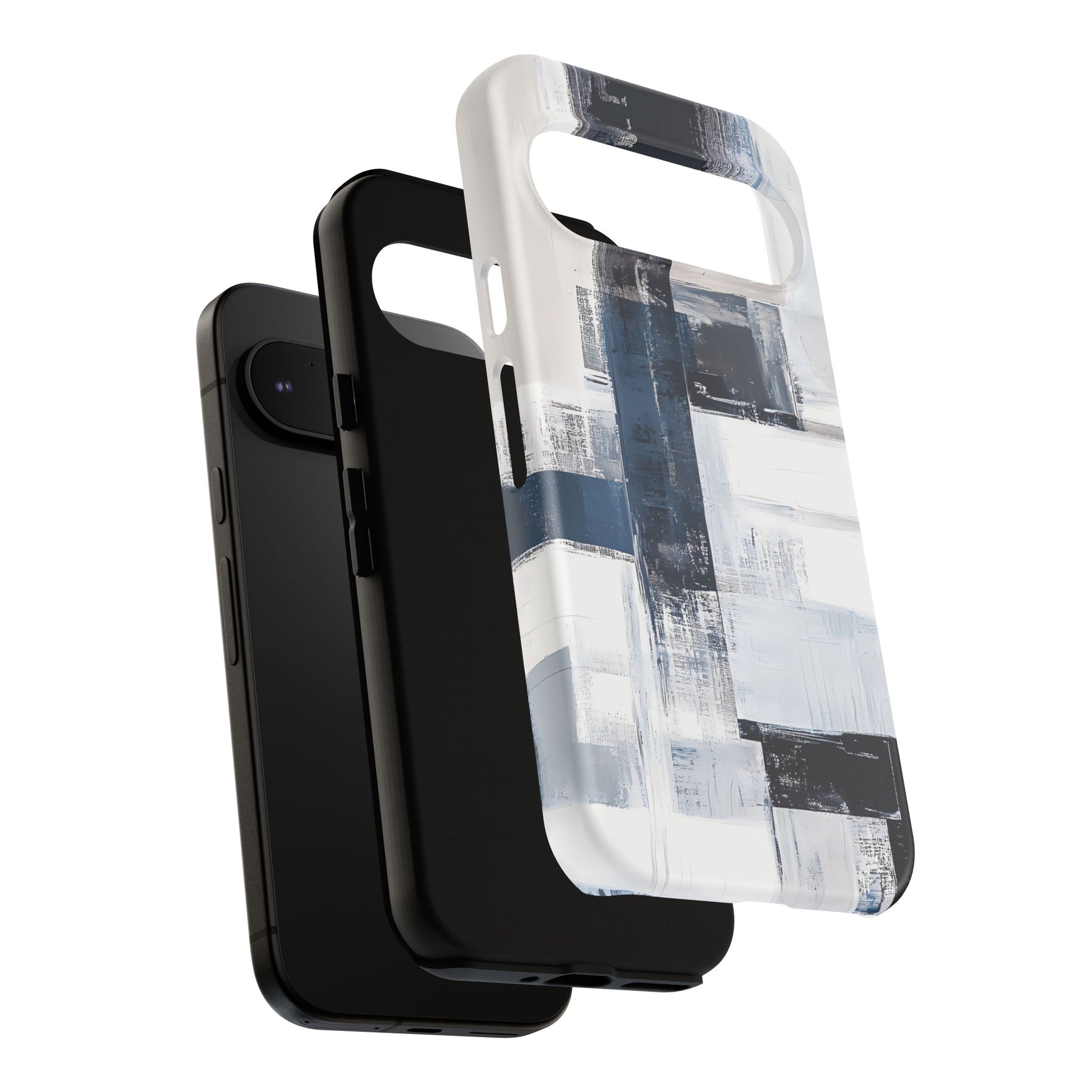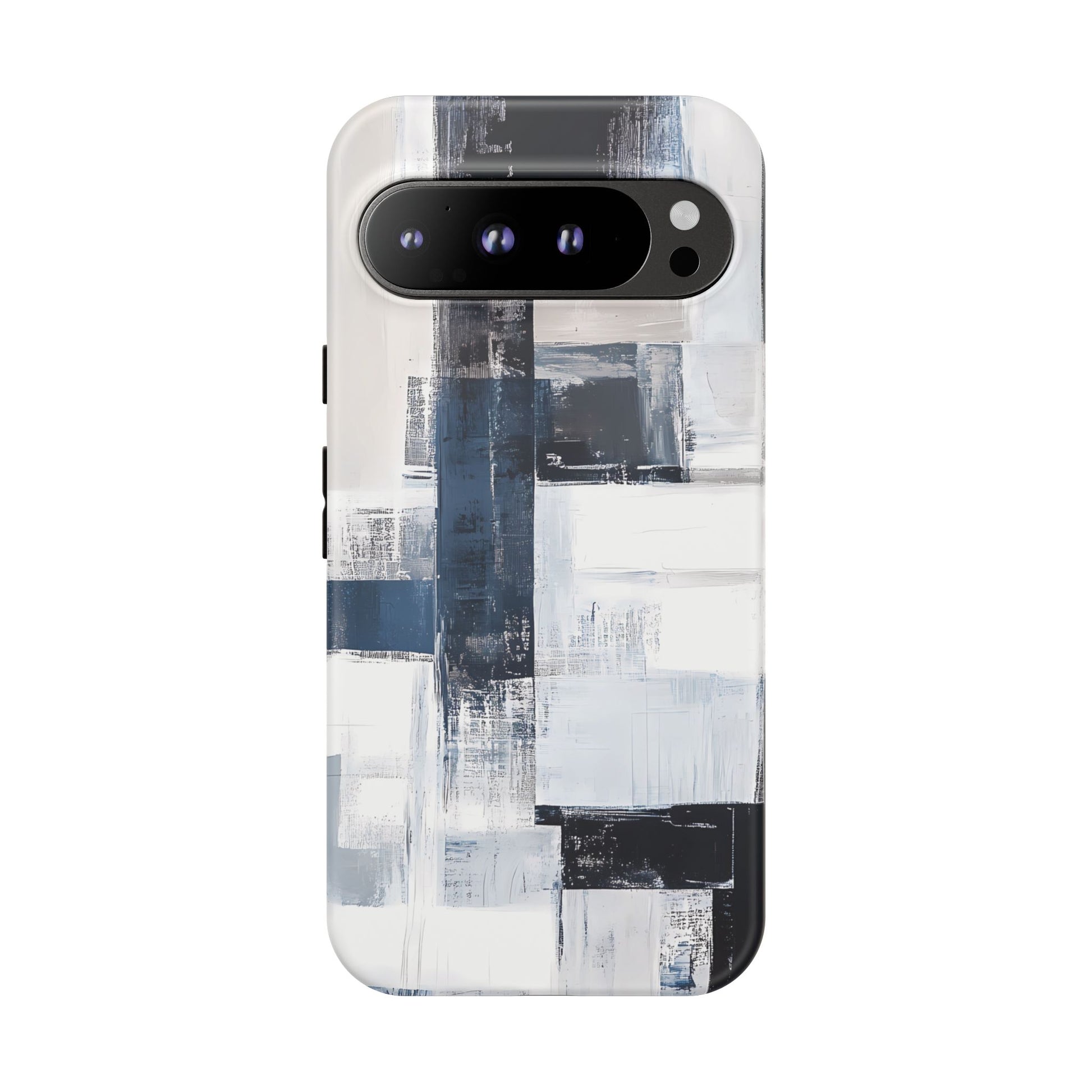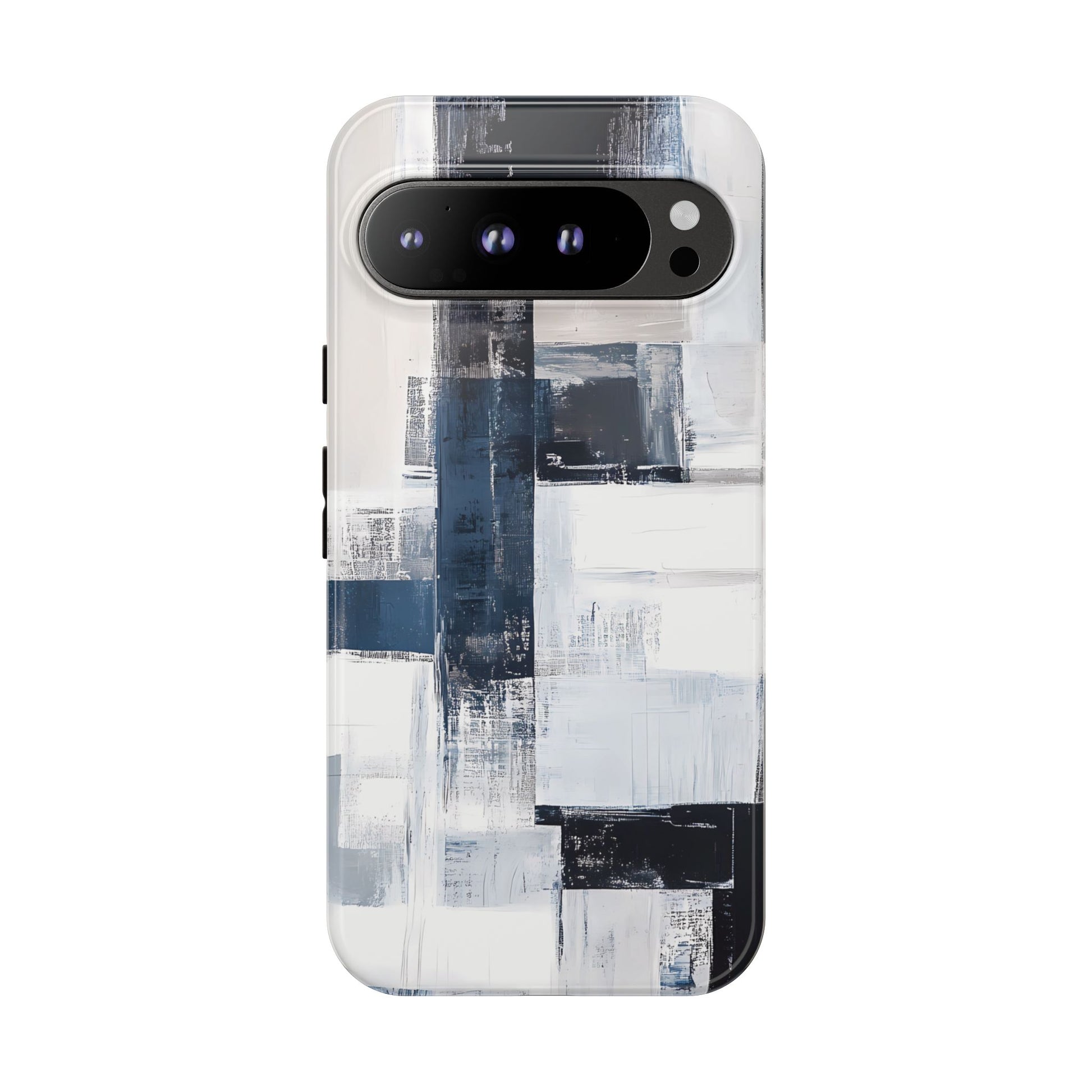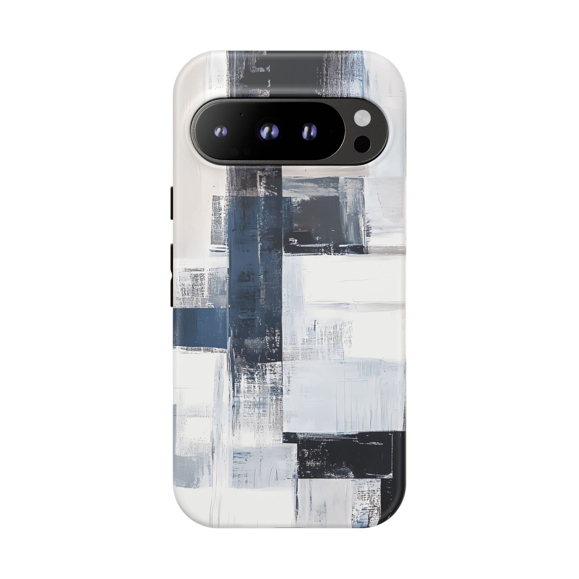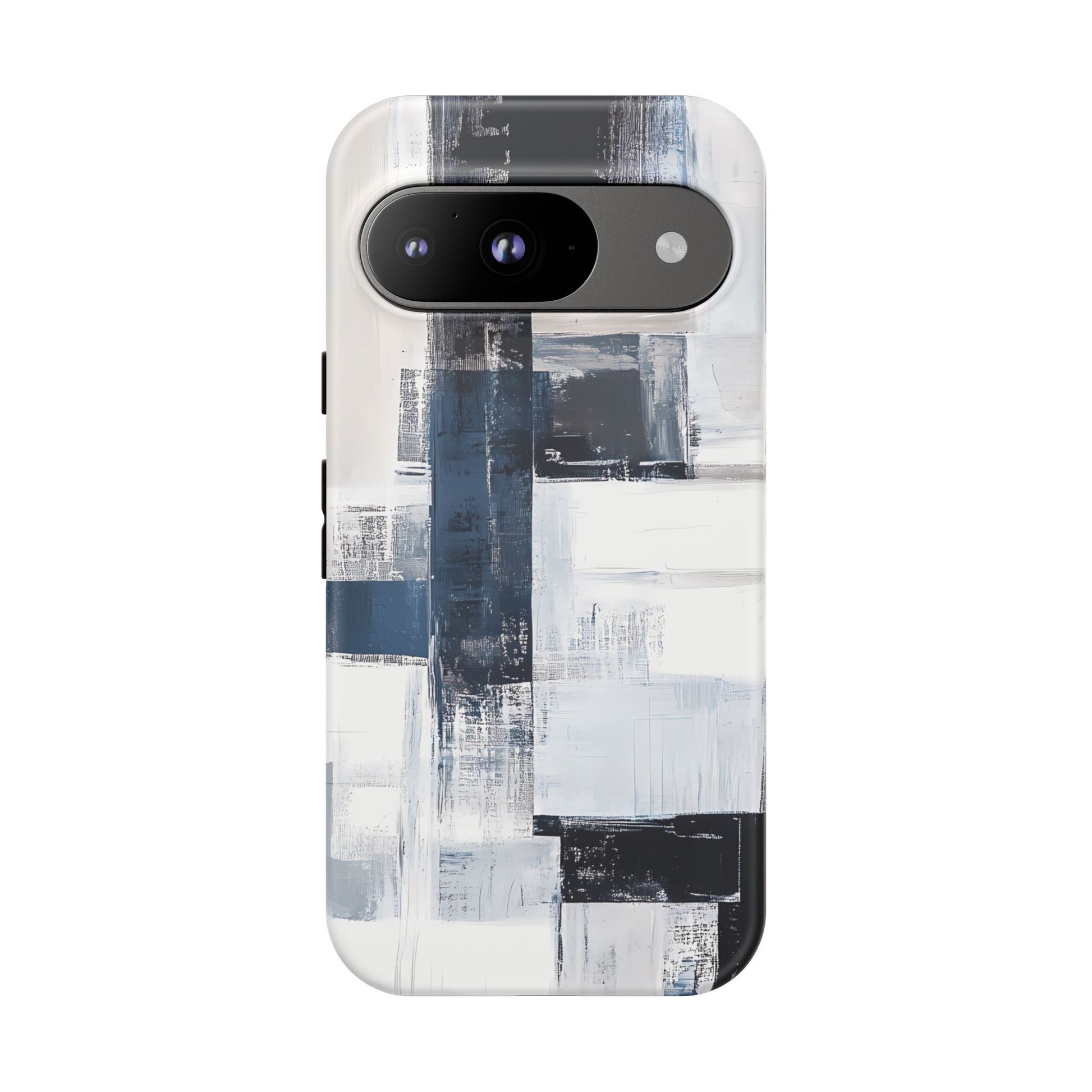 A sleek design built on bold geometry, Modern Balance layers large solid rectangles in white, black, blue, grey, and taupe. The clean lines and seamless color blending give this case a timeless, architectural aesthetic — perfect for those who love understated sophistication.