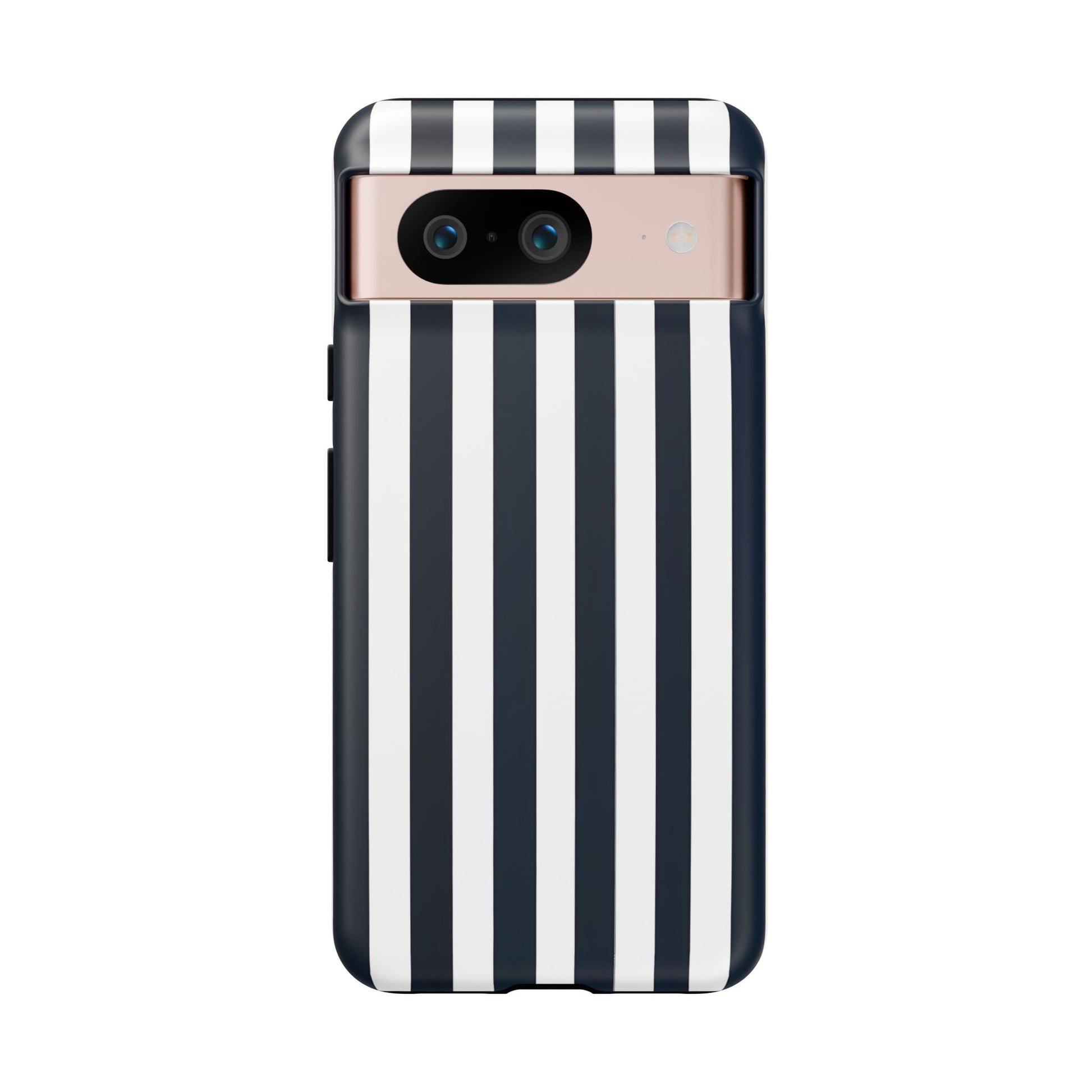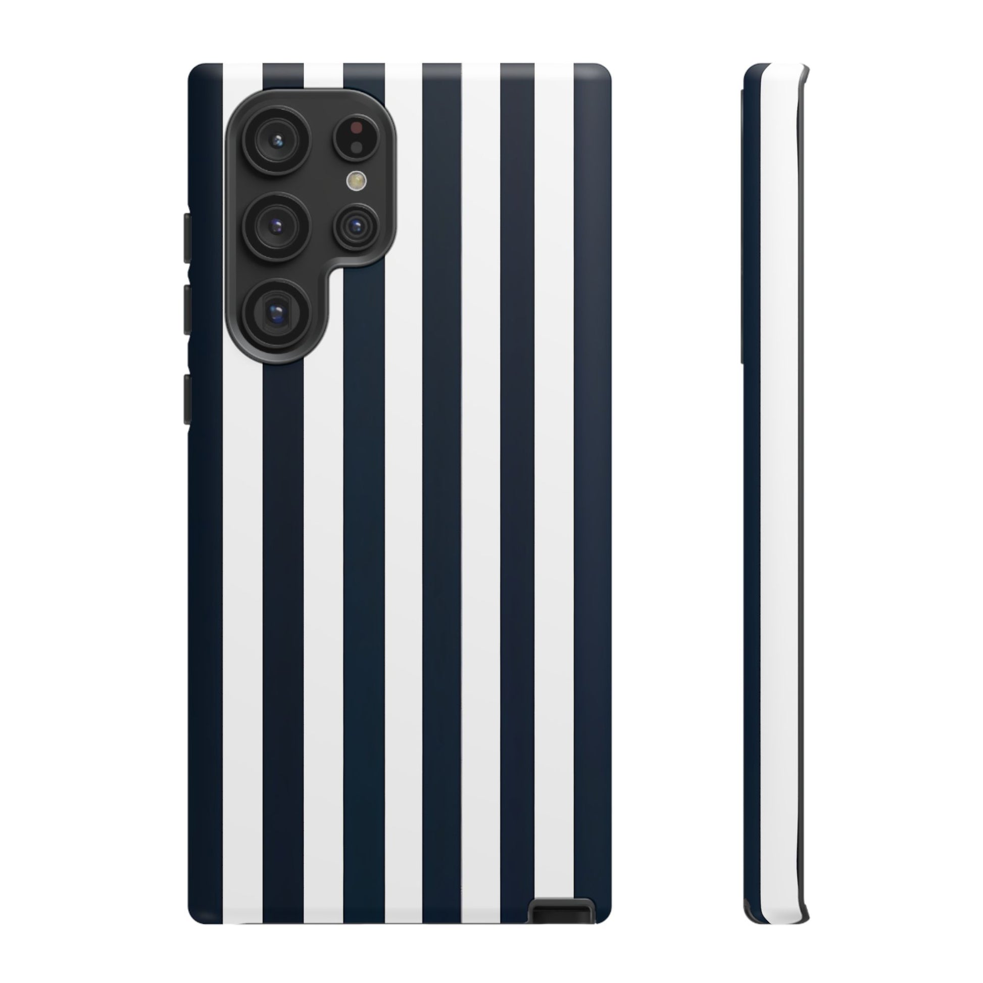 A timeless pattern of crisp vertical stripes in deep navy blue and bright white. This clean, repeating design brings a refined nautical touch—simple, bold, and effortlessly stylish.