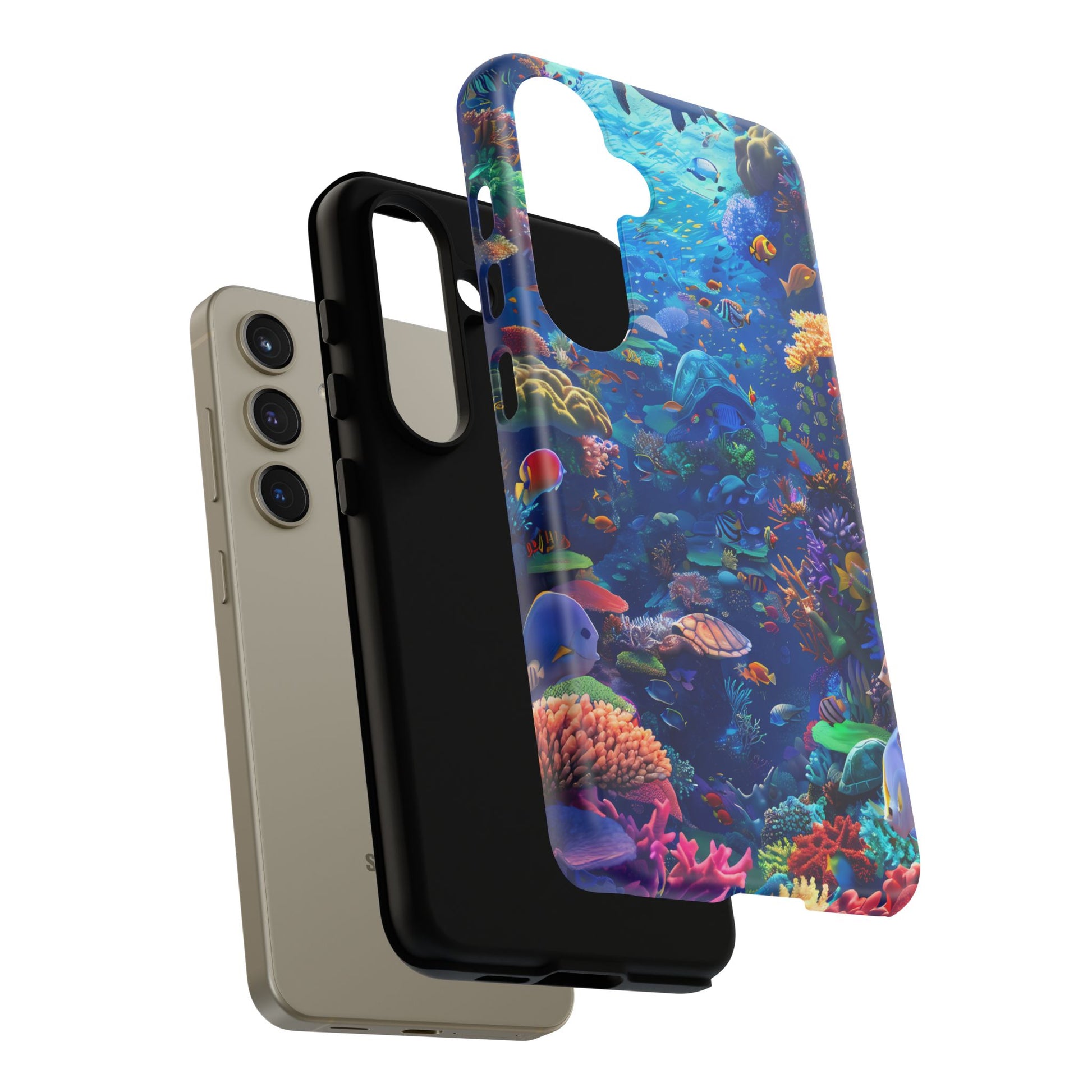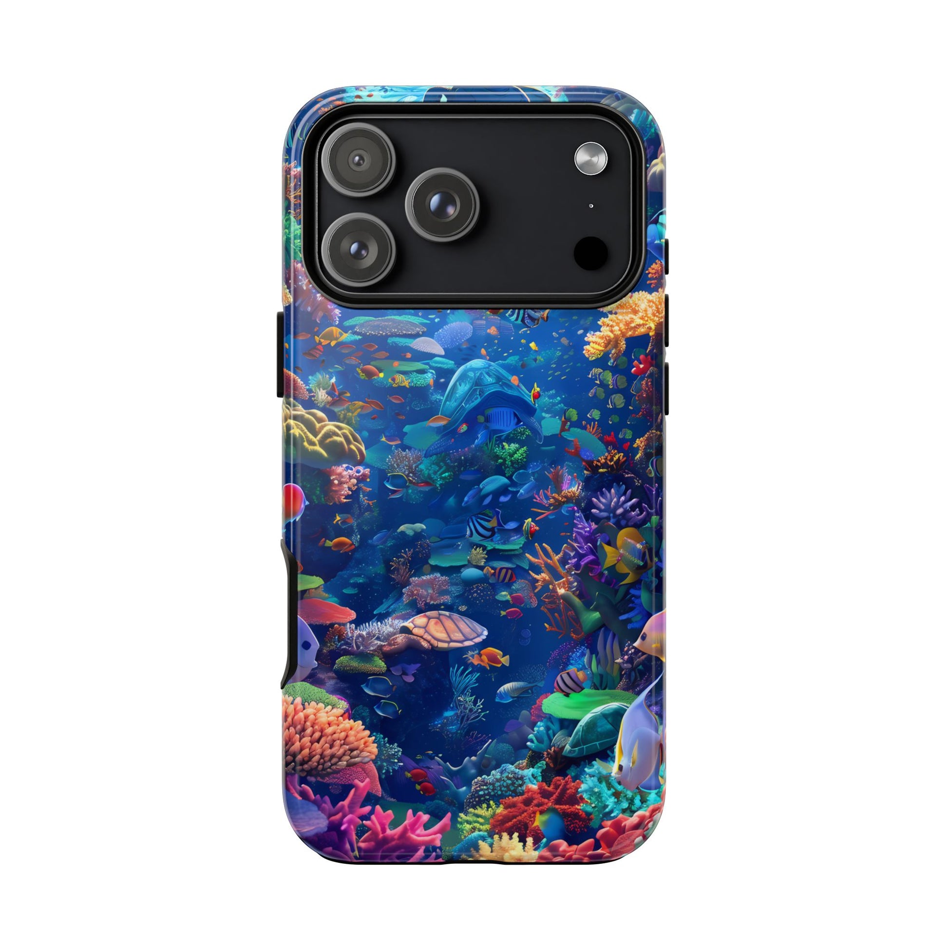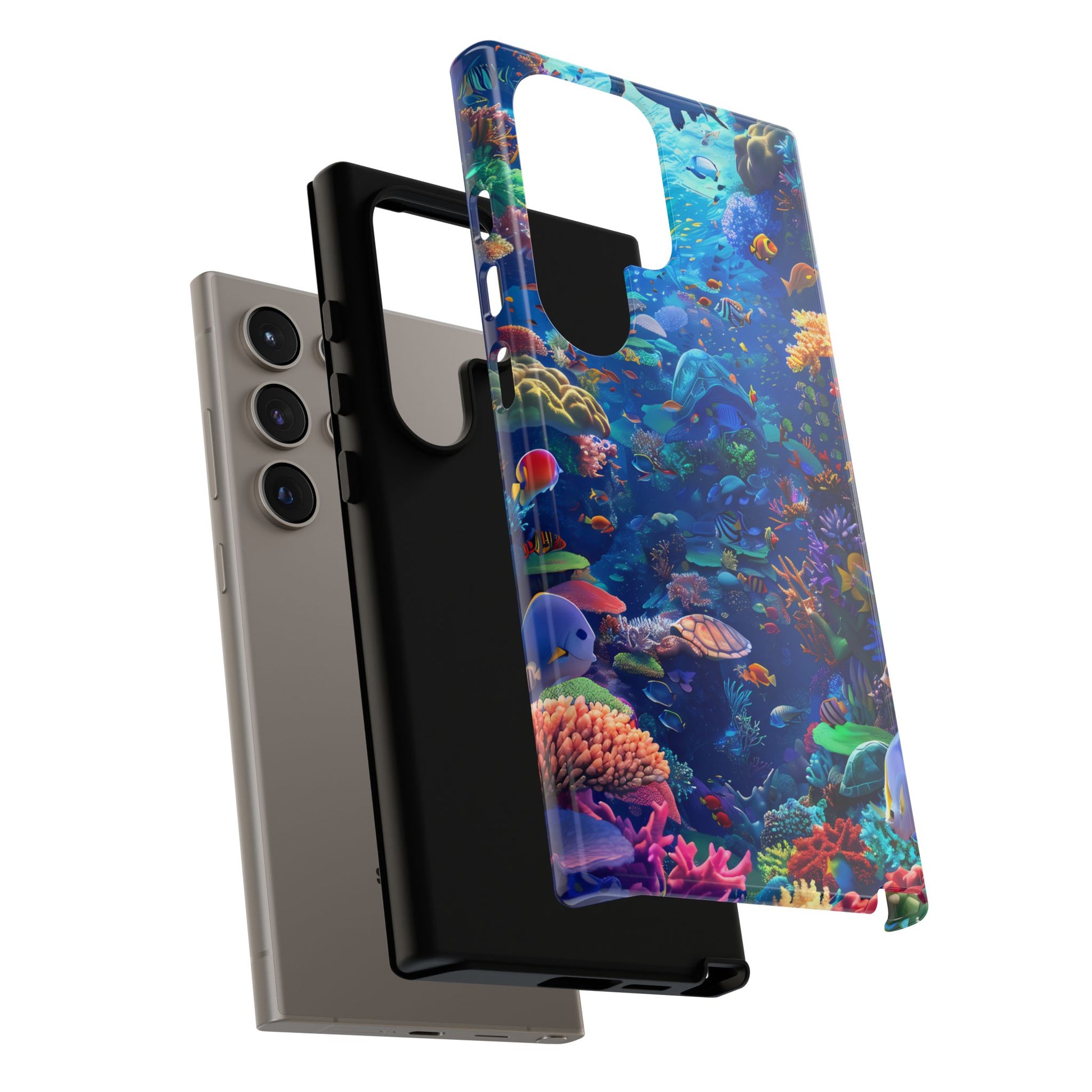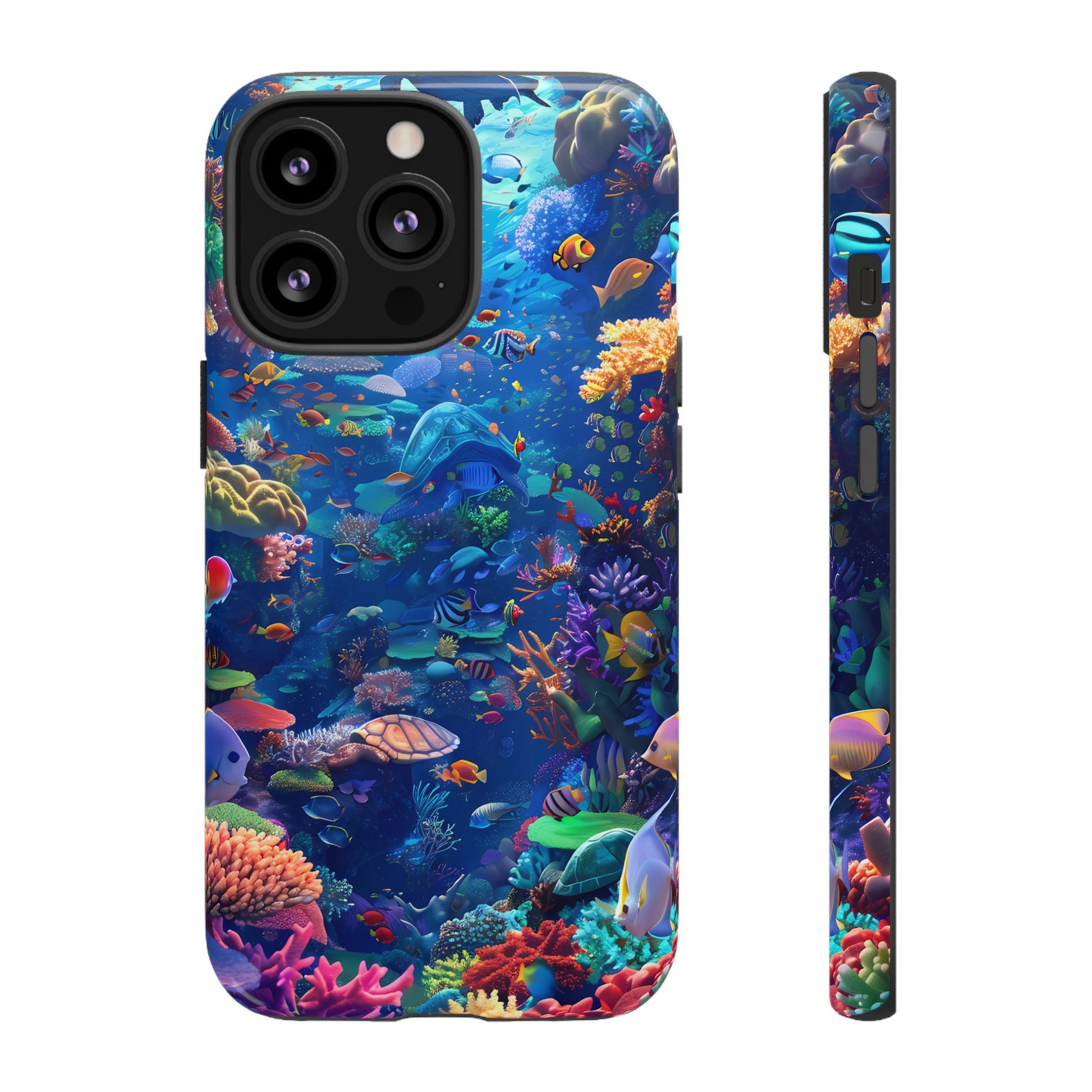Dive into the beauty of the deep sea with the Ocean Paradise cell phone cover. This vibrant design showcases a detailed underwater coral reef teeming with colorful fish, sea turtles, and stunning coral formations, capturing the essence of marine life in all its tropical glory.