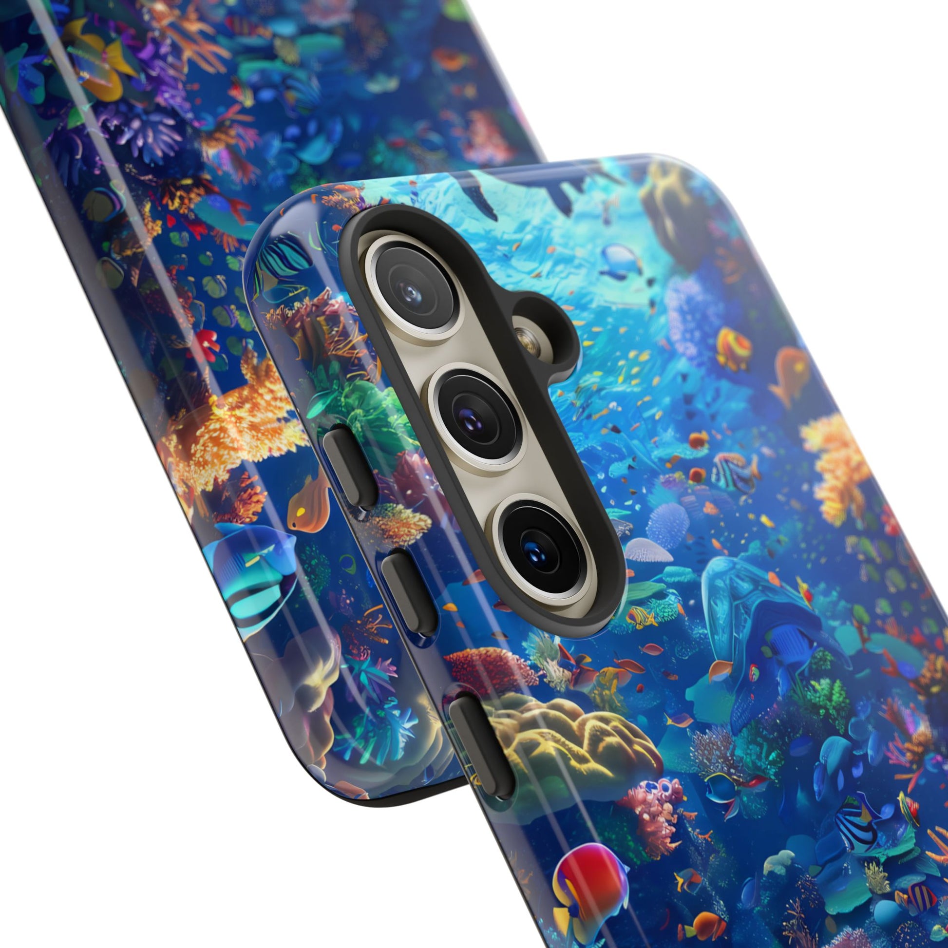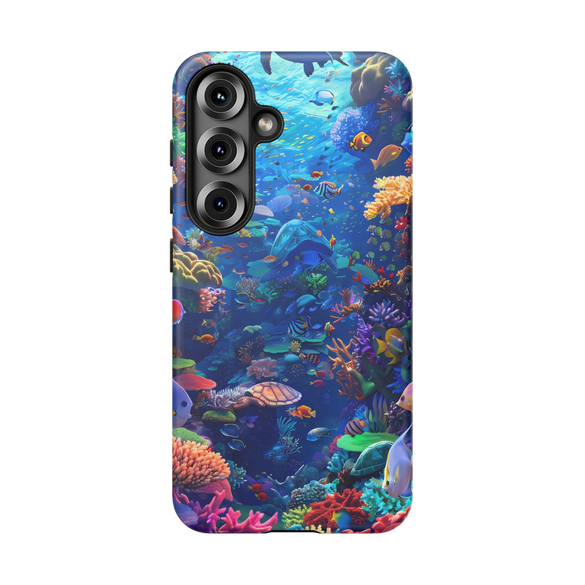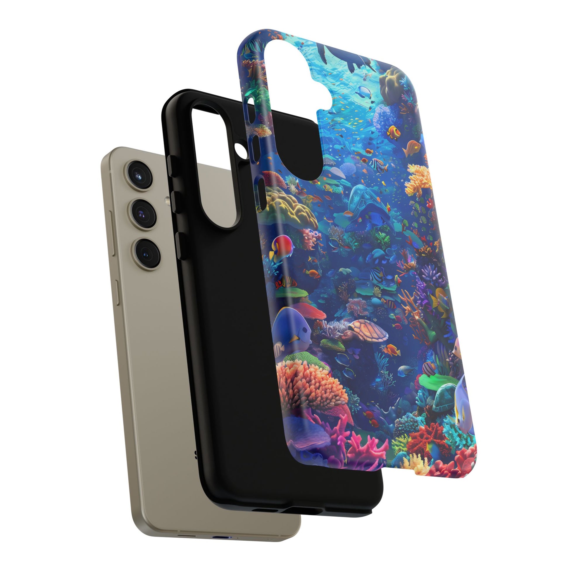 Dive into the beauty of the deep sea with the Ocean Paradise cell phone cover. This vibrant design showcases a detailed underwater coral reef teeming with colorful fish, sea turtles, and stunning coral formations, capturing the essence of marine life in all its tropical glory.