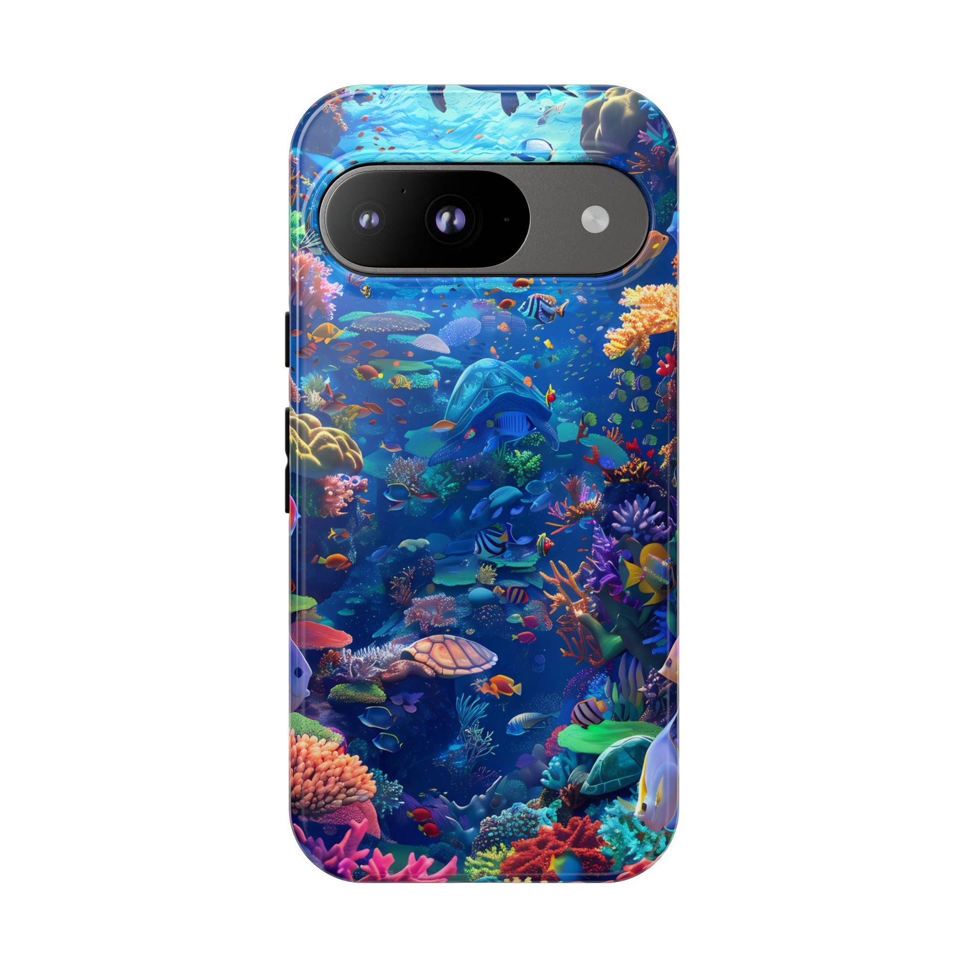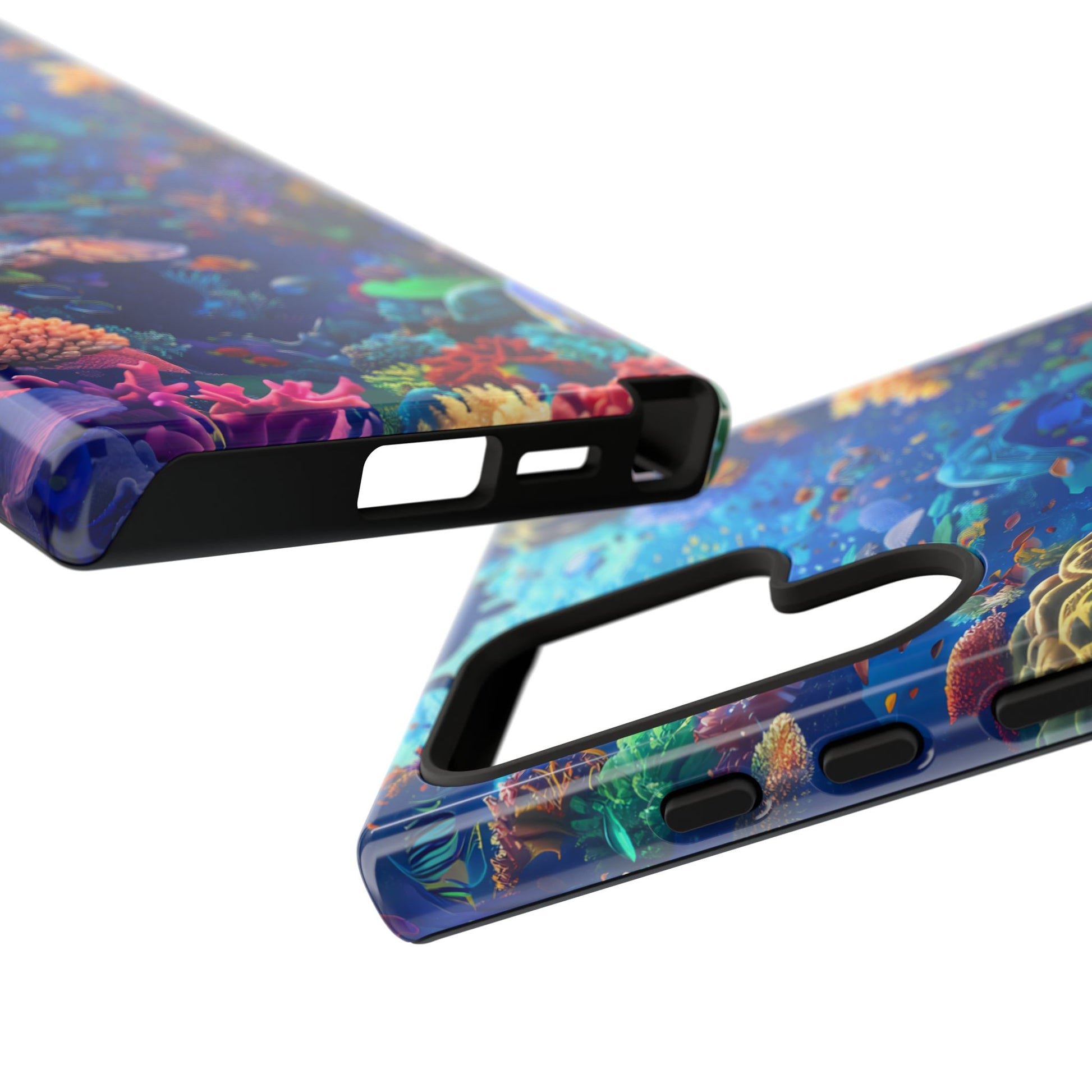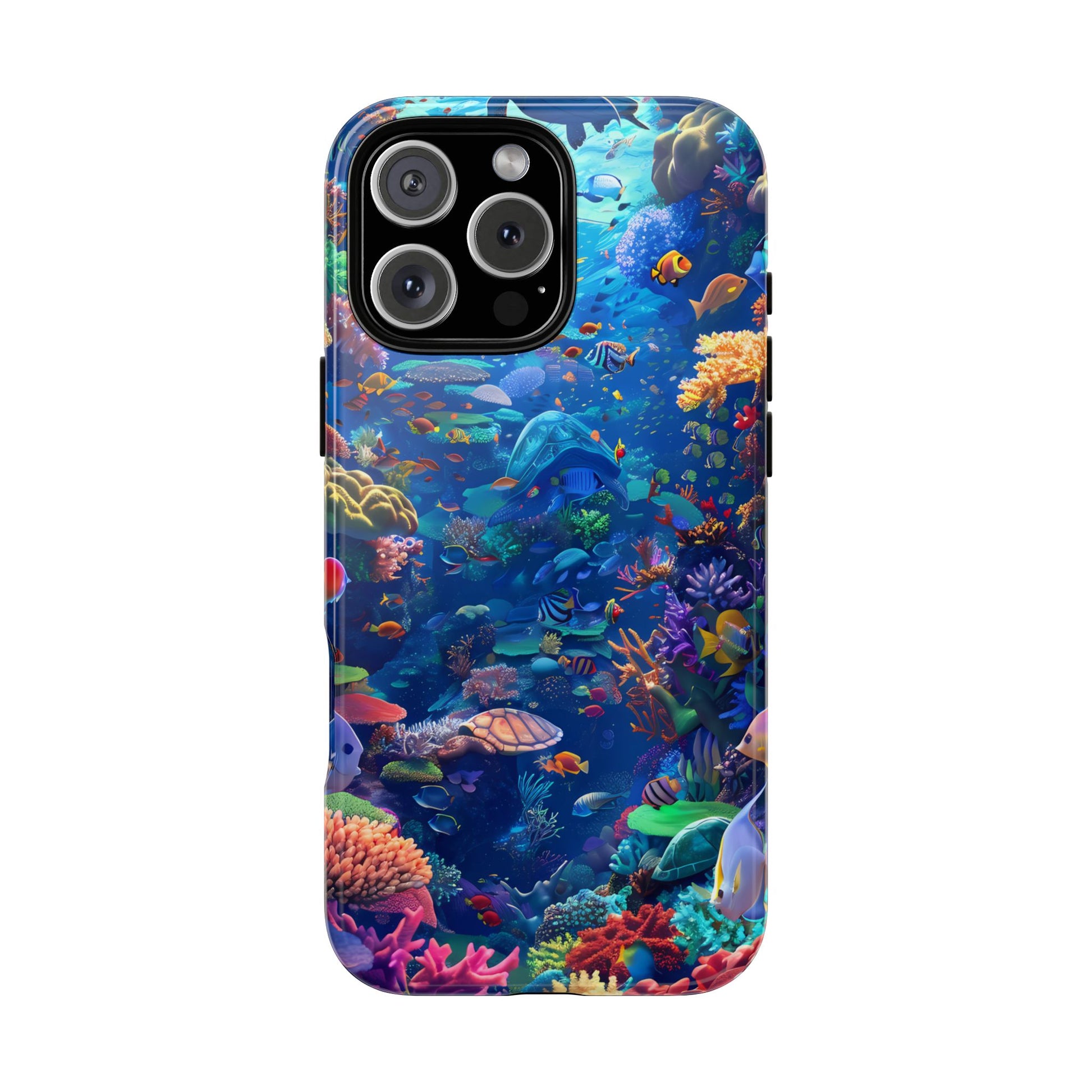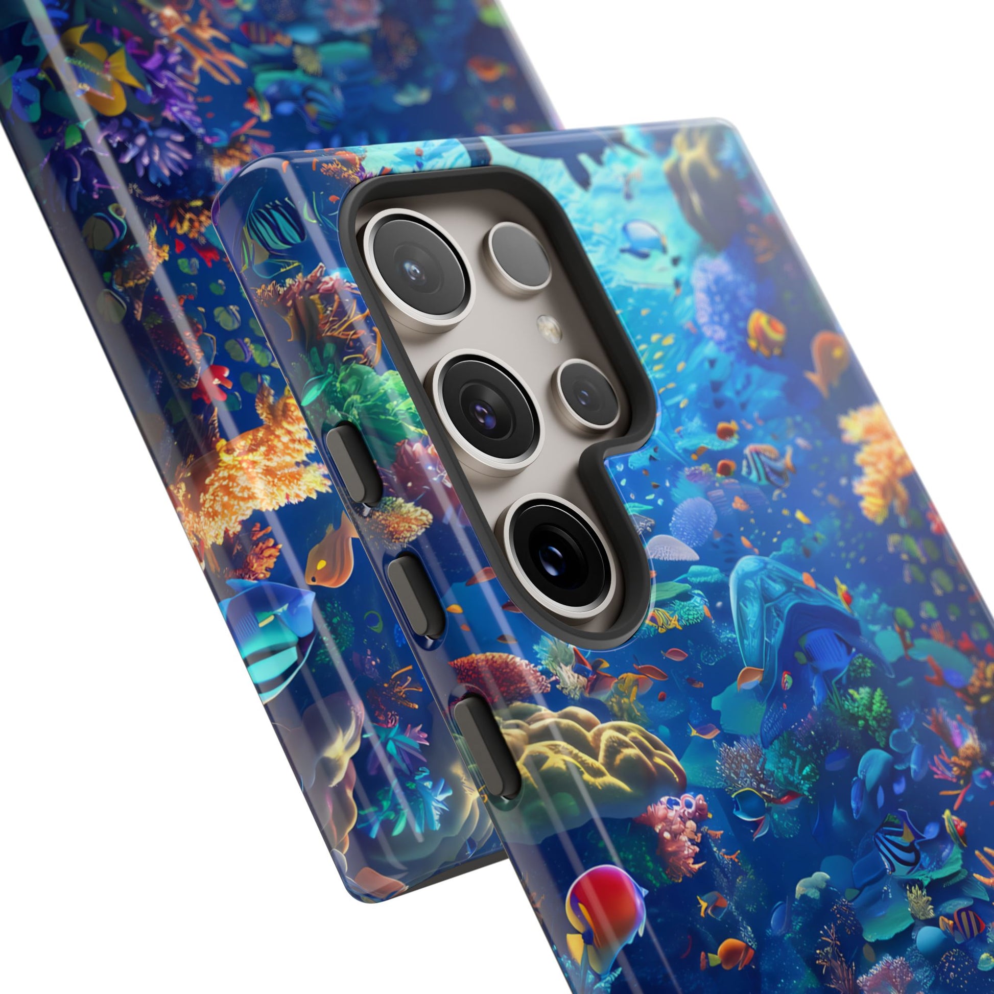 Dive into the beauty of the deep sea with the Ocean Paradise cell phone cover. This vibrant design showcases a detailed underwater coral reef teeming with colorful fish, sea turtles, and stunning coral formations, capturing the essence of marine life in all its tropical glory.