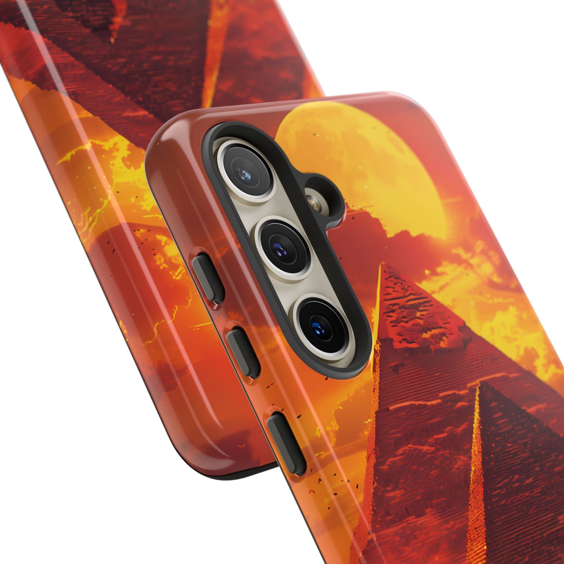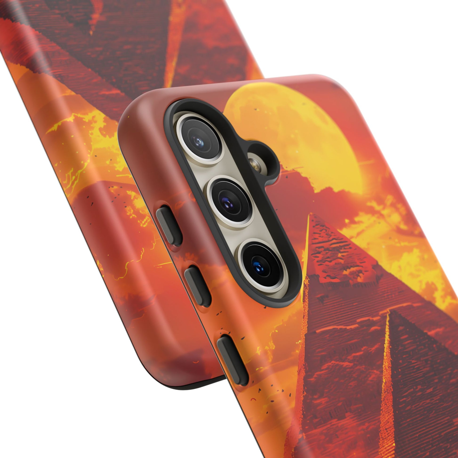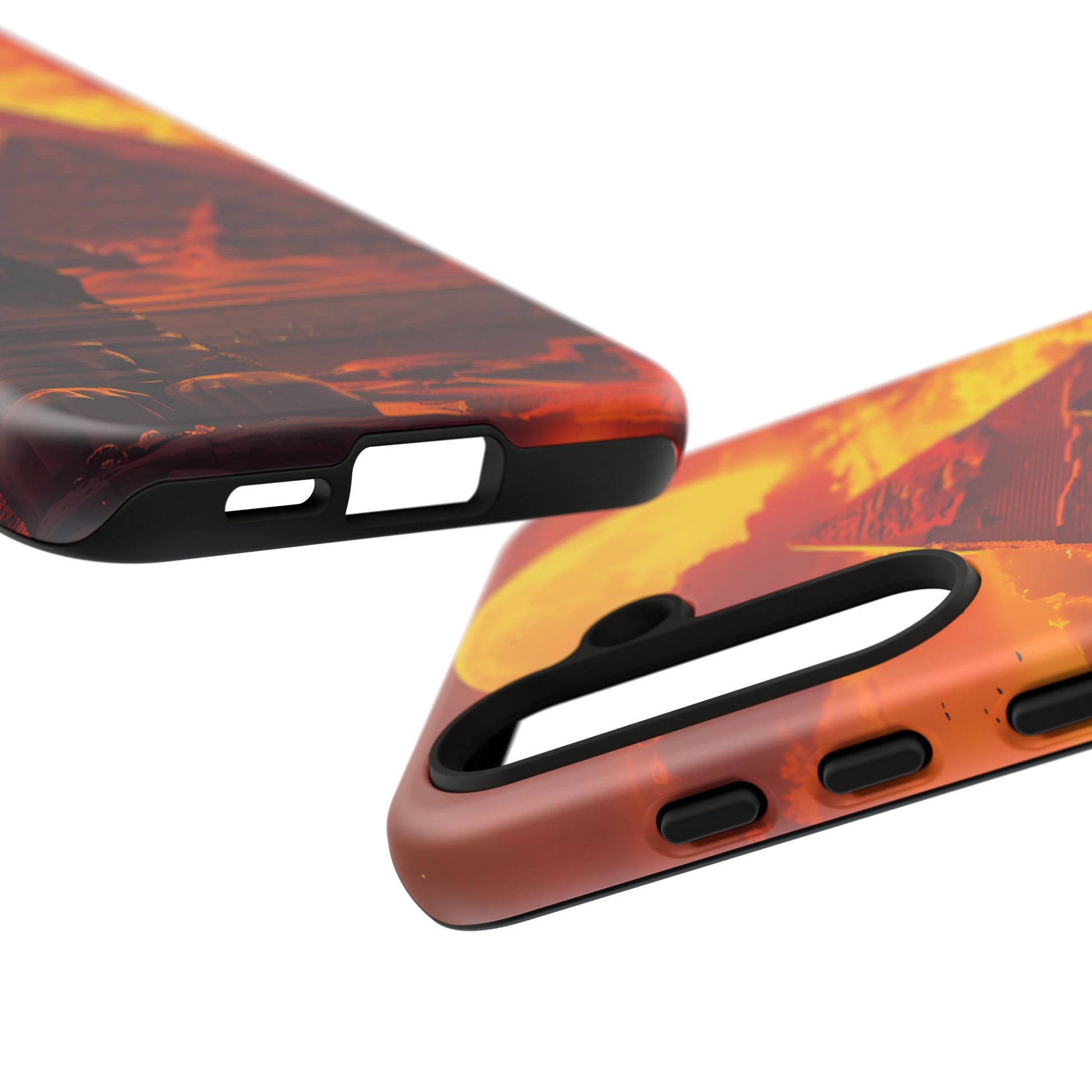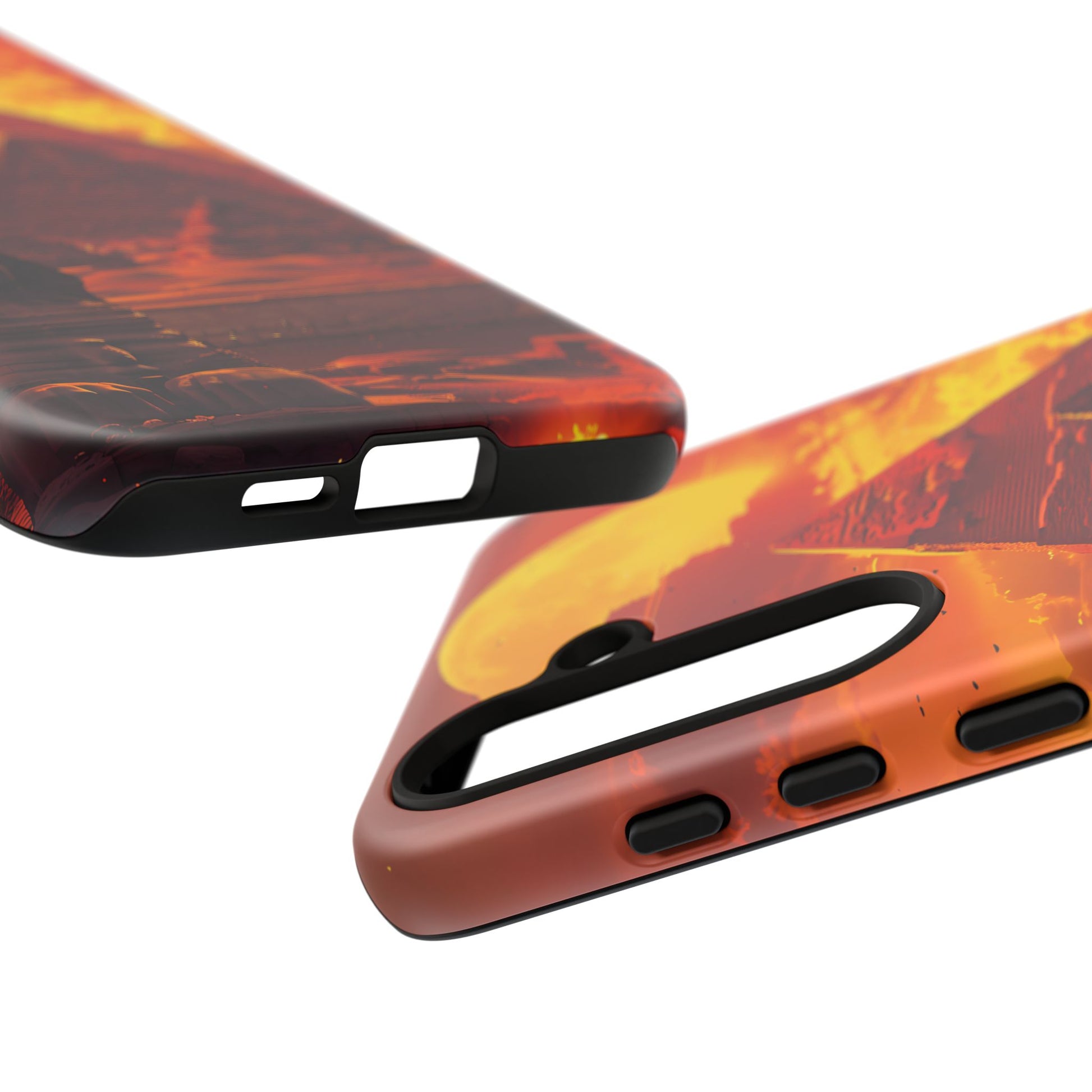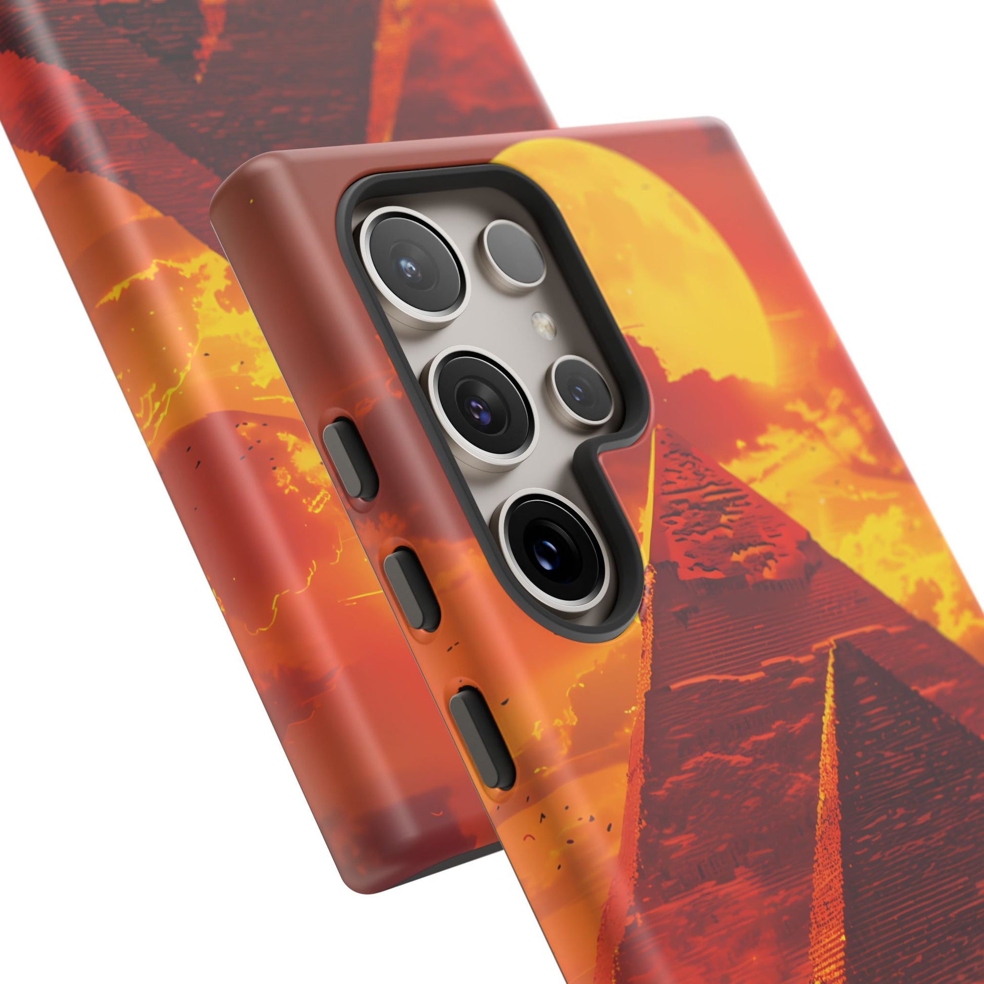 Experience the breathtaking beauty of Egypt’s most famous landmarks with the Pharaoh's Twilight cell phone cover. This illustration showcases the Pyramids of Giza bathed in the warm glow of sunset, with the Sphinx adding to the timeless appeal of this ancient scene.