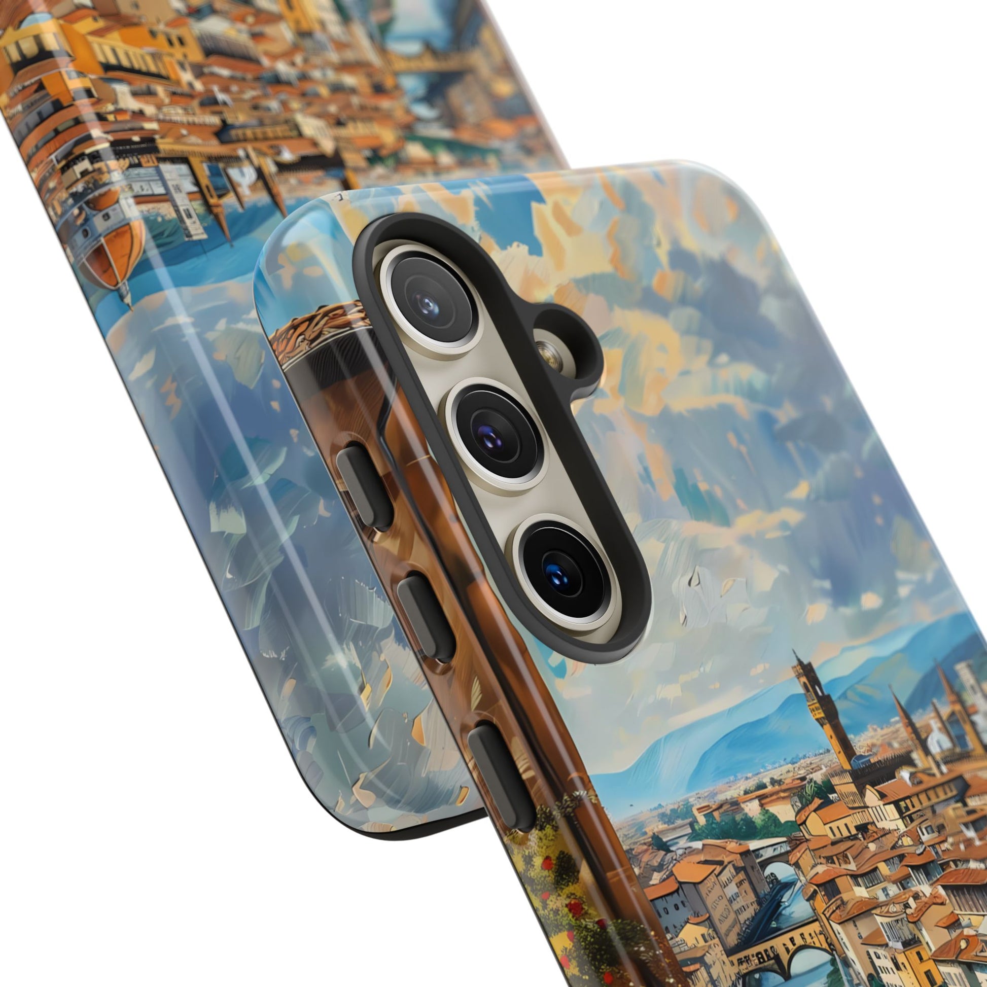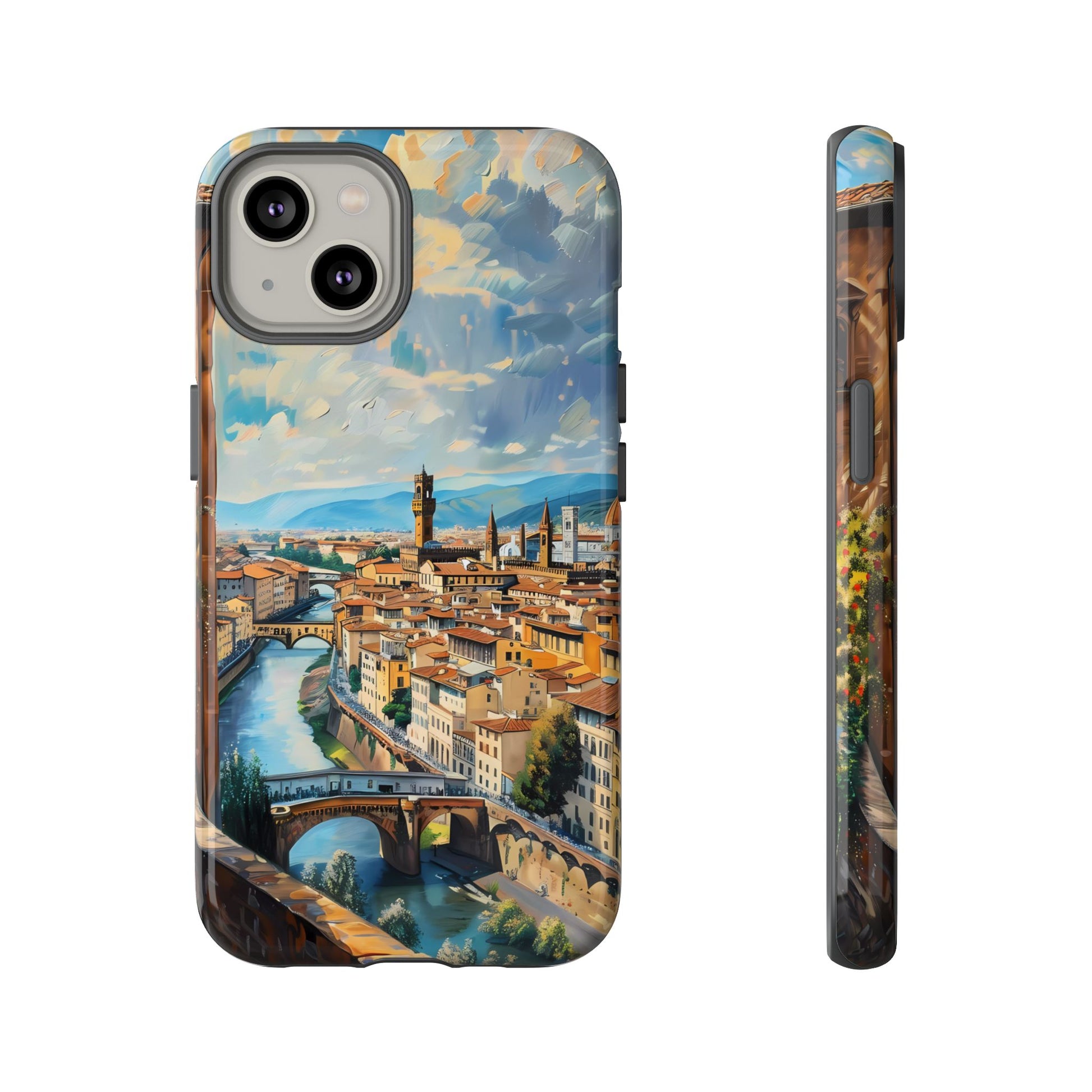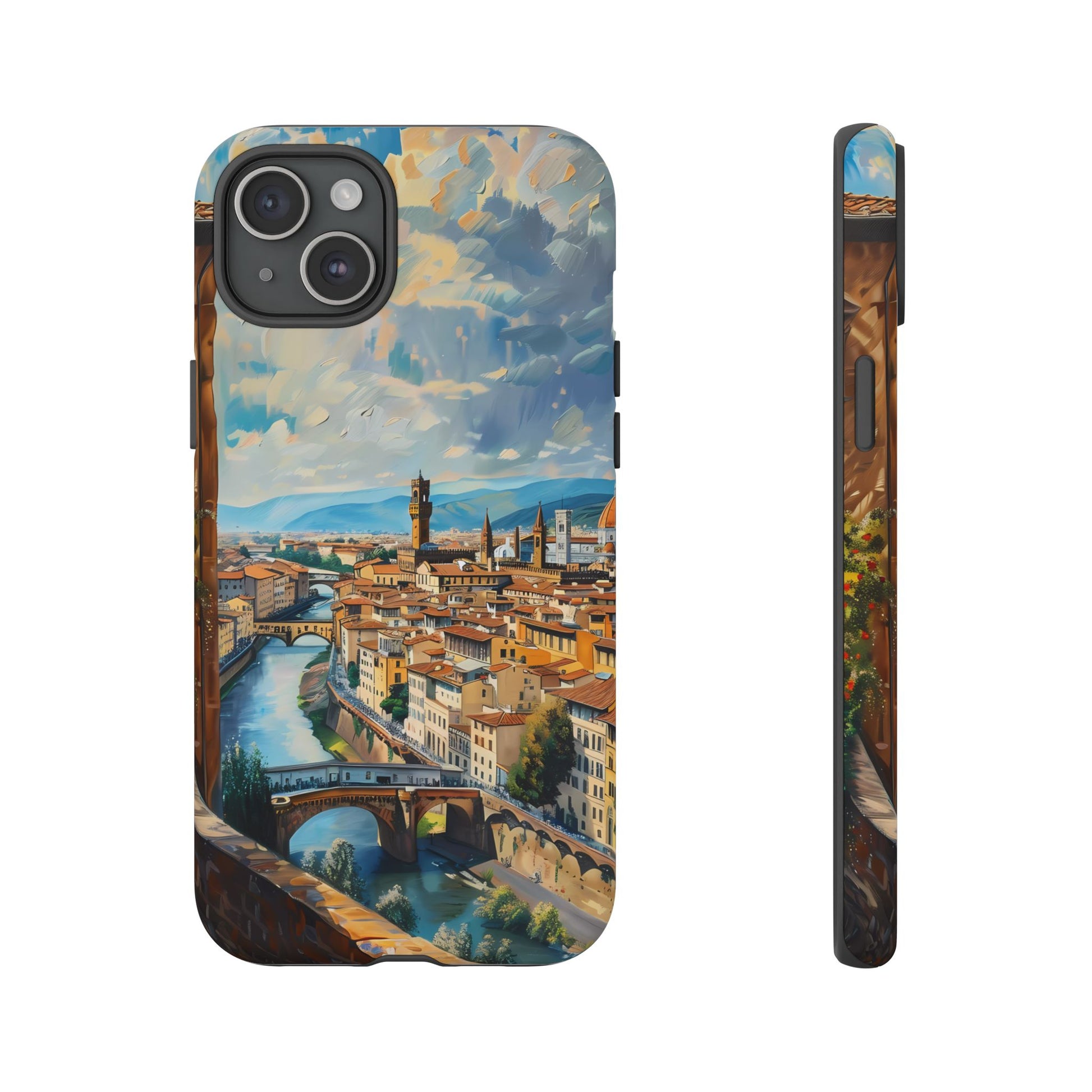 Transport yourself to the heart of Florence with the "Ponte Vecchio Vistas" phone cover. This stunning design presents an oil painting of the famous bridge alongside Florence's Renaissance architecture, making it an ideal choice for art lovers and admirers of Italian heritage.